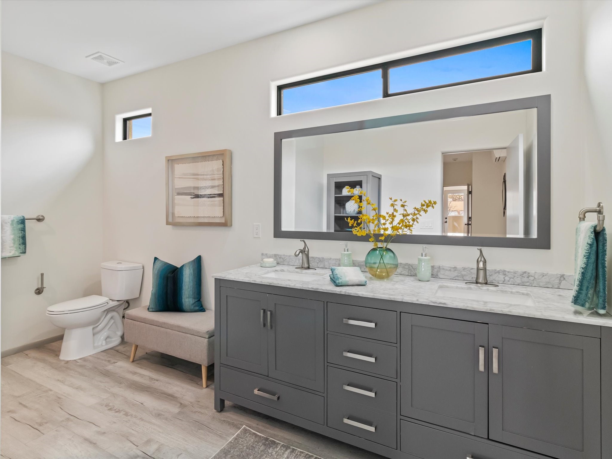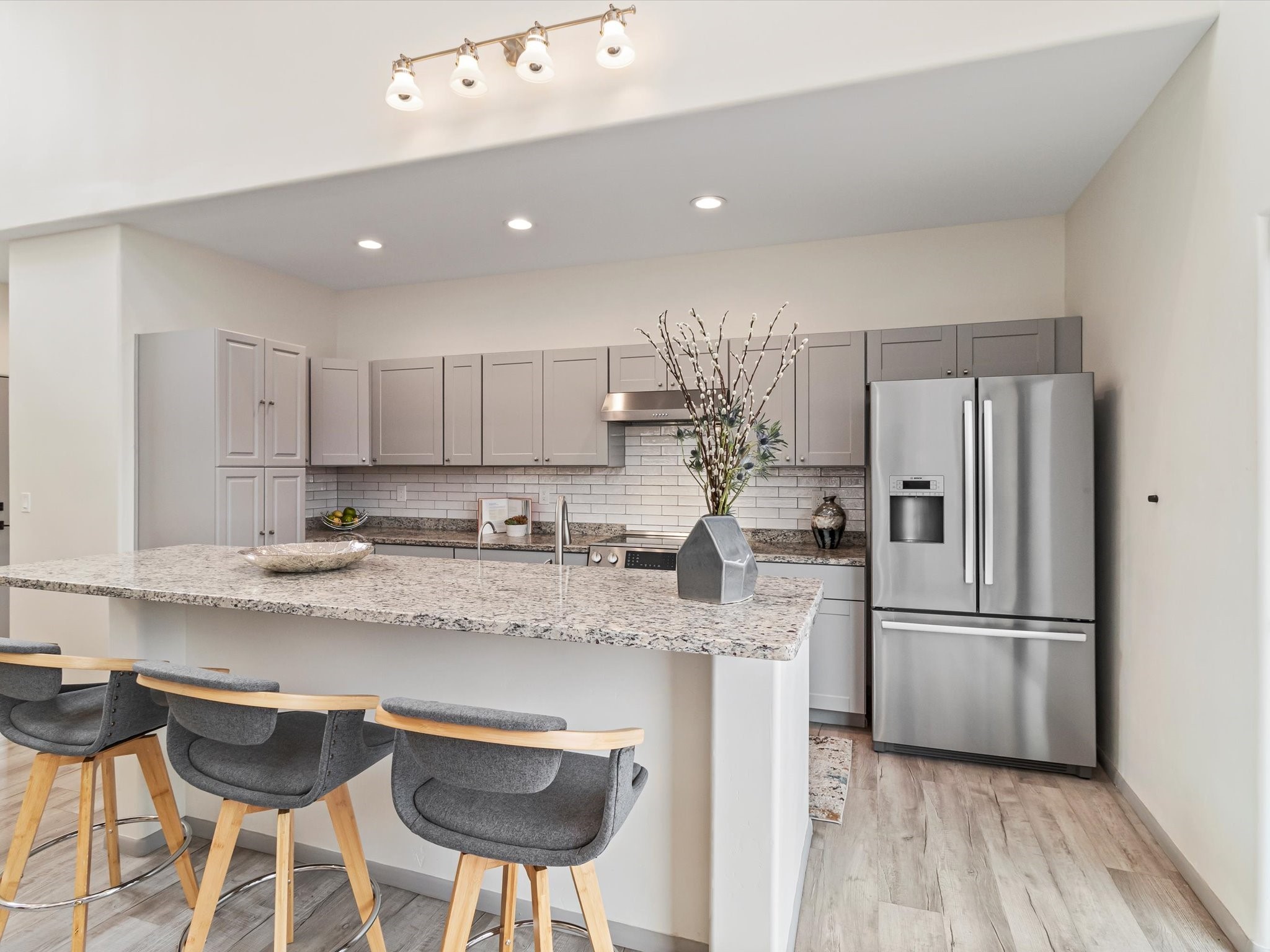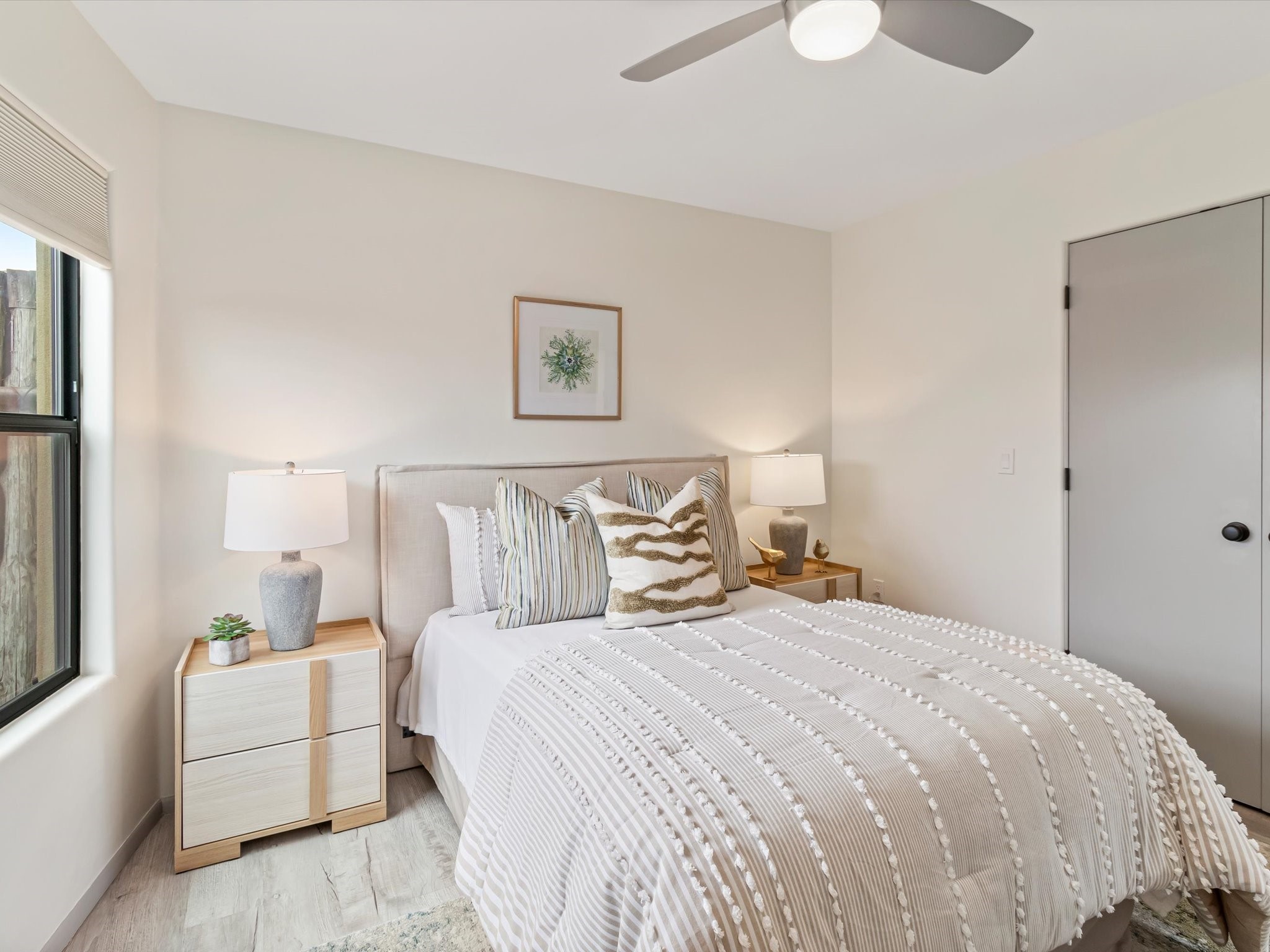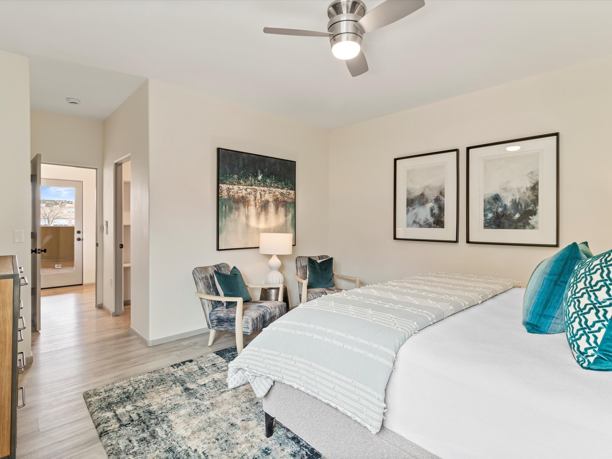 Experience exceptional Santa Fe living in this beautiful, Active Solar, contemporary condominium designed by the current owner. This all Electric, Energy Positive home boasts an Emerald Green NM Certification, Reverse Osmosis water system, new 50 AMP Electric car charger, Radiant Floor Heat (including the garage), Mitsubishi Mini splits and EnergyStar Bosch Kitchen appliances. Top of the line TPO roof with a traction layer covers the wrap-around outdoor deck where you can relax and enjoy views of the Sangre de Cristo mountains. Located in the no-outlet, highly desirable Rio Sendero Complex and nestled up against the Santa Fe River Walk Trail. The River Walk Trail accesses Downtown (1.2 miles); closely connected to two of Santa Fe's most valued areas: The Santa Fe Railyard Area with its restaurants and galleries, and the vibrant, ever-popular Santa Fe Farmers Market (1.1 miles) or go west to enjoy miles of open connected trails. For daily needs, across the street, are restaurants, groceries and a new gastro-pub. At home, the open-plan kitchen and living areas have beautiful soaring ceilings and access to a lovely ground floor rear patio. A downstairs bedroom could double as an office and the primary upstairs bedroom feels separate and cozy with its en suite bath. Low water landscape on drip irrigation. Less than five years old, this home is truly one of a kind and will garner much interest. Must see!The County Assessor shows Square footage at 1231 which differs from the builder's plans. Neither Listing Broker or Seller warrant the square footage of the lot or building. If the size of the home or lot is of material consideration to the Buyer, then the Buyer should have them measured.