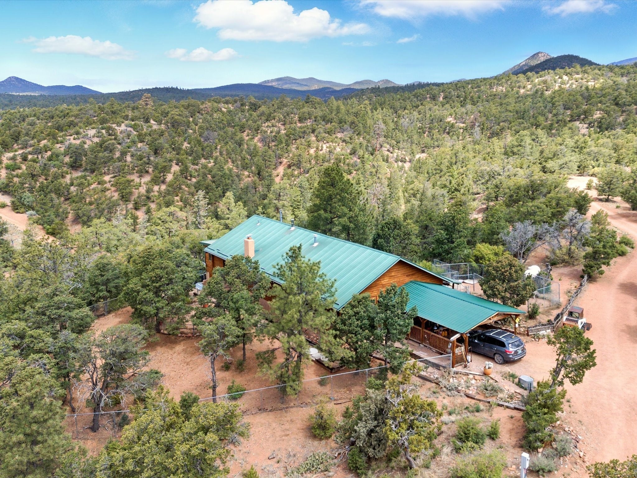 Escape to a 2-bed, 2-bath, 25-acre horse-ready retreat with forest access, rustic charm, and serene mountain views.Tucked away in the high mountains just minutes from Santa Fe, this private 25-acre retreat offers the perfect blend of rustic charm and Southwestern style. With direct access to national forest land, it's a rare opportunity for outdoor enthusiasts and horse lovers alike.The home features Saltillo tile floors, warm wood accents, and a cozy cabin feel, blending seamlessly with its natural surroundings. Equestrian-ready, the property includes a 4-stall stable with water and electric, plus a round pen--all set within expansive, usable land.Enjoy true serenity with no HOA, big skies, and endless trails, all within easy reach of town.