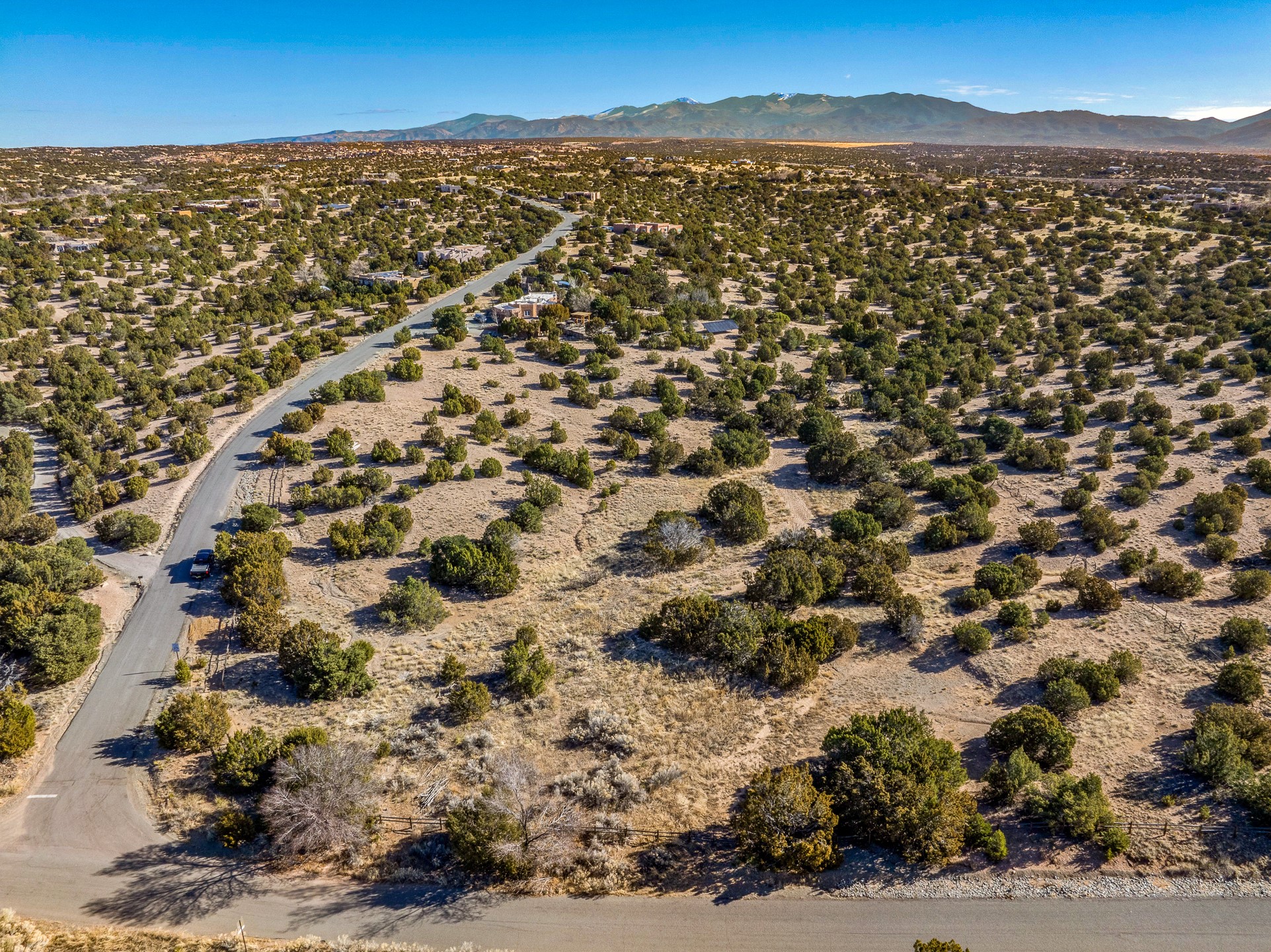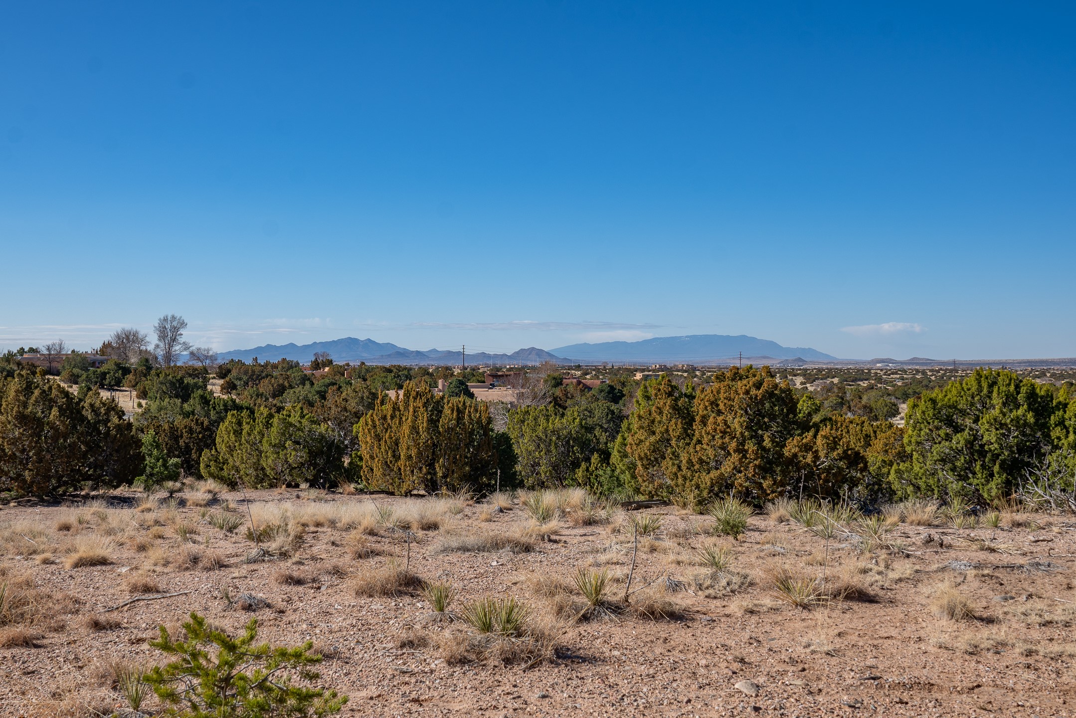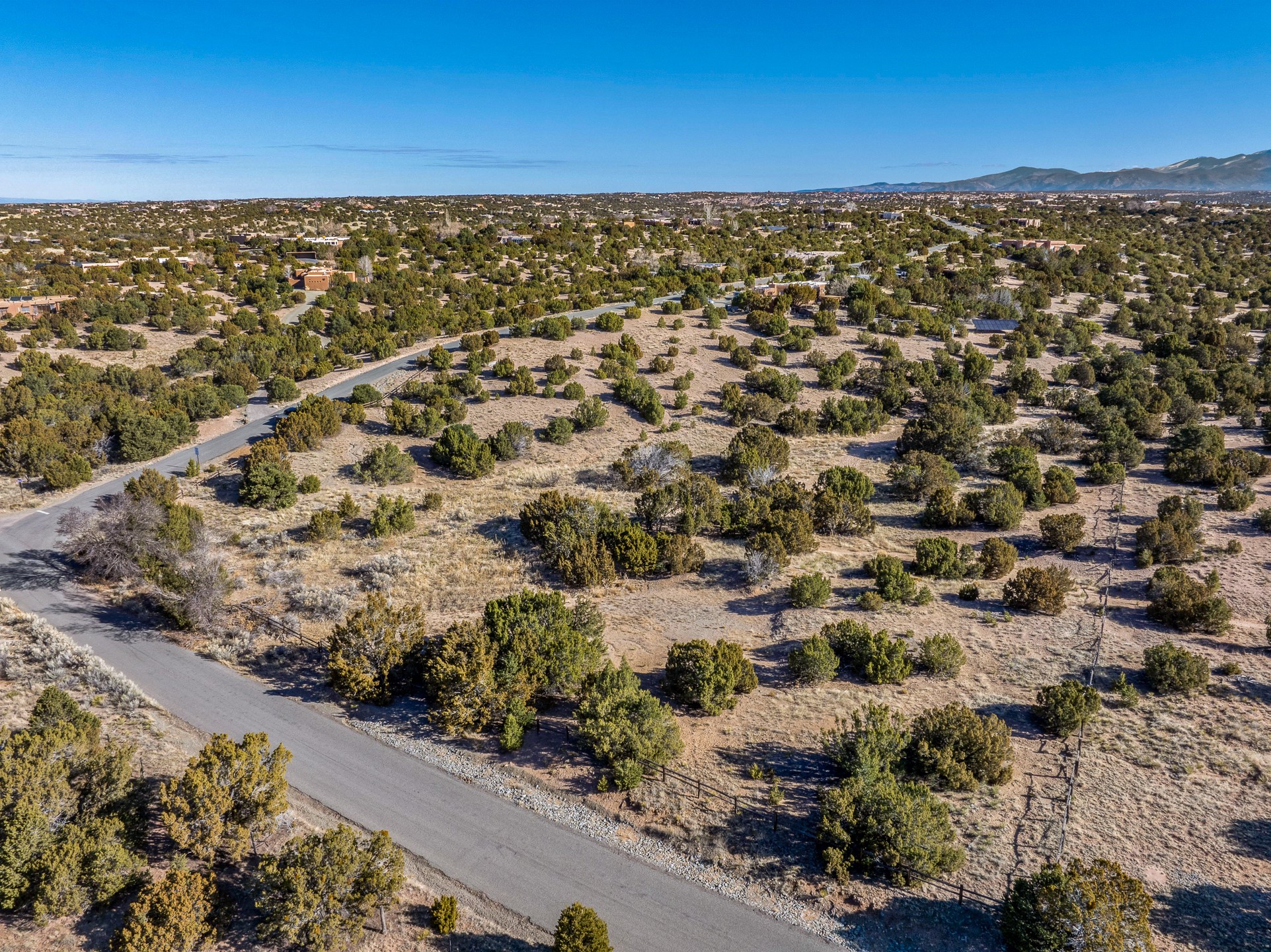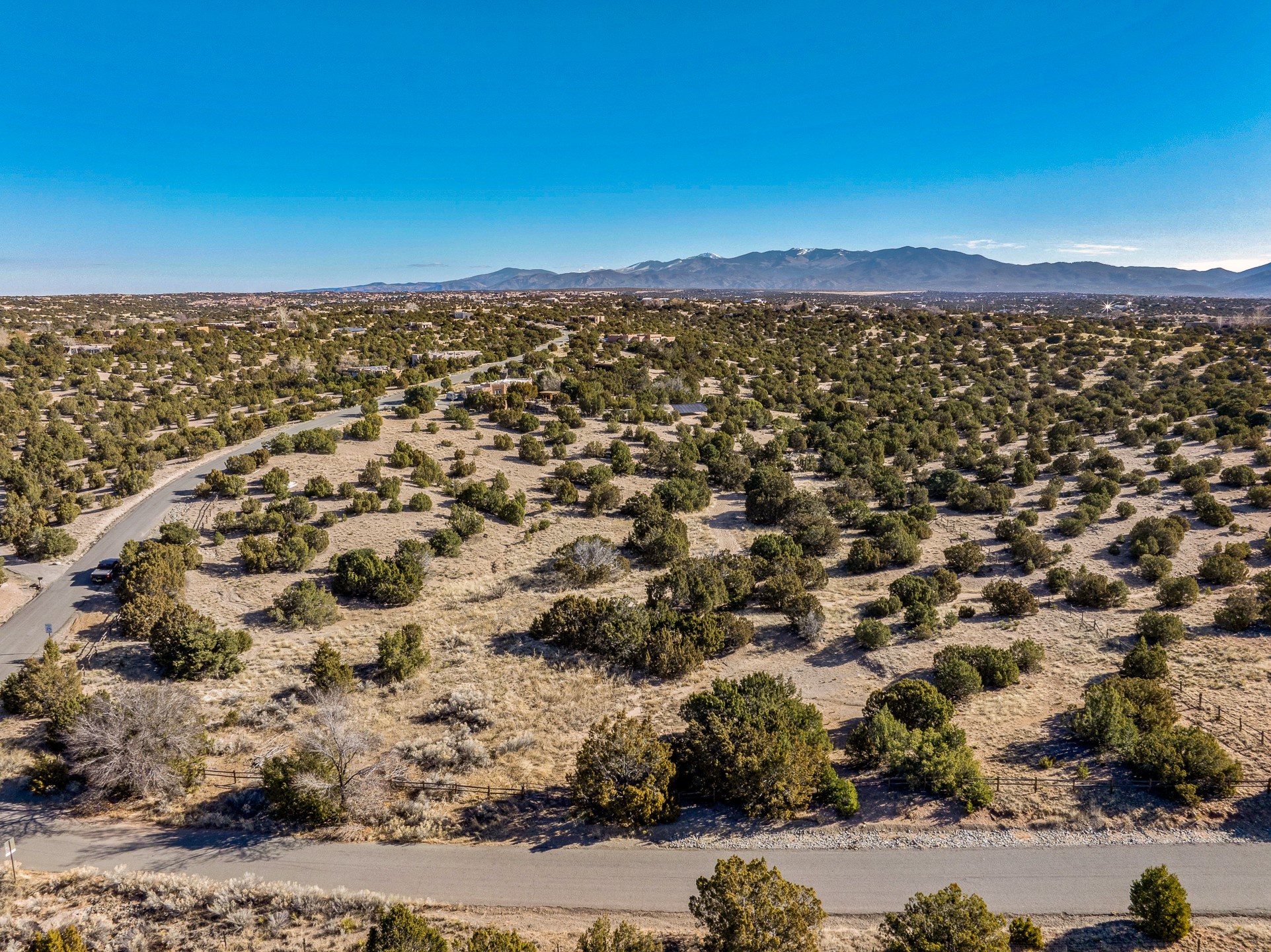 3.62 acres just minutes from town in desirable Puesta Del Sol. This attractive lot features views of the Sangre de Cristo's, Sandias, and Jemez Mountains. Gentling sloping corner lot with potential build sites perched well above an arroyo, on paved roads, with underground power and natural gas available. 11 minutes to Santa Fe Place Mall, 15 minutes to the plaza, and near the 599, this acreage is convenient to wherever you want to go. Perfect for the buyer who wants some space without getting too far out.