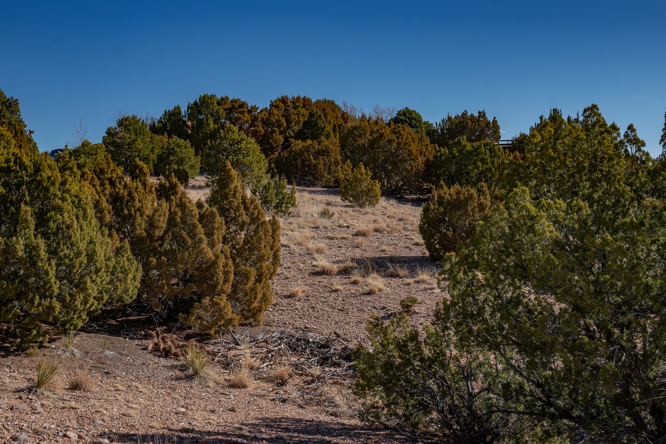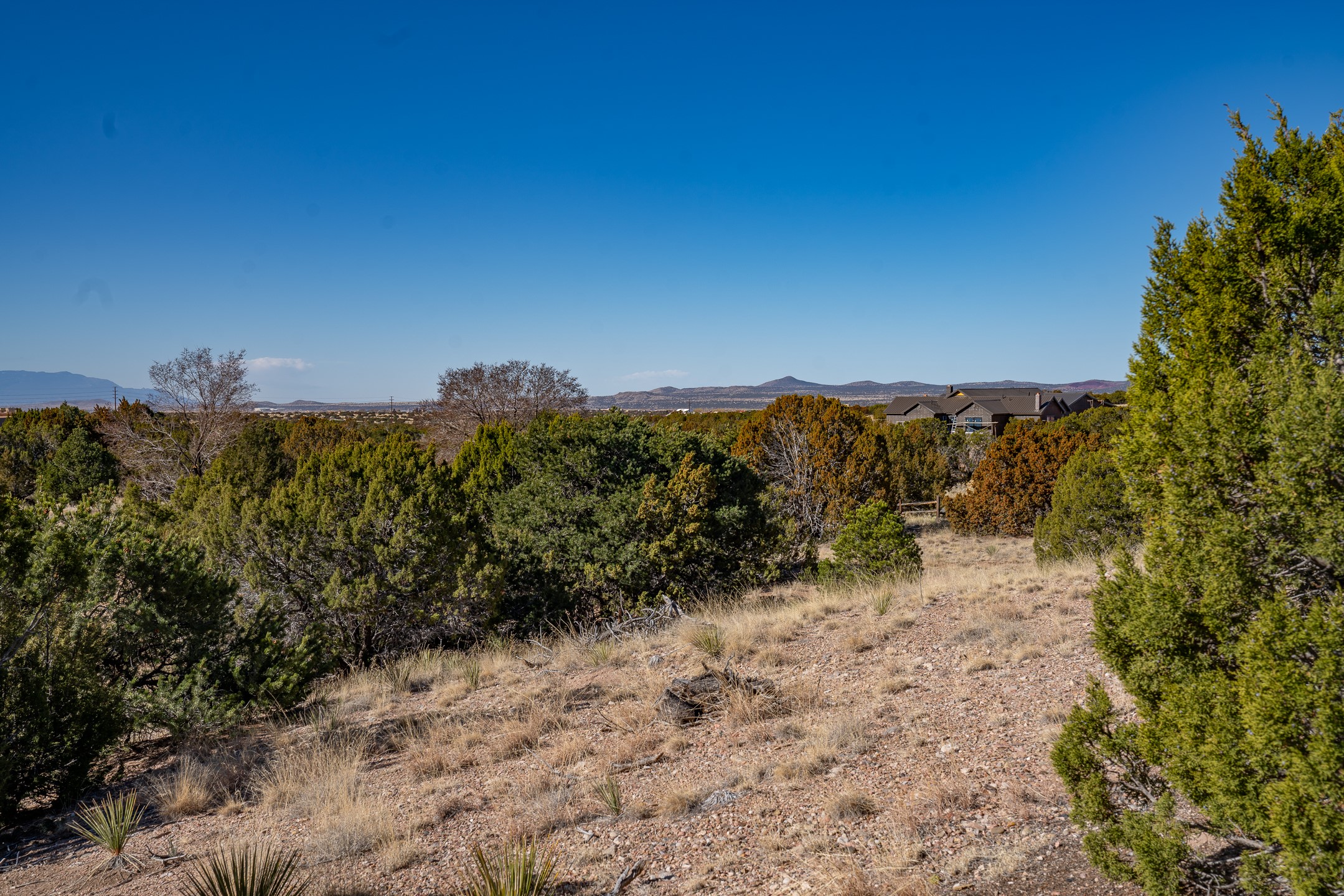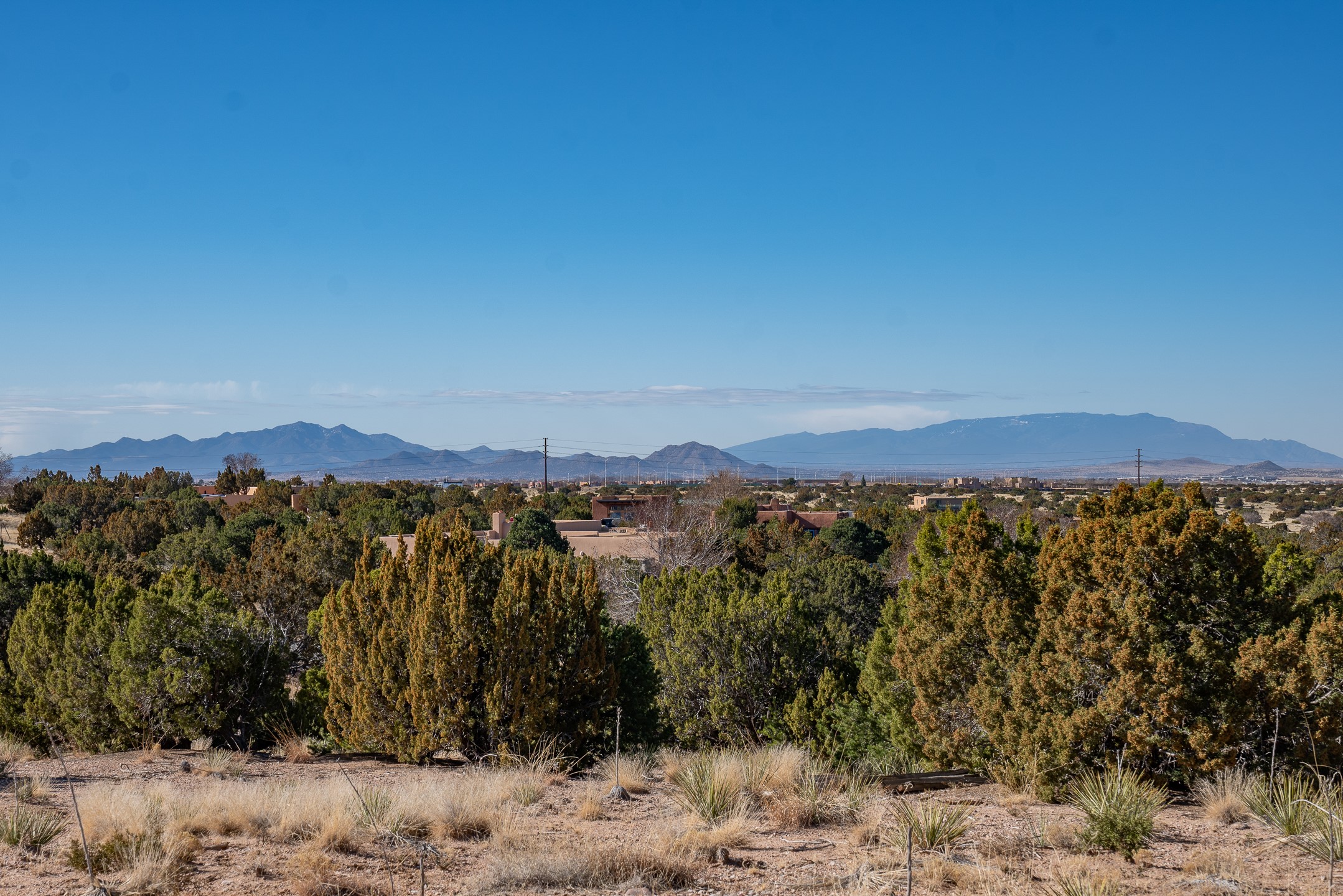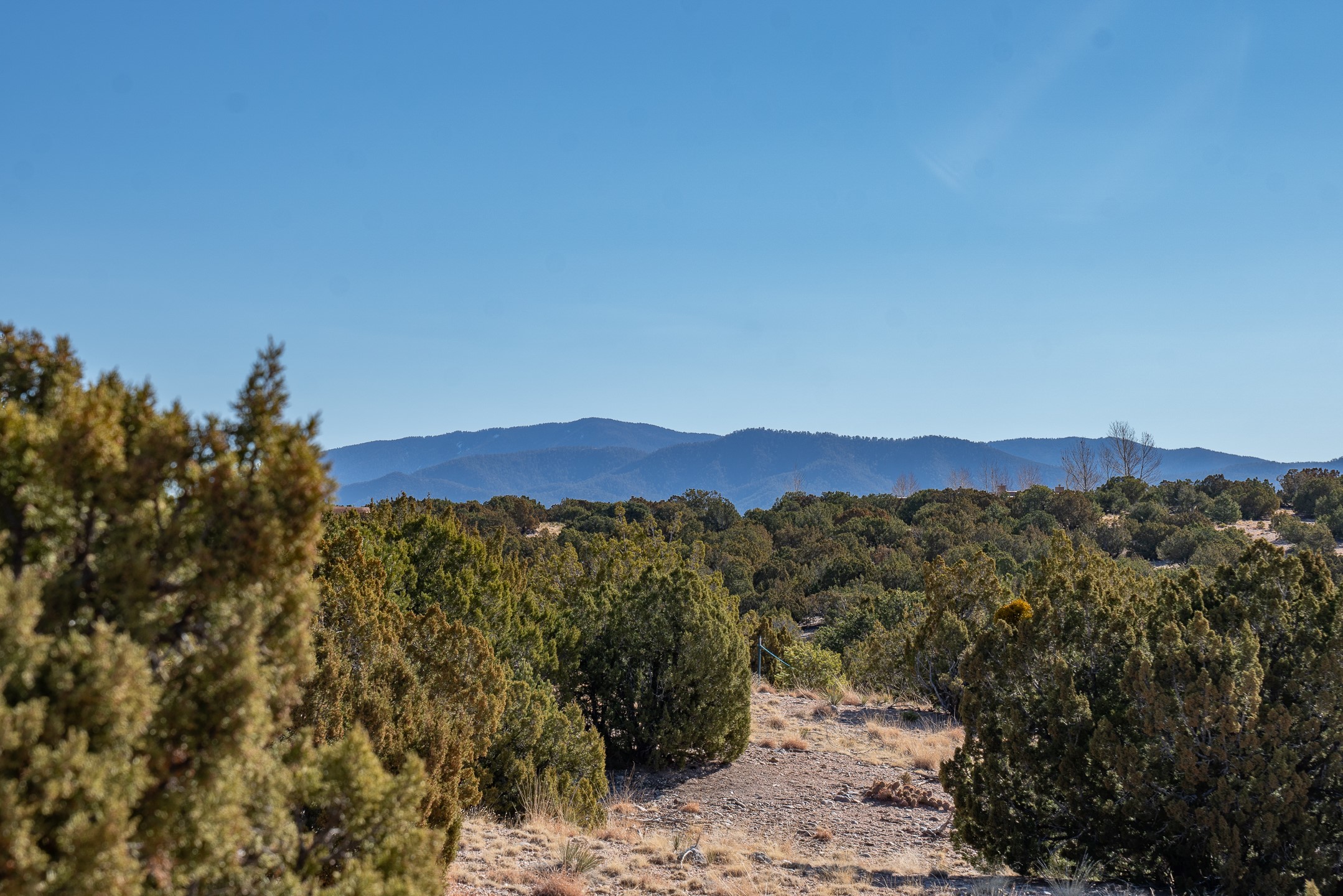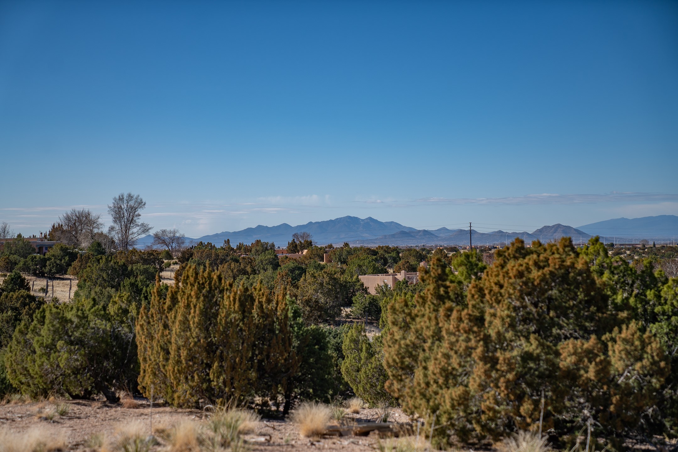 3.62 acres just minutes from town in desirable Puesta Del Sol. This attractive lot features views of the Sangre de Cristo's, Sandias, and Jemez Mountains. Gentling sloping corner lot with potential build sites perched well above an arroyo, on paved roads, with underground power and natural gas available. 11 minutes to Santa Fe Place Mall, 15 minutes to the plaza, and near the 599, this acreage is convenient to wherever you want to go. Perfect for the buyer who wants some space without getting too far out.