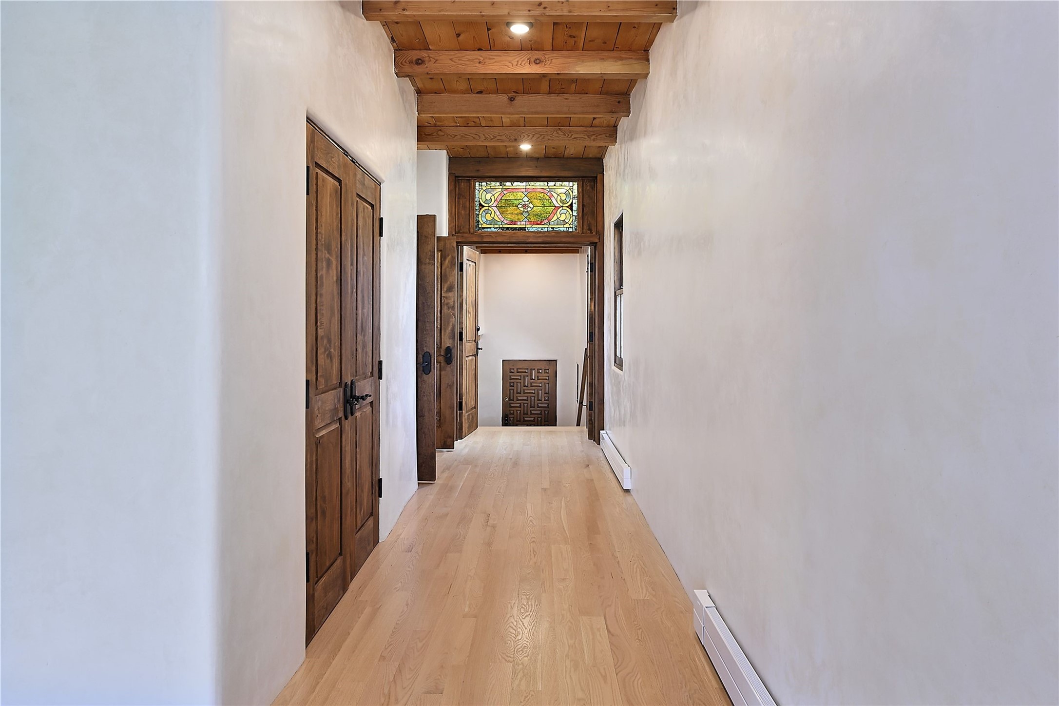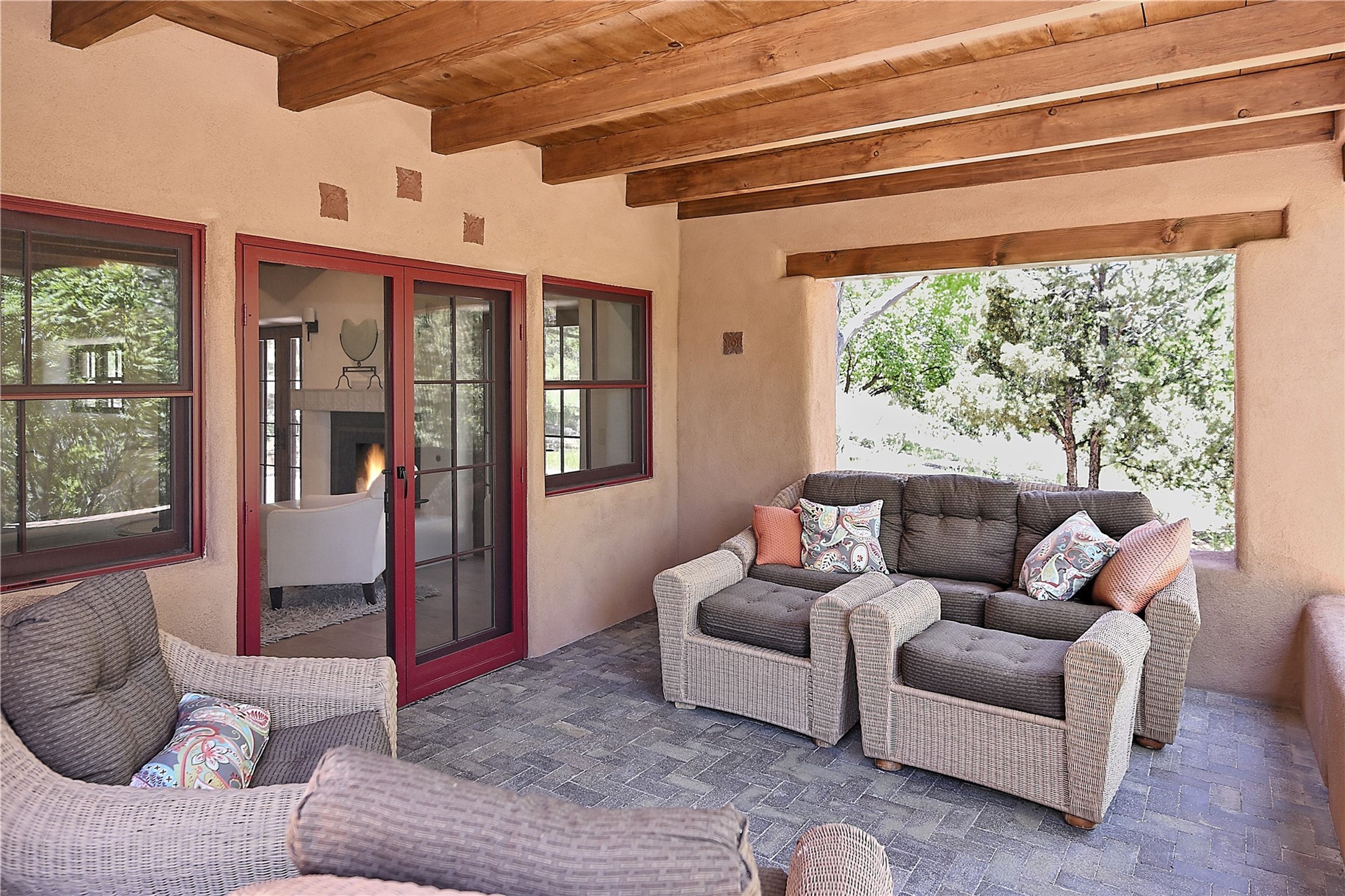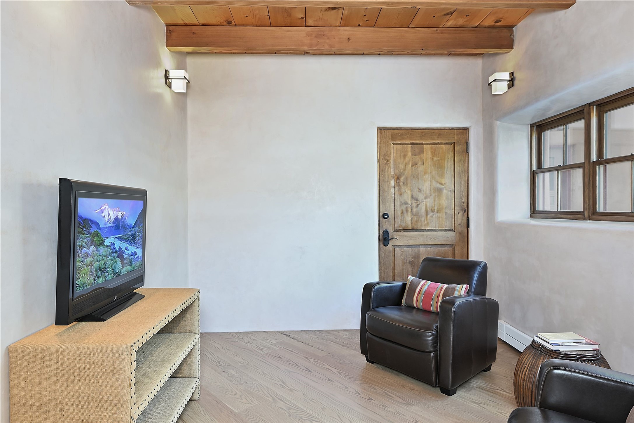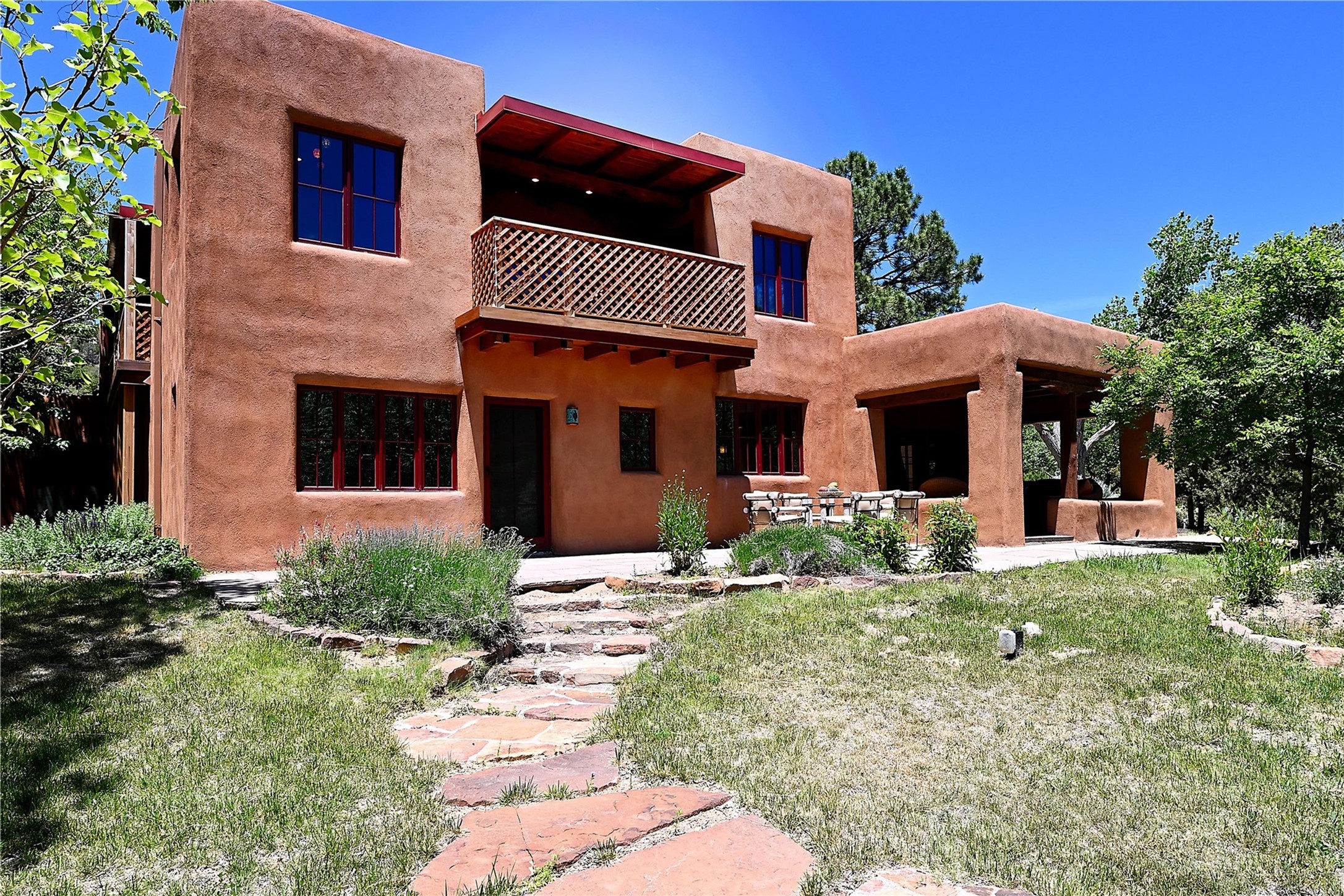 1678cerrogordo.com Welcome to a rare and enchanting retreat tucked away in the heart of Santa Fe's Historic Eastside--where riverfront serenity, natural beauty, and timeless adobe architecture come together perfectly. Set on 2.738 acres across two separately deeded parcels, this one-of-a-kind offering includes a spacious 4,000 sq. ft. home and an adjacent .738-acre wooded lot, offering endless possibilities for expansion, privacy, or simply room to breathe. The residence is surrounded by open meadows, mature shade and fruit trees, and lush cottonwoods, with the Santa Fe River gracefully lining the southern edge and the acequia flowing beside the home, adding a soothing soundtrack to this natural sanctuary. Inside, the home features three bedrooms, each with en-suite baths, including a primary suite with a steam sauna, a gourmet kitchen, and wood-burning fireplaces on both levels. The open-concept floor plan is filled with natural light and offers ample wall space--perfect for showcasing art. The upper level can serve as a luxurious primary suite or private guest quarters, complete with its own living and dining spaces, a grand arched picture window, and balcony with views of Picacho Peak in the Sangre de Cristo foothills. Outside, you'll discover a landscape alive with native flora, wildflowers, and birdsong. The adjacent .738-acre lot is a canvas for your imagination--build a future guesthouse, artist studio, or keep it as a peaceful spot to garden, paint, or simply unwind. Direct access to National Forest trails lies just outside the garden gate, yet you're only minutes from Canyon Road and the historic Santa Fe Plaza--a rare blend of seclusion and accessibility. Opportunities to own a riverfront property in Santa Fe are incredibly rare. This is more than a home--it's a retreat, a sanctuary, and an extraordinary chance to own a truly special piece of Santa Fe.