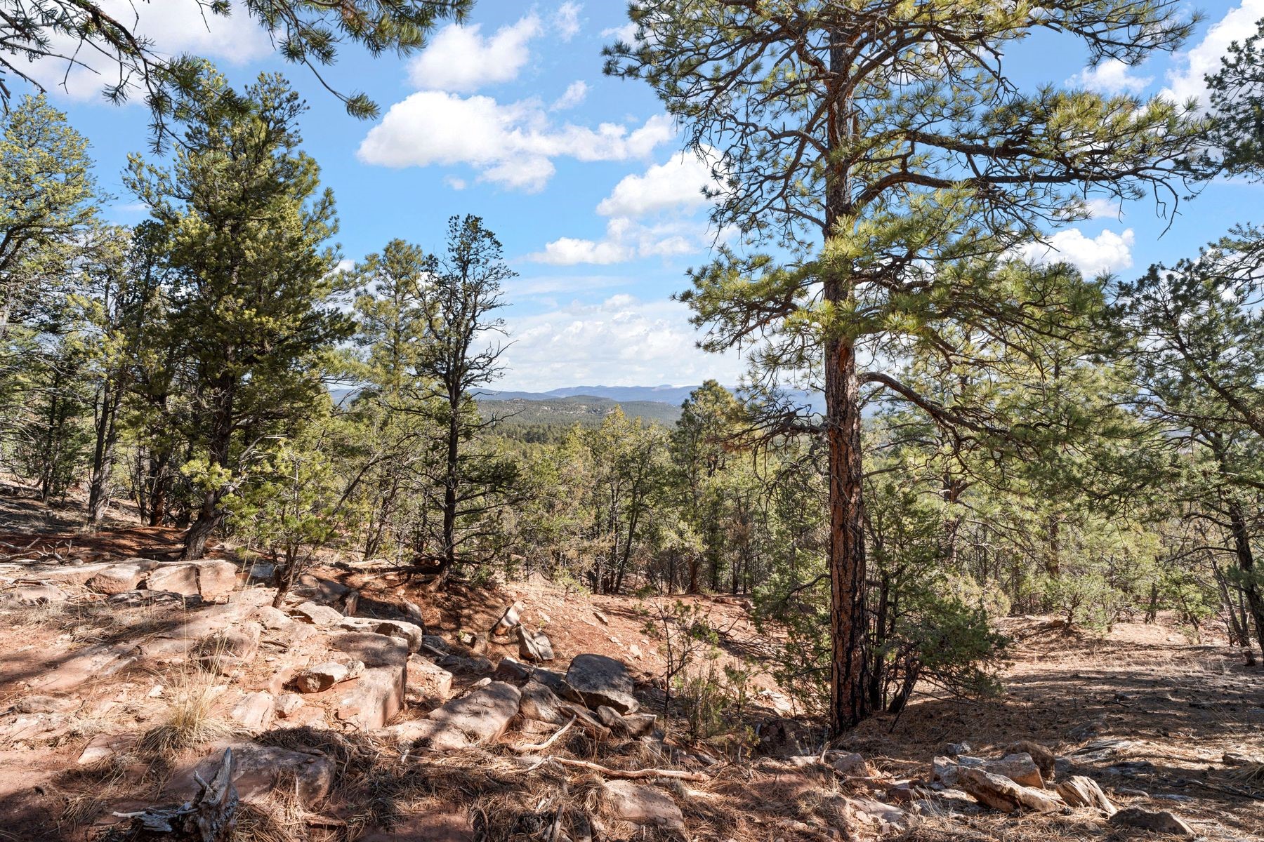 Located at the base of Glorieta Mesa with stunning views of the Pecos Valley, this 6.93-acre lot is ready for your dream home and horses! Level terrain makes for an optimal building site surrounded by majestic Ponderosa pines, fir, and pion trees. This serene property borders national forest land, offering direct access to endless outdoor adventures. A primitive driveway is already in place and an existing septic system, evaluated in 2021, adds to the property's readiness for development. Just 25 minutes from Santa Fe this lot offers the perfect blend of privacy and convenience for a new homeowner!