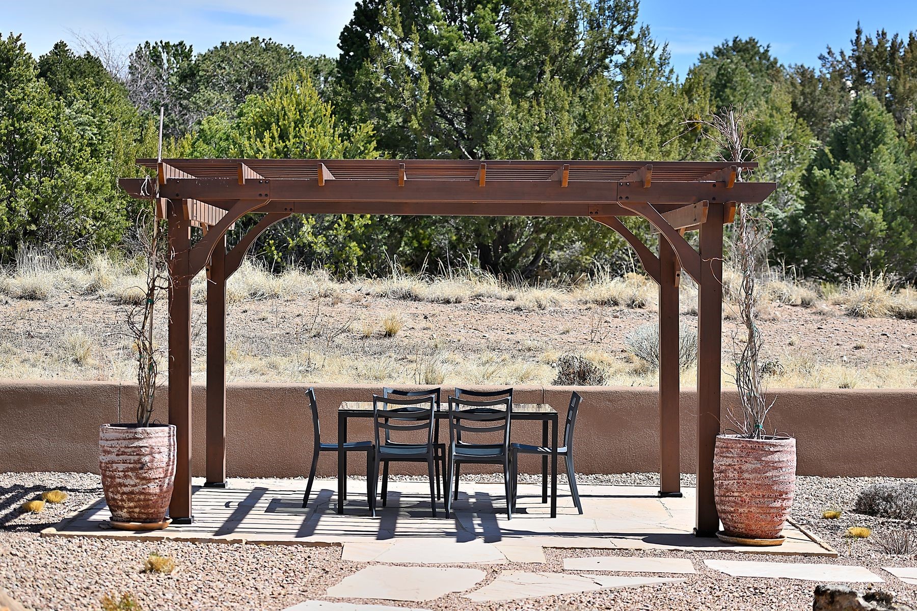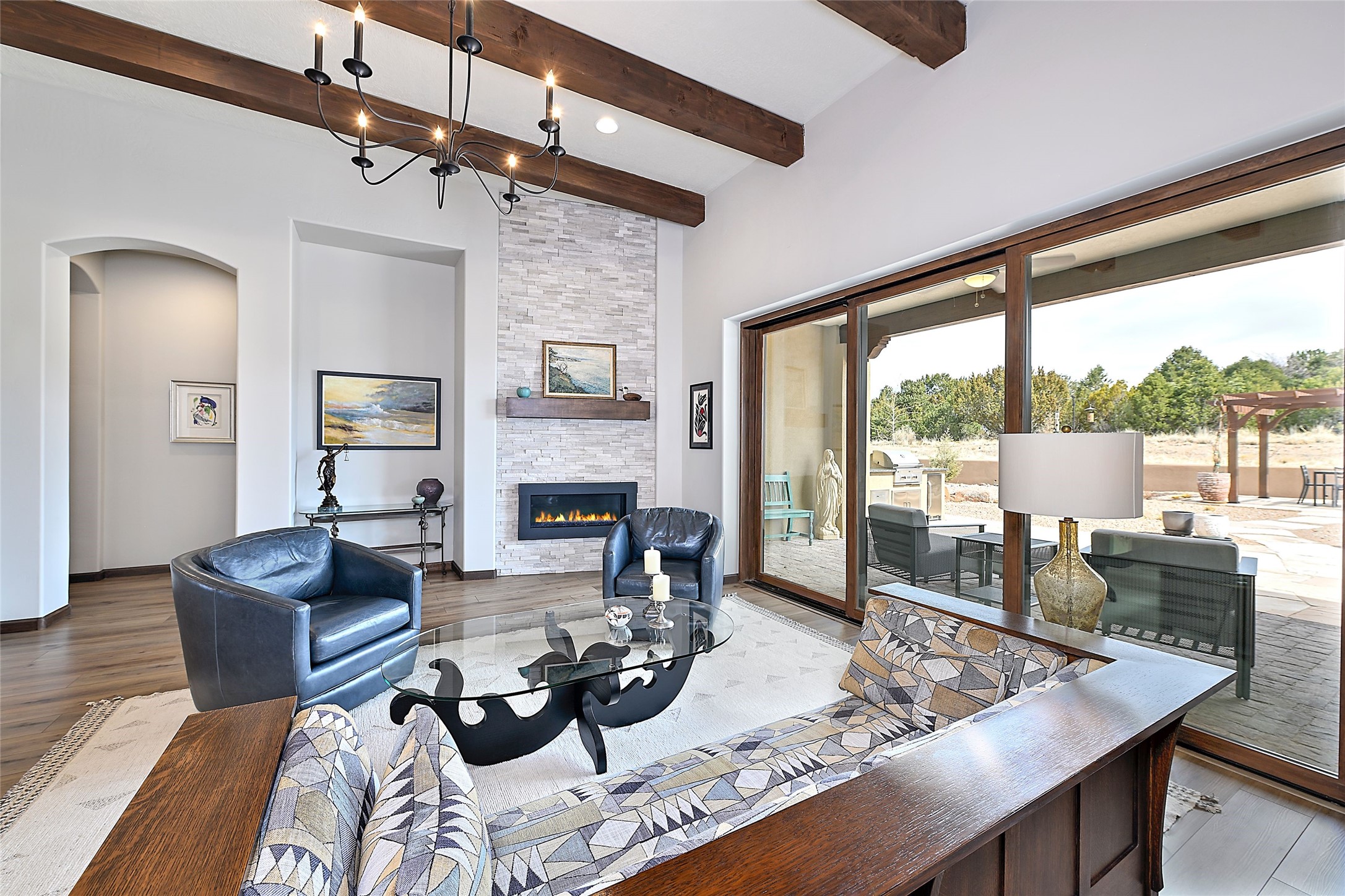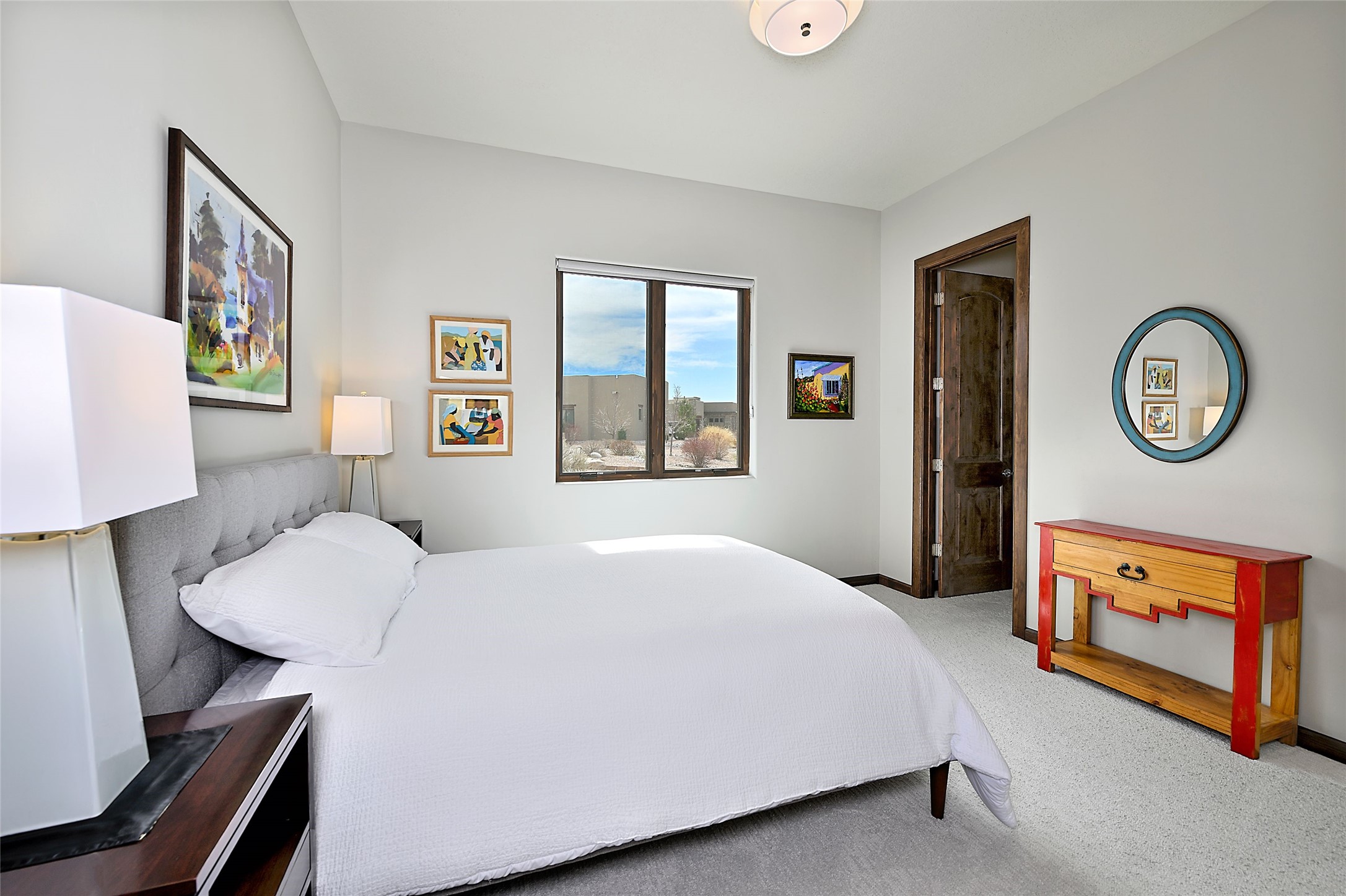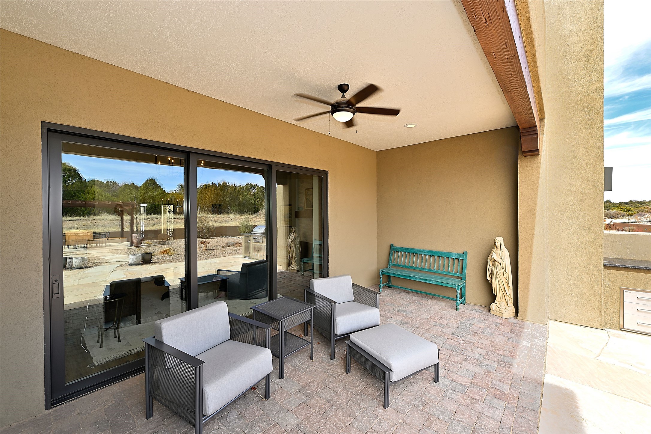 Welcome to this stunning 3,119 sq. ft. home, built in 2022, offering a perfect blend of modern elegance and thoughtful design. With an open floor plan and high ceilings, this home is both spacious and inviting. Located in the heart of the Las Terrazas enclavein Las Campanas, the neighborhood offers privacy, walking paths, security and 24/7 EMT service. The bright kitchen is a chef's dream, featuring white cabinets, quartzite countertops, stainless steel KitchenAid appliances, and a large island with seating. A breakfast nook and a large butler's pantry provide added convenience. The living room boasts a gas fireplace set into a beautiful stone wall, complemented by a wall of sliding doors that seamlessly open to the outdoor covered patio. Beyond, a professionally landscaped yard complete with outdoor kitchen, pergola, water feature, and rose arbor creates a beautiful private oasis. A formal dining room, located just off the living room, provides an elegant space for entertaining. A large library/office offers a perfect workspace. The home features three bedrooms and 3.5 bathrooms. The primary suite, set in its own private wing, includes a luxurious bath with a walk-in shower and a soaking tub. A guest bedroom with an en-suite bath and den/sitting area is currently used as a studio. This exceptional home combines comfort and sophistication--ideal for both everyday living and entertaining.