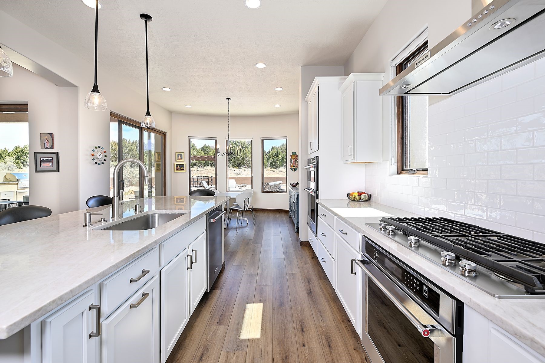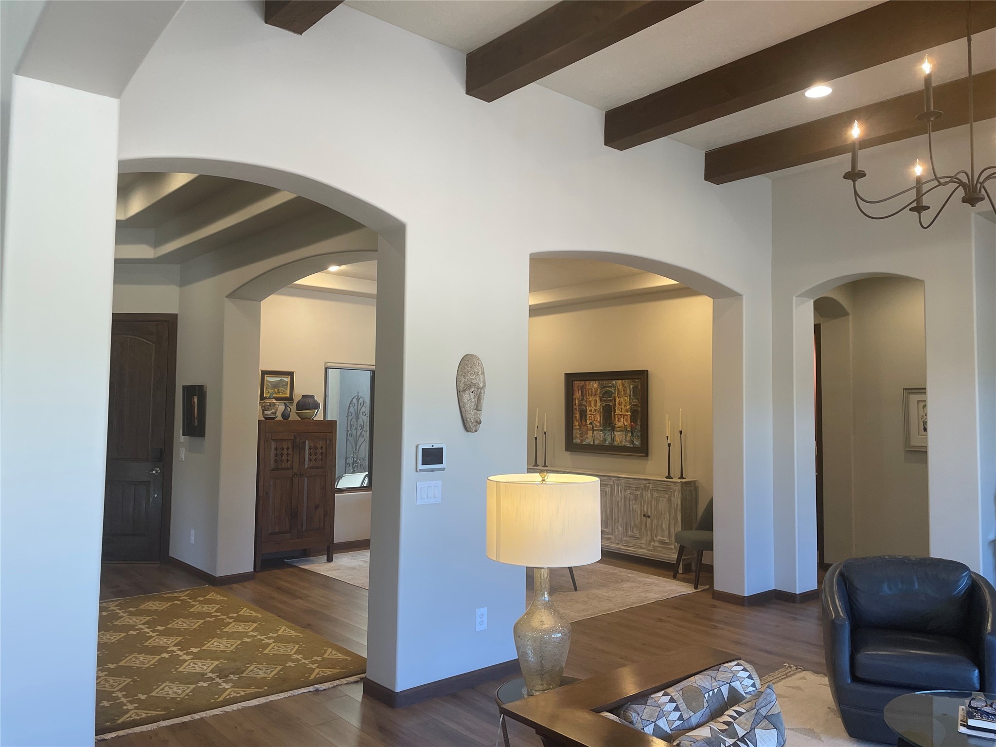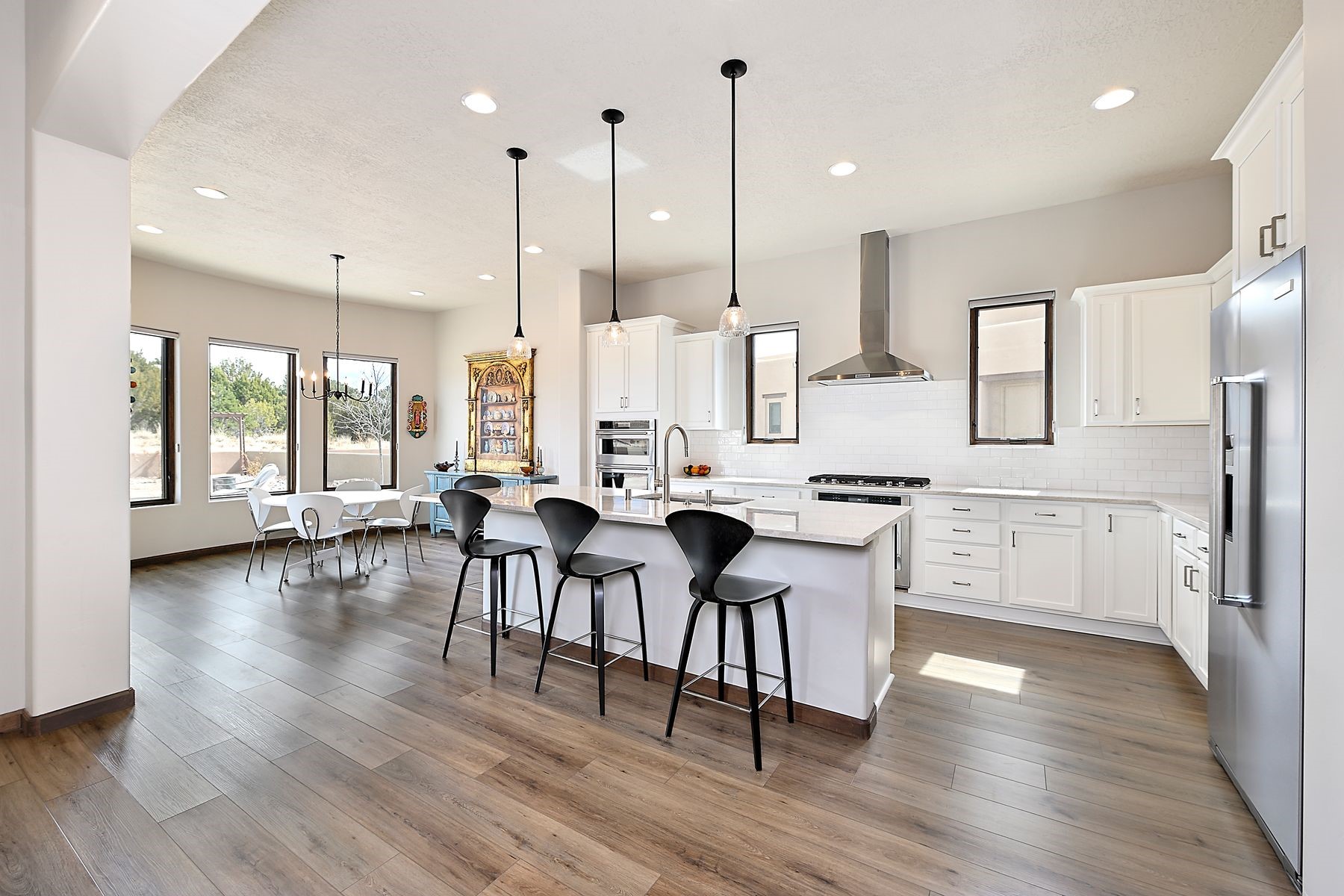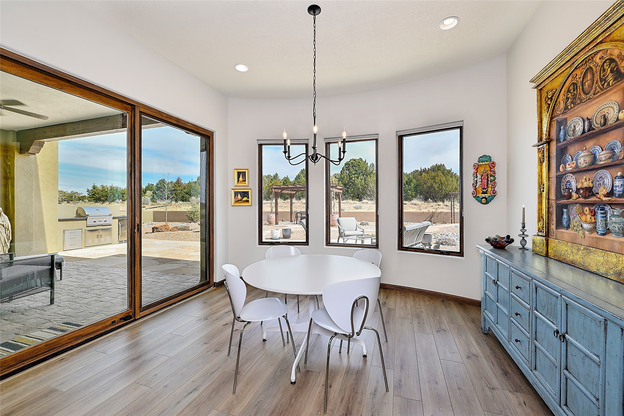 Welcome to this stunning 3,119 sq. ft. home, built in 2022, offering a perfect blend of modern elegance and thoughtful design. With an open floor plan and high ceilings, this home is both spacious and inviting. Located in the heart of the Las Terrazas enclavein Las Campanas, the neighborhood offers privacy, walking paths, security and 24/7 EMT service. The bright kitchen is a chef's dream, featuring white cabinets, quartzite countertops, stainless steel KitchenAid appliances, and a large island with seating. A breakfast nook and a large butler's pantry provide added convenience. The living room boasts a gas fireplace set into a beautiful stone wall, complemented by a wall of sliding doors that seamlessly open to the outdoor covered patio. Beyond, a professionally landscaped yard complete with outdoor kitchen, pergola, water feature, and rose arbor creates a beautiful private oasis. A formal dining room, located just off the living room, provides an elegant space for entertaining. A large library/office offers a perfect workspace. The home features three bedrooms and 3.5 bathrooms. The primary suite, set in its own private wing, includes a luxurious bath with a walk-in shower and a soaking tub. A guest bedroom with an en-suite bath and den/sitting area is currently used as a studio. This exceptional home combines comfort and sophistication--ideal for both everyday living and entertaining.