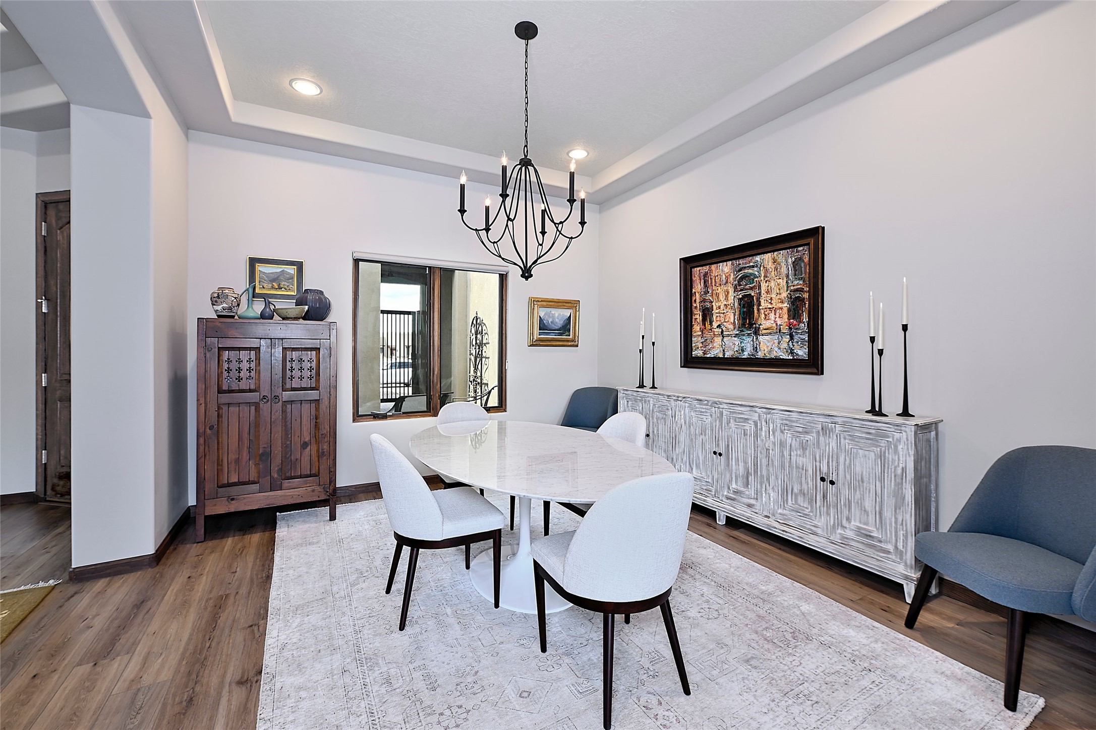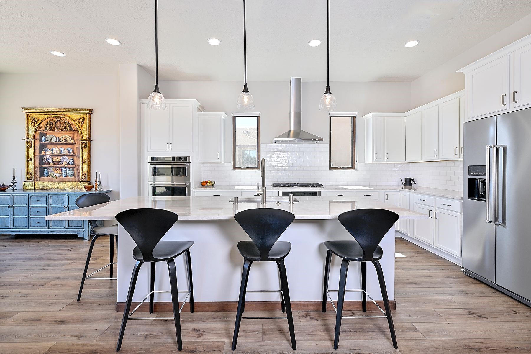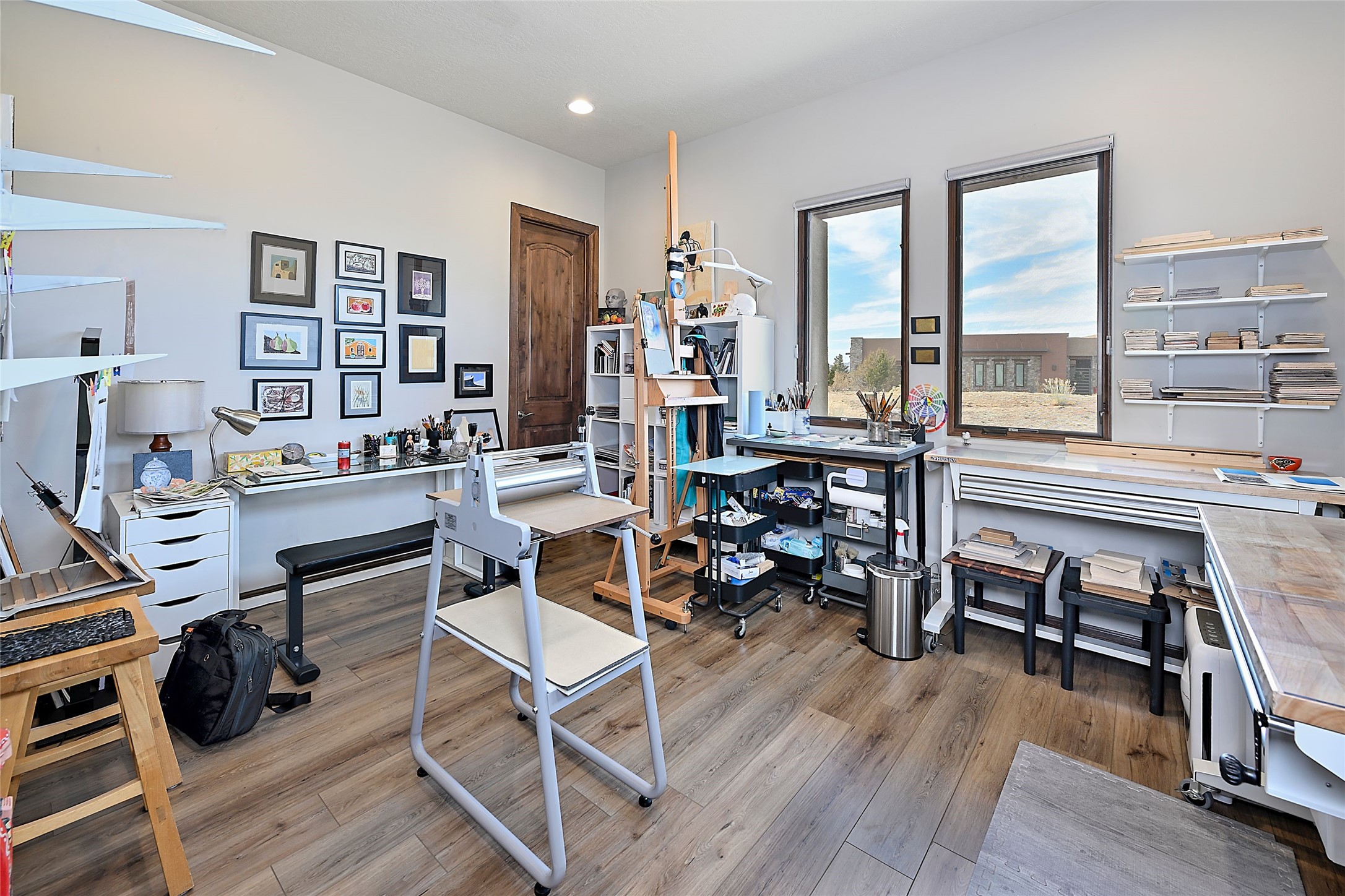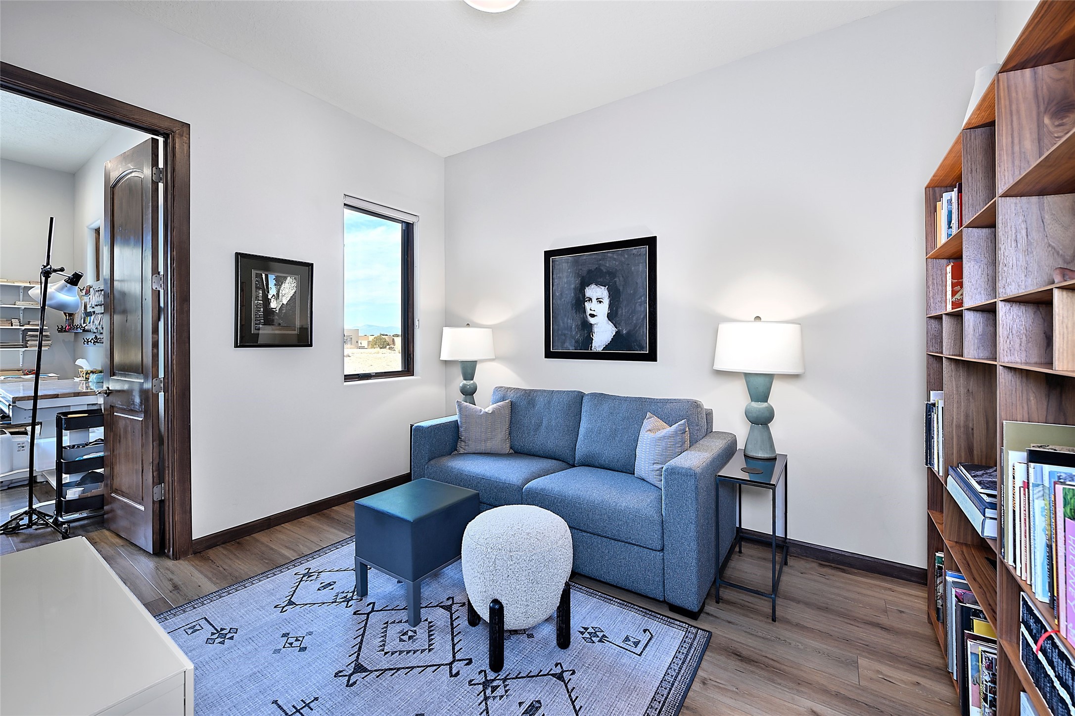 Welcome to this stunning 3,119 sq. ft. home, built in 2022, offering a perfect blend of modern elegance and thoughtful design. With an open floor plan and high ceilings, this home is both spacious and inviting. Located in the heart of the Las Terrazas enclavein Las Campanas, the neighborhood offers privacy, walking paths, security and 24/7 EMT service. The bright kitchen is a chef's dream, featuring white cabinets, quartzite countertops, stainless steel KitchenAid appliances, and a large island with seating. A breakfast nook and a large butler's pantry provide added convenience. The living room boasts a gas fireplace set into a beautiful stone wall, complemented by a wall of sliding doors that seamlessly open to the outdoor covered patio. Beyond, a professionally landscaped yard complete with outdoor kitchen, pergola, water feature, and rose arbor creates a beautiful private oasis. A formal dining room, located just off the living room, provides an elegant space for entertaining. A large library/office offers a perfect workspace. The home features three bedrooms and 3.5 bathrooms. The primary suite, set in its own private wing, includes a luxurious bath with a walk-in shower and a soaking tub. A guest bedroom with an en-suite bath and den/sitting area is currently used as a studio. This exceptional home combines comfort and sophistication--ideal for both everyday living and entertaining.