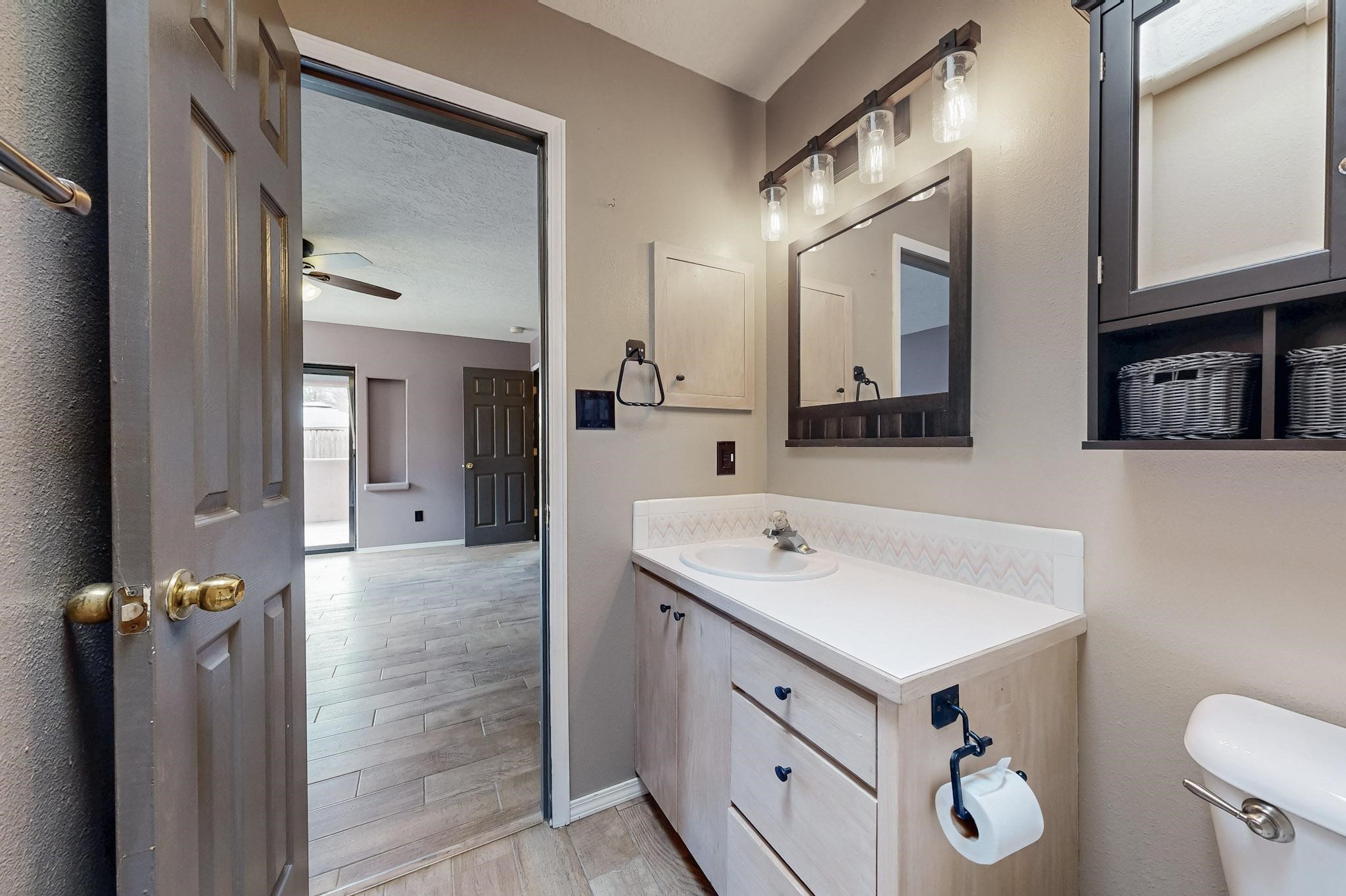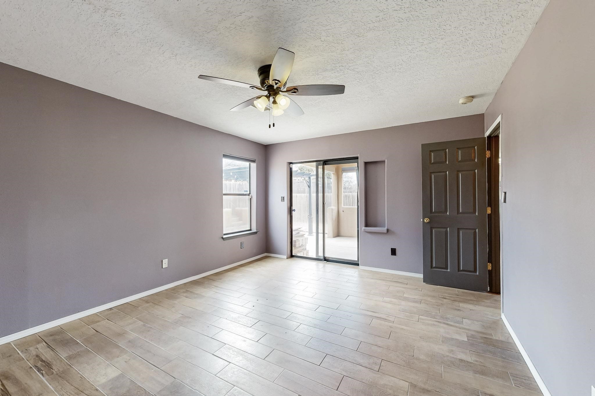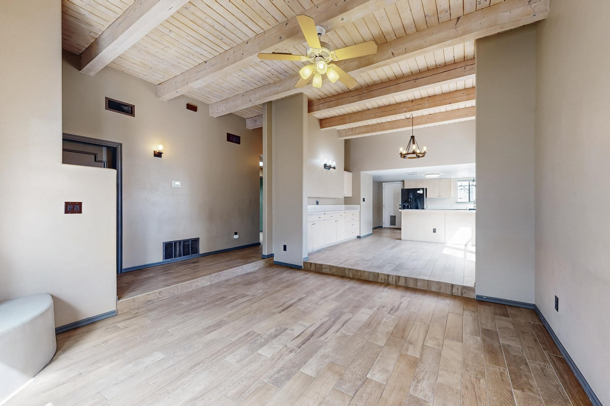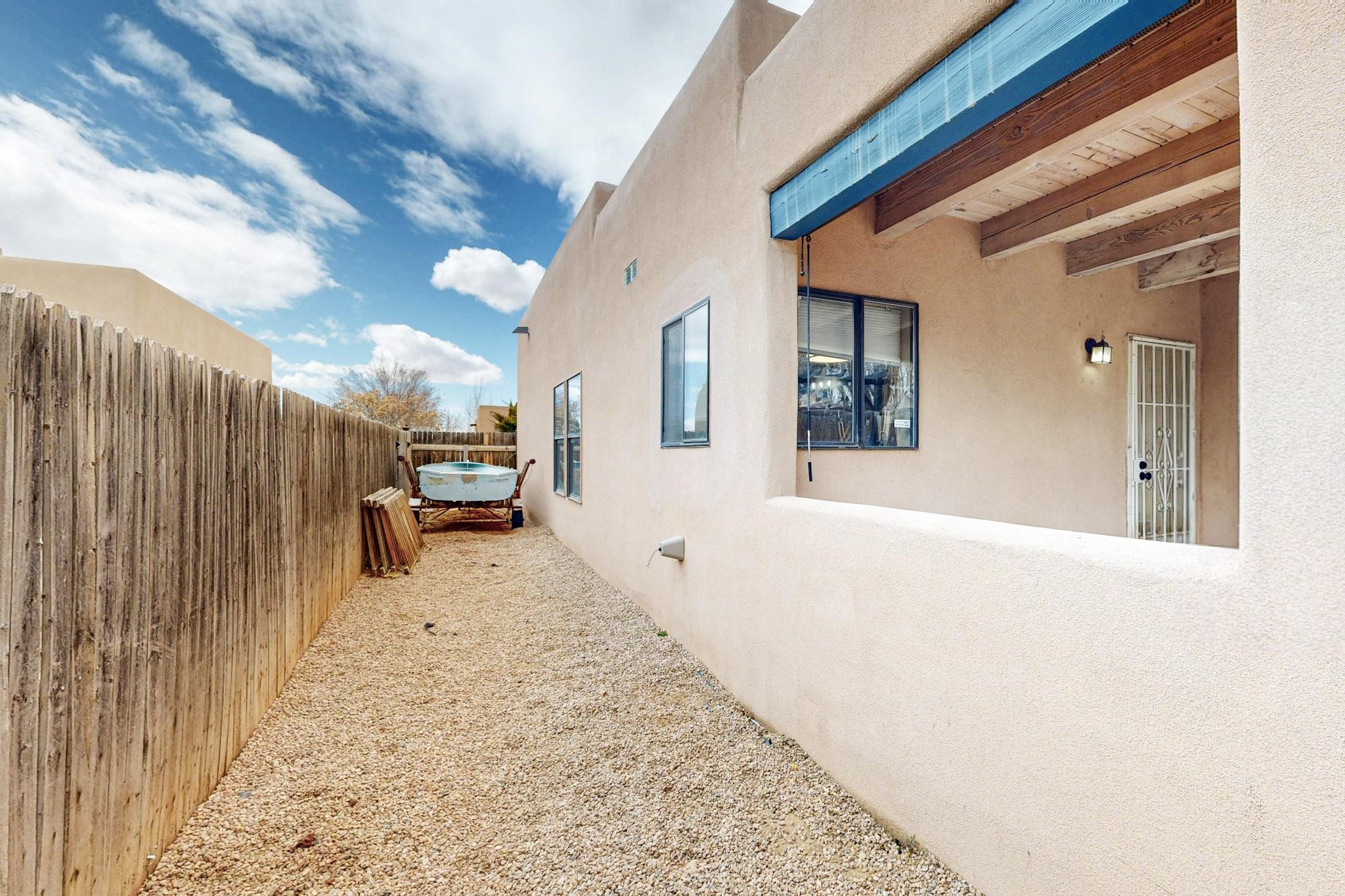 Really nice 3 bedroom 2 bath one story home on a quiet part of the Las Acequias subdivision with several recent updates. The house has an open kitchen, dinning, and living area with a kiva wood burning fireplace for those family and friends gatherings. Nice separation of bedrooms and baths with a good sized back yard with a covered porch and raised beds for gardening and fruit trees that has endless possibilities. Close to a nice park, shopping, schools and I-25 and 599 for an easy commute. Home has central air conditioning which is rare in this neighborhood, a tankless water heater and two car garage. All tile floors and recent custom interior paint make this home move in ready. Priced to sell in this competitive market with so few nice homes in this price range. Easy to show, come see it soon. It won't last long.