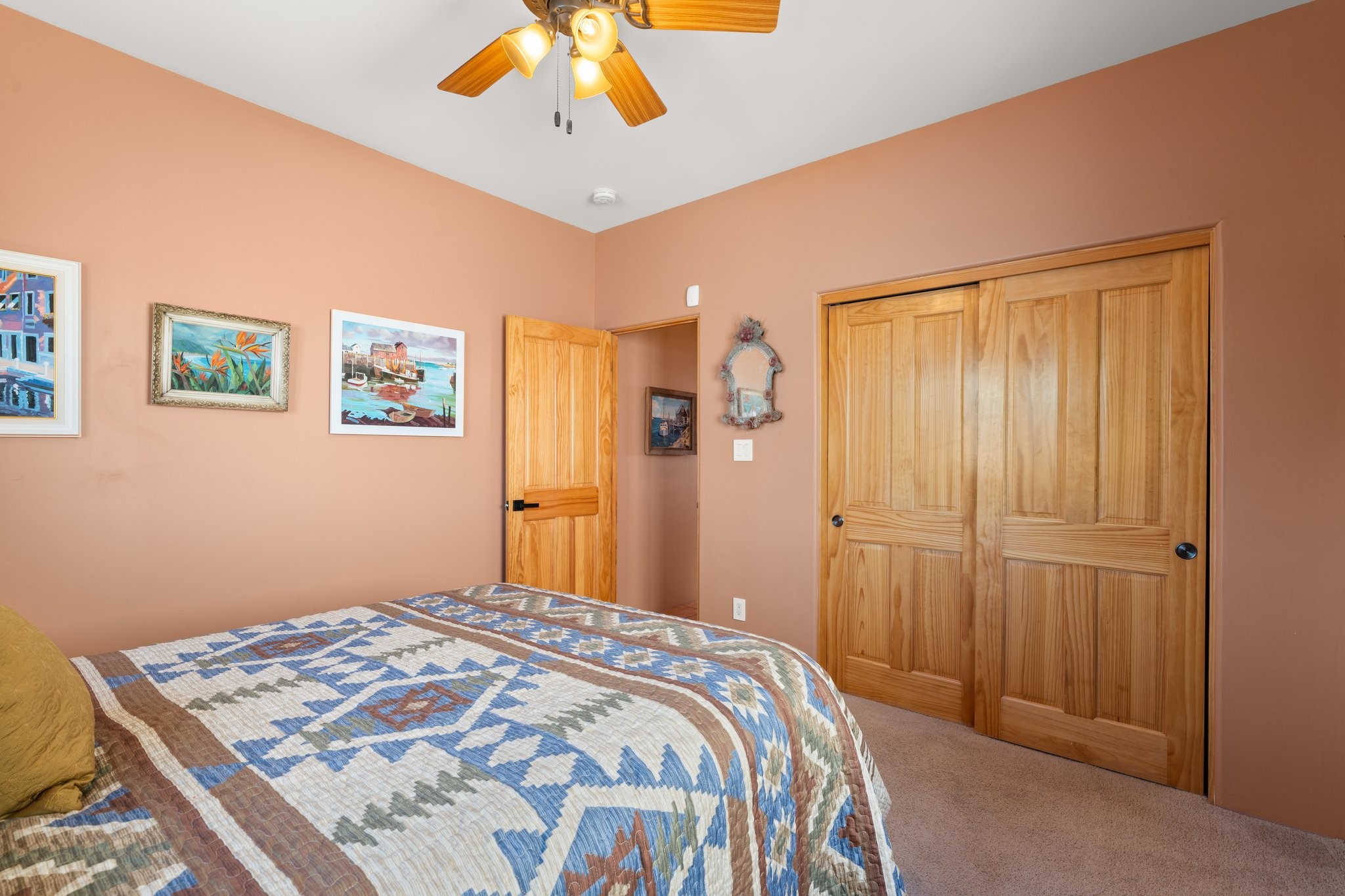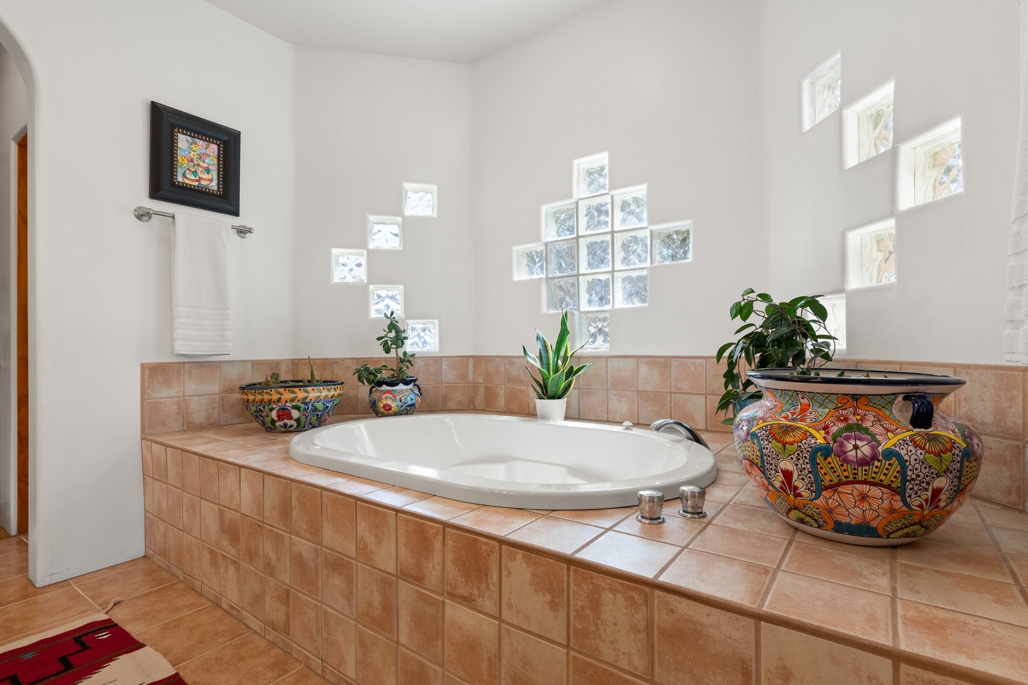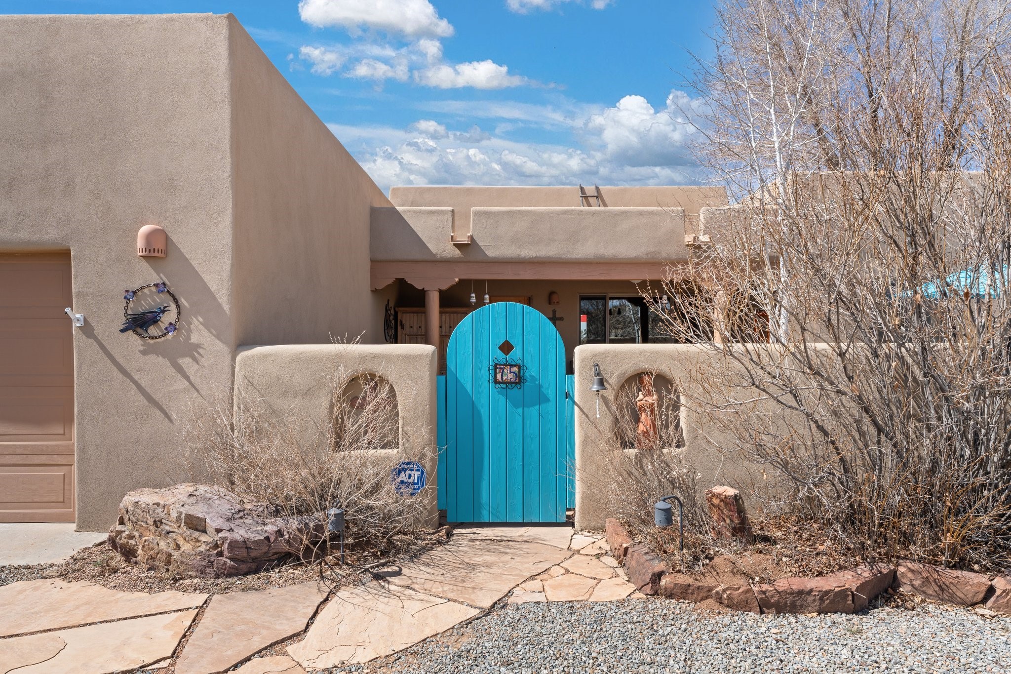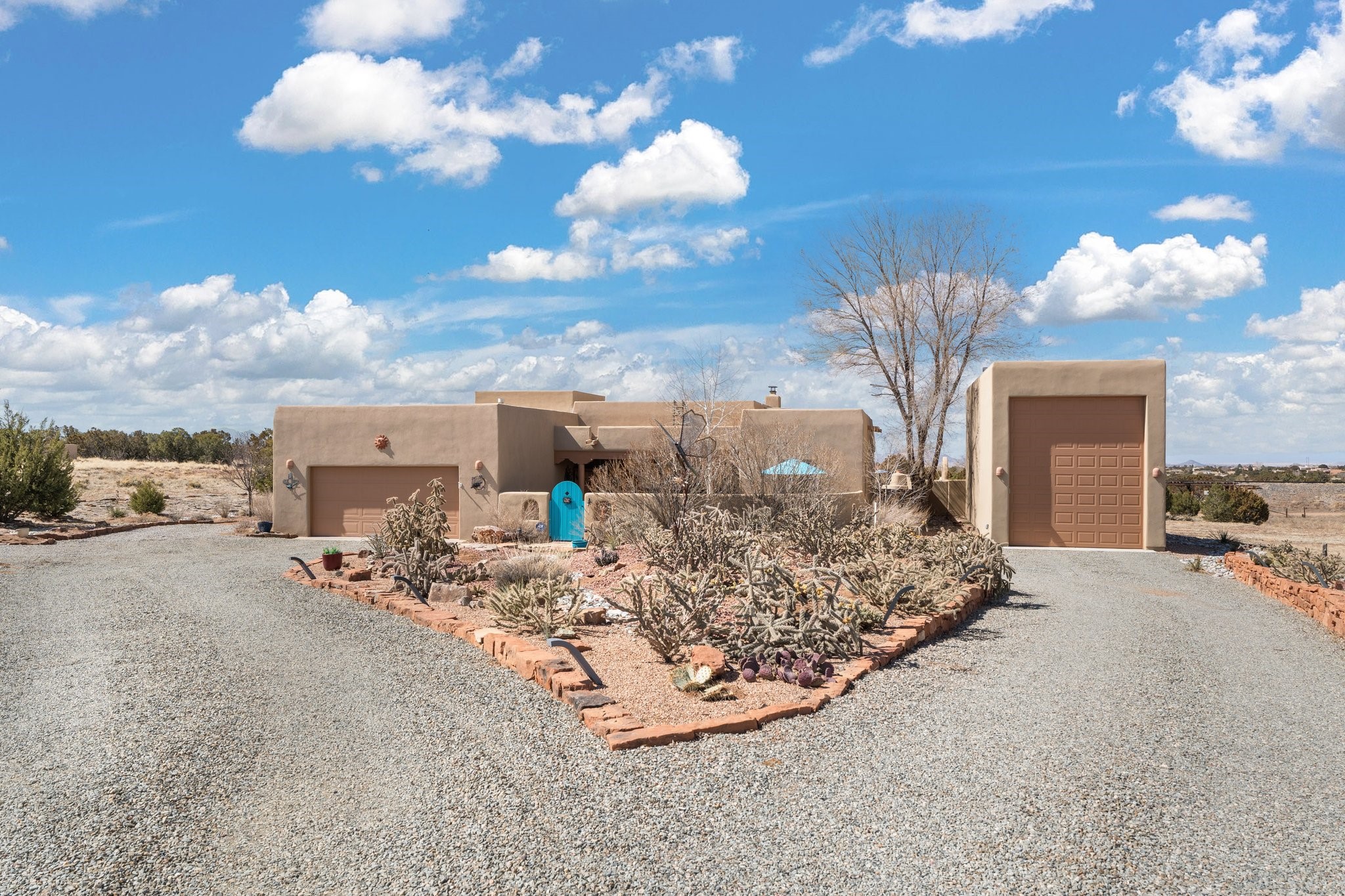 TALK ABOUT HAVING IT ALL!! This Eldorado beauty has wonderful mountain views and extraordinary outdoor spaces with hot tub, roof-top deck, built-in bar and BBQ, kiva fireplace, sun shades and a number of entertaining and seating options and a Bocce Ball court!. Kitchen features under cabinet lighting, hickory cabinetry, great storage, stainless appliances (range has never been used) and built-in desk area. Walk-in pantry has exceptional shelving and room for small appliances. Primary bedroom has viga ceilings, kiva fireplace and doors to rear portal and a library/media room/office is attached. A cedar closet and generous walk-in closet with drawers and shelves. Primary bath has double sinks, large jetted tub and separate shower. Silicone coating on roof in 2021 - six years left on the transferrable warranty. Single-level, no interior steps, in-floor natural gas radiant heat and two evaporative coolers. Sellers use Xfinity for internet. Eye On Water leak detection system through the Eldorado Water Dept. Whole house water filtration. Oversized, finished 2-car garage with overhead storage and lots of cabinets. Heated RV garage is 15 x 40 with 16' ceiling. Three kiva fireplaces. Proper laundry room with abundant storage. ADT alarm system is transferrable. Some outdoor furnishings are conveying with the property. LIST OF IMPROVEMENTS IN SUPPLEMENTS.