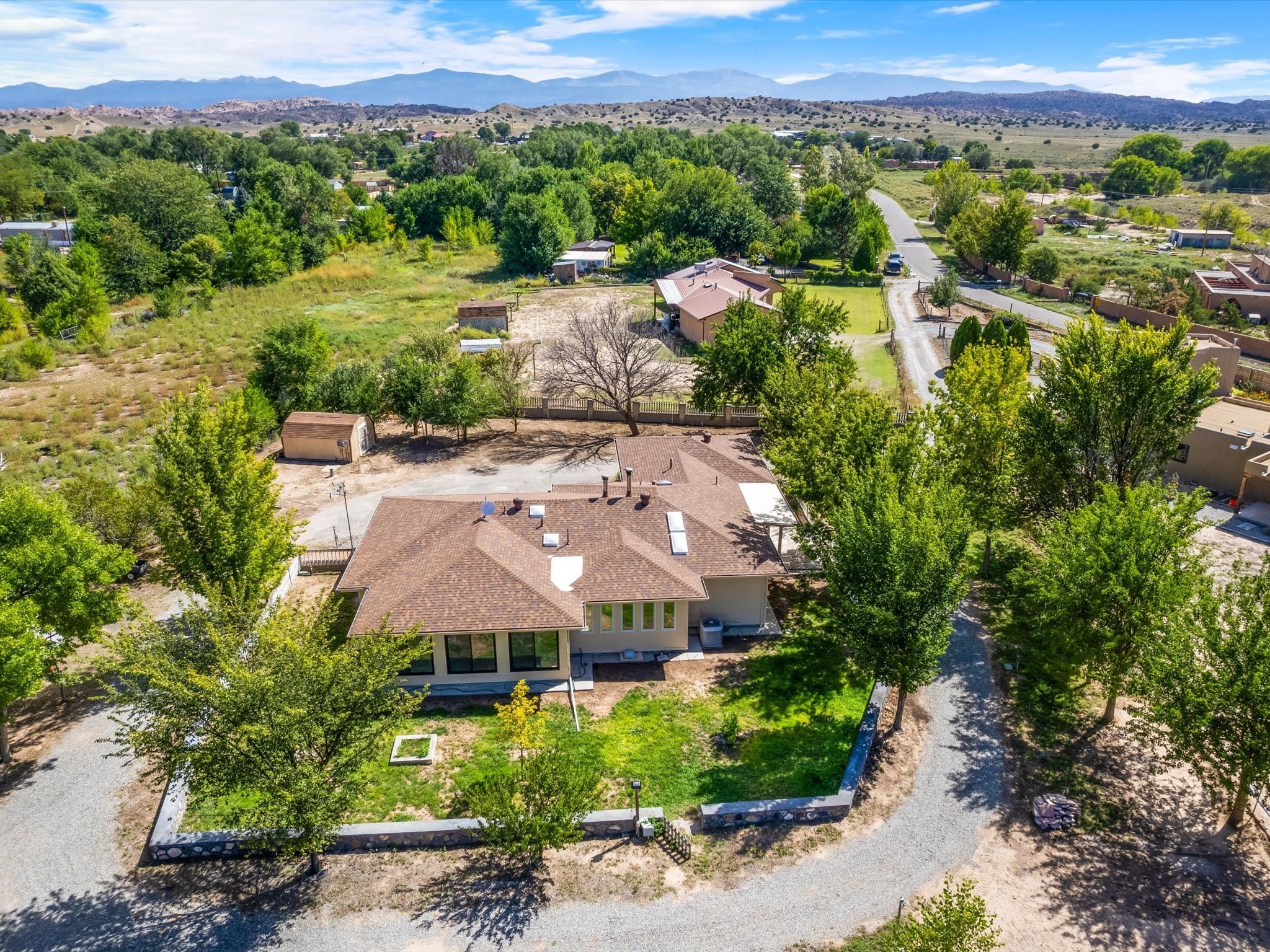Discover this charming 4-bedroom, 3-bath home nestled in the peaceful community of La Mesilla. Situated on a spacious .75-acre lot, this property offers privacy, natural beauty, and incredible versatility. Move-in ready! Freshly updated with new interior and exterior paint and a new roof in 2024, this home is ready for its next owner. A bright, enclosed sunroom provides year-round enjoyment, while the backyard boasts stunning views of Black Mesa. Mature landscaping, fruit trees, and an adjacent arroyo enhance the sense of seclusion and connection to nature. This property is designed for convenience and flexibility, featuring an RV carport, two additional carports, RV hookups, and a spacious storage shed. Water rights allow for lush landscaping, while a dedicated workshop, extra storage, and a media room offer plenty of space for hobbies or creative projects. A separate lower-level entry adds versatility--perfect for a guest suite, studio, private office, or rental opportunity. Discover the ideal mix of comfort, space, and scenery in La Mesilla--conveniently located near Los Alamos, Espaola, and Santa Fe!