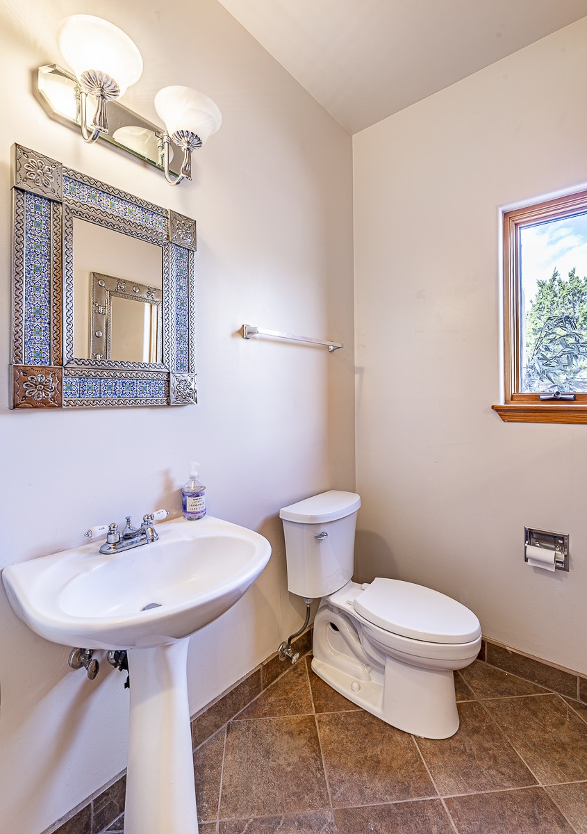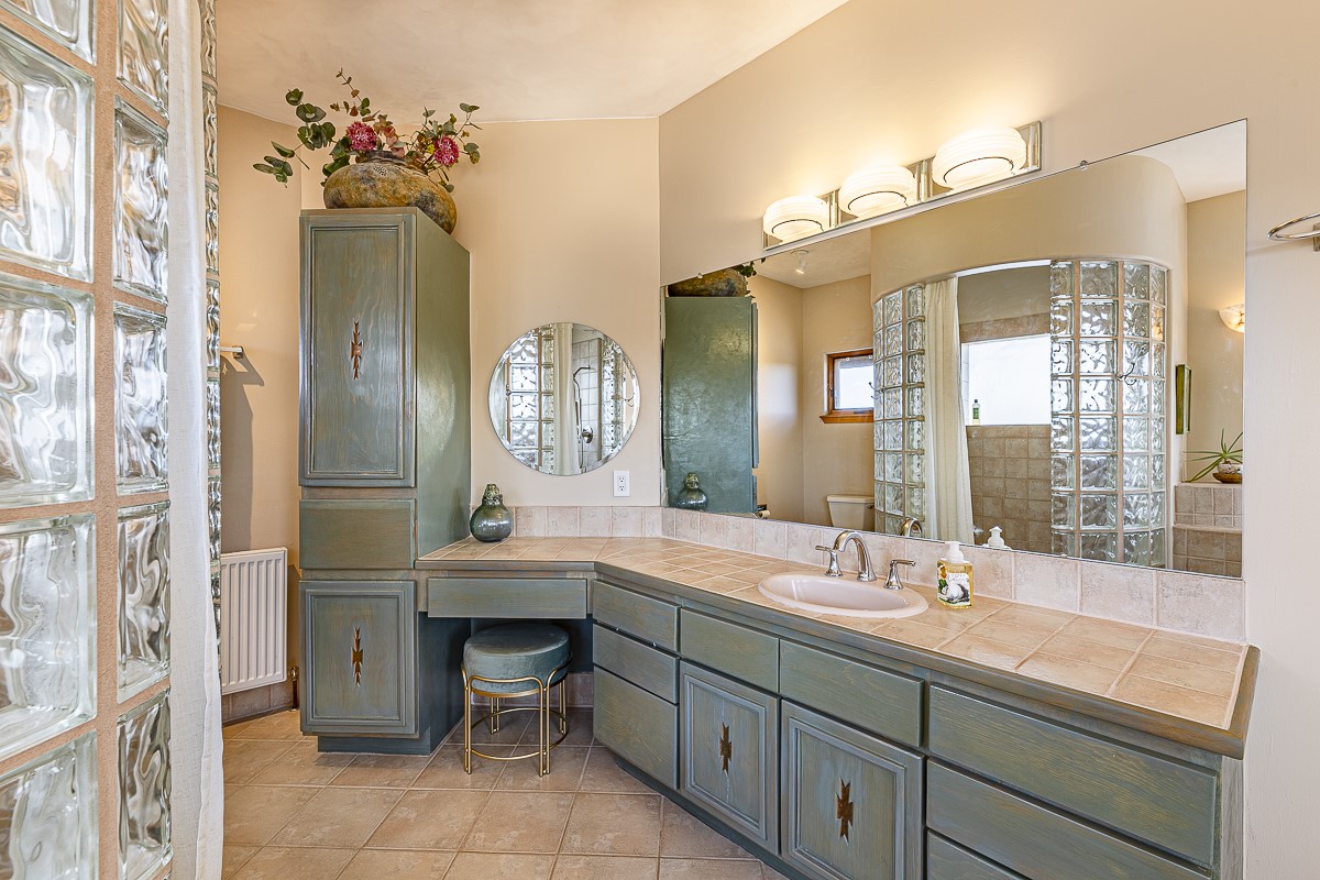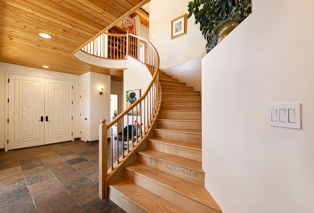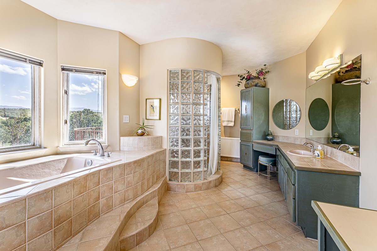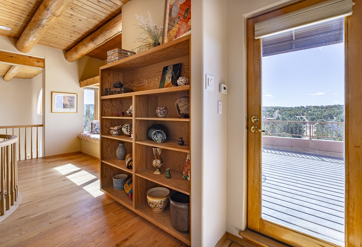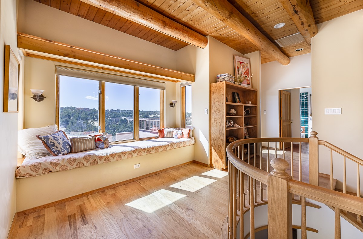 Welcome to the tranquil community of La Mariposa - at a great price! This light filled home has been extensively updated with beautiful, new hardwood floors, new lighting, a hot water on demand water heater, and hot water baseboard heat to the studio. The primary bedroom suite offers a private patio with stunning views of the Sangre de Cristo Mountains. With outdoor patios throughout, this home offers lots of privacy and serenity. The open concept kitchen is quite spacious for gatherings, with a large pantry and intimate seating areas. The back portal, located off of the dining room, is perfect for outdoor dining during the warm weather, with a water fountain nearby. The mature gardens surrounding the home are breathtaking in bloom and include mature apple, peach, cherry, and pear trees. There is also a greywater system for the landscaping. The heated studio is privately located off the garage with its own exterior entrances. There are no steps from the studio and throughout the first floor of the house. This home has lots to offer!