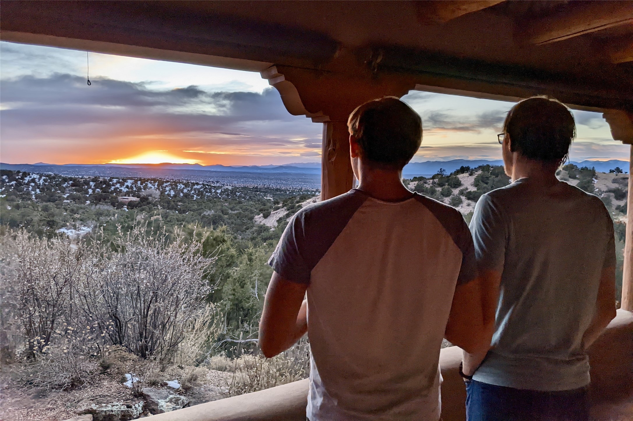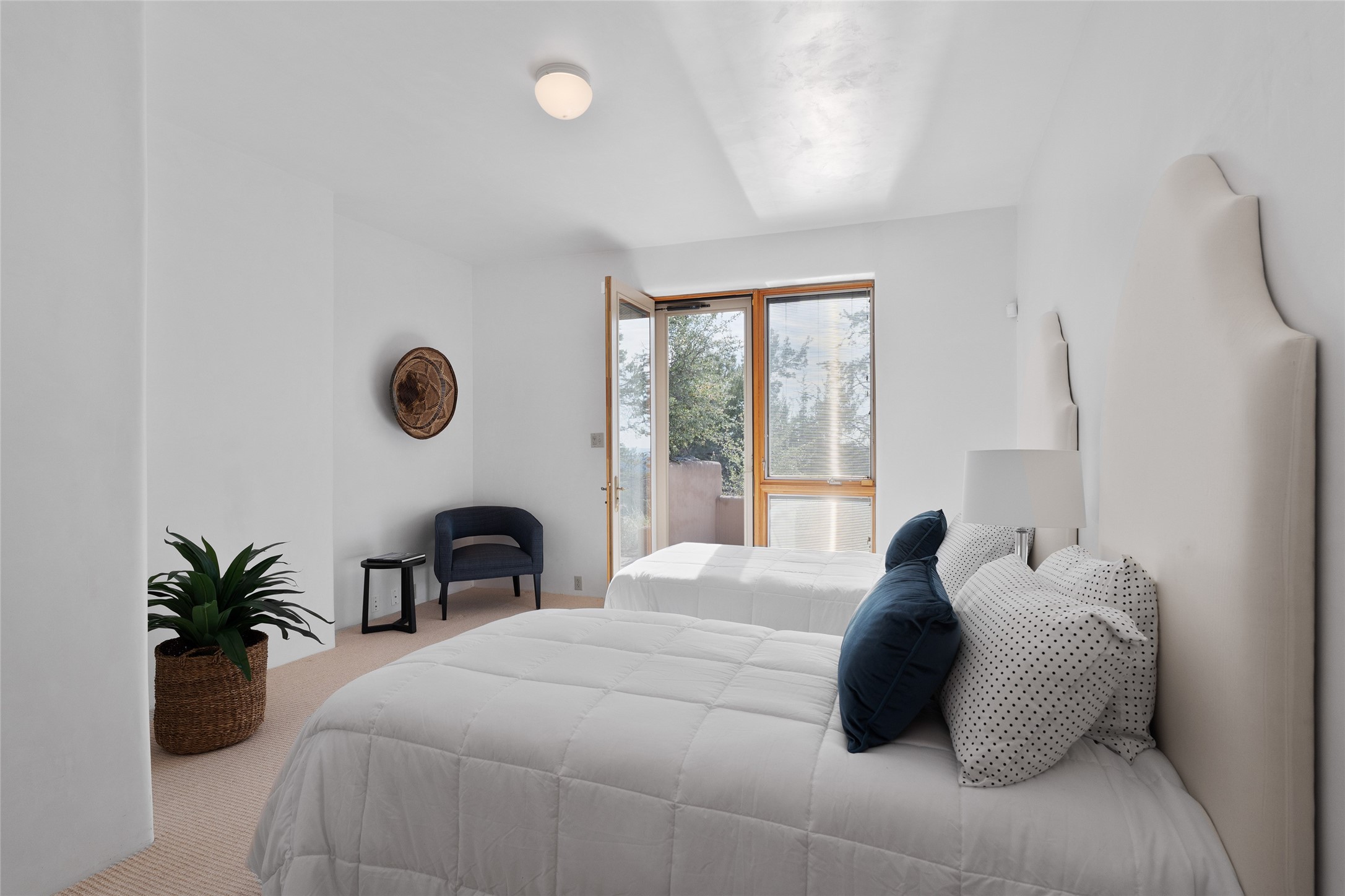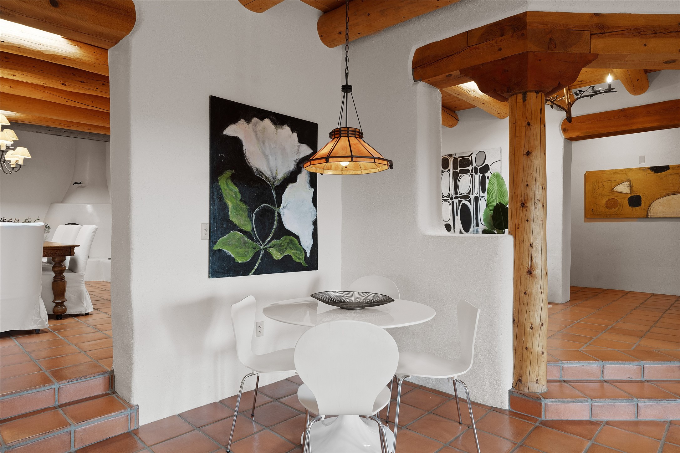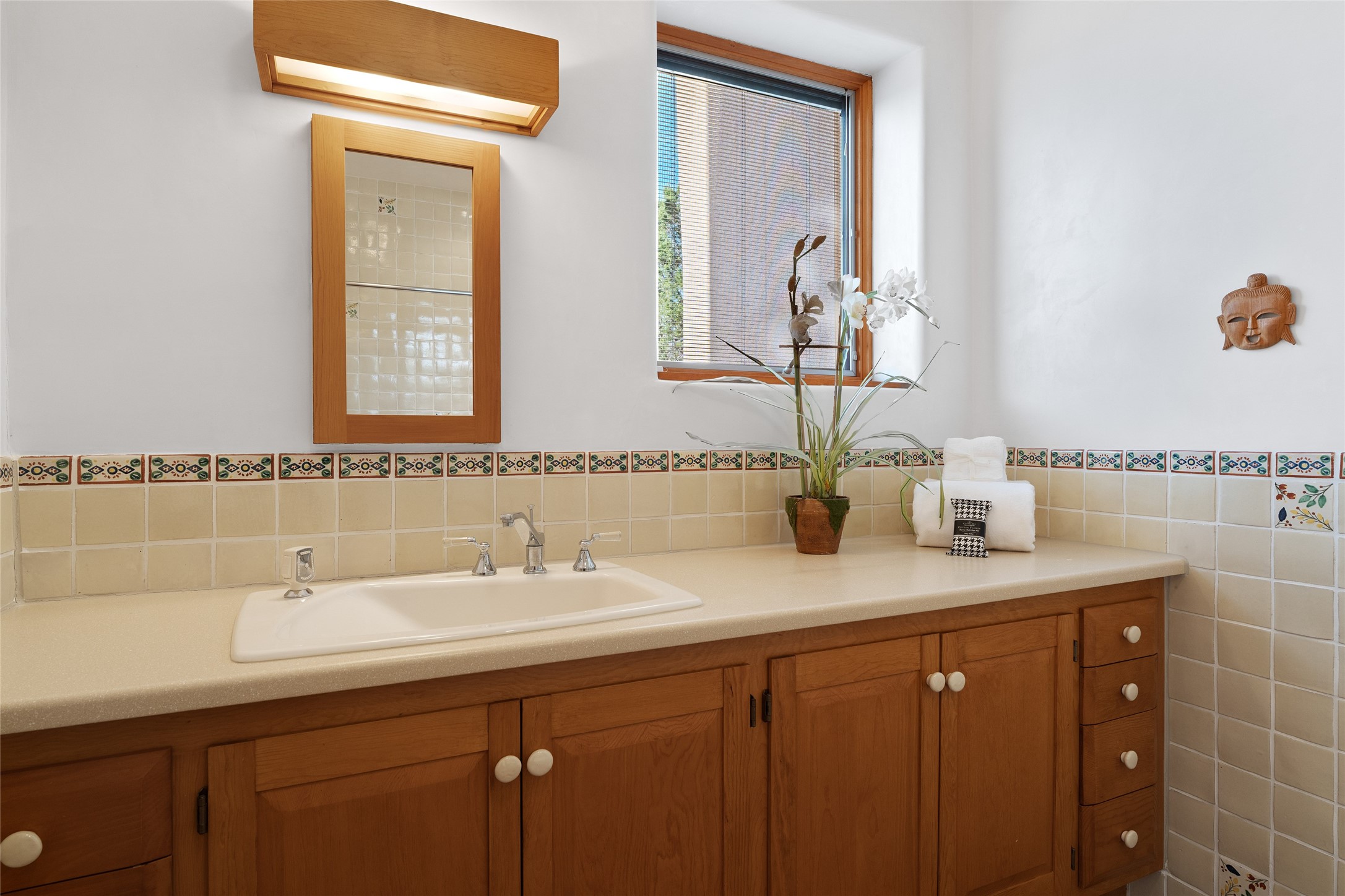 She said, " I want a gorgeous big house with room for all our family, with spaces for various activities, totally private on some land with fabulous views, and only about 15 minutes to the plaza." He replied, "Then let's live on Love Street, Camino Amor." Impressive construction, beautiful finishes, and thoughtful features for happy, comfortable living in beauty. Located in prestigious, Los Caminitos. A classic Santa Fe Style Hacienda sits atop a glorious ridgeline on 27 lush, private acres surrounded by luxurious green hills with views that go on forever and ever. Private. This is easy living, stylishly, with easy entertaining flowing through spacious rooms with high finished ceilings and all of the Santa Fe touches; vigas, corbels, lintels, nichos and bancos that enhance this happy ambience. 5 bedrooms suites a 6th powder room with a nice separation of spaces comfortably accommodate all your family and friends! Otherwise, most of your living is on the main floor! It is silent here...You can hear the cicadas and the bluebirds, and see millions of stars at night in the dark sky sitting on stone bancos around the stunning firepit. You can be alone with the universe here. This impeccably maintained home is move-in ready now as it is, or you could take it to the next level and create a showplace. As an owner in this lovely gated community of Los Caminitos, you will be a member of the private Los Caminitos Clubouse with pool, tennis, pickleball, barbecue facilities and private party house for members use. (Los Caminitos.com, for complete HOA information), A stones throw to the elegant Four Seasons Encantado Resort, and about 12 minutes to the plaza, you are sure to come back home to peace, serenity, and love here on Camino Amor.