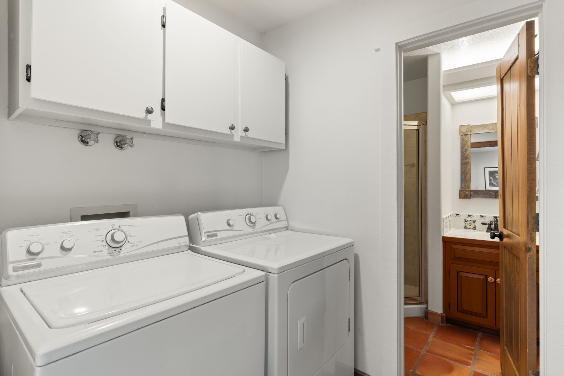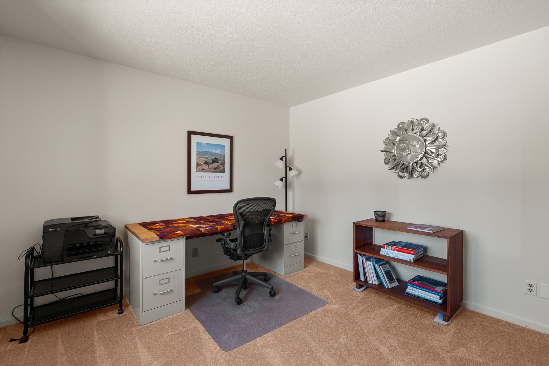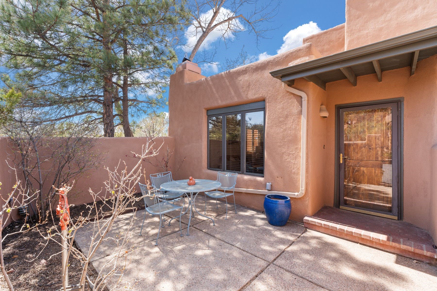 Located in an ideal location just minutes from the plaza, this well-maintained two-story home offers the perfect blend of convenience and comfort. Situated in a gated neighborhood and surrounded by mature trees, the property is close to top-rated restaurants, shopping, galleries, and scenic trails.Step inside to an inviting open layout where the kitchen, dining, and living areas flow seamlessly. A cozy fireplace in the living room enhances the warm ambiance. The home features an enclosed front courtyard, perfect for relaxation and privacy. A skylight in the stairwell brings in beautiful natural light, complementing the home's airy feel.Upstairs, you'll find two spacious bedrooms with brand-new carpet and a full bathroom. A bath is conveniently located on the main level. Storage is plentiful throughout the home, including in the attached one-car garage. Recent updates include a newer roof (2020 under 10-year warranty), new furnace, new AC, new hot water heater, and freshly redone stucco.Located near Fort Marcy Park and the Fort Marcy Rec Complex, this home offers easy access to outdoor recreation while being just moments from the heart of town. Don't miss this opportunity to own a well-maintained home in a prime Santa Fe location!