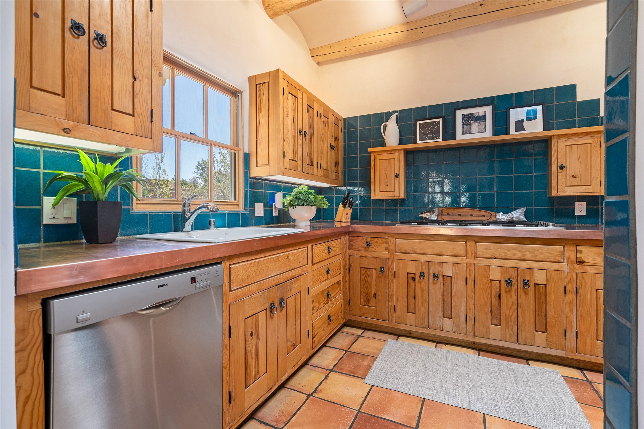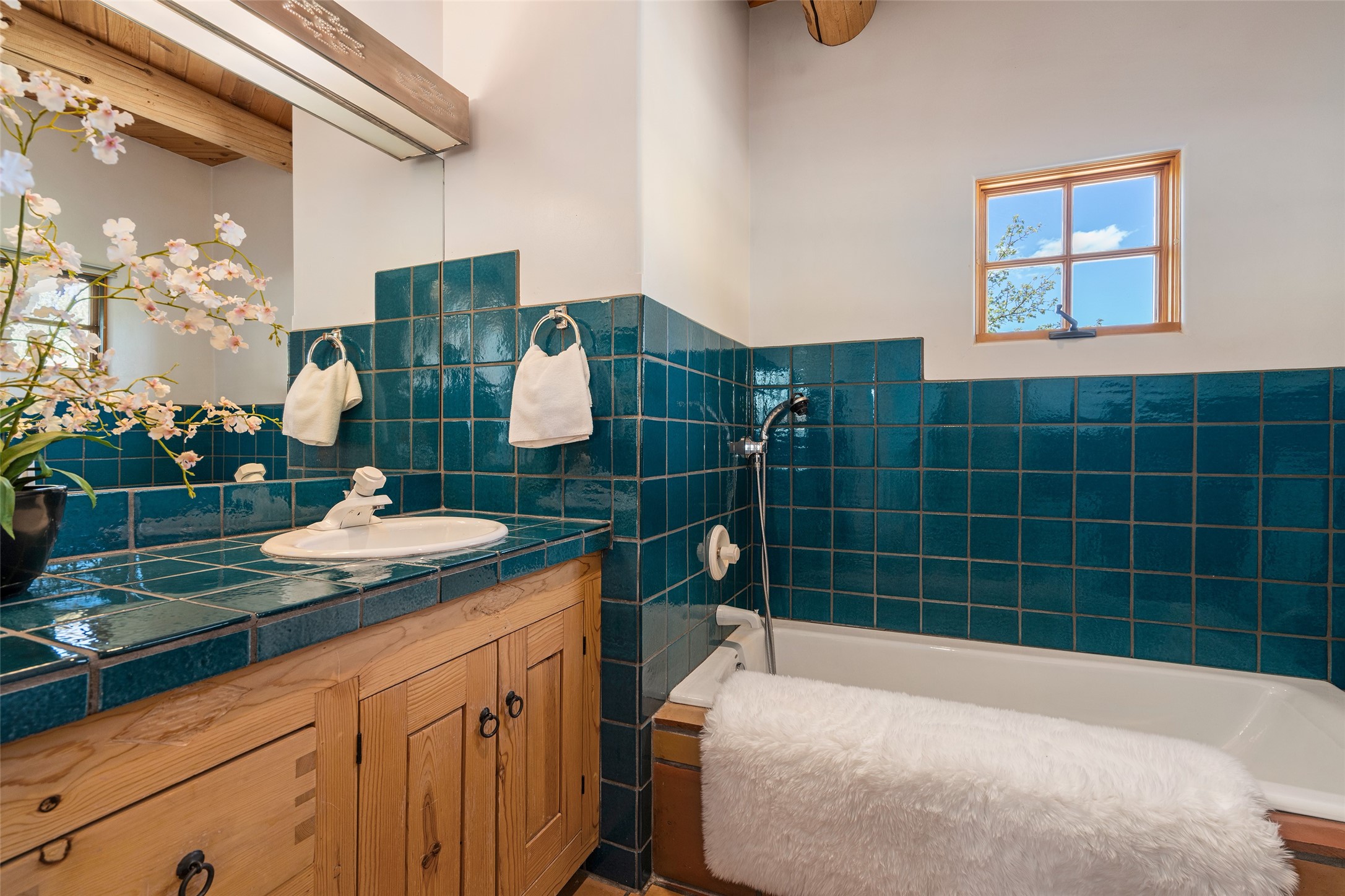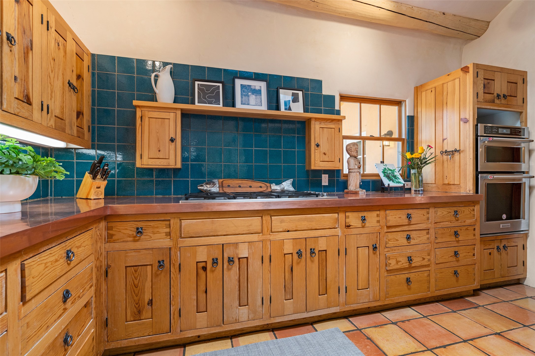 SECLUDED AT THE VERY END OF A LANE OFF GARCIA STREET THIS EASTSIDE SANTA FE HOME WITH AUTHENTIC CHARM & TIMELESS ELEGANCE HAS PHENOMENAL INDOOR/OUTDOOR ENTERTAINING SPACES COUPLED WITH A GARAGE AND PLENTY OF PRIVATE PARKING SO YOU CAN INVITE YOUR FRIENDS TO COME ENJOY TIME TOGETHER. Nestled in one of Santa Fe's most sought-after neighborhoods, just moments from the historic Plaza, this exceptional Eastside residence offers a blend of traditional Santa Fe style and refined comfort. With approximately 3,298 square feet in the main house and an additional 144 square feet in charming, attached studio, this two-story home is full of warmth, character, and rare privacy. Featuring 3 bedrooms and 4 bathrooms, the home is graced with classic Saltillo tile floors, coved ceiling treatments, and a seamless indoor-outdoor flow that celebrates the region's enchanting climate. The upstairs level offers a private retreat, ideal as a guest suite, complete with its own terrace. Outdoor living shines here - mature landscaping, a soothing water feature, a pergola-shaded grill area for al fresco dining, multiple patios, and second story terraces create the perfect setting for entertaining or quiet relaxation. Inside, both formal and informal dining areas cater to every occasion, while the attached studio offers flexible space for creativity or work. A 2-car garage, generous off-street parking, central heating and cooling, and close proximity to world-class dining, galleries, and cultural landmarks make this a rare Eastside offering. A true sanctuary in the heart of the city, this property captures the essence of Santa Fe living at its finest.