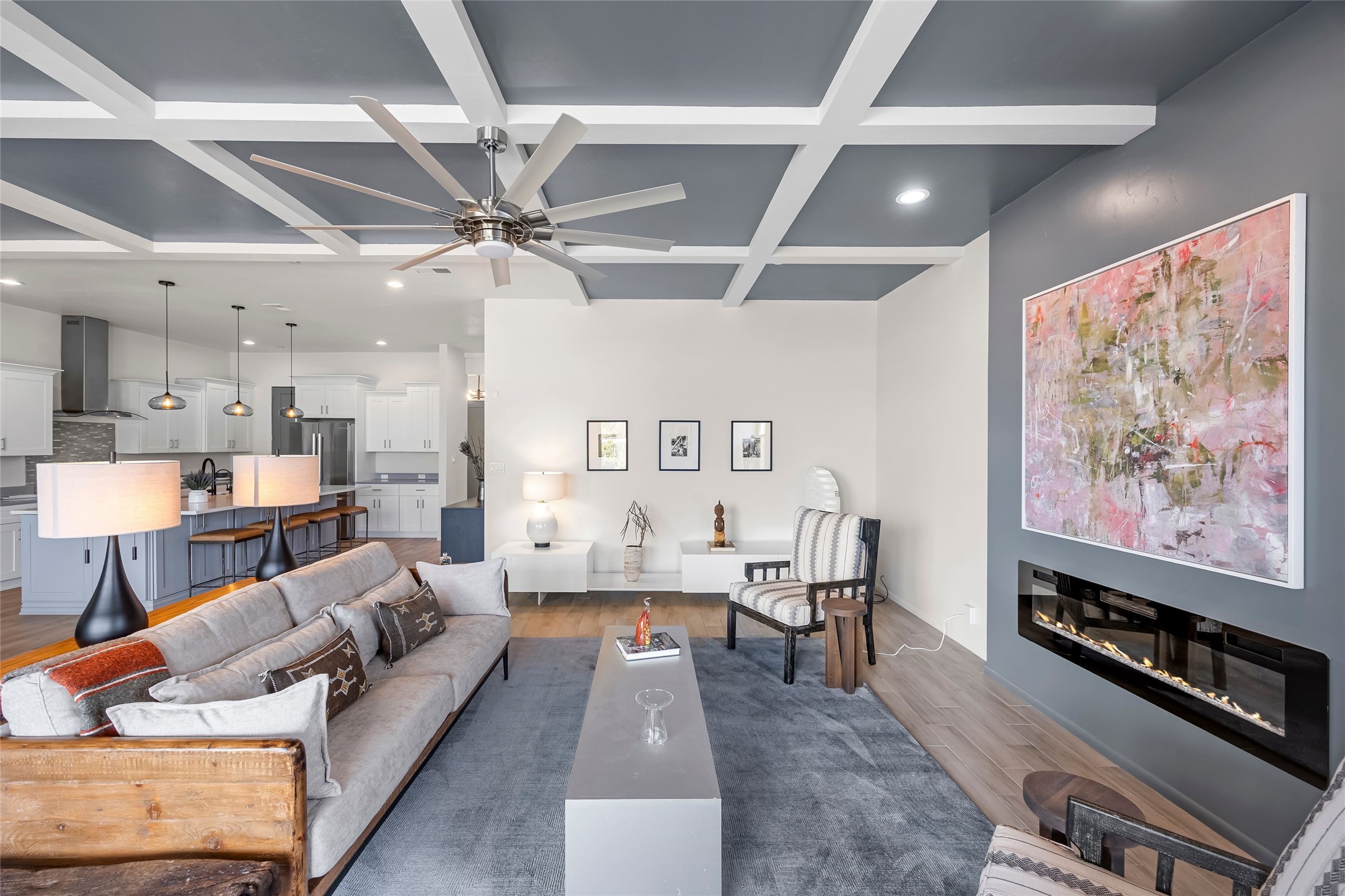 Welcome to 14 Plano Arbolito--where sleek contemporary design meets the serene beauty of Santa Fe's natural landscape. Perched on a half acre in the desirable Tano West neighborhood, this recently built, single-level home offers the perfect balance of luxury, comfort, and breathtaking views. This three-bedroom, three-bathroom residence boasts an open-concept floorplan designed for effortless living and entertaining. The expansive great room features soaring ceilings, a modern electric ambiance fireplace, and floor-to-ceiling windows that frame spectacular views of the Sangre de Cristo Mountains. The adjacent chef's kitchen is equipped with premium stainless-steel appliances, a generous island with counter seating, a walk-in pantry, and elegant finishes that blend form and function. Retreat to a tranquil owner's suite complete with outdoor access, a spa-like bathroom with a soaking tub, dual vanities, a spacious shower, and two oversized walk-in closets--one currently used as an office or yoga space. A separate guest wing includes two private bedrooms, one with its own entrance and en suite bath, perfect for visitors or extended stays. Step outside to a deep-covered portal with gas fireplace hookups and a custom fountain, ideal for enjoying Santa Fe's vivid sunsets and star-filled nights. The fully landscaped, xeriscape backyard opens to panoramic vistas and unmatched privacy. Additional highlights include an oversized three-car garage, a flexible bonus room off the entry, and many thoughtful upgrades--from whole-house air purification to premium lighting and smart home features. Only 20 minutes from the Plaza and nestled within a community known for its protected open space, 14 Plano Arbolito offers peace, luxury, and a front-row seat to Santa Fe's majestic beauty.