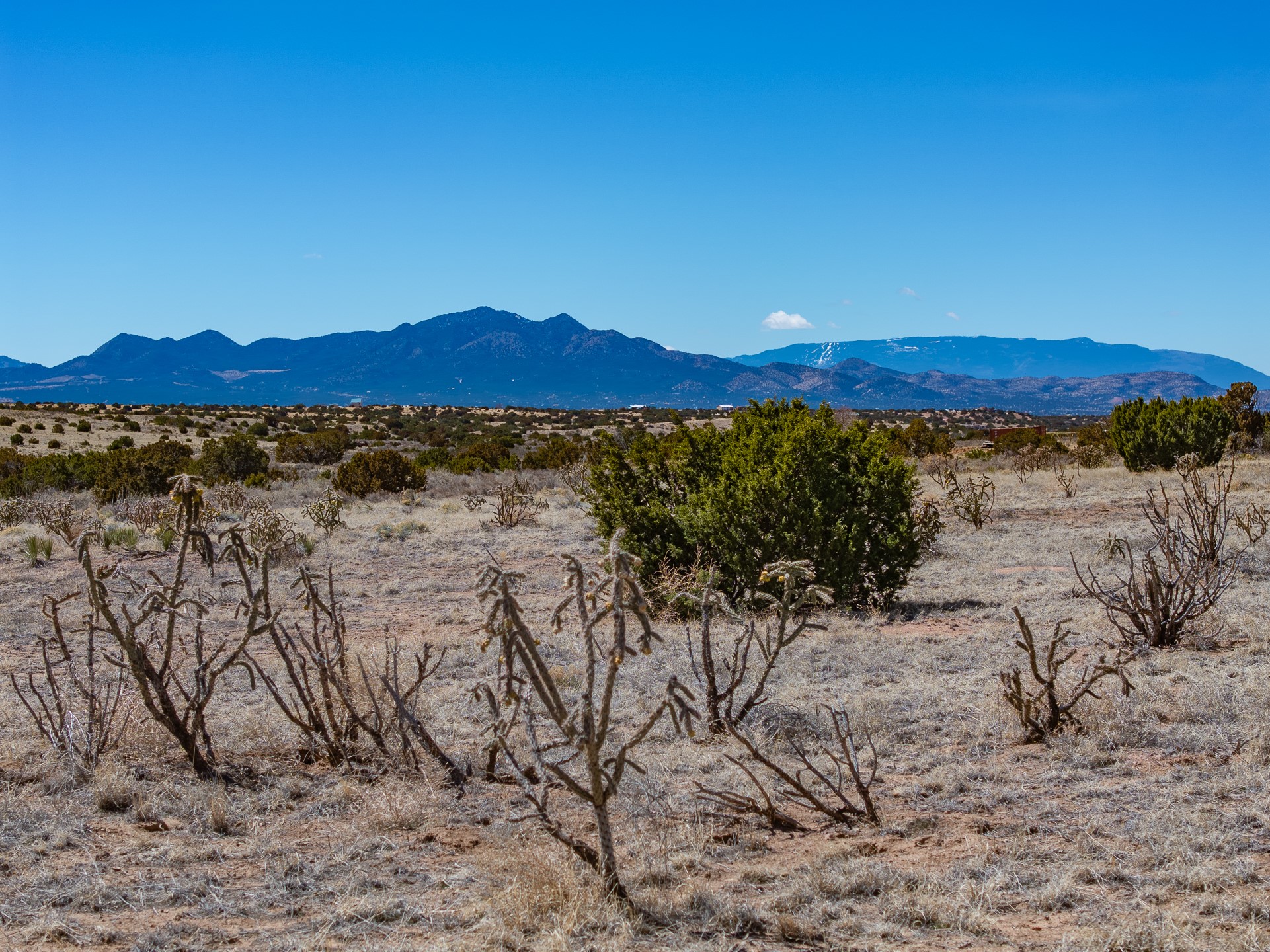 Lots this large rarely come available this close to the city. 38 acres of quiet, rolling hills, and juniper dotted grasslands, with mountain views in every direction and end of the road privacy, just 13 miles from Santa Fe city limits. Adjacent on two sides to thousands of acres of ranch land. Nearby homes have power. Mobile homes are not permitted, but there are no style or size restrictions in the covenants, and horses are welcome. Zoning standards call for 10 acre lots, this property may be sub-dividable. Difficult to find, please make an appointment to see.