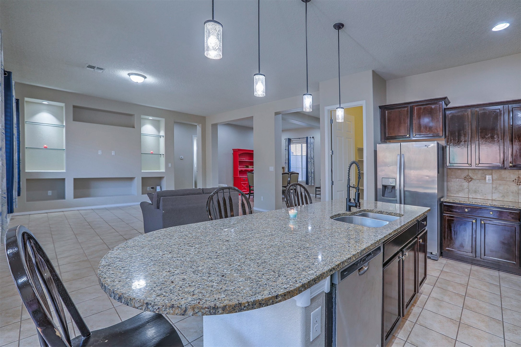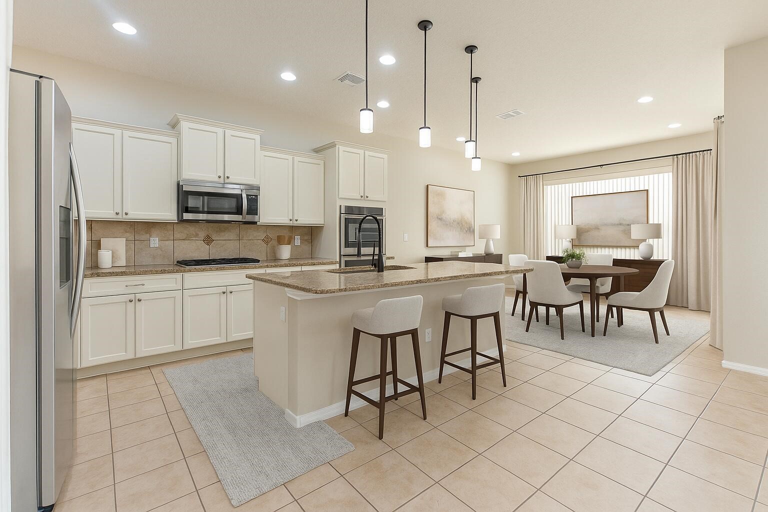 OWNER MOTIVATED FOR ANY OFFERS, OWNER FINANCING ALSO AVAILABLE. Located in the prestigious gated enclave of Tres Colinas, Loma Colorado, a residence of refined elegance unfolds. Dual primary suites, complemented by three additional bedrooms and three and a half baths. A chef's kitchen, showcasing bespoke cabinetry, artisanal backsplash, and stainless steel appliances, anchors the heart of the home, while granite surfaces grace every corner. A secluded courtyard and dual-zone climate control ensure year-round serenity. The huge great room adorned with built-in bookshelves and upgraded tile, opens to a generous covered patio, seamlessly blending indoor and outdoor living. Custom window treatments, expansive closets. A dedicated laundry room and formal dining area complete the ensemble.