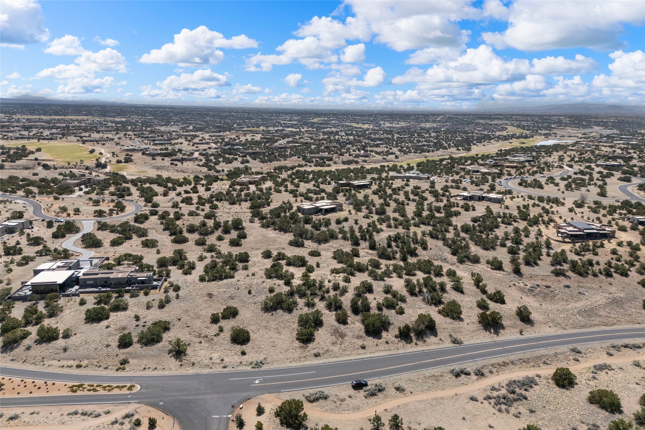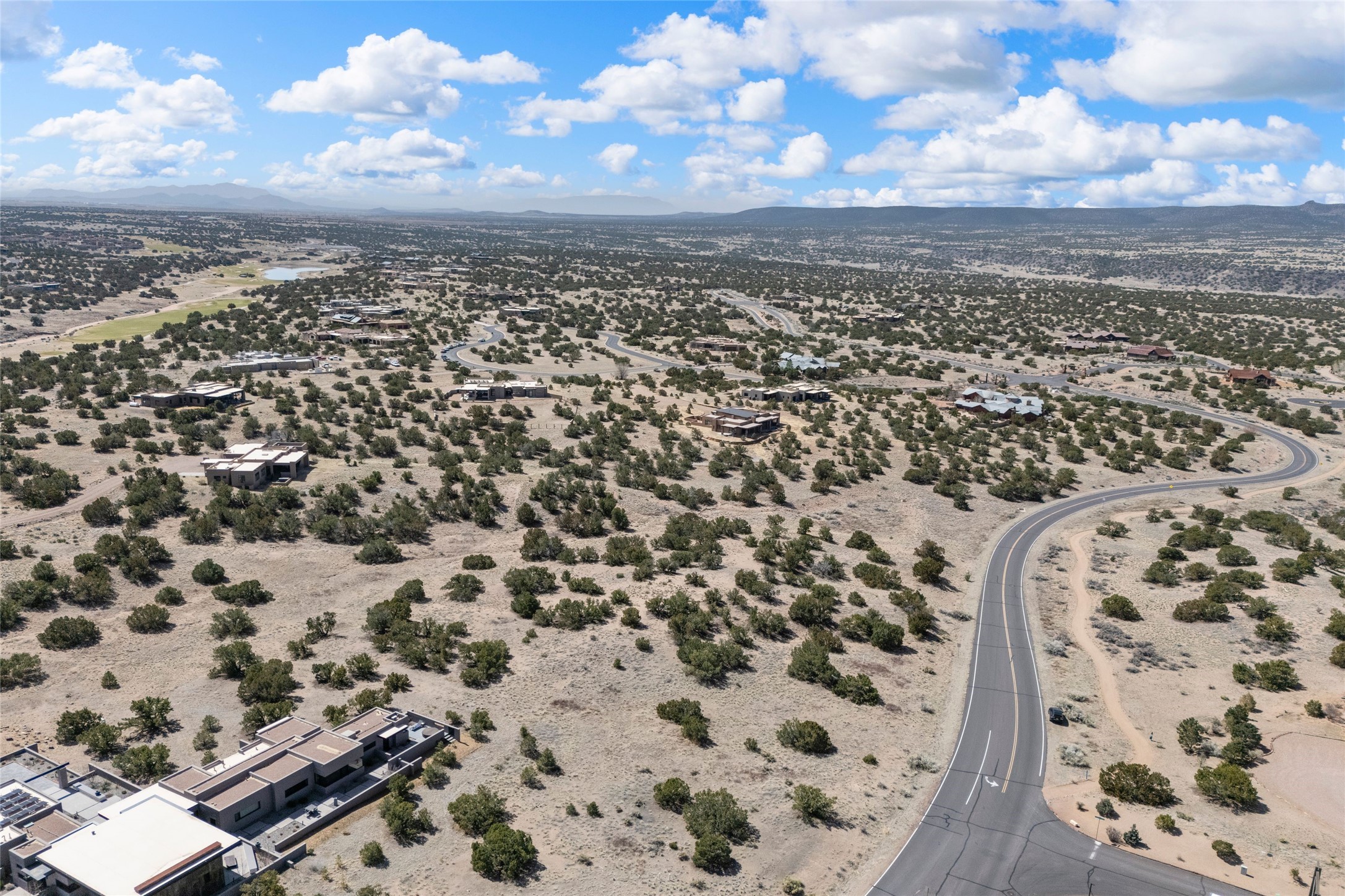 In the tree-studded rolling hills northwest of town are Las Campanas and a host of other developments and neighborhoods of larger, private lots and newer homes, most with city services and utilities. The land here sits between the city and the arroyos that carry rainwater to the Rio Grande, just a few miles west, creating a landscape almost like ocean waves rolling into shore. The community of