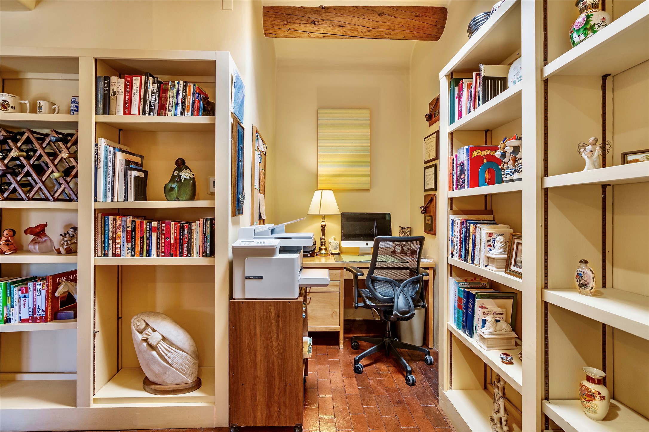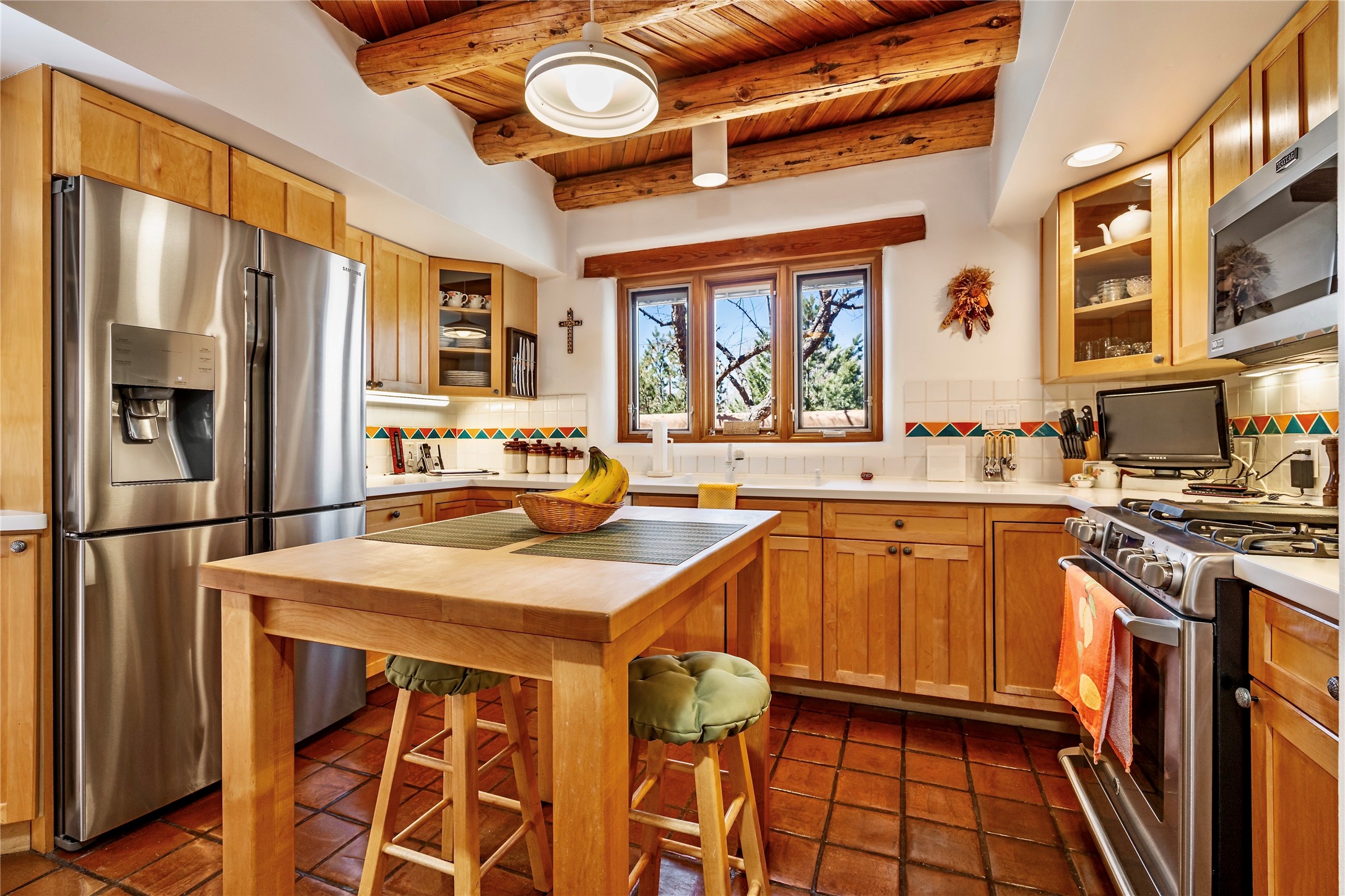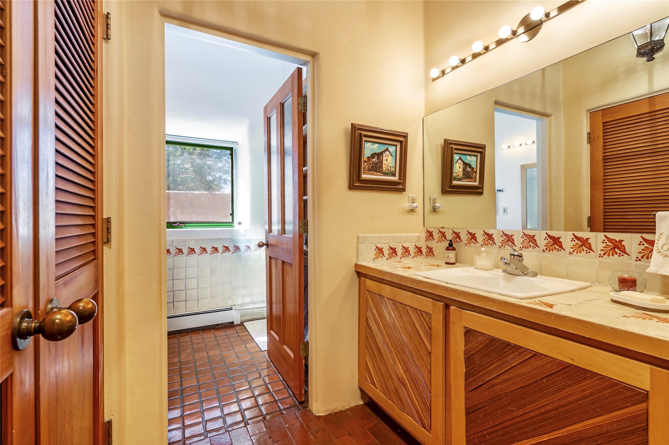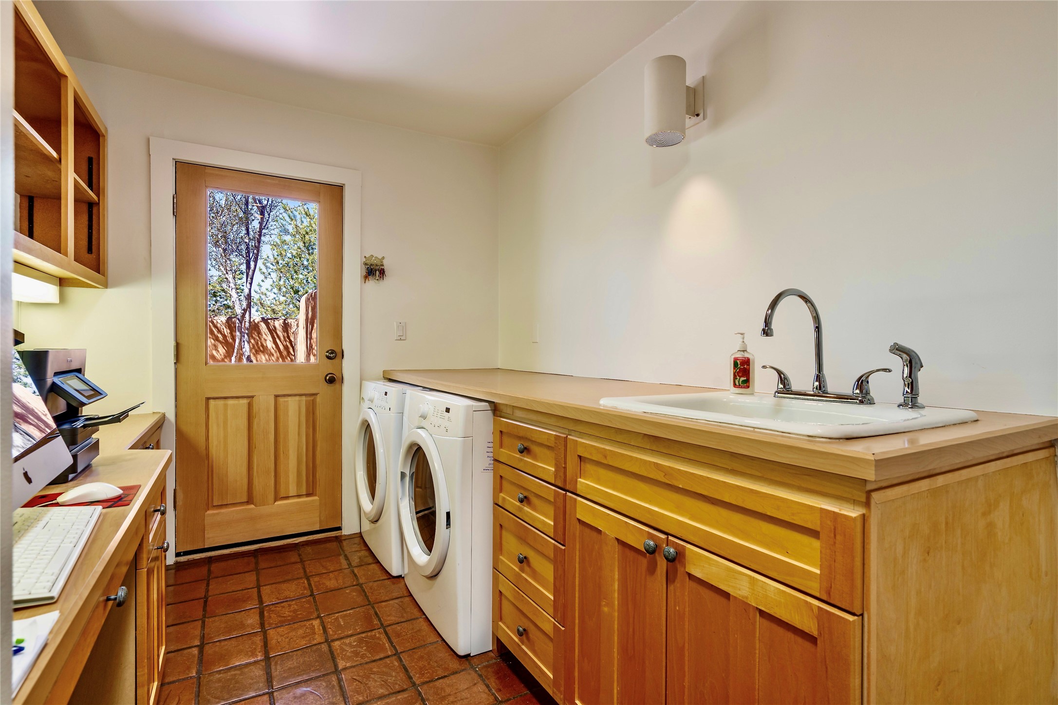 Sensational Acequia Madre Condo in the heart of the historic Eastside. Tucked down a long, private drive in a small 6 unit compound, lies a beautiful, single level, double adobe home featuring specialized features including old Mexican doors, along with the perfect blend of saltillo tile and brick floors. The living room features tall 14 ft coved ceiling with plaster walls, ideal for that very special Santa Fe art collection! This quintessential, corner unit, is fully gated and surrounded by tall walls, patios, portals and gardens. Welcoming bricked, walled and gated entry courtyard along with a rear, West-facing courtyard and portal, trees and private gate to Acequia Madre which is featured in the book Santa Fe Style! Delightful kitchen with center island breakfast bar and plenty of cabinetry. Two spacious bedrooms, one with office nook, and steam shower in the ensuite bathroom. Dedicated laundry room with sink and office area. Oversized 2 car garage with extra storage cabinets + designated guest parking. Mini-splits provide AC and heat along with whole house baseboard heating and water softener. An added, unexpected bonus is the compound water well-each owner shares for outdoor irrigation. Needless to say, Acequia Compound Condos lies in the most fabulous Acequia Madre location surrounded by grand estate-type properties and is close to iconic Canyon Road with the finest of art galleries and restaurants, along with Downtown Subscription for your morning coffee and communal gatherings. Rarely do any units in this compound come available. Truly a five star home in a five star, compound in an A+location!