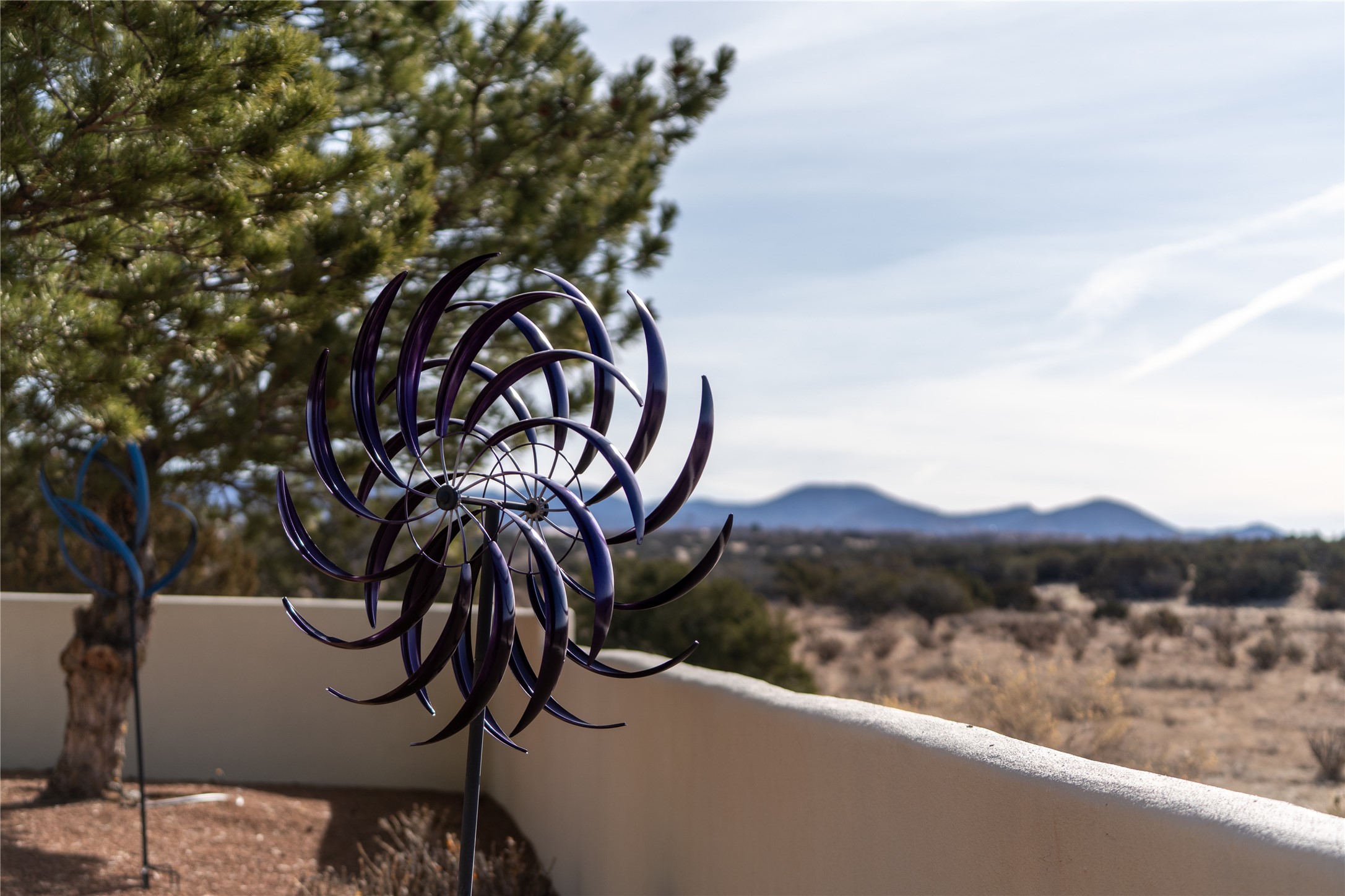 You'll love this custom Santa Fe home with a guest house that proves you can have both beauty and brains. Tucked away on a quiet cul-de-sac in the exclusive Village Estates of Rancho Viejo, this thoughtfully designed home blends smart living with timeless Santa Fe charm. Let's start with the brains: 23 owned solar panels creating electric bills under $10 a month. There's a whole-house water filtration/softener system, a hot water recirculating pump on an Alexa plug, a remotely operated irrigation system, and more. As for the beauty: an inviting new kitchen designed for gathering and gourmet cooking takes center stage in the one-level main house. You'll enjoy generous living and dining areas, a private primary suite with a kiva fireplace, dual custom closets, and a remodeled en suite bath with spa-like finishes. Two guest bedrooms share a full bath, and there's a bright office plus a powder room with a shower--perfect for overnight guests. The living room has a gas fireplace, and there's also a convenient utility room with extensive storage.Step outside to a welcoming patio accessible from the living room or primary suite. Downstairs, a stylish guest house has its own entrance, living space, bedroom, modern kitchen, full bath, and a walk-out covered patio with an outdoor kitchen--perfect for long-term guests or multi-generational living.Enjoy unobstructed views of the Ortiz and Sandia Mountains, or wake up to the sunrise over the Sangre de Cristos. Whether it's morning coffee or sunset cocktails, the patios are the perfect place to soak it all in. Situated on 1.25 acres and backing up to a dedicated greenbelt, the property offers privacy and space. And yes, there's an oversized 3-car garage.When you're ready to explore, Rancho Viejo offers over 12 miles of scenic walking and biking trails--perfect for a morning stroll, evening ride, or spontaneous dog walk. The neighborhood is designed to keep you connected--to nature and to community.