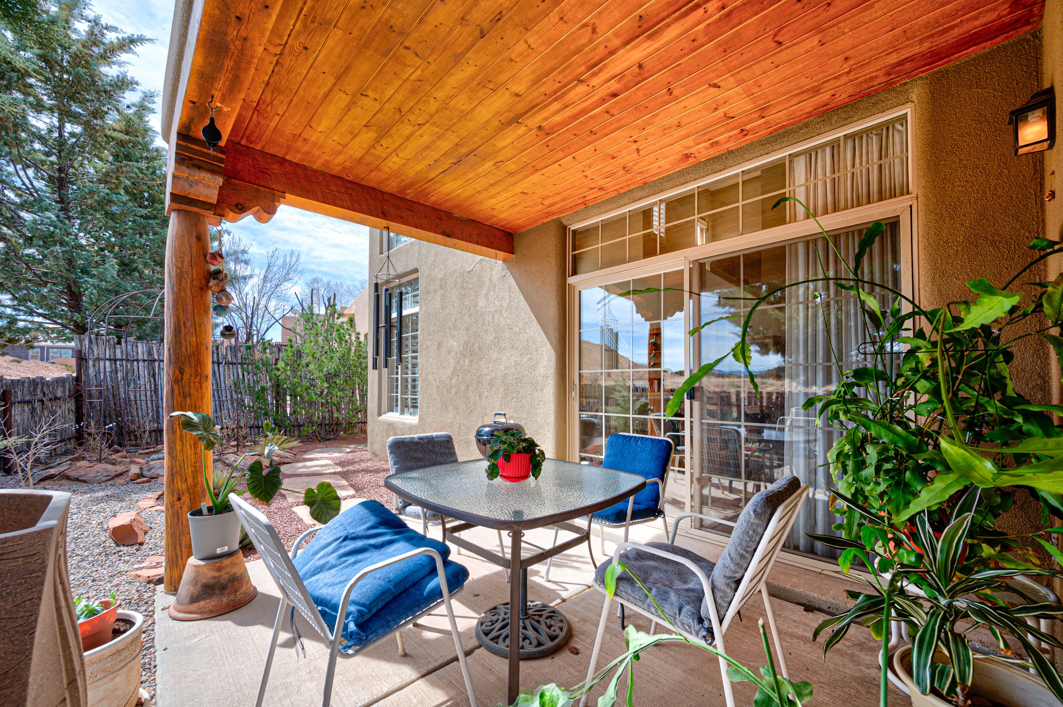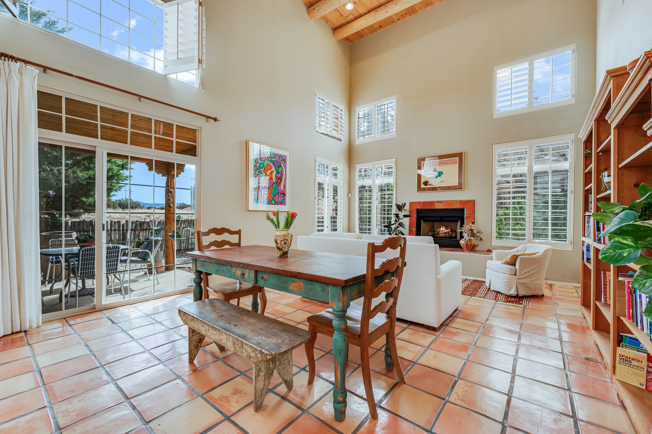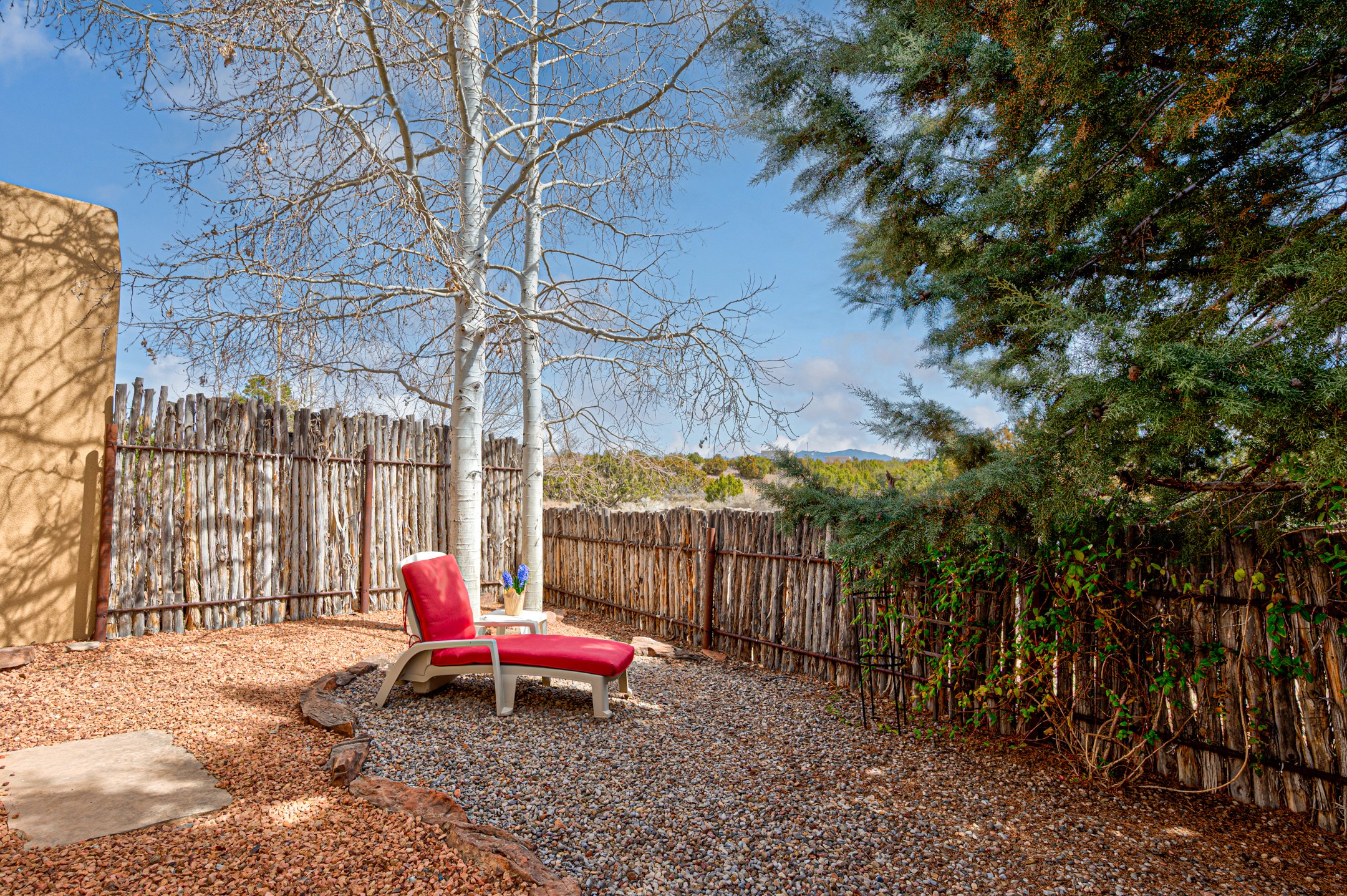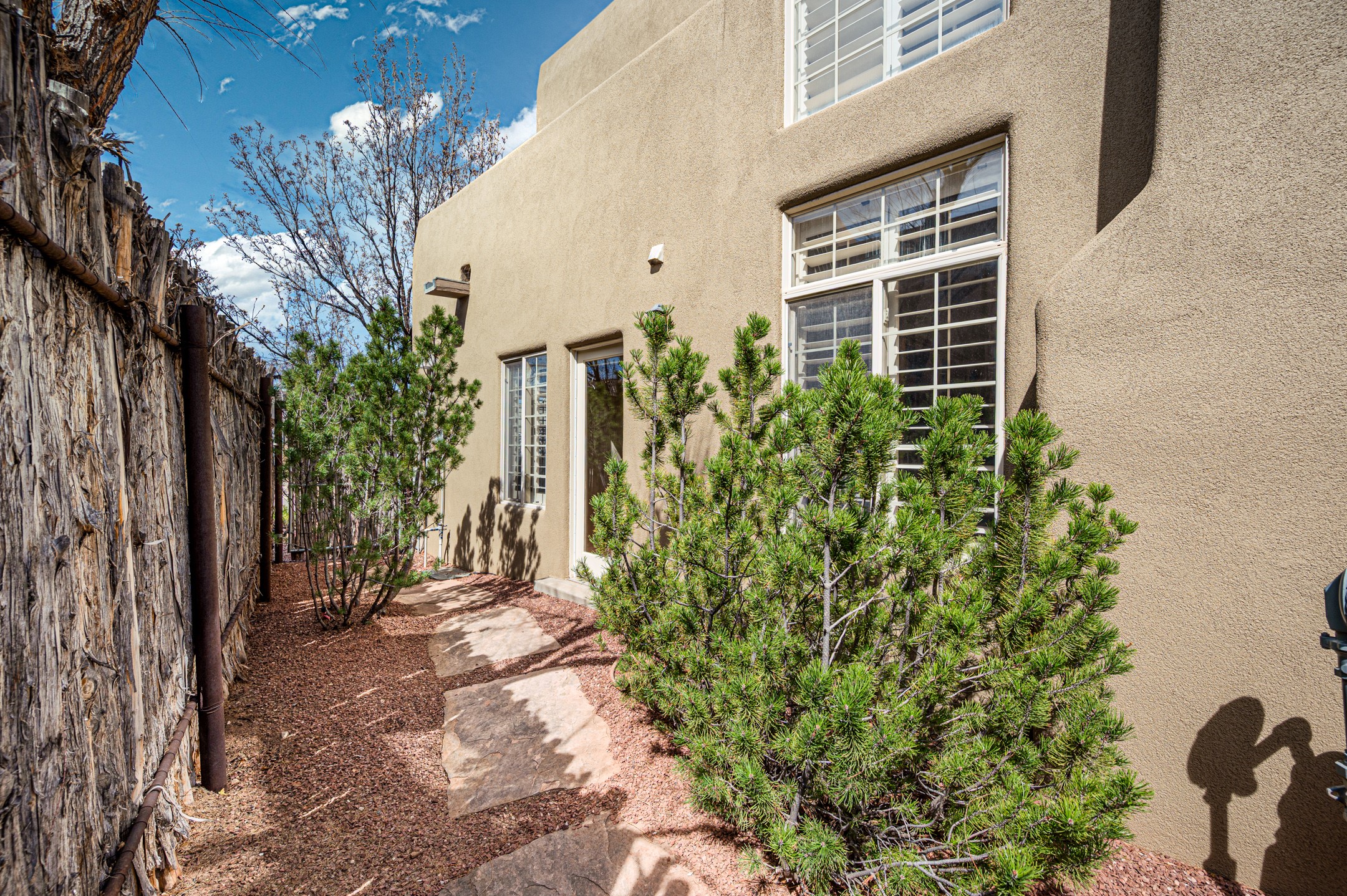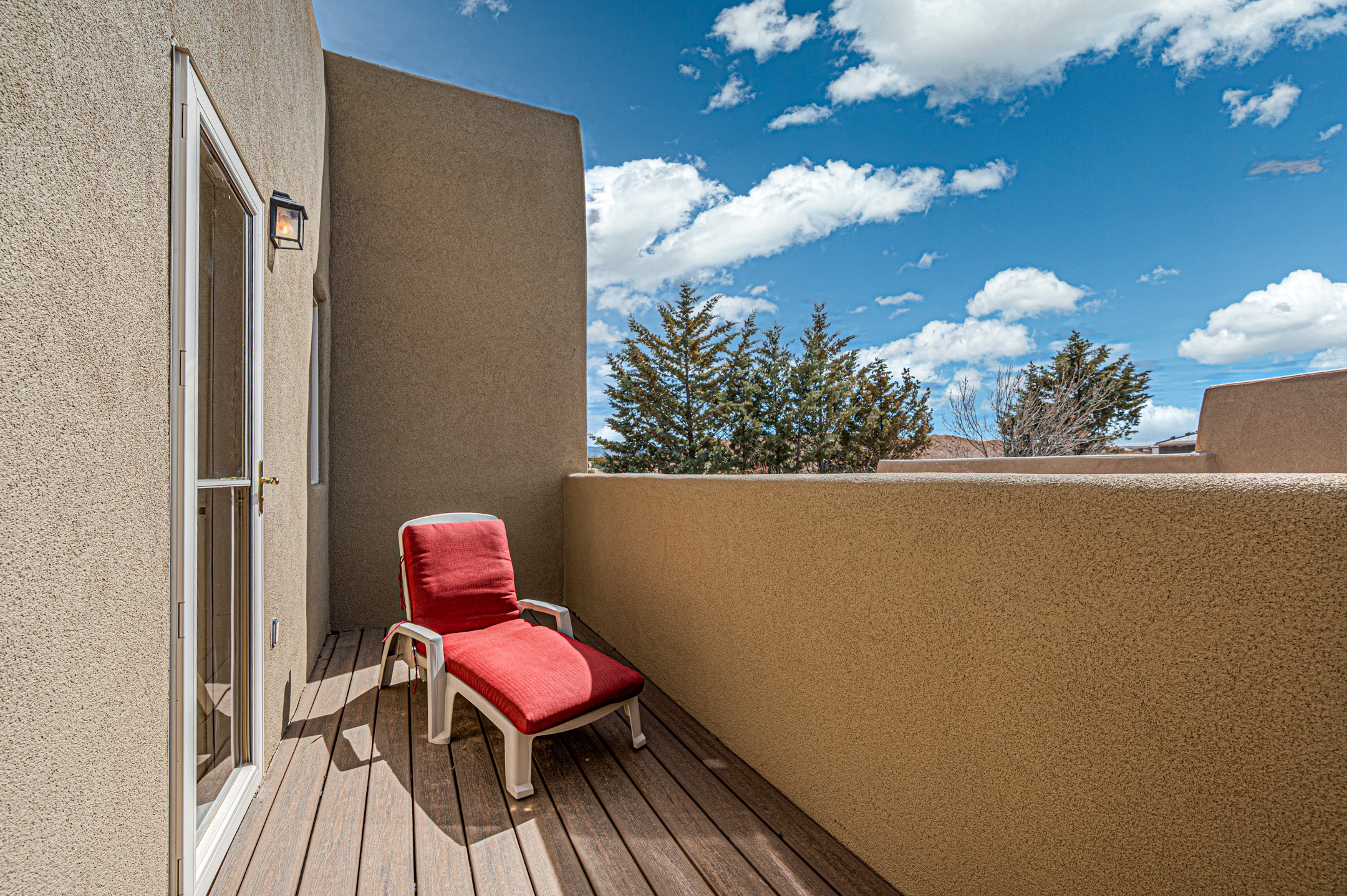 Discover the charm and convenience of this newly listed home in Santa Fe, offering a peaceful lifestyle with abundant amenities. This 1,635 square foot house features 3 bedrooms and 2 bathrooms, a 2-car garage, open concept living area, and meticulously groomed outdoor spaces with established landscaping. Inside, high ceilings with vigas, a central fireplace, and Saltillo tile flooring enhance the appeal of the main level while adding a touch of Southwestern flair. The home boasts a spacious and well-equipped kitchen with oversized island, two guest rooms, a reading nook, and dedicated laundry all on the first floor. Upstairs, the primary suite features a walk-in closet, soaking tub, separate shower, double vanities, and balconies bookending the serene space. Need more to love? A new roof with warranty, fresh stucco, plantation shutters, central AC, and a shaded back portal will add to your enjoyment and peace of mind. Positioned conveniently near Santa Fe Place Mall, Presbyterian Santa Fe Medical Center, Santa Fe Regional Airport, and a short drive to the Plaza, essentials and attractions are conveniently within reach.
