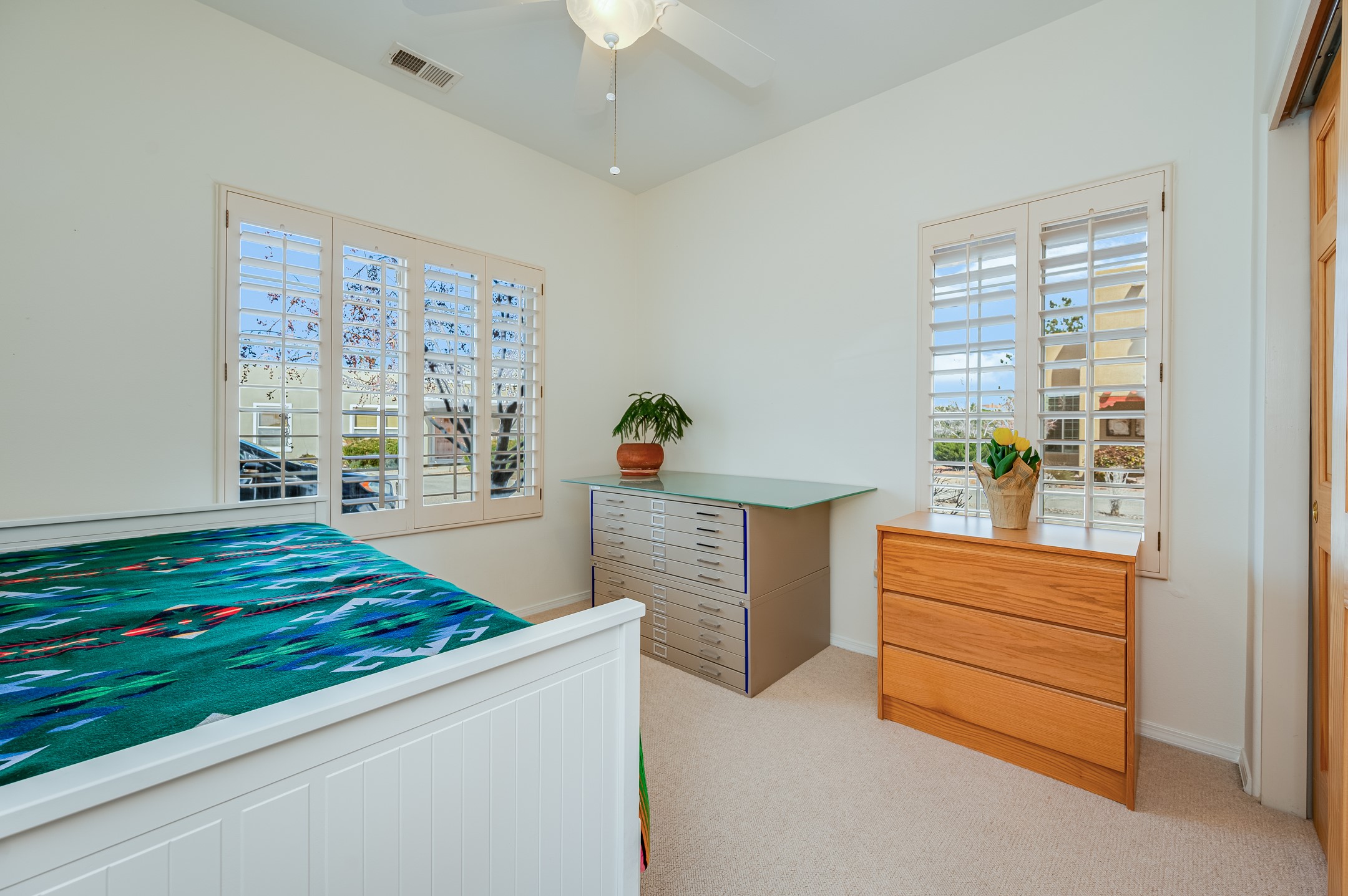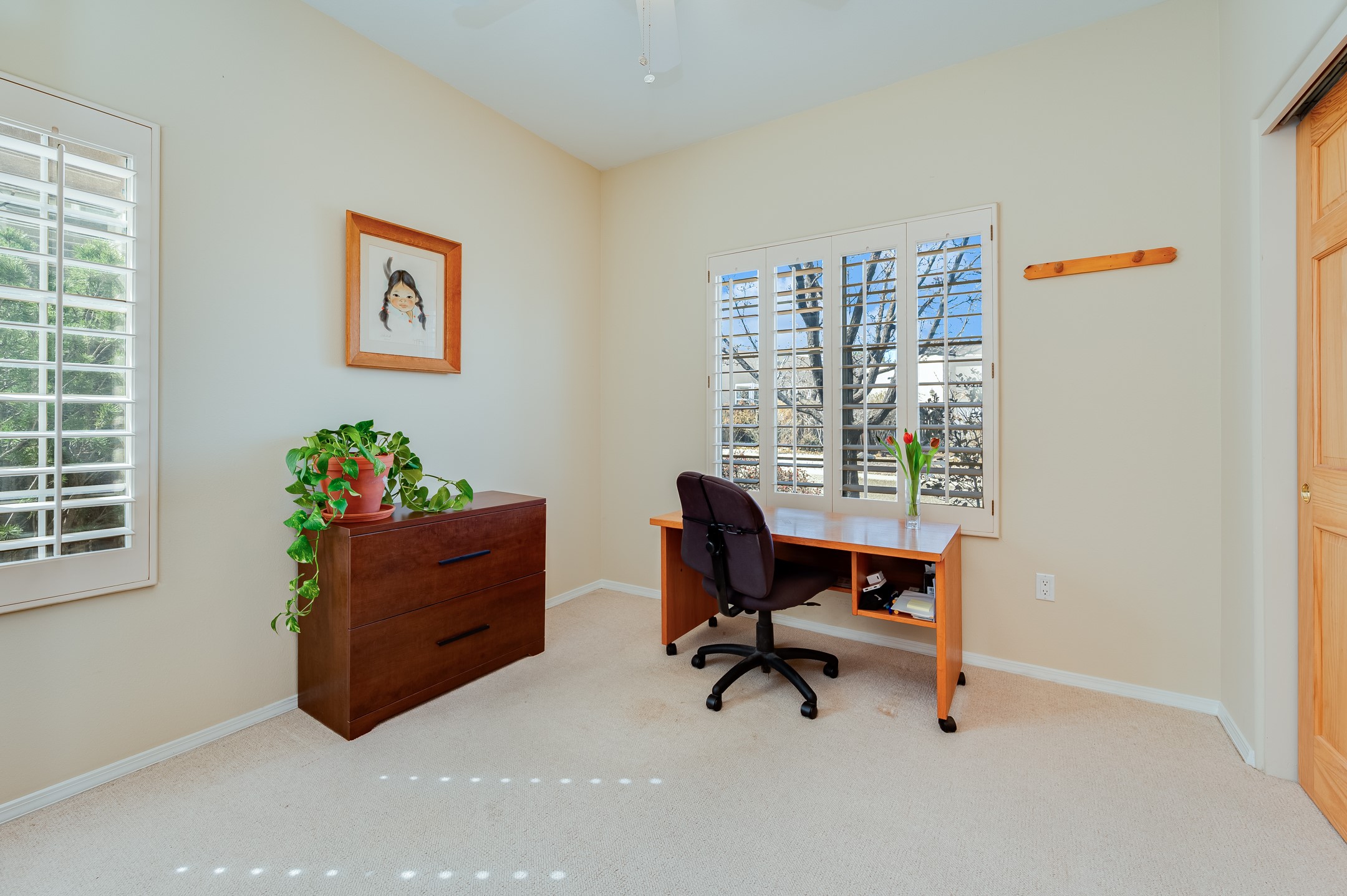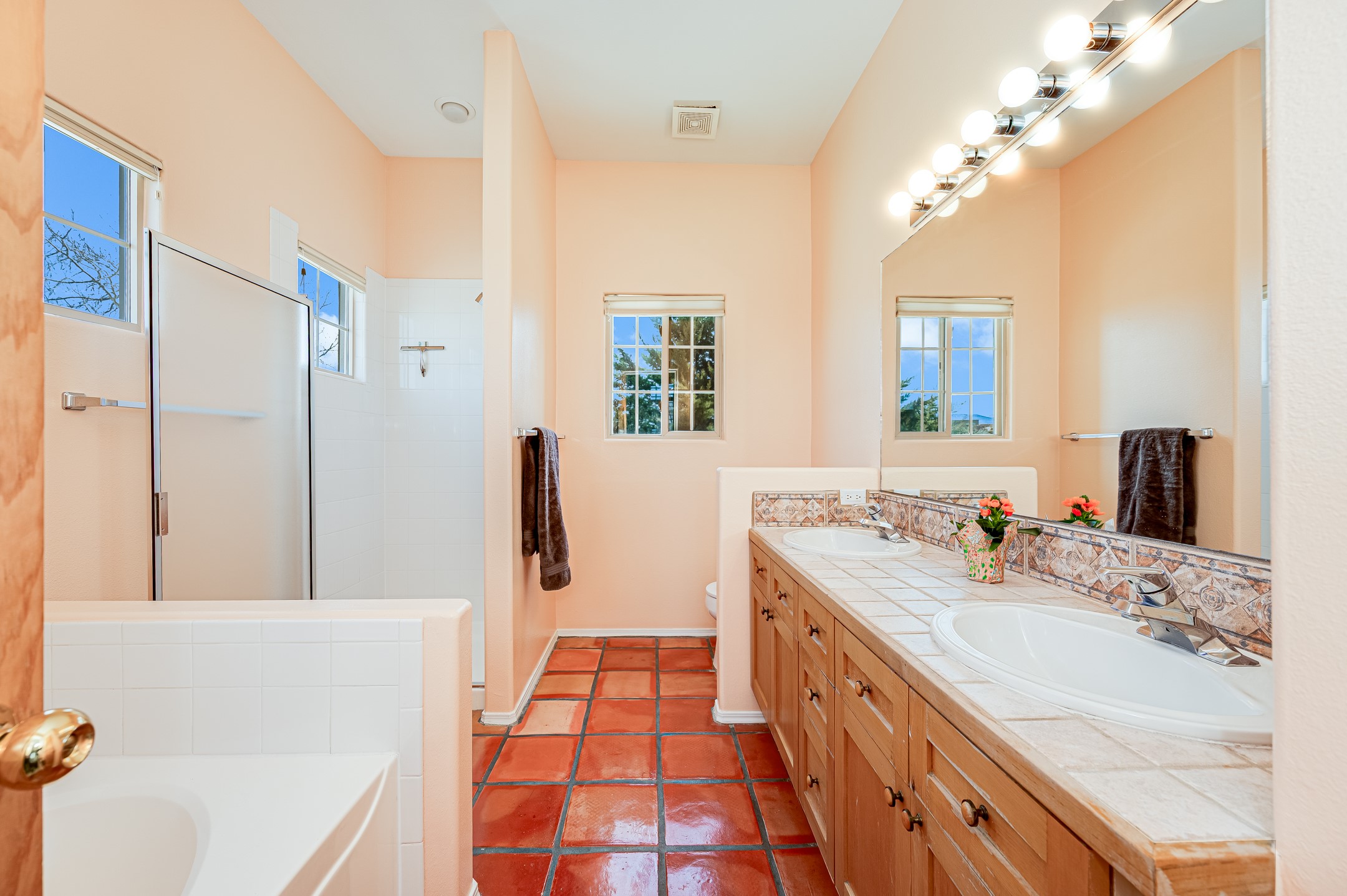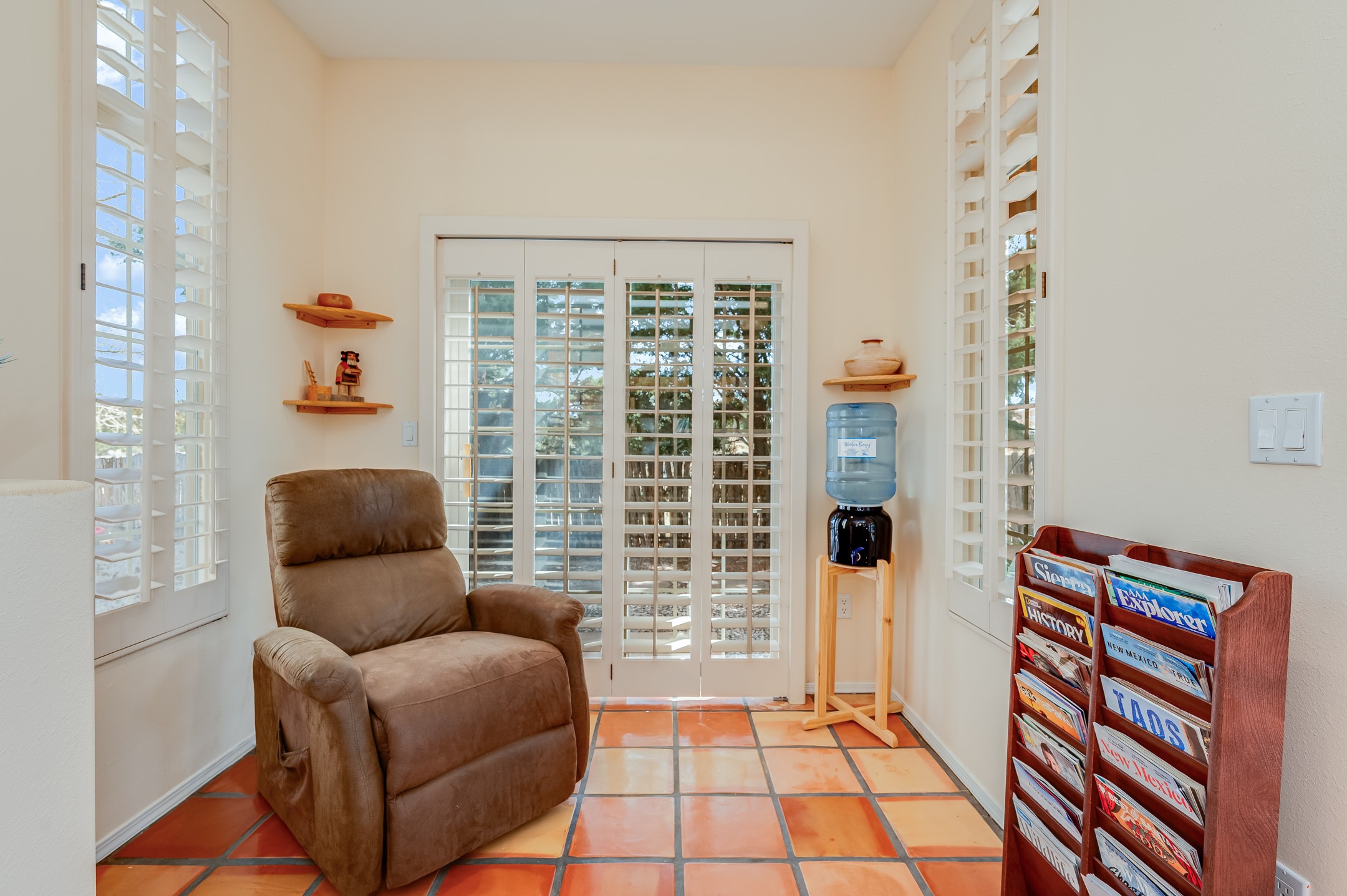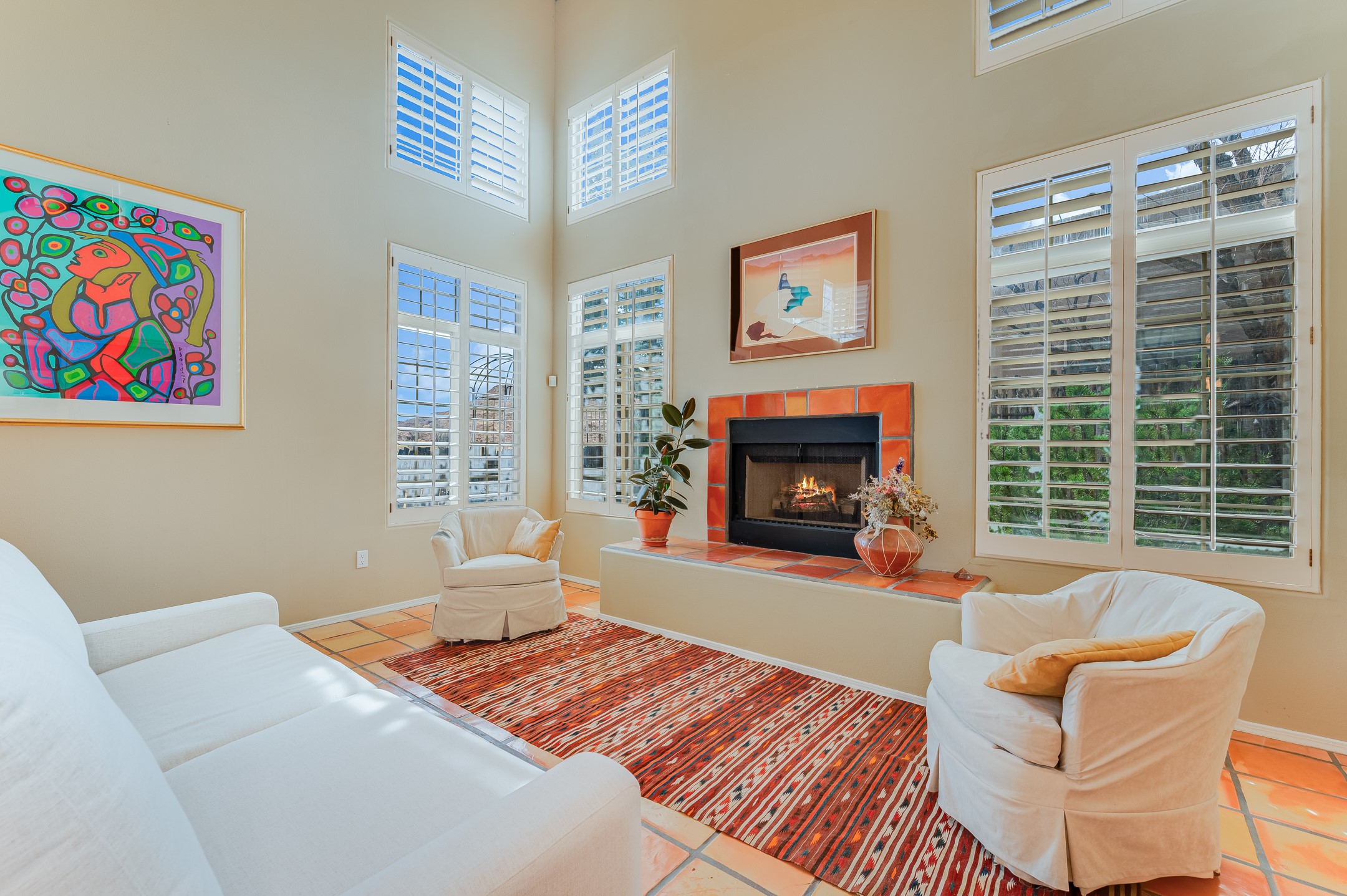Discover the charm and convenience of this newly listed home in Santa Fe, offering a peaceful lifestyle with abundant amenities. This 1,635 square foot house features 3 bedrooms and 2 bathrooms, a 2-car garage, open concept living area, and meticulously groomed outdoor spaces with established landscaping. Inside, high ceilings with vigas, a central fireplace, and Saltillo tile flooring enhance the appeal of the main level while adding a touch of Southwestern flair. The home boasts a spacious and well-equipped kitchen with oversized island, two guest rooms, a reading nook, and dedicated laundry all on the first floor. Upstairs, the primary suite features a walk-in closet, soaking tub, separate shower, double vanities, and balconies bookending the serene space. Need more to love? A new roof with warranty, fresh stucco, plantation shutters, central AC, and a shaded back portal will add to your enjoyment and peace of mind. Positioned conveniently near Santa Fe Place Mall, Presbyterian Santa Fe Medical Center, Santa Fe Regional Airport, and a short drive to the Plaza, essentials and attractions are conveniently within reach.