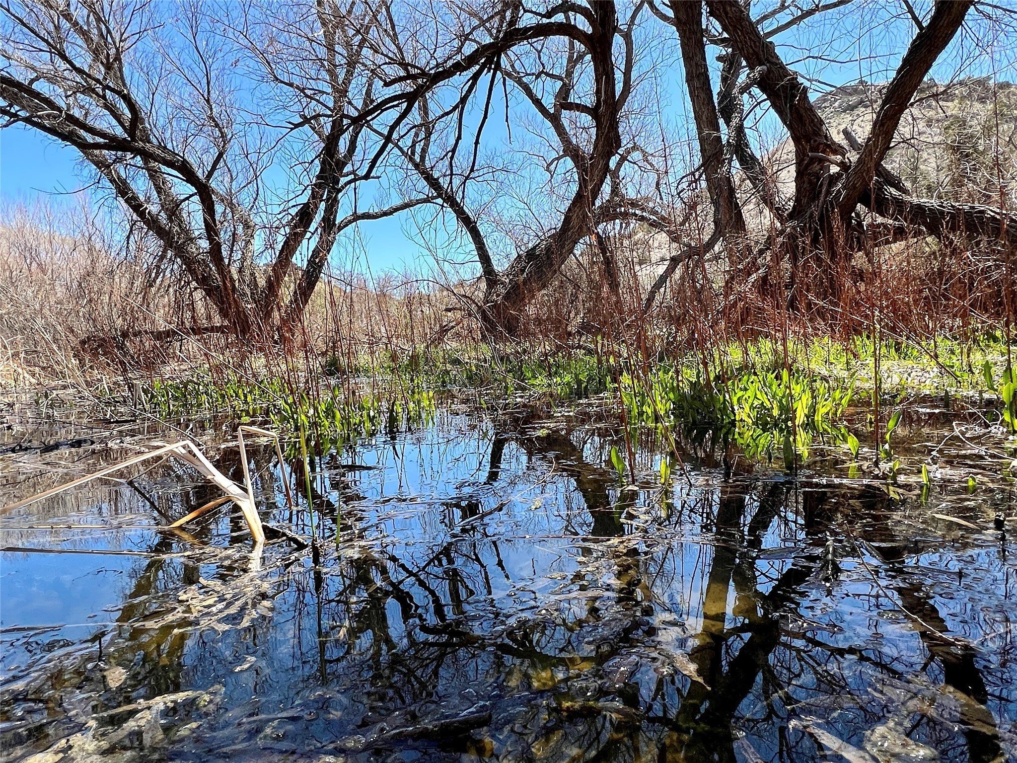 The Pitchfork Ranch transports you to a simpler time, where solitude and unspoiled beauty define the landscape. Located 30 miles south of Silver City, New Mexico, rugged mountains give way to the dramatic Chihuahuan Desert, and nine miles of the Burro Cinaga flow through the heart of the ranch, providing a rare and critical water source. Elevations range from 5150' to 5650'. Spanning 11,393 acres, including 5,160 deeded acres, 3,597 BLM lease acres, and 2,626 NM State lease acres, the ranch is a hub for wildlife and habitat conservation, and is protected by a Conservation Easement. The Pitchfork Ranch's reach of the Burro Cinaga is the only cinaga being restored on private property in New Mexico. Cinagas are shallow, slow-moving marsh-like water unique to the American Southwest. With 95 % of cinaga habitat lost, Burro Cinaga is an important refuge for wildlife, including at-risk species such as the Chiricahua leopard frog and Gila Topminnow. Recent scientific evidence indicates cinagas have substantial carbon sequestration, 5 times more than forests and 500 times more than oceans. The Cole Family has invested over a million dollars in the restoration of Burro Cinaga and surrounds using a combination of private and public funding. After two decades of habitat restoration, this land is now returning to its pre-settlement condition.The ecotone created by the cinaga and the Chihuahuan desert makes for an incredibly rich biodiversity. Mule deer, foxes, coyotes, mountain lions, javelina, and Gambel's quail are common here. Elk have become frequent visitors in recent years. Bald and Golden eagles enjoy the solitude. A comical troop of Coatis sometimes gathers near the headquarters. Old West charm, beauty, wildlife, and conservation are central to this property.