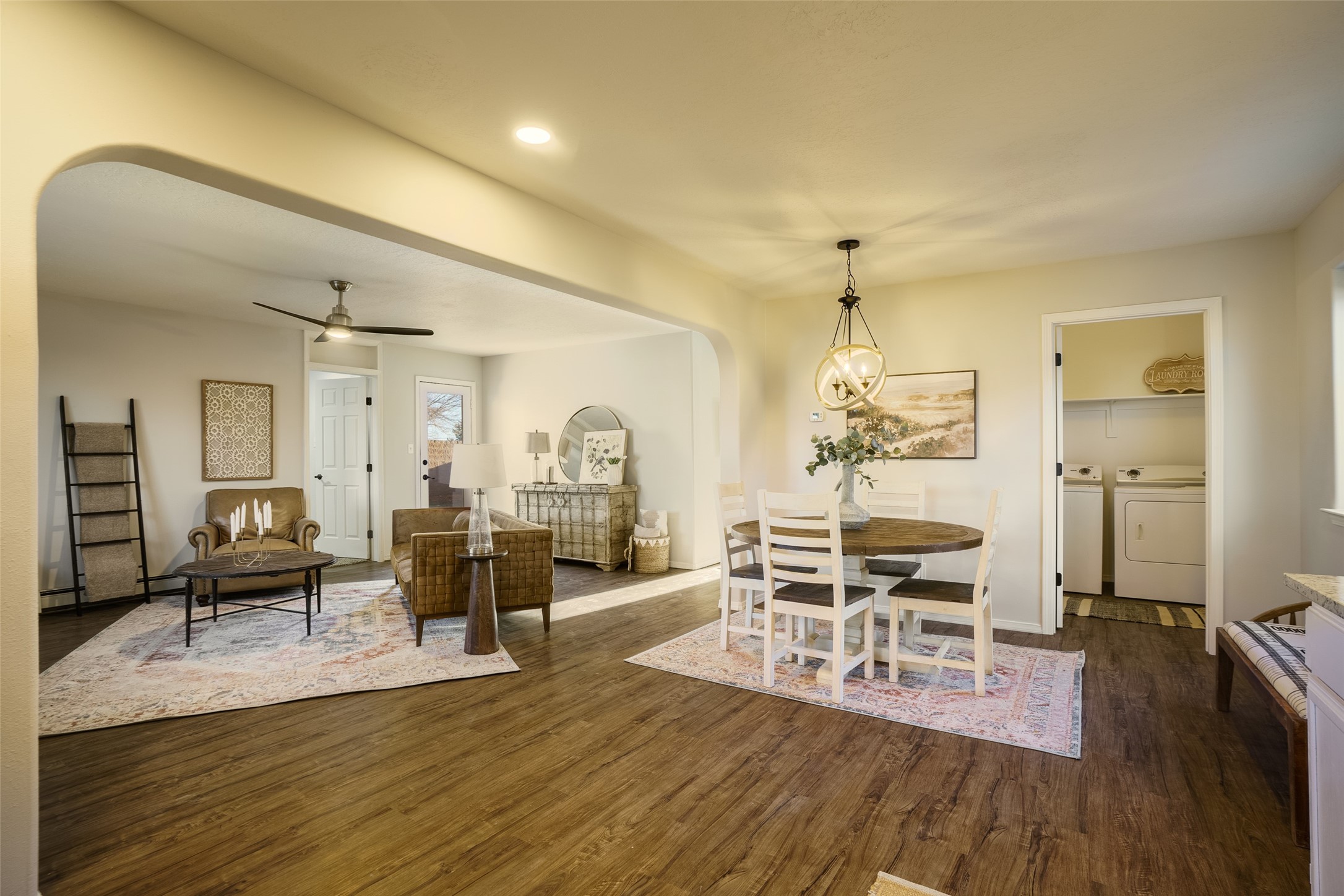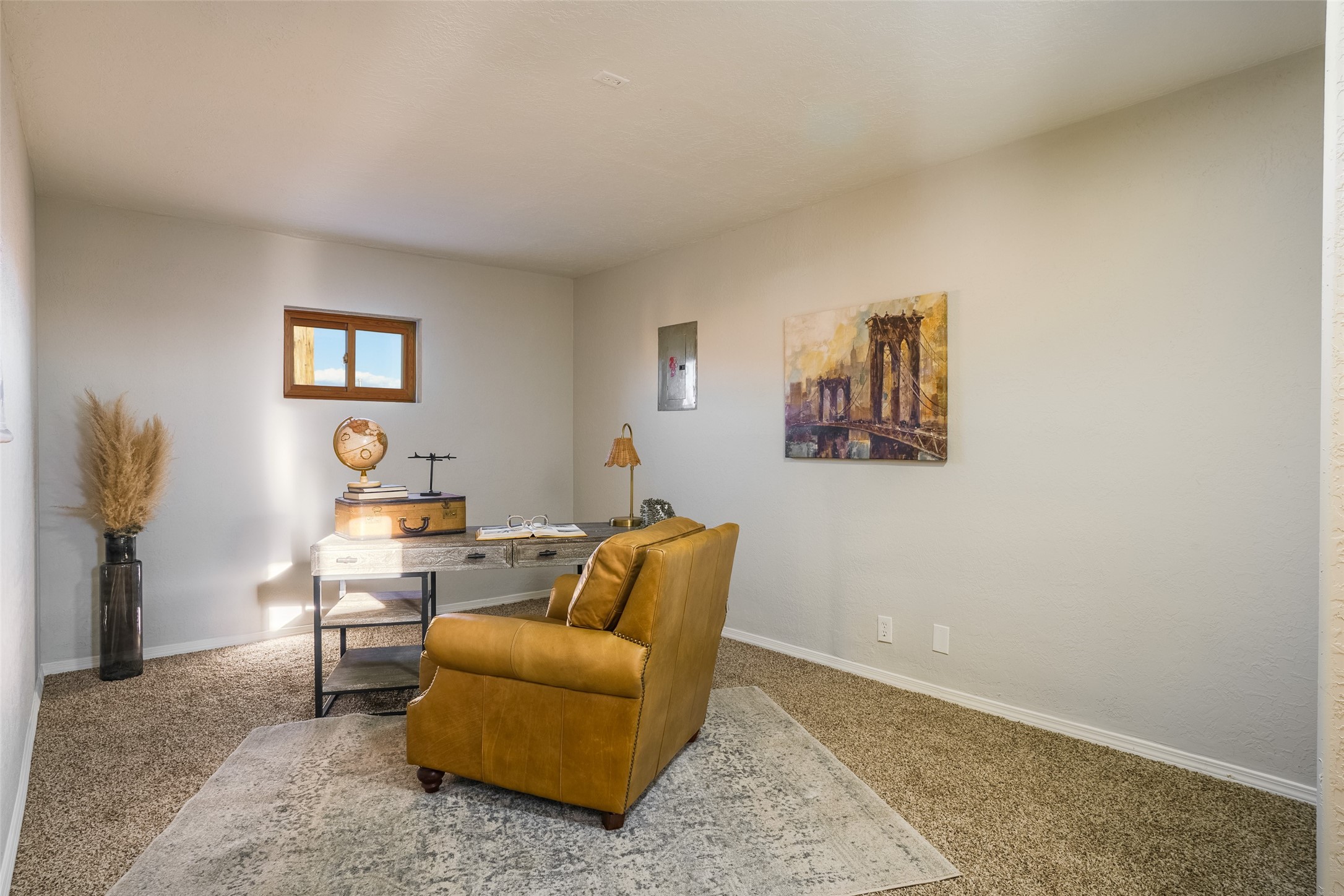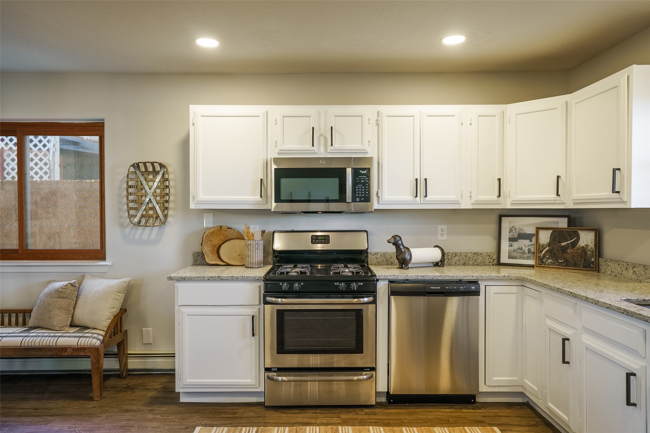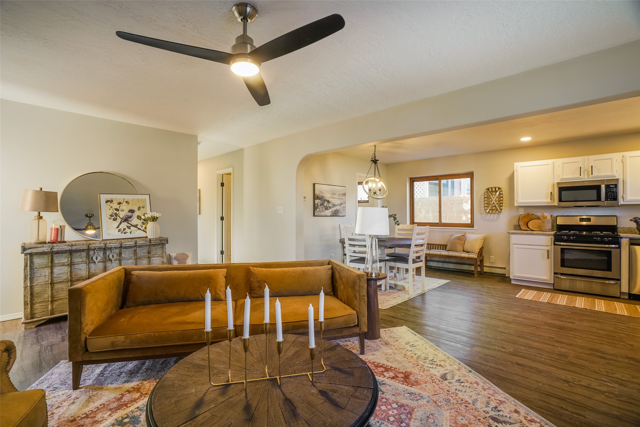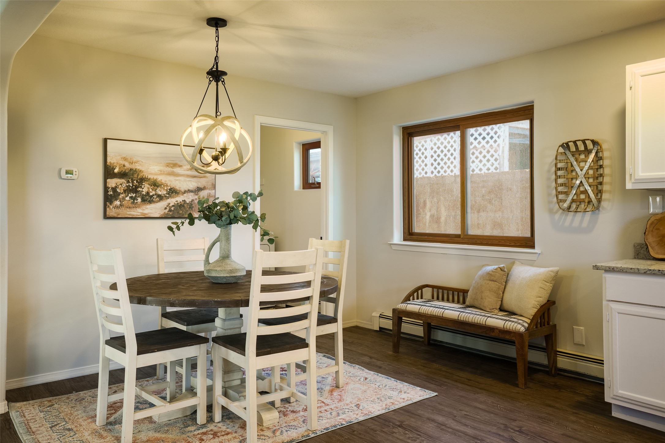 STEP INTO THE WARMTH OF CLASSIC SANTA FE LIVING. Inside this 4-bed, 2-bath home, you'll find the charm of the modern southwest-- a kiva fireplace, luxury vinyl that mimics rustic wood, and soft carpeted bedrooms. Enjoy the benefits of newer appliances and a stunningly UPDATED kitchen and bathrooms. The open floorplan welcomes the sunlight, while upscale design touches bring flair to every corner. The large yard, wrapped in an adobe wall, invites lazy afternoons and starlit evenings. Beautiful bathrooms and you can always make the 4th bedroom into a quiet office or study! Nestled in a prime Santa Fe location, you're close to culture, cuisine, and endless blue skies. Come experience the magic--schedule your tour today.