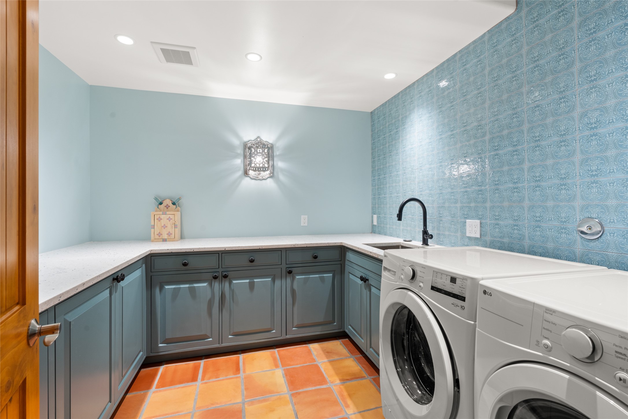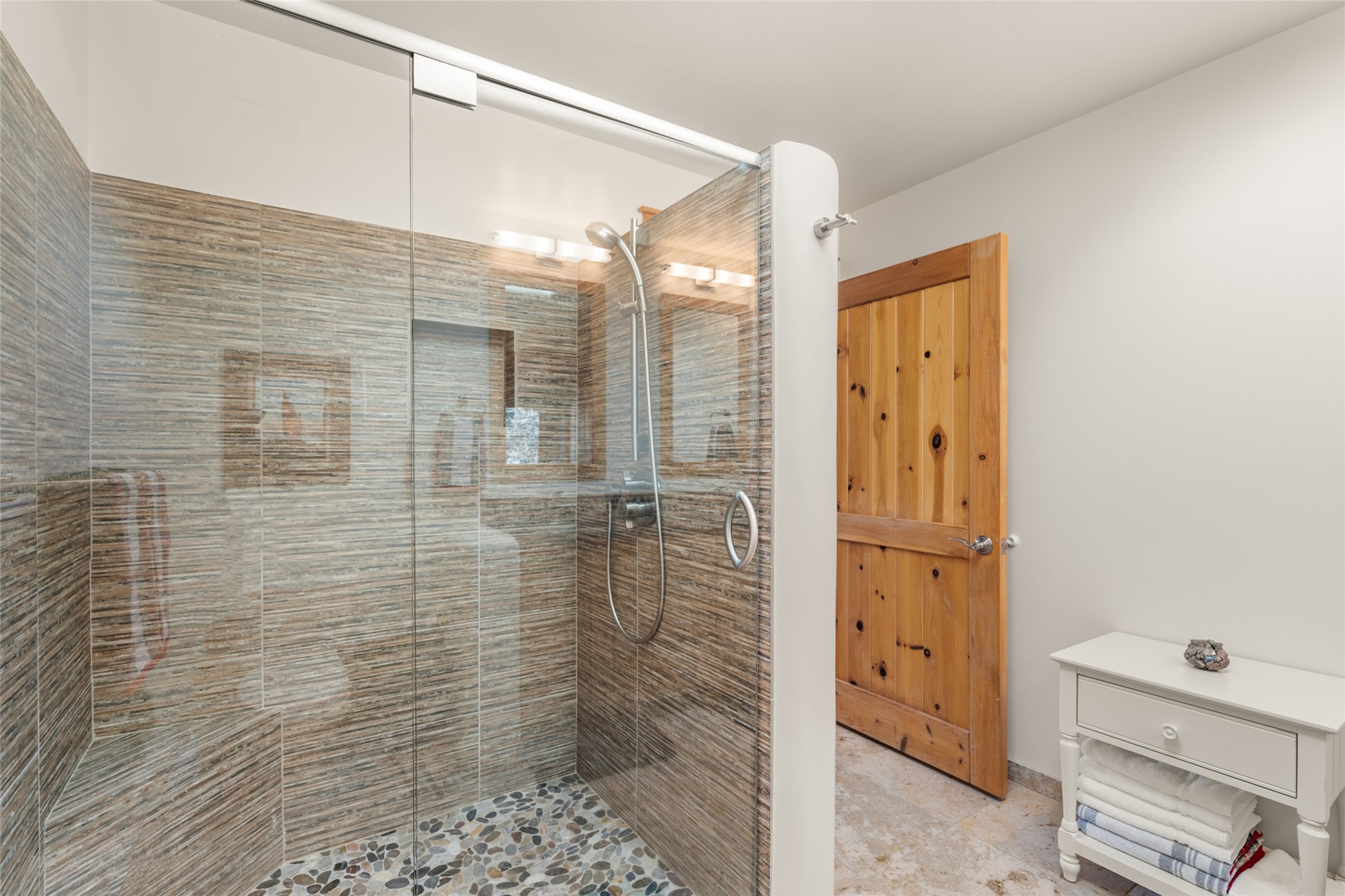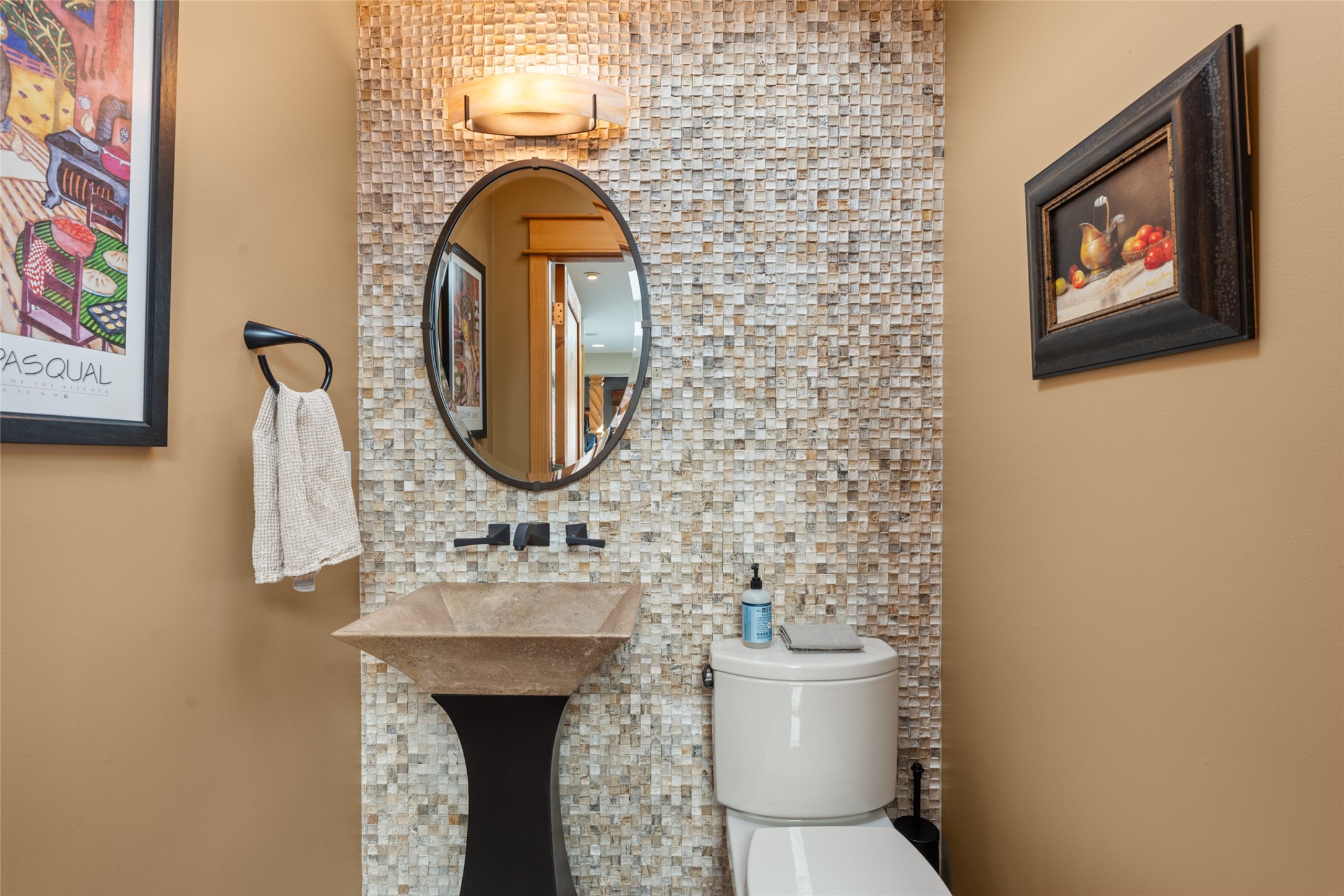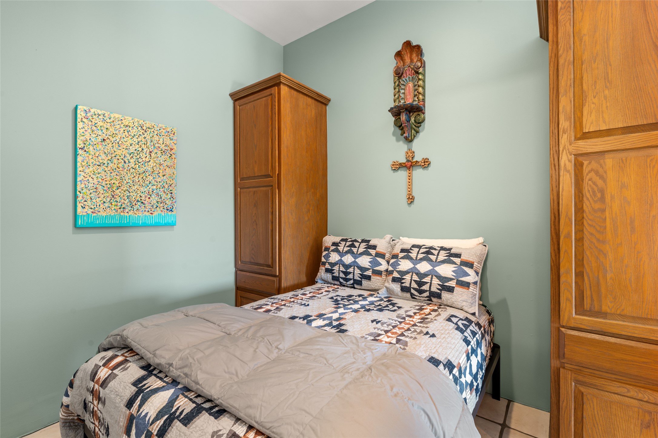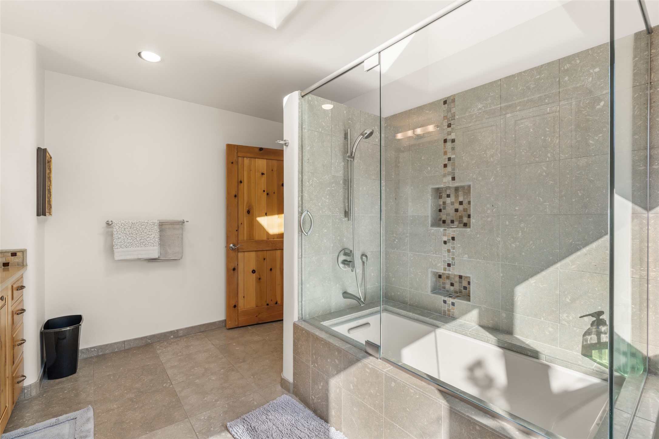 Situated on a large, secluded, and serene 2 acre north-side estate, an exquisite transformation has taken place. The two levels of the main house have been opened and expanded, resulting in a thoughtful home filled with natural light. Walls of windows look upon treetops, fabulous Jemez Mountain and sunset views, and abundant foliage and wildlife. The upper level incorporates the primary suite and two other large bedrooms, a large open concept kitchen and dining area, with Saltillo tiles and vigas flowing into the living area, capped by a dramatic kiva fireplace. For the newly imagined lower level, 1,843 sq ft were added to the original 5,307 sq ft house to create a second lower wing in the main house. The result - 7,150 sq feet with total of 6 bedrooms, remodeled upstairs kitchen, a new 2nd living room with an enclosed patio, 2 new bedrooms, a den with a kitchenette and fireplace, office space, a new laundry room, and too many other new and remodeled features to mention here. The flexibility of these spaces is abundant. Additionally, the property boasts a 1020 sq ft RV garage, recently converted into a heated and cooled artist's studio. There is also a one bedroom casita and 2 two car garages. The guest house, art studio, and one 2 car garage have a separate address and a 2nd gated entrance and the property now totals an extraordinary 8,545 sq ft of heated space on 2 landscaped acres. An amazing value.