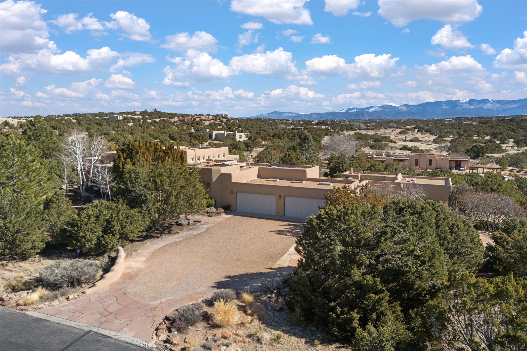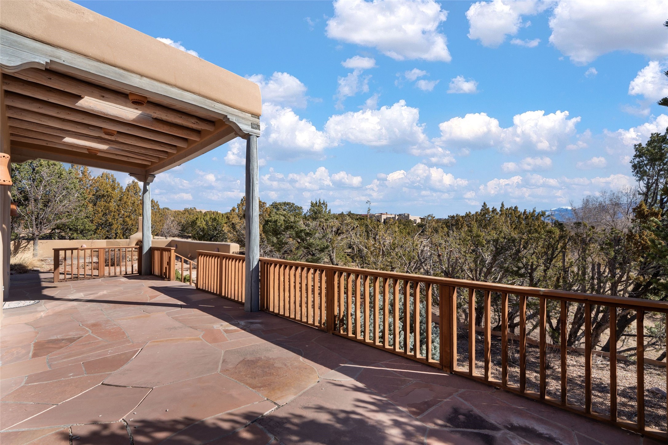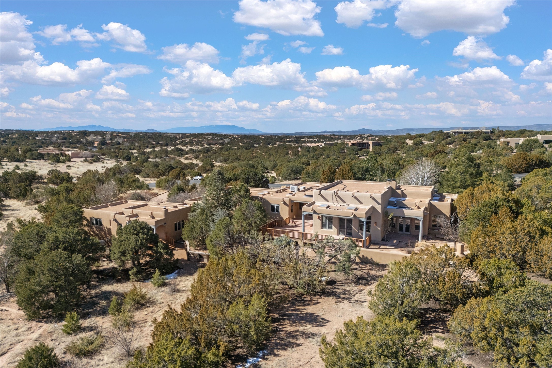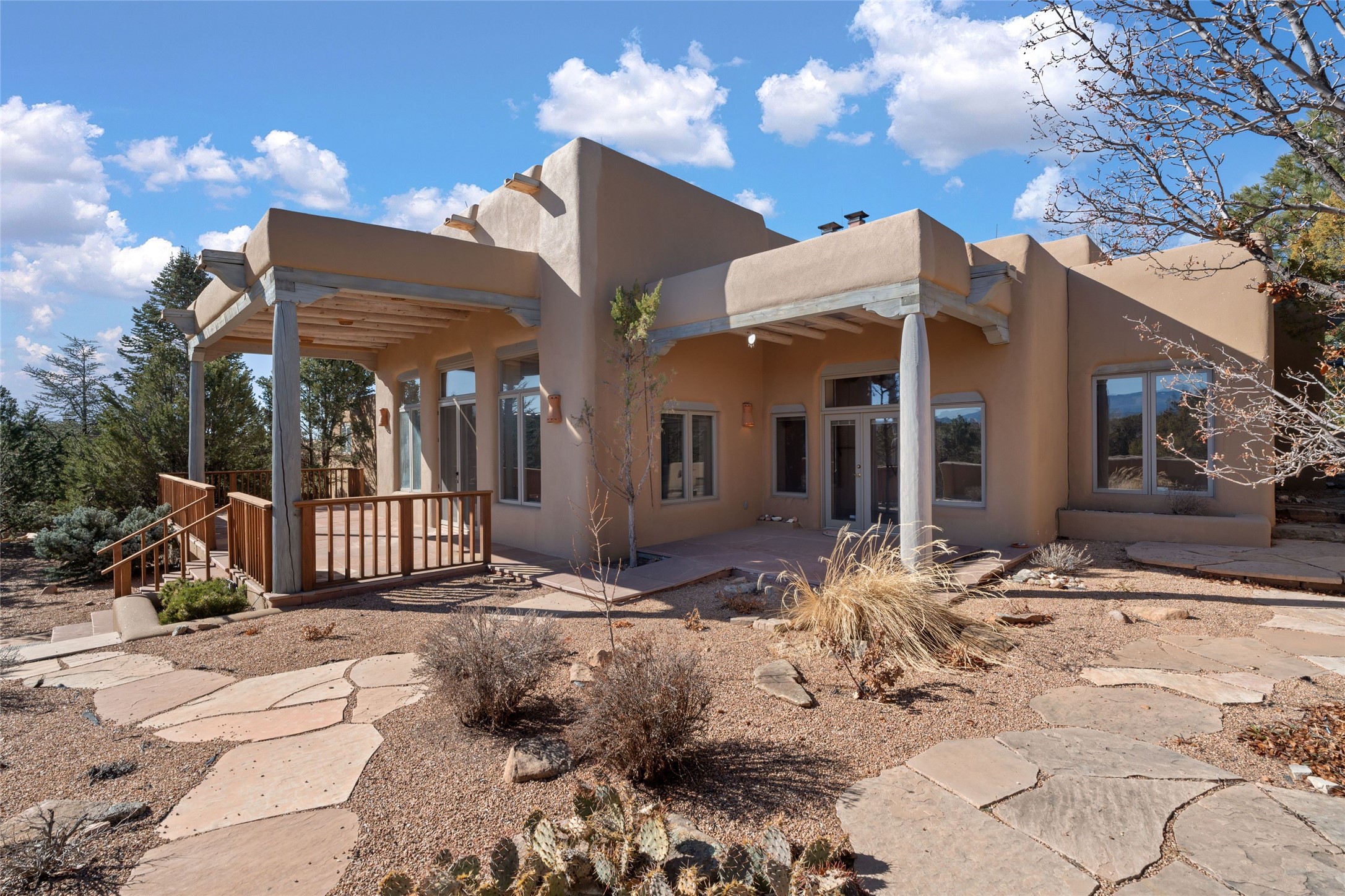 Expansive Pueblo-style home located in the exclusive gated community of Colinas Verdes. This impressive 3, 683 sq. ft. residence offers three bedrooms and 2.5 bathrooms complemented by a well-appointed 1,157 sq. ft attached 2-bedroom 2 bath guesthouse. Set on a generous 2.56 acres, this property provides ample space and stunning views. Step outside to explore a range of outdoor spaces, including multiple portals and decks that blend seamlessly with the beautiful New Mexico landscape. The courtyard, complete with an outdoor kiva, offers a perfect venue for relaxation and enjoying the breathtaking surroundings. This home showcases exceptional craftsmanship and attention to detail. Enjoy the beauty of transom windows that fill the space with natural light, traditional vigas and beams that enhance the architectural design, and beautifully faux-finished walls with decorative nichos. The large great room is a focal point of the home, featuring a substantial kiva fireplace and wet bar with seating for four, making it ideal for gatherings or quiet evenings. Culinary enthusiasts will find joy in the chef's kitchen, which features a central island and breakfast area perfect for casual dining. A separate dining room provides an elegant setting for more formal meals and entertaining. For those with a passion for cars or additional storage needs, the property includes a generous five-car garage. Convenient location with easy access to all the cultural, culinary and recreational amenities of Santa Fe.