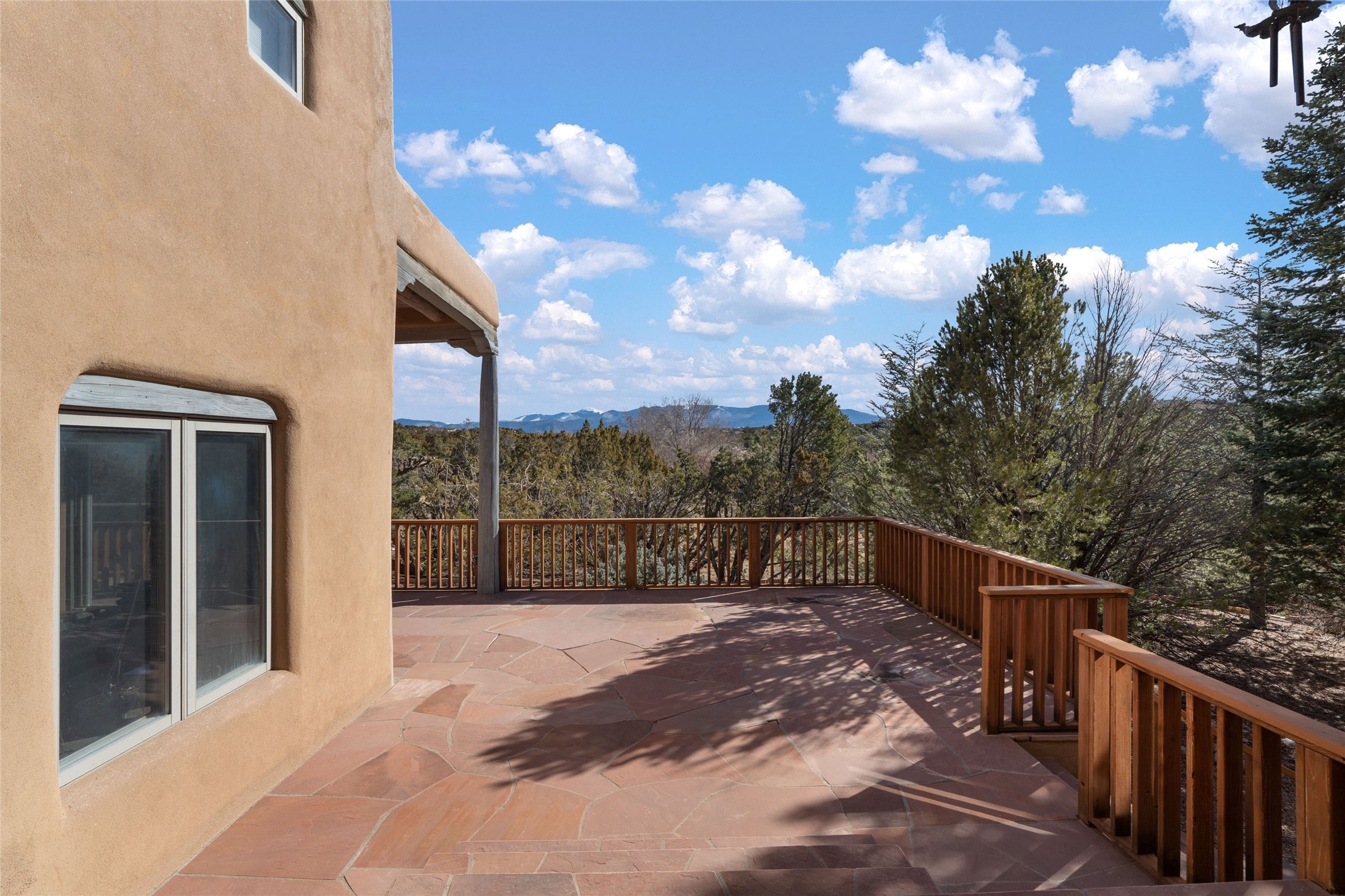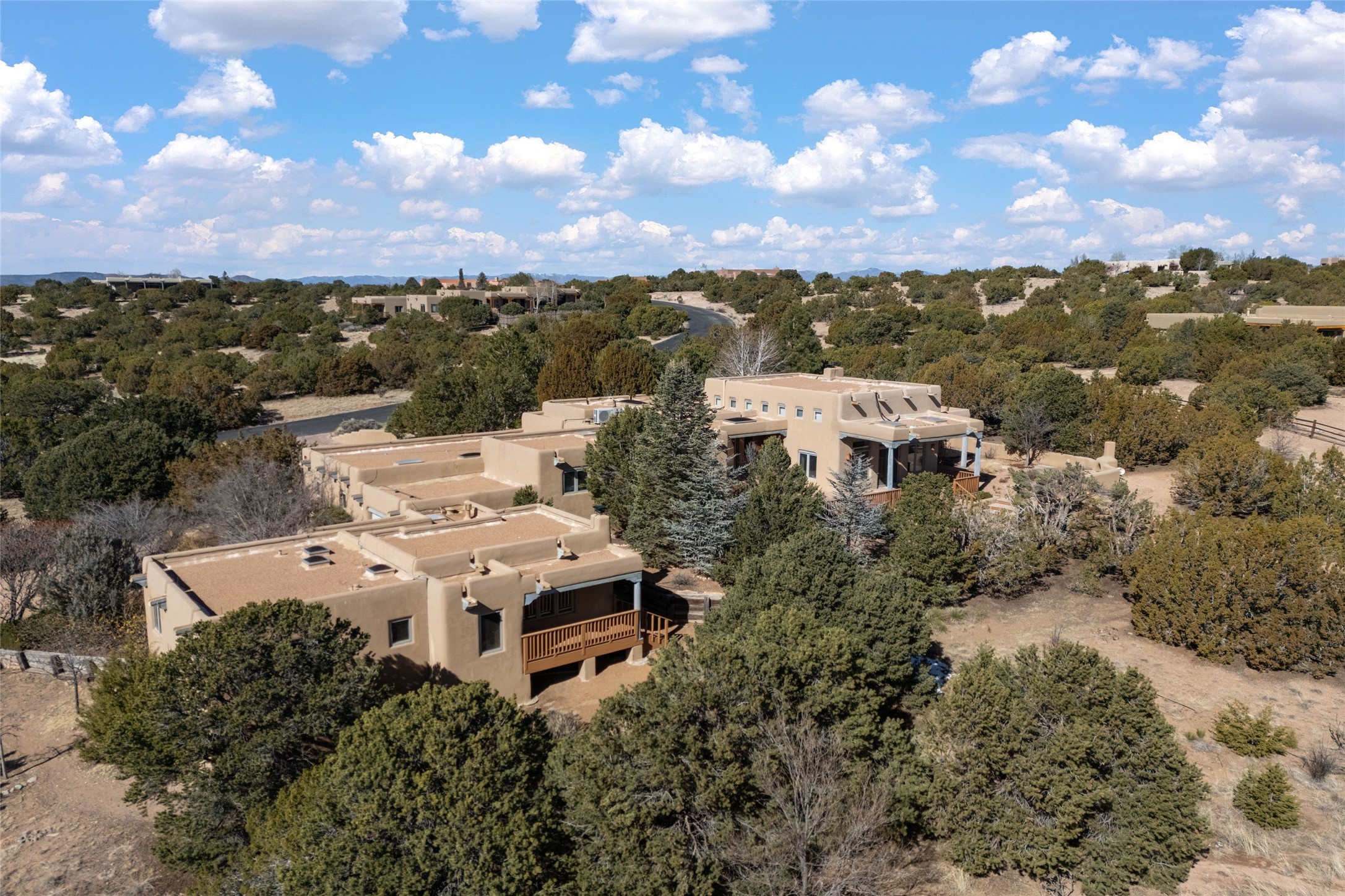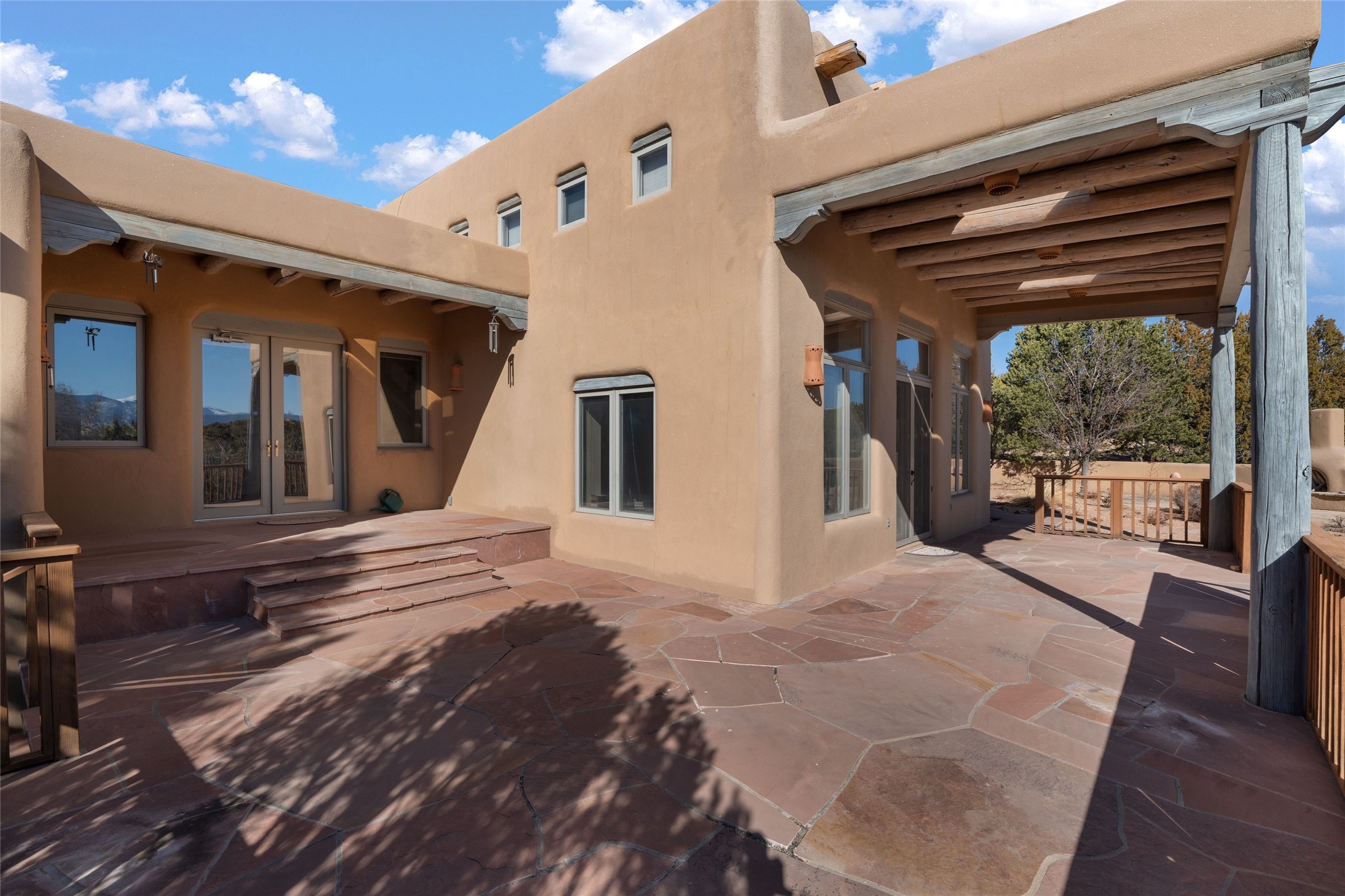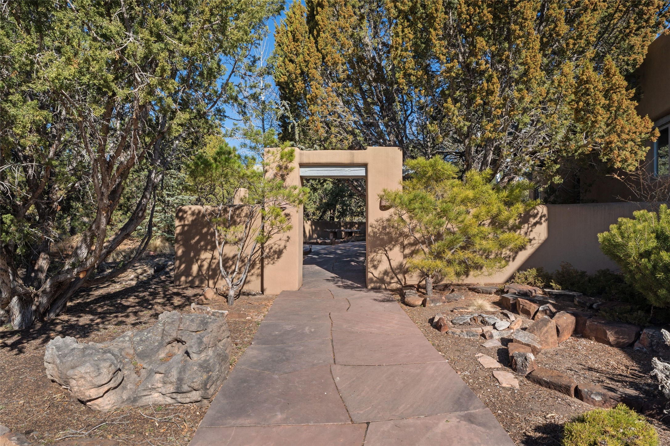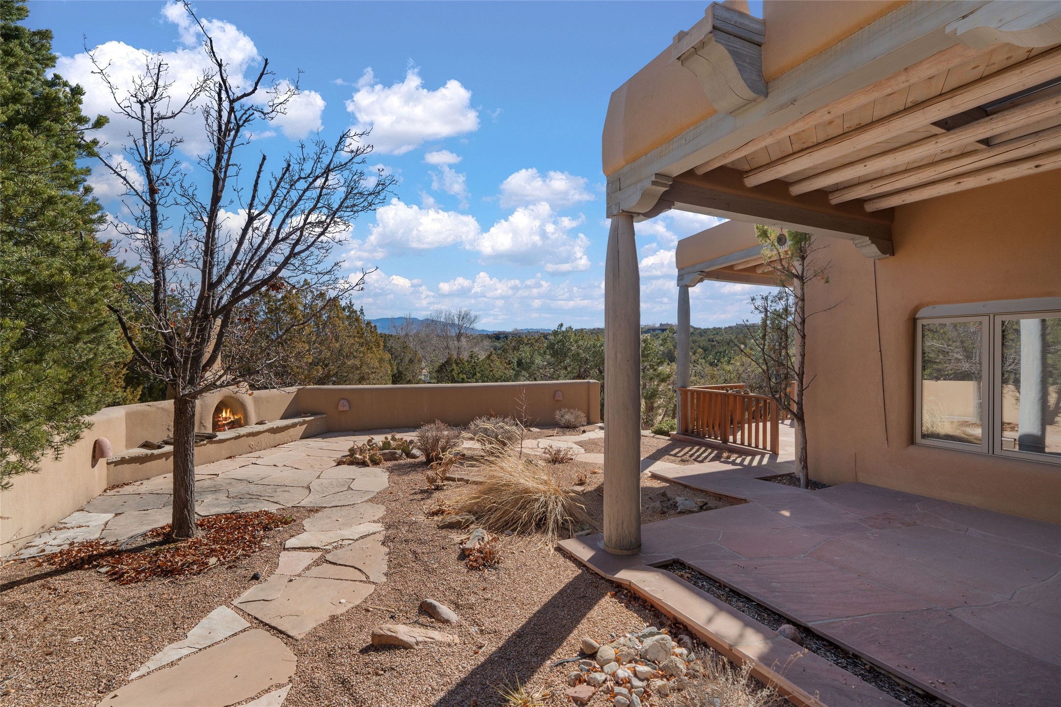 Expansive Pueblo-style home located in the exclusive gated community of Colinas Verdes. This impressive 3, 683 sq. ft. residence offers three bedrooms and 2.5 bathrooms complemented by a well-appointed 1,157 sq. ft attached 2-bedroom 2 bath guesthouse. Set on a generous 2.56 acres, this property provides ample space and stunning views. Step outside to explore a range of outdoor spaces, including multiple portals and decks that blend seamlessly with the beautiful New Mexico landscape. The courtyard, complete with an outdoor kiva, offers a perfect venue for relaxation and enjoying the breathtaking surroundings. This home showcases exceptional craftsmanship and attention to detail. Enjoy the beauty of transom windows that fill the space with natural light, traditional vigas and beams that enhance the architectural design, and beautifully faux-finished walls with decorative nichos. The large great room is a focal point of the home, featuring a substantial kiva fireplace and wet bar with seating for four, making it ideal for gatherings or quiet evenings. Culinary enthusiasts will find joy in the chef's kitchen, which features a central island and breakfast area perfect for casual dining. A separate dining room provides an elegant setting for more formal meals and entertaining. For those with a passion for cars or additional storage needs, the property includes a generous five-car garage. Convenient location with easy access to all the cultural, culinary and recreational amenities of Santa Fe.