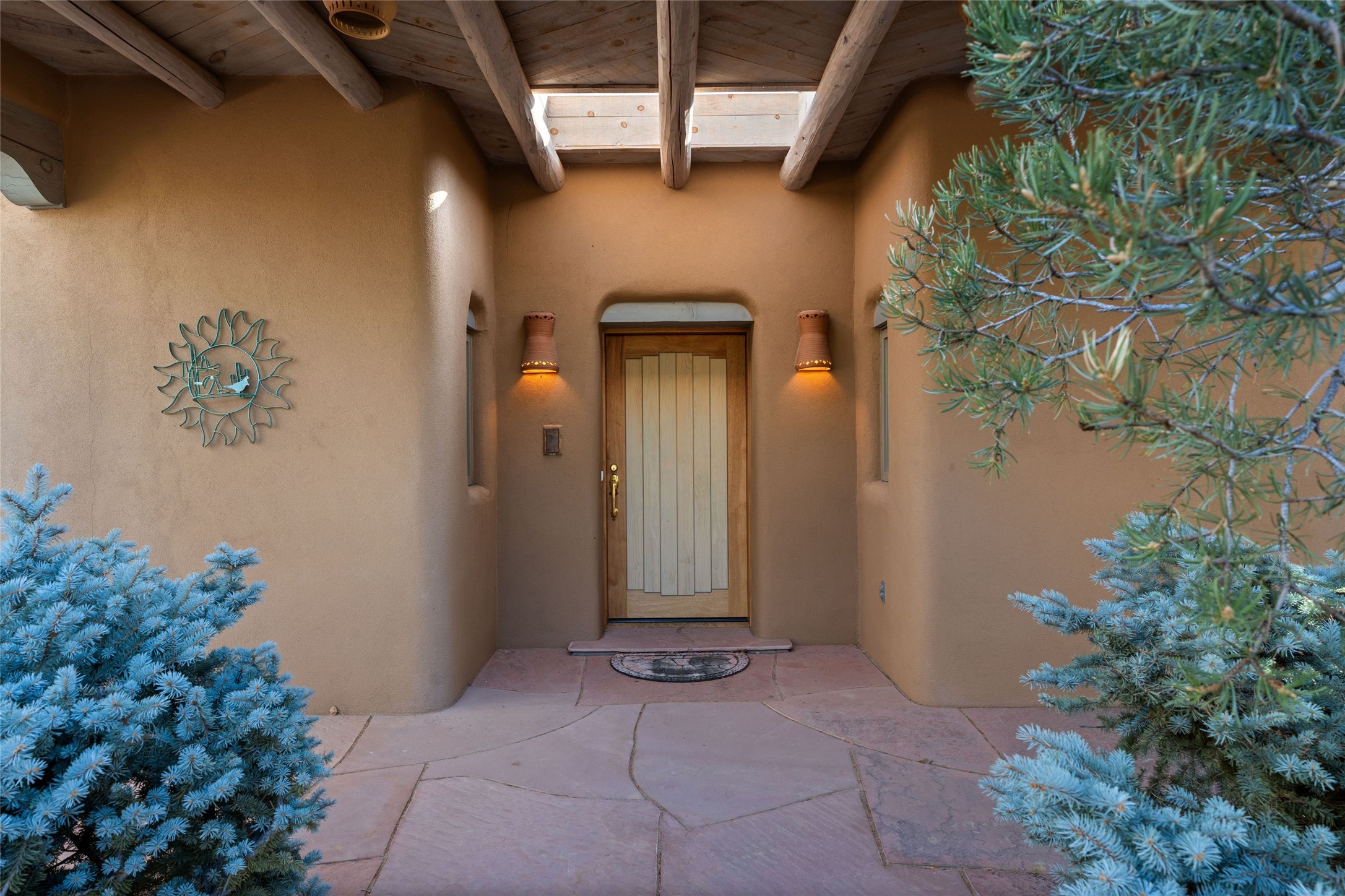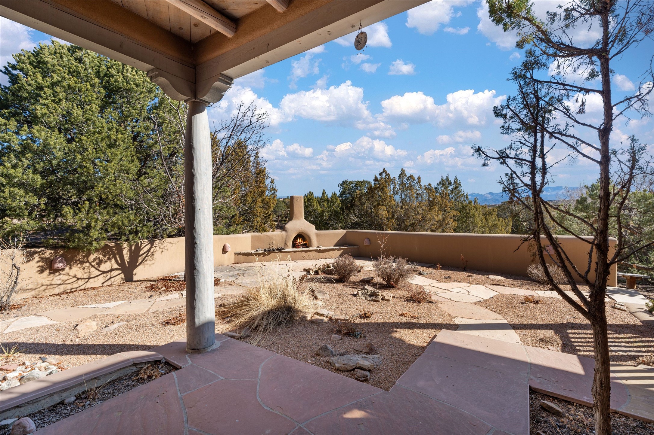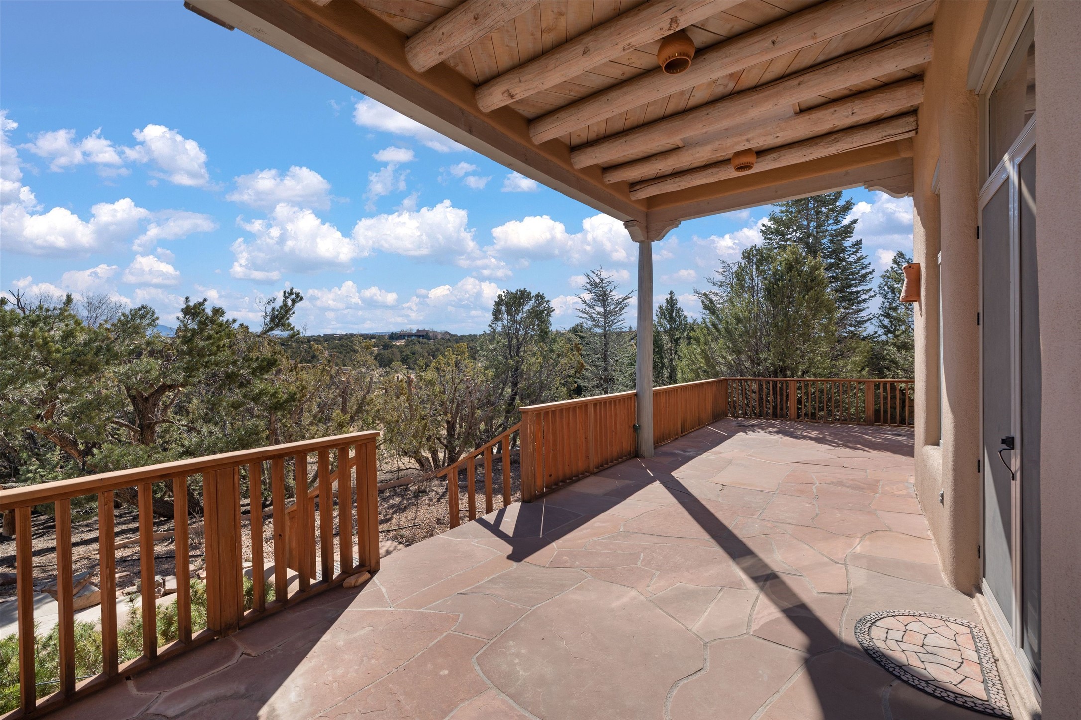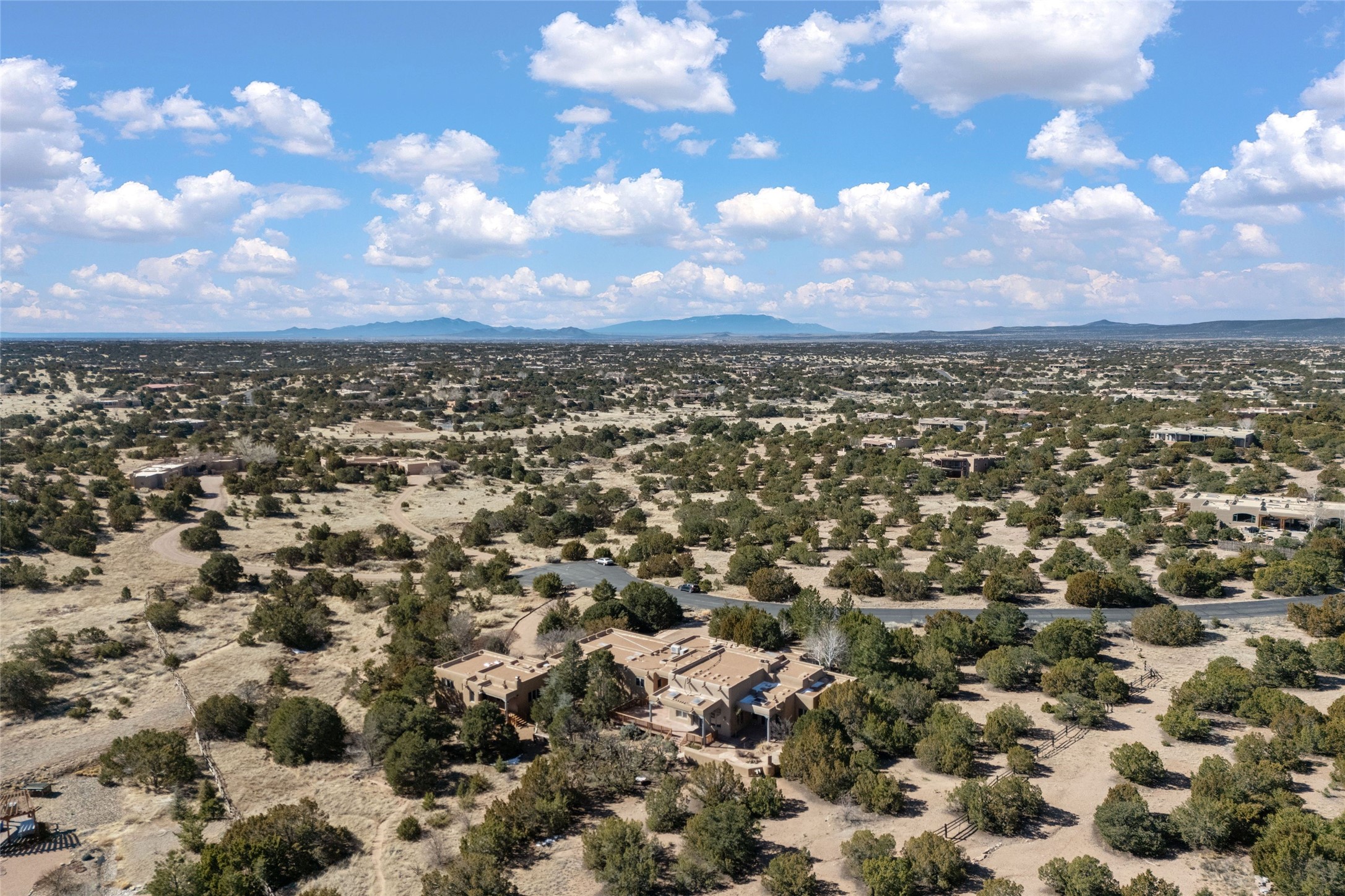 Expansive Pueblo-style home located in the exclusive gated community of Colinas Verdes. This impressive 3, 683 sq. ft. residence offers three bedrooms and 2.5 bathrooms complemented by a well-appointed 1,157 sq. ft attached 2-bedroom 2 bath guesthouse. Set on a generous 2.56 acres, this property provides ample space and stunning views. Step outside to explore a range of outdoor spaces, including multiple portals and decks that blend seamlessly with the beautiful New Mexico landscape. The courtyard, complete with an outdoor kiva, offers a perfect venue for relaxation and enjoying the breathtaking surroundings. This home showcases exceptional craftsmanship and attention to detail. Enjoy the beauty of transom windows that fill the space with natural light, traditional vigas and beams that enhance the architectural design, and beautifully faux-finished walls with decorative nichos. The large great room is a focal point of the home, featuring a substantial kiva fireplace and wet bar with seating for four, making it ideal for gatherings or quiet evenings. Culinary enthusiasts will find joy in the chef's kitchen, which features a central island and breakfast area perfect for casual dining. A separate dining room provides an elegant setting for more formal meals and entertaining. For those with a passion for cars or additional storage needs, the property includes a generous five-car garage. Convenient location with easy access to all the cultural, culinary and recreational amenities of Santa Fe.