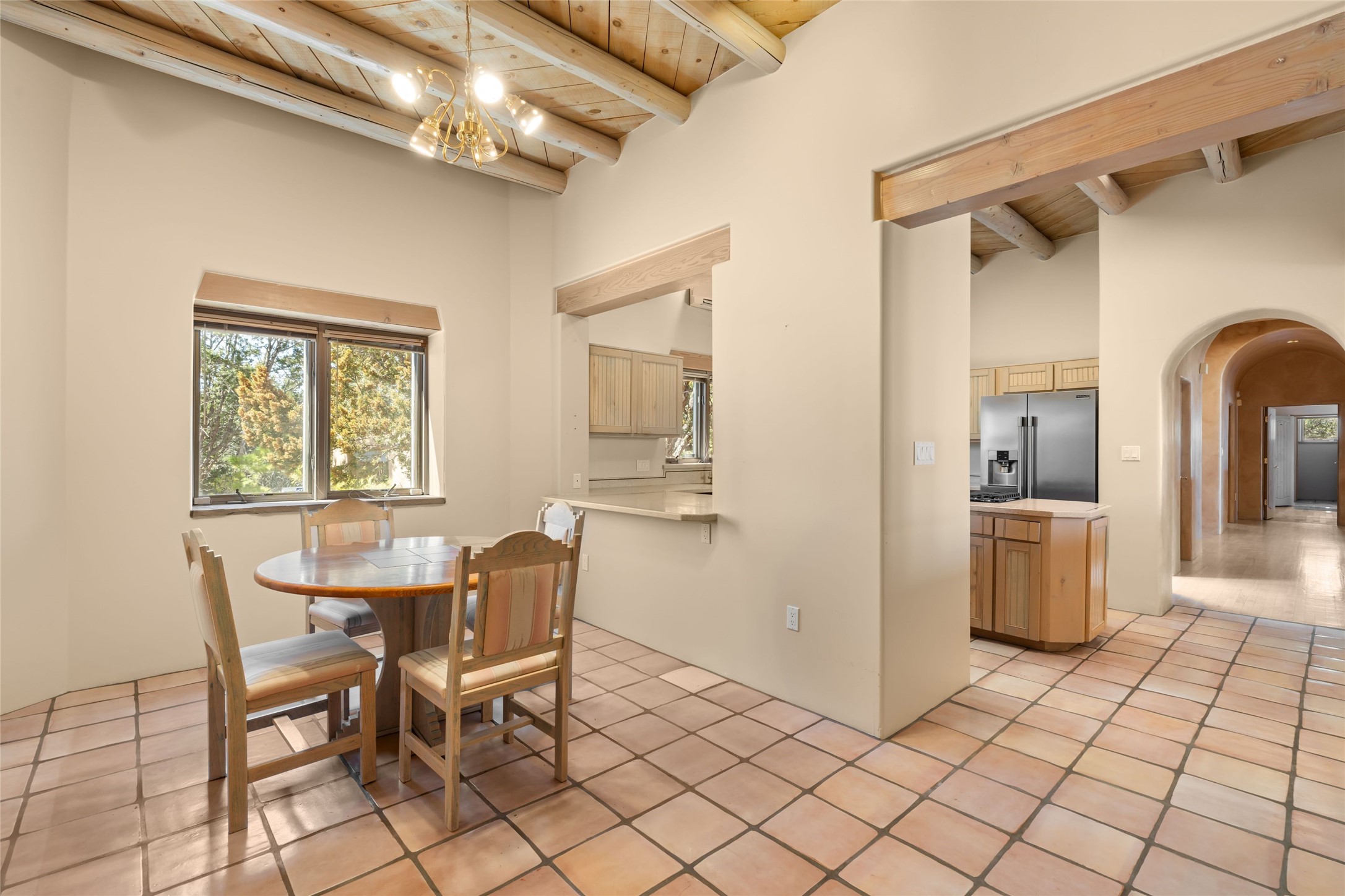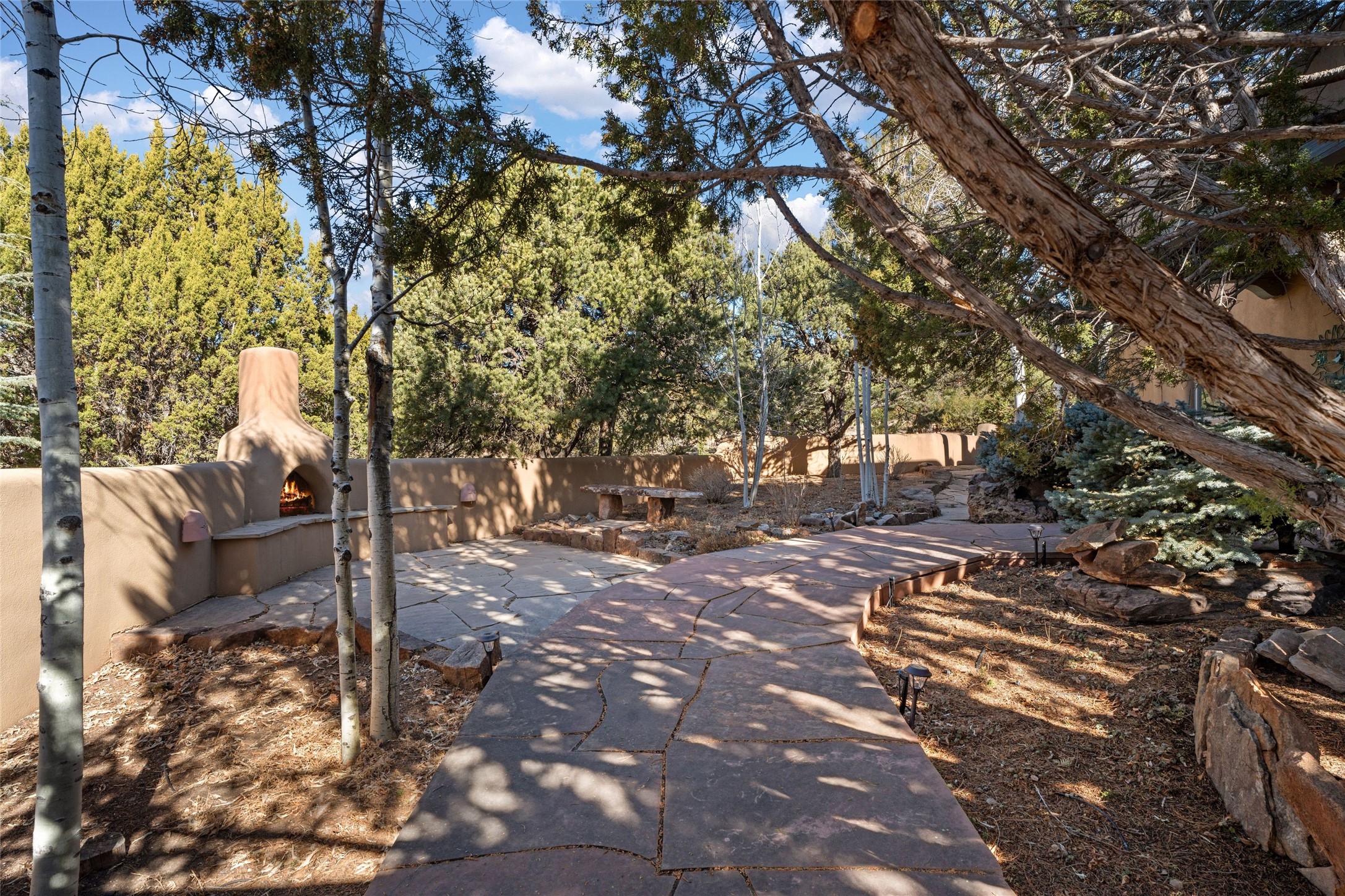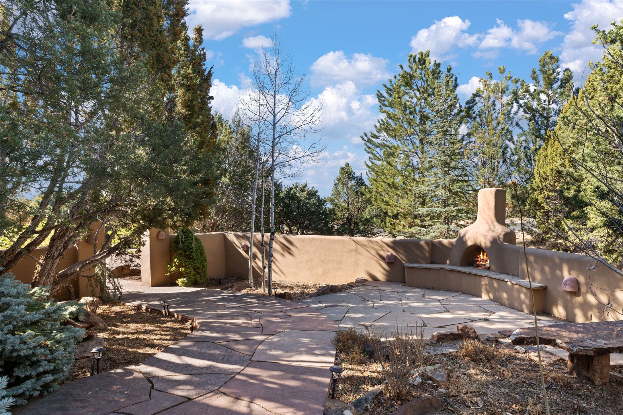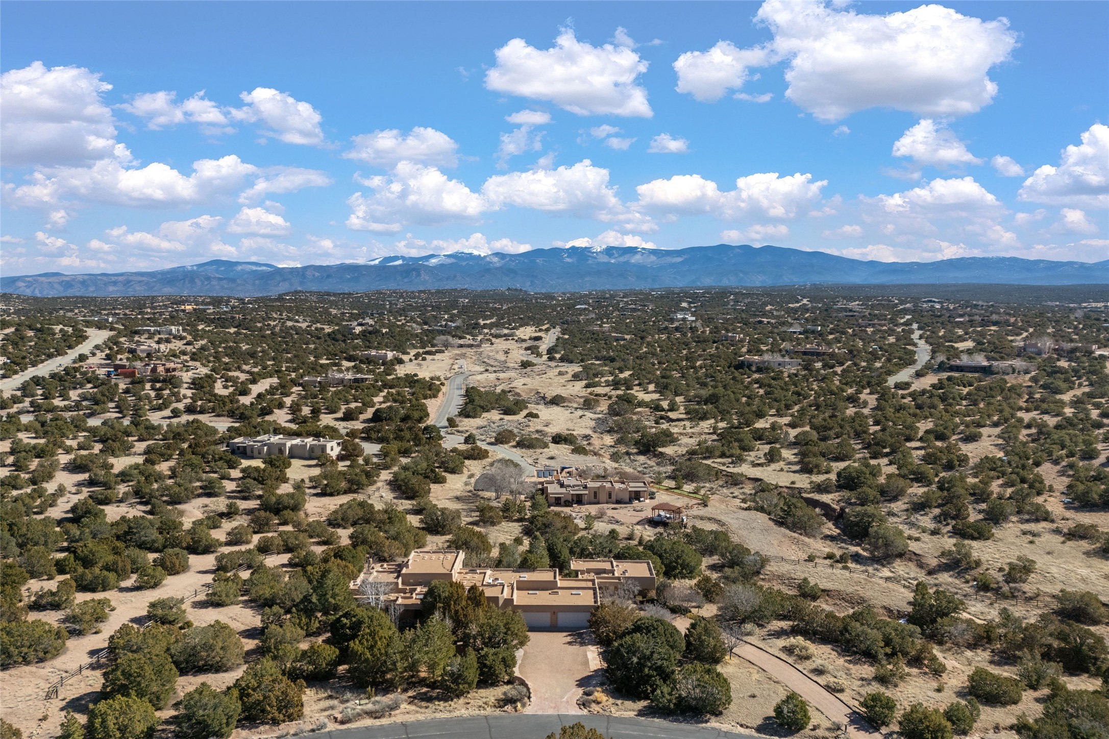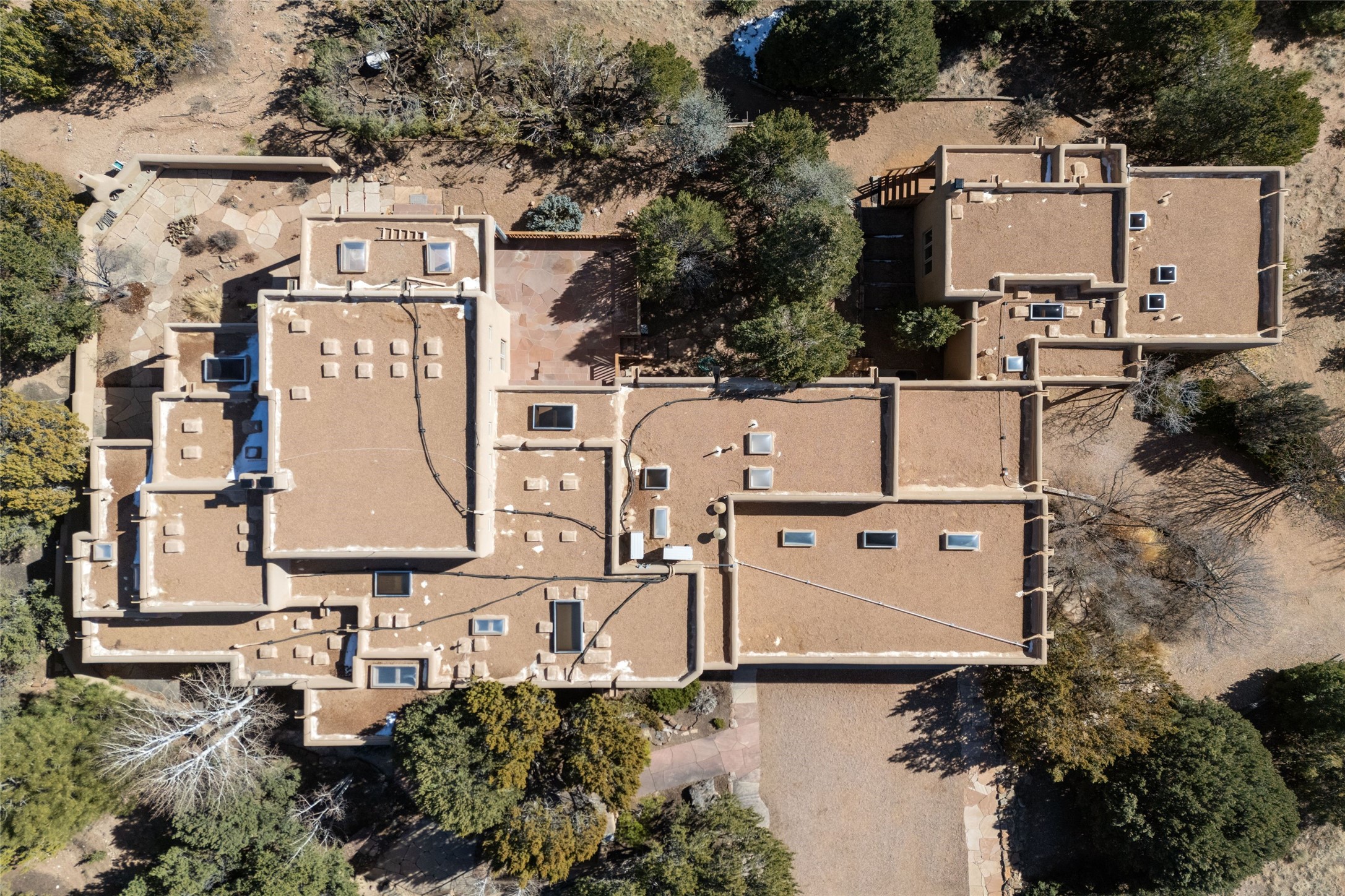 Expansive Pueblo-style home located in the exclusive gated community of Colinas Verdes. This impressive 3, 683 sq. ft. residence offers three bedrooms and 2.5 bathrooms complemented by a well-appointed 1,157 sq. ft attached 2-bedroom 2 bath guesthouse. Set on a generous 2.56 acres, this property provides ample space and stunning views. Step outside to explore a range of outdoor spaces, including multiple portals and decks that blend seamlessly with the beautiful New Mexico landscape. The courtyard, complete with an outdoor kiva, offers a perfect venue for relaxation and enjoying the breathtaking surroundings. This home showcases exceptional craftsmanship and attention to detail. Enjoy the beauty of transom windows that fill the space with natural light, traditional vigas and beams that enhance the architectural design, and beautifully faux-finished walls with decorative nichos. The large great room is a focal point of the home, featuring a substantial kiva fireplace and wet bar with seating for four, making it ideal for gatherings or quiet evenings. Culinary enthusiasts will find joy in the chef's kitchen, which features a central island and breakfast area perfect for casual dining. A separate dining room provides an elegant setting for more formal meals and entertaining. For those with a passion for cars or additional storage needs, the property includes a generous five-car garage. Convenient location with easy access to all the cultural, culinary and recreational amenities of Santa Fe.