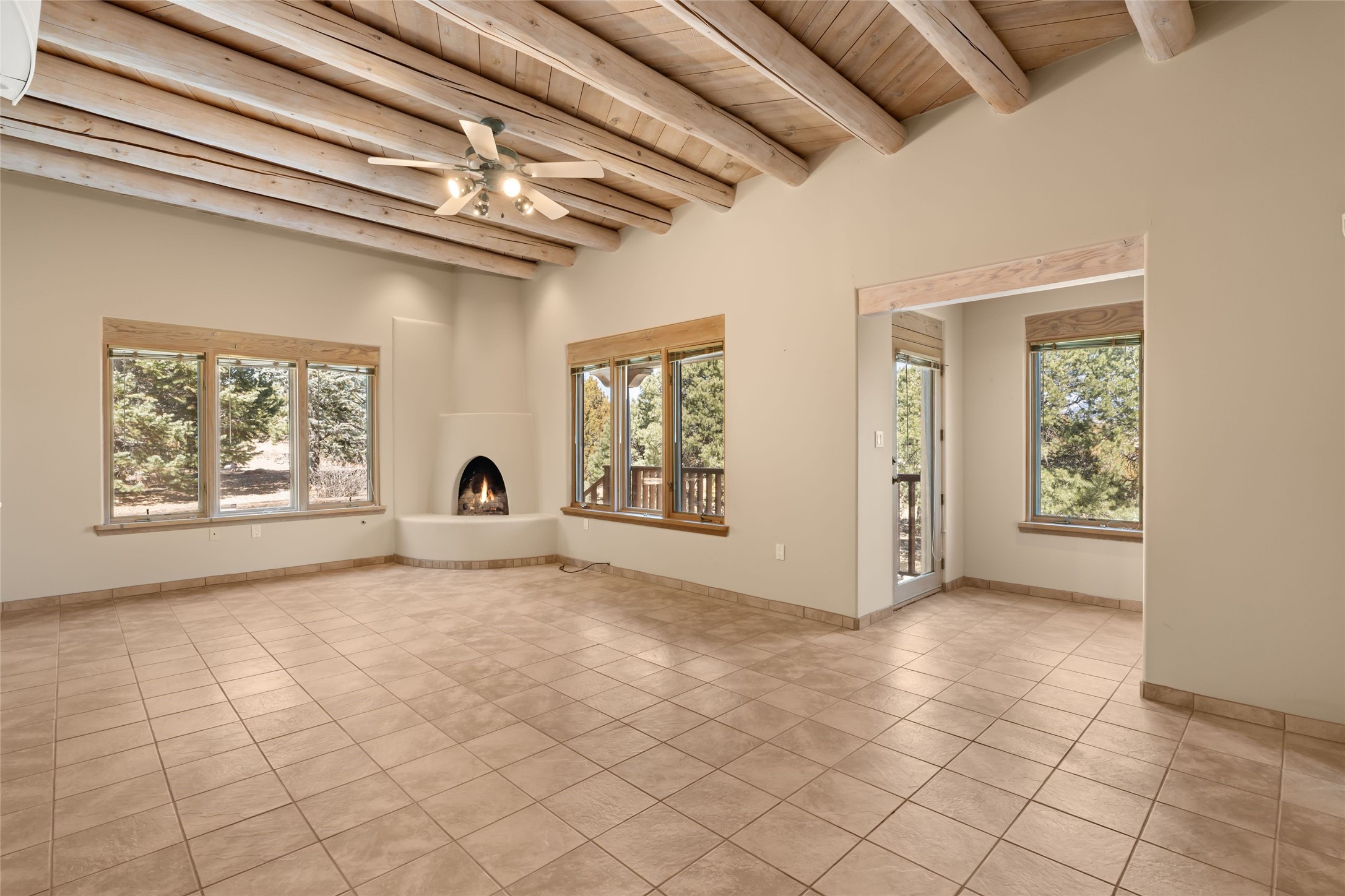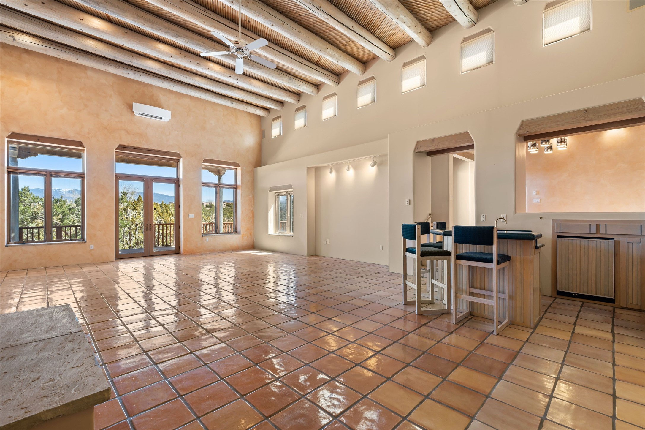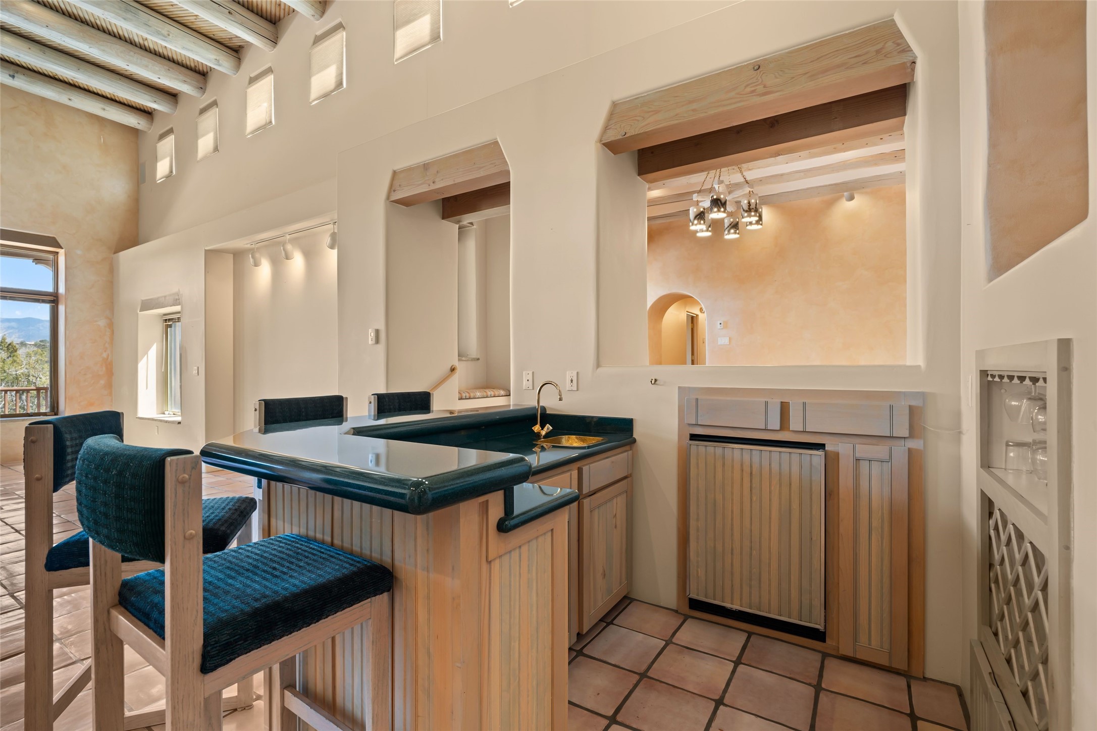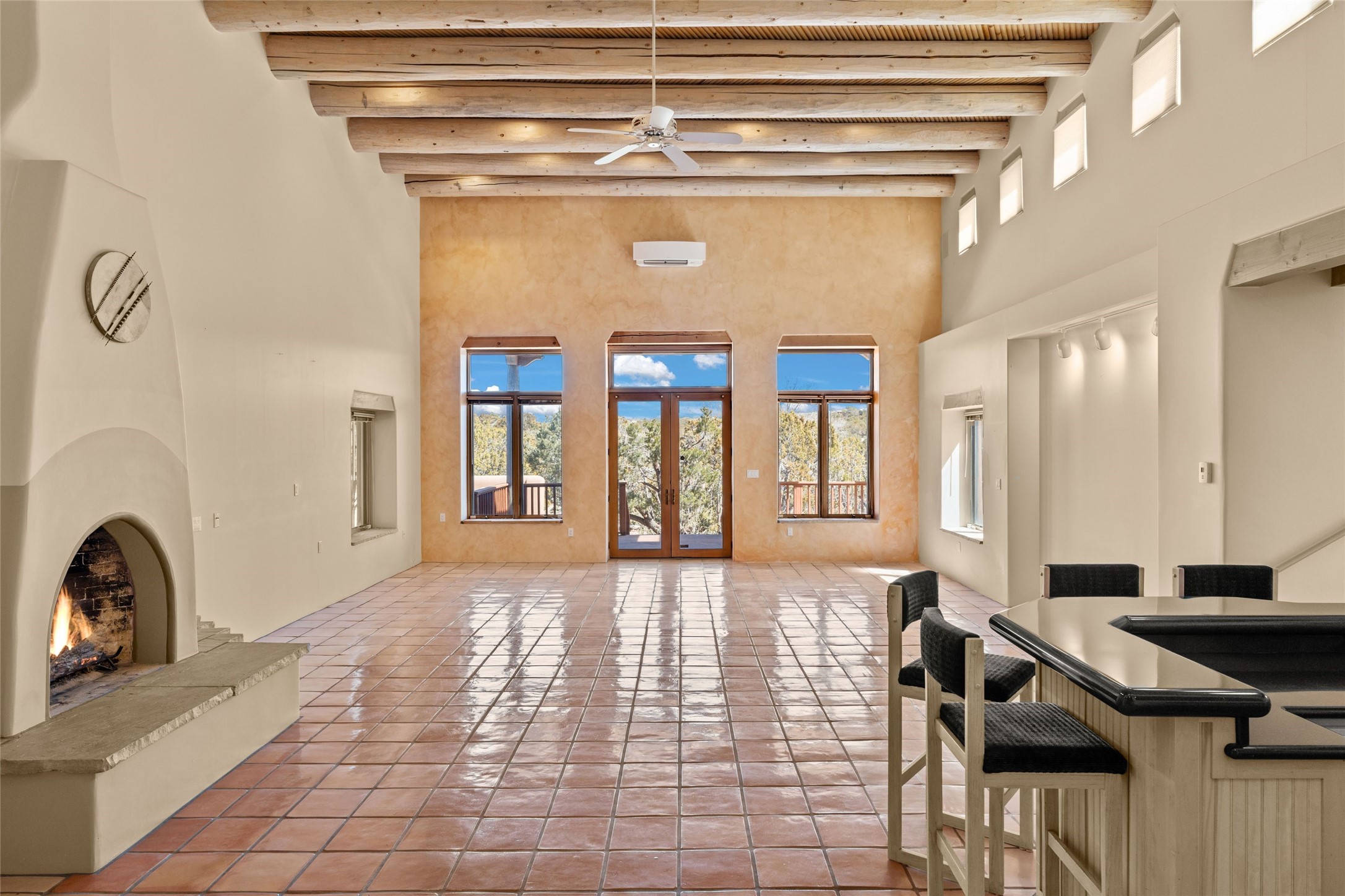 Expansive Pueblo-style home located in the exclusive gated community of Colinas Verdes. This impressive 3, 683 sq. ft. residence offers three bedrooms and 2.5 bathrooms complemented by a well-appointed 1,157 sq. ft attached 2-bedroom 2 bath guesthouse. Set on a generous 2.56 acres, this property provides ample space and stunning views. Step outside to explore a range of outdoor spaces, including multiple portals and decks that blend seamlessly with the beautiful New Mexico landscape. The courtyard, complete with an outdoor kiva, offers a perfect venue for relaxation and enjoying the breathtaking surroundings. This home showcases exceptional craftsmanship and attention to detail. Enjoy the beauty of transom windows that fill the space with natural light, traditional vigas and beams that enhance the architectural design, and beautifully faux-finished walls with decorative nichos. The large great room is a focal point of the home, featuring a substantial kiva fireplace and wet bar with seating for four, making it ideal for gatherings or quiet evenings. Culinary enthusiasts will find joy in the chef's kitchen, which features a central island and breakfast area perfect for casual dining. A separate dining room provides an elegant setting for more formal meals and entertaining. For those with a passion for cars or additional storage needs, the property includes a generous five-car garage. Convenient location with easy access to all the cultural, culinary and recreational amenities of Santa Fe.