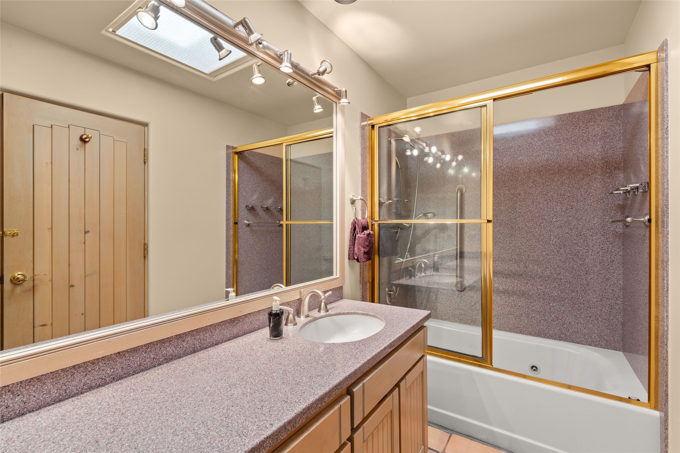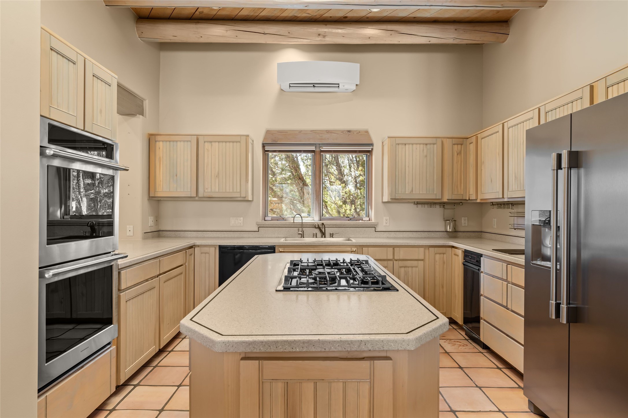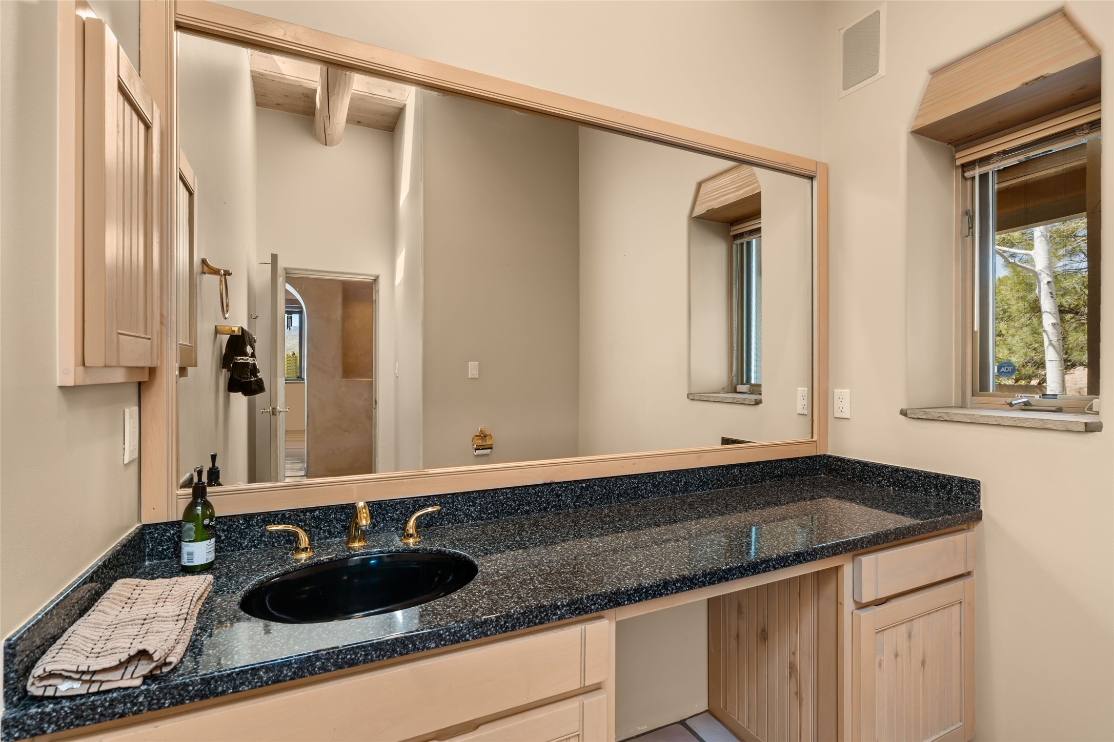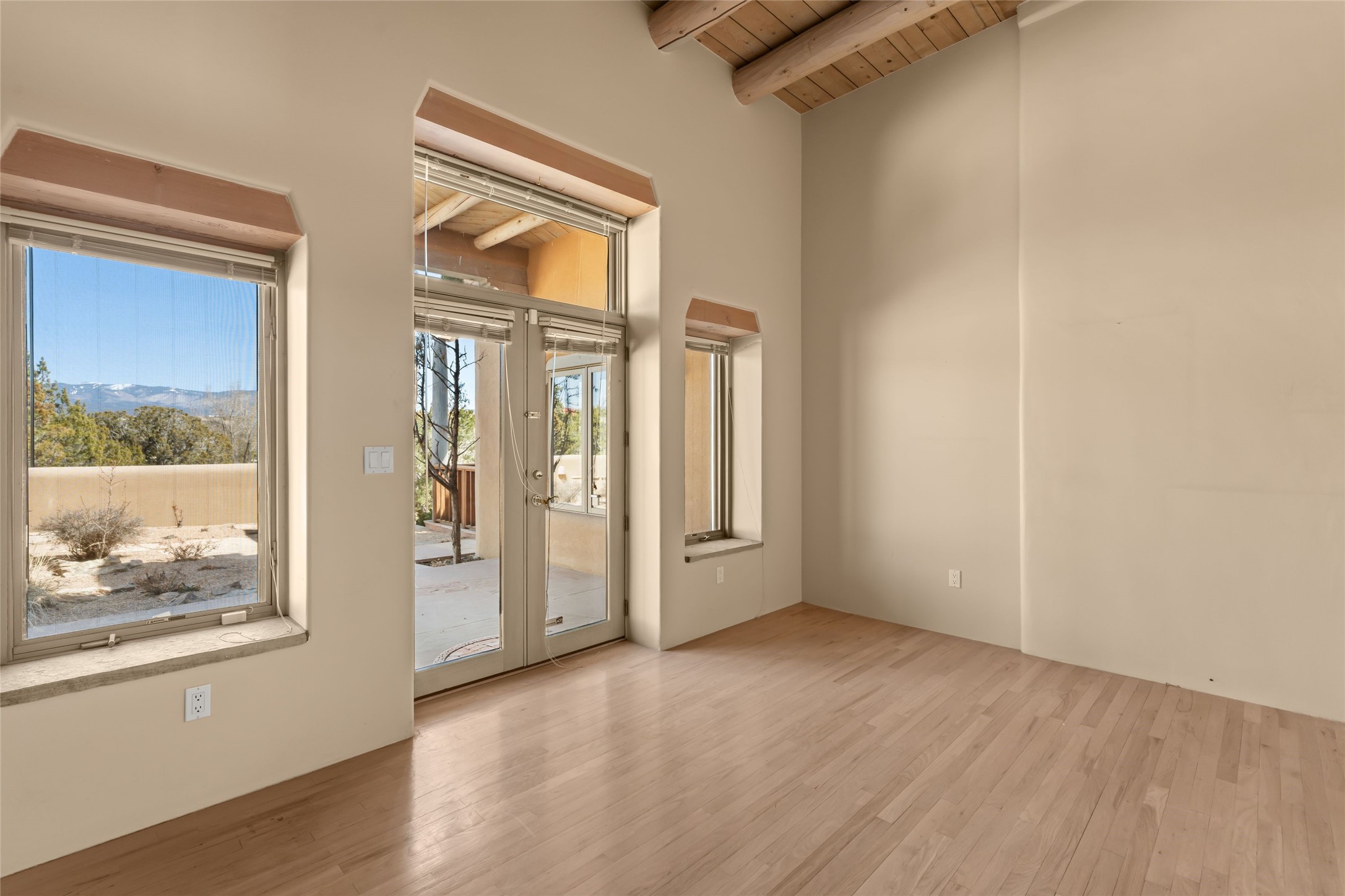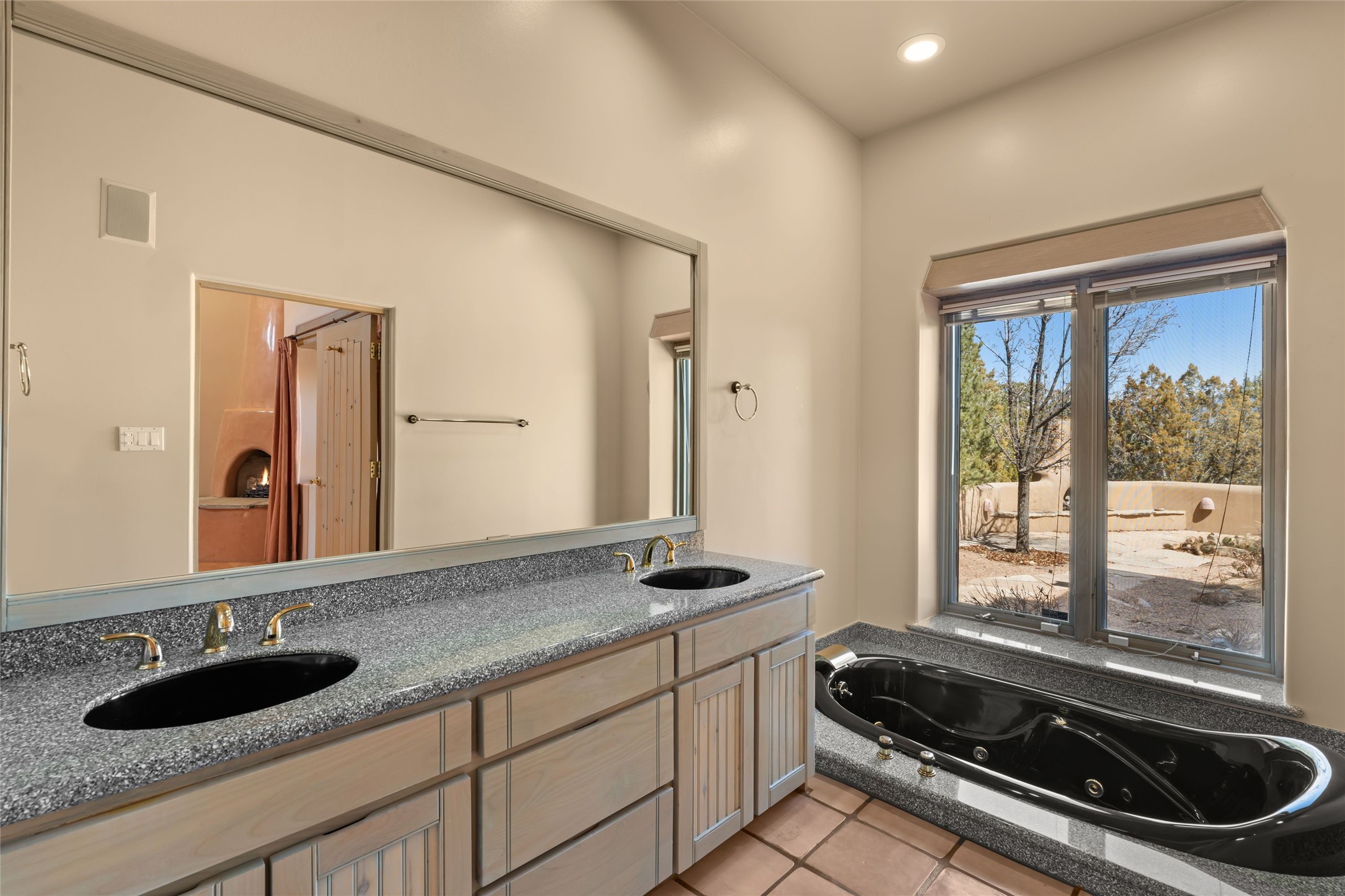Expansive Pueblo-style home located in the exclusive gated community of Colinas Verdes. This impressive 3, 683 sq. ft. residence offers three bedrooms and 2.5 bathrooms complemented by a well-appointed 1,157 sq. ft attached 2-bedroom 2 bath guesthouse. Set on a generous 2.56 acres, this property provides ample space and stunning views. Step outside to explore a range of outdoor spaces, including multiple portals and decks that blend seamlessly with the beautiful New Mexico landscape. The courtyard, complete with an outdoor kiva, offers a perfect venue for relaxation and enjoying the breathtaking surroundings. This home showcases exceptional craftsmanship and attention to detail. Enjoy the beauty of transom windows that fill the space with natural light, traditional vigas and beams that enhance the architectural design, and beautifully faux-finished walls with decorative nichos. The large great room is a focal point of the home, featuring a substantial kiva fireplace and wet bar with seating for four, making it ideal for gatherings or quiet evenings. Culinary enthusiasts will find joy in the chef's kitchen, which features a central island and breakfast area perfect for casual dining. A separate dining room provides an elegant setting for more formal meals and entertaining. For those with a passion for cars or additional storage needs, the property includes a generous five-car garage. Convenient location with easy access to all the cultural, culinary and recreational amenities of Santa Fe.
