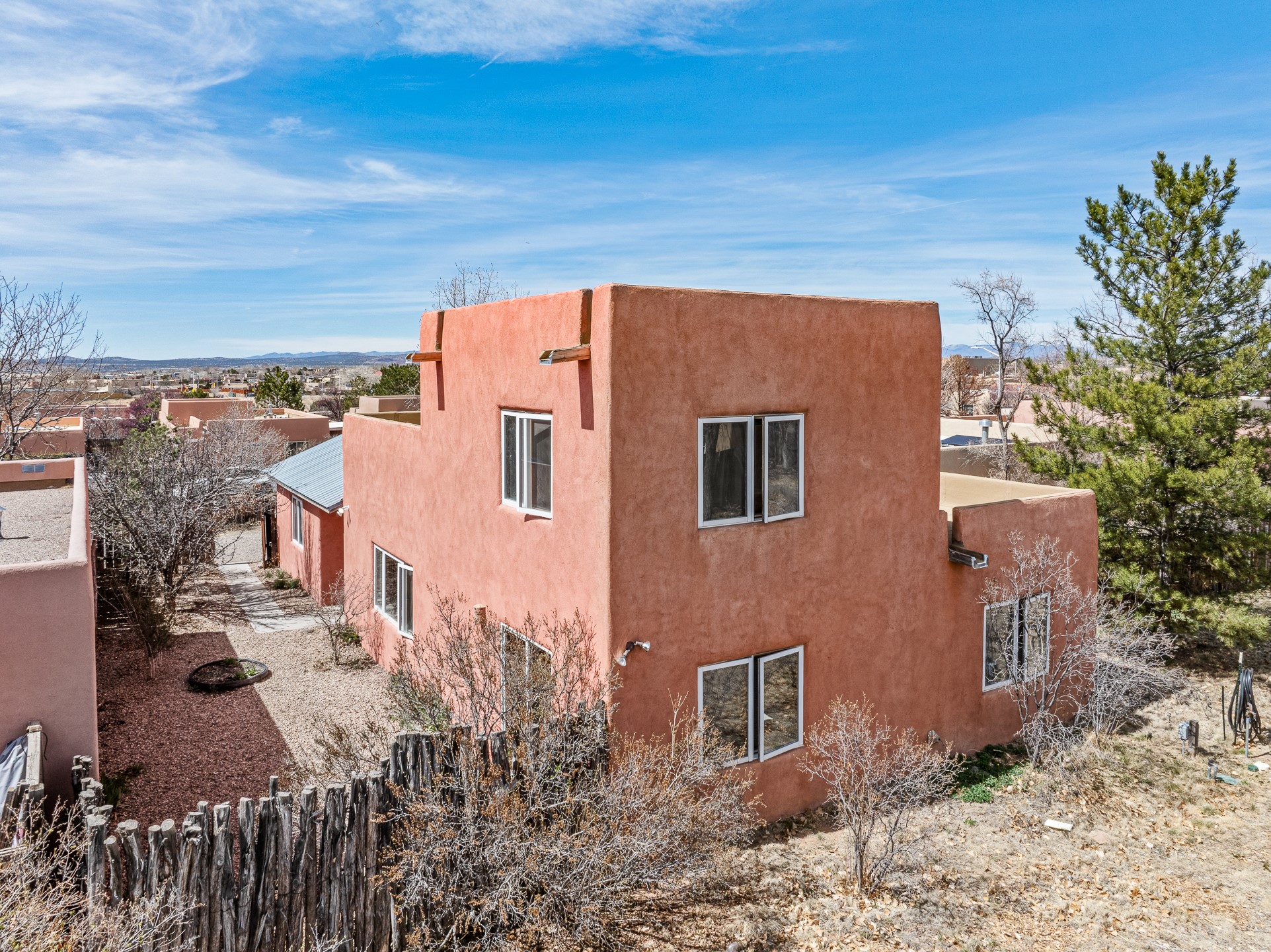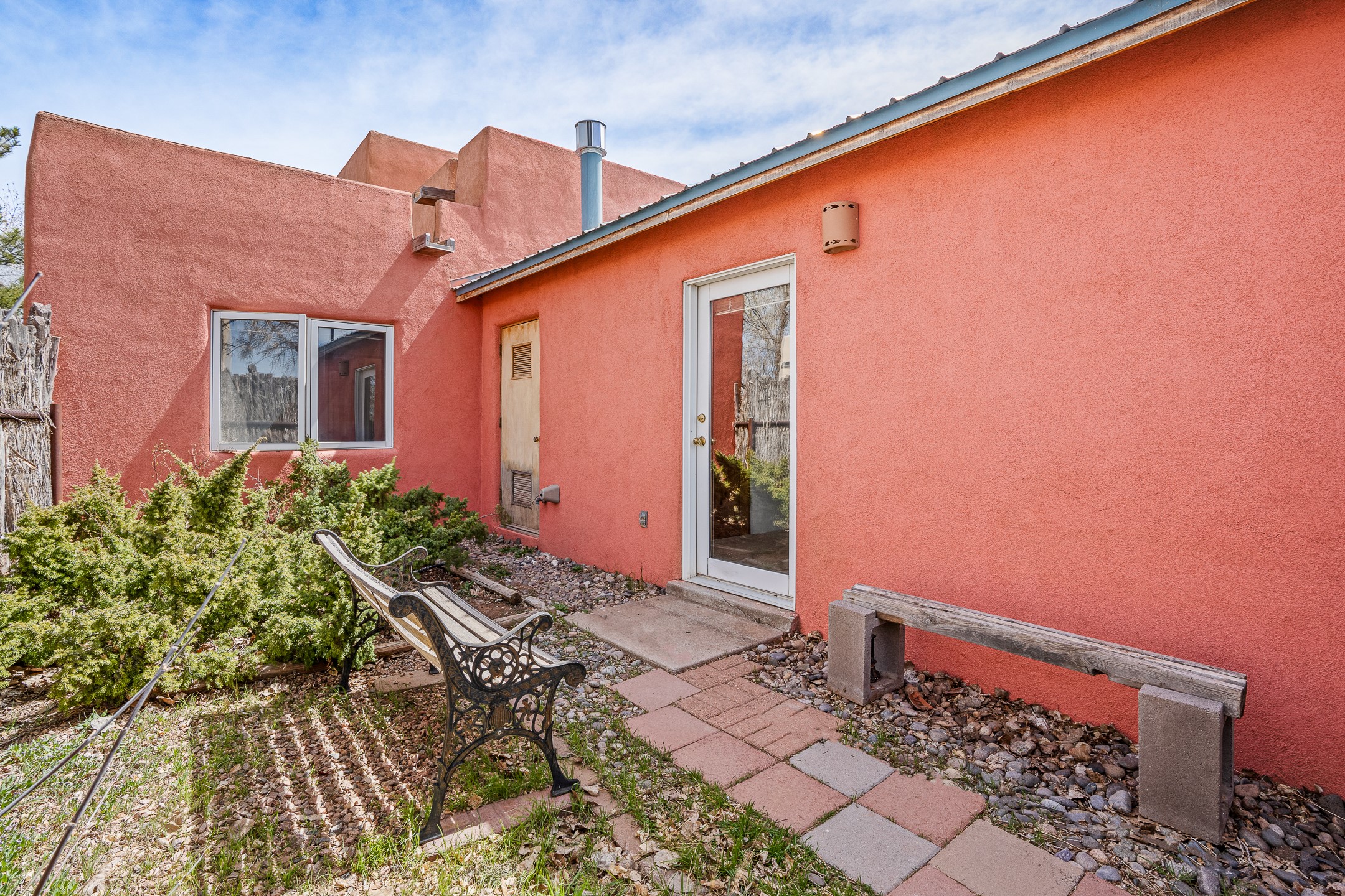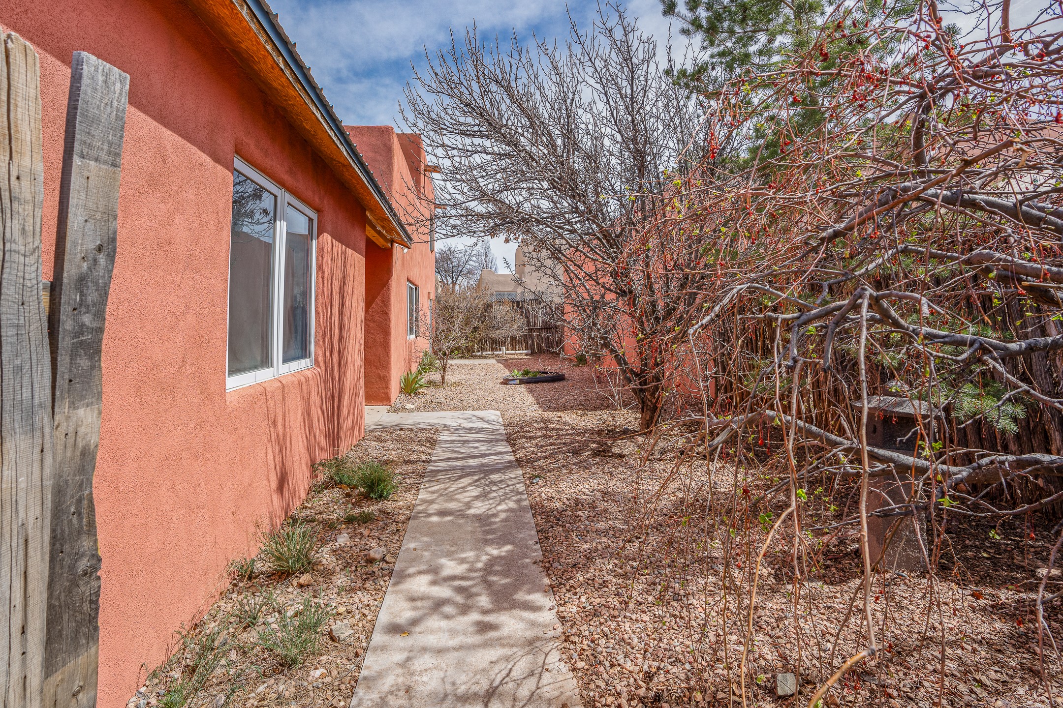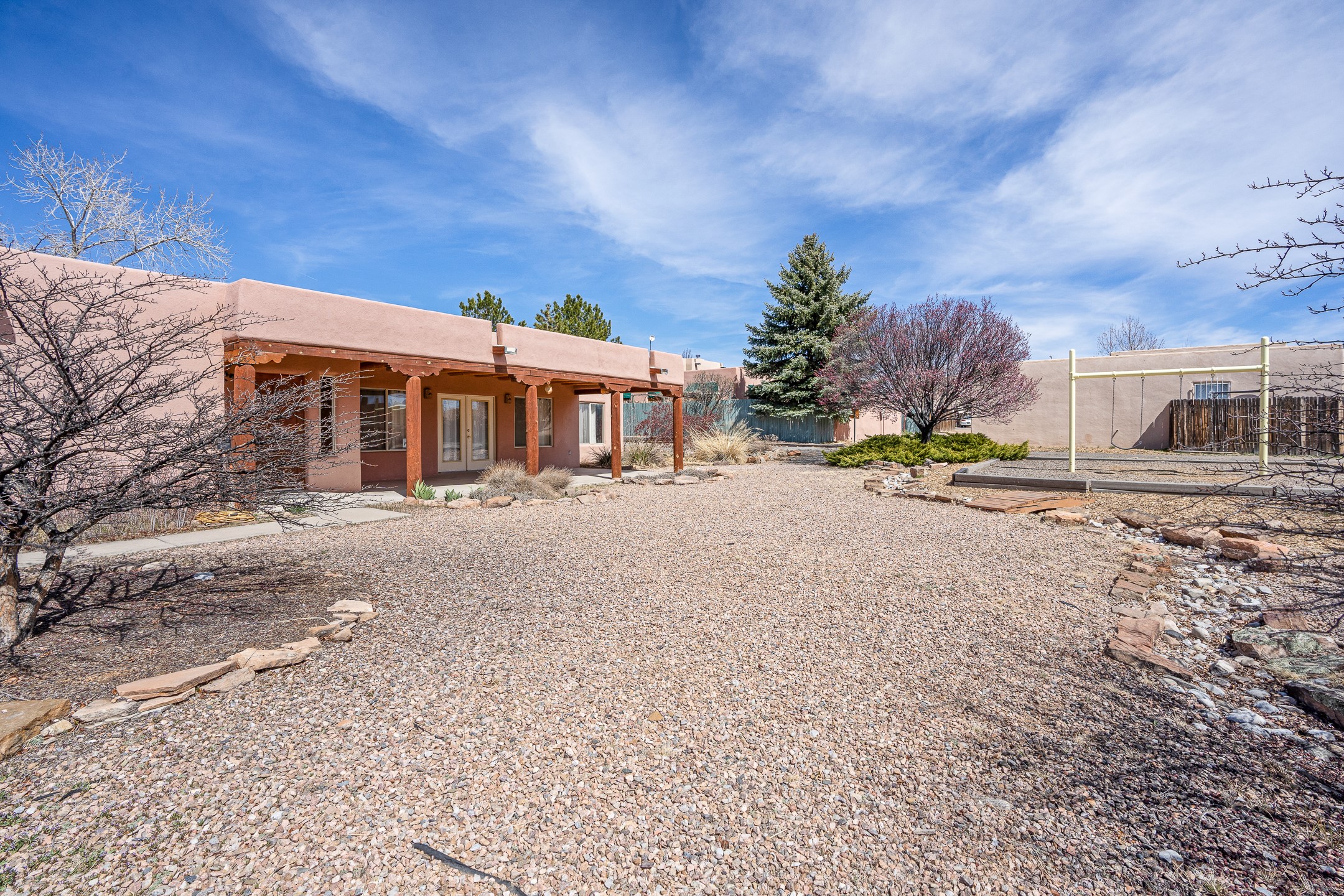 Discover the perfect blend of country charm and city convenience with this delightful four-bedroom, three-bathroom home, nestled in a serene Southside cul-de-sac. The main living area boasts rustic vigas and soaring high ceilings, creating a warm and inviting atmosphere. The spacious kitchen is bathed in natural light, making it a joy to cook and entertain. Two of the four bedrooms come with their own private bathrooms, offering comfort and privacy.The versatile downstairs bedroom suite can function as a separate apartment, complete with its own entrance and private fenced yard, ideal for guests or rental income. The home opens to a tranquil, fenced yard with low-maintenance landscaping, perfect for relaxing or entertaining.Situated next to a private greenbelt with scenic walking paths, this home is just two houses away from the community clubhouse, which is perfect for hosting events. Having been lovingly maintained by the same owner for 25 years, this home is filled with natural light and offers a peaceful retreat within the city. With low HOA fees of just $35 per month, this charming home is a rare find. Don't miss the opportunity to make it yours!