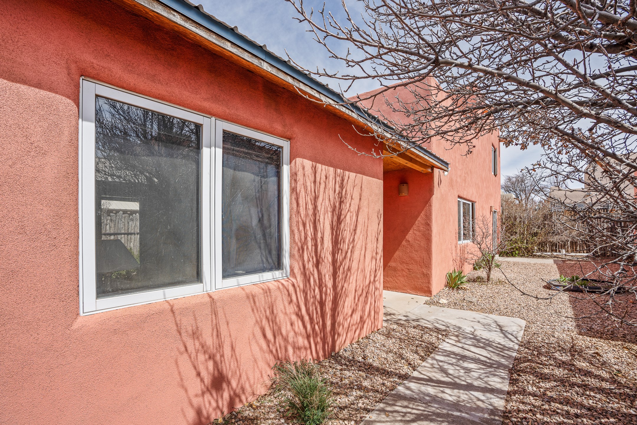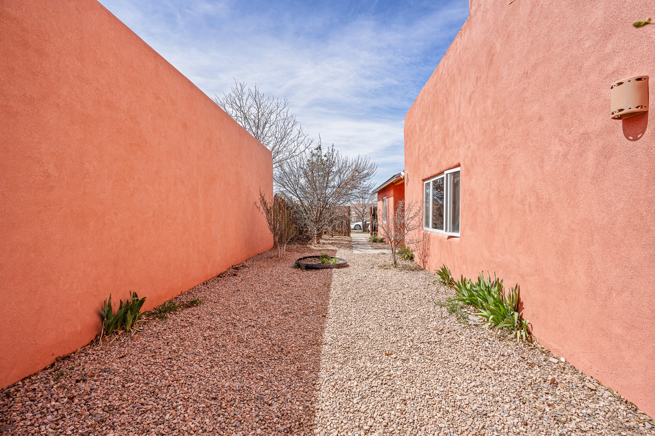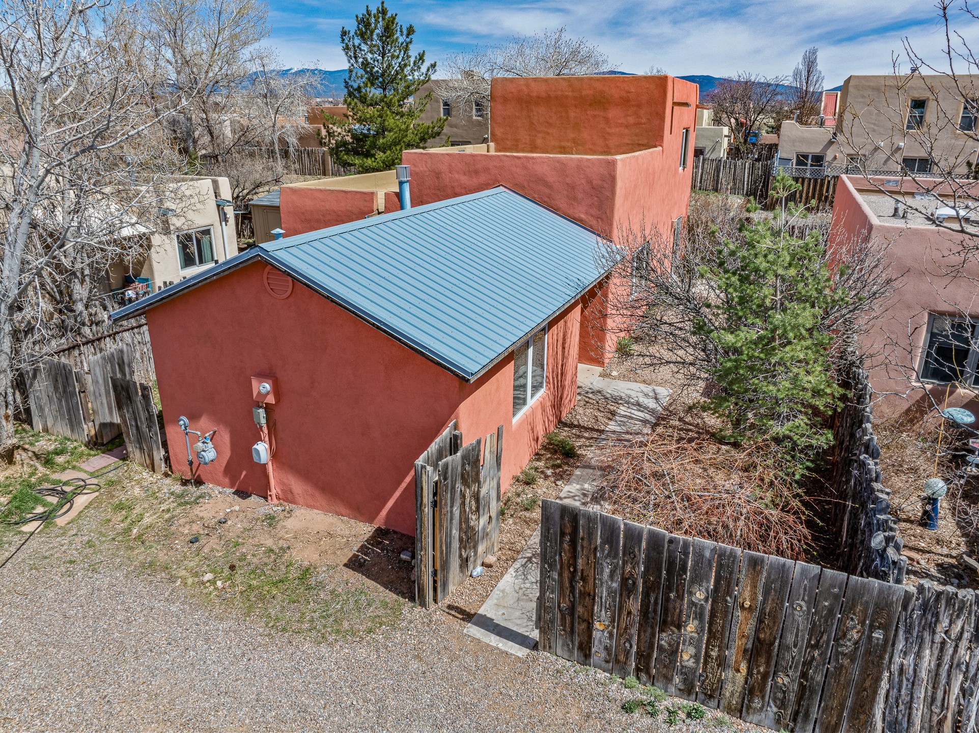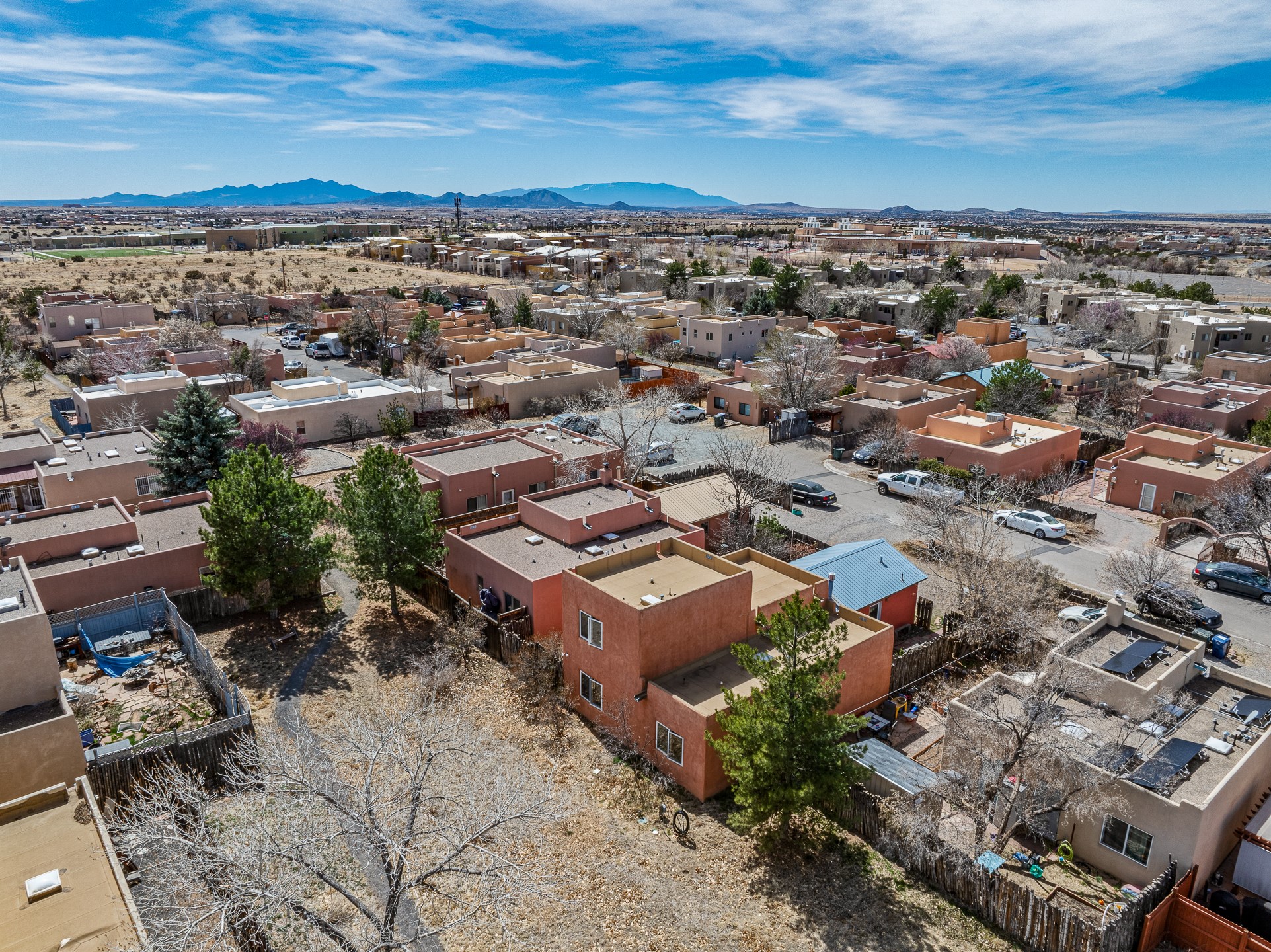 Discover the perfect blend of country charm and city convenience with this delightful four-bedroom, three-bathroom home, nestled in a serene Southside cul-de-sac. The main living area boasts rustic vigas and soaring high ceilings, creating a warm and inviting atmosphere. The spacious kitchen is bathed in natural light, making it a joy to cook and entertain. Two of the four bedrooms come with their own private bathrooms, offering comfort and privacy.The versatile downstairs bedroom suite can function as a separate apartment, complete with its own entrance and private fenced yard, ideal for guests or rental income. The home opens to a tranquil, fenced yard with low-maintenance landscaping, perfect for relaxing or entertaining.Situated next to a private greenbelt with scenic walking paths, this home is just two houses away from the community clubhouse, which is perfect for hosting events. Having been lovingly maintained by the same owner for 25 years, this home is filled with natural light and offers a peaceful retreat within the city. With low HOA fees of just $35 per month, this charming home is a rare find. Don't miss the opportunity to make it yours!