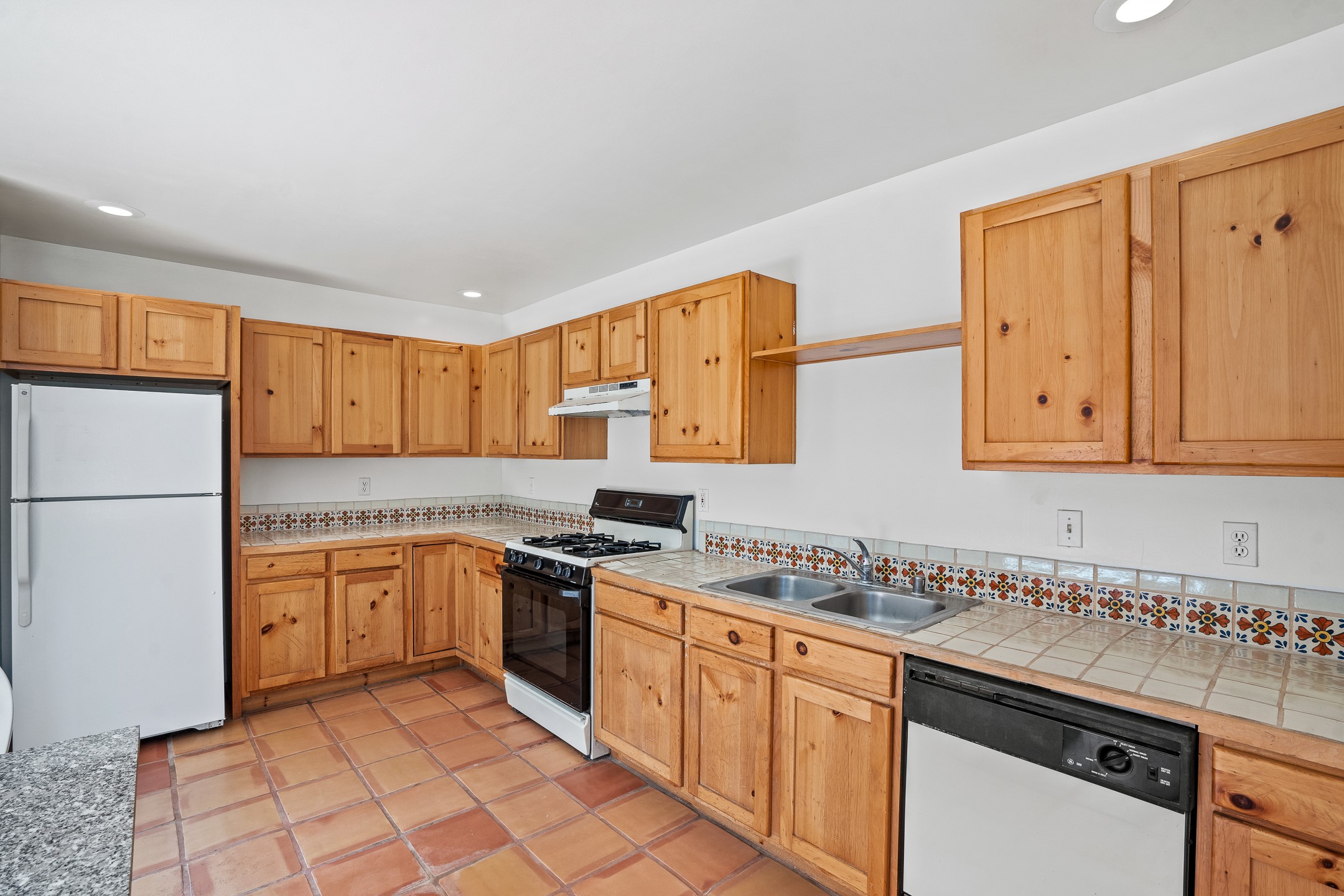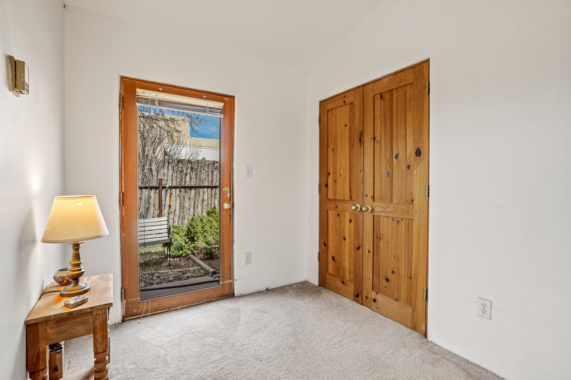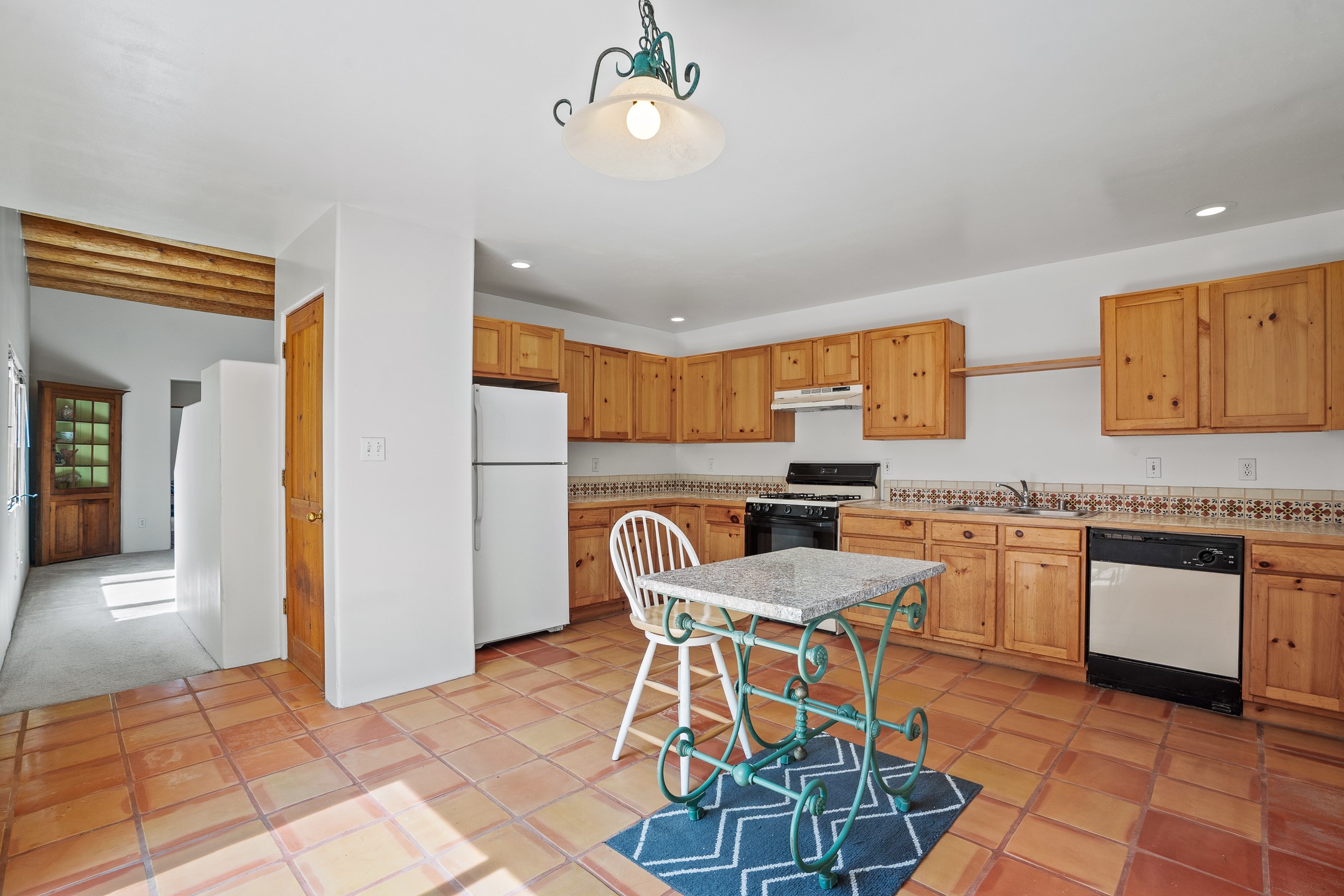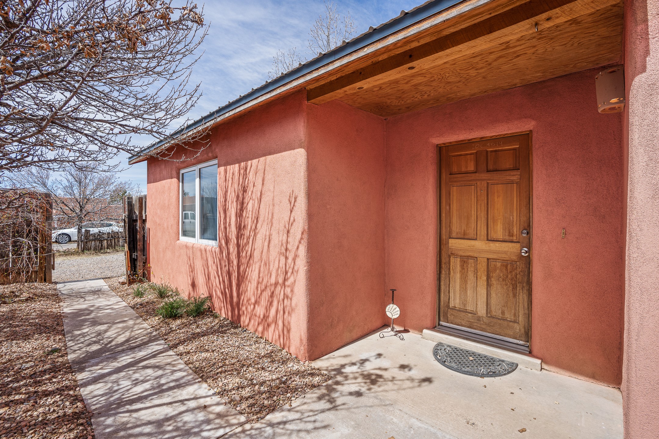 Discover the perfect blend of country charm and city convenience with this delightful four-bedroom, three-bathroom home, nestled in a serene Southside cul-de-sac. The main living area boasts rustic vigas and soaring high ceilings, creating a warm and inviting atmosphere. The spacious kitchen is bathed in natural light, making it a joy to cook and entertain. Two of the four bedrooms come with their own private bathrooms, offering comfort and privacy.The versatile downstairs bedroom suite can function as a separate apartment, complete with its own entrance and private fenced yard, ideal for guests or rental income. The home opens to a tranquil, fenced yard with low-maintenance landscaping, perfect for relaxing or entertaining.Situated next to a private greenbelt with scenic walking paths, this home is just two houses away from the community clubhouse, which is perfect for hosting events. Having been lovingly maintained by the same owner for 25 years, this home is filled with natural light and offers a peaceful retreat within the city. With low HOA fees of just $35 per month, this charming home is a rare find. Don't miss the opportunity to make it yours!