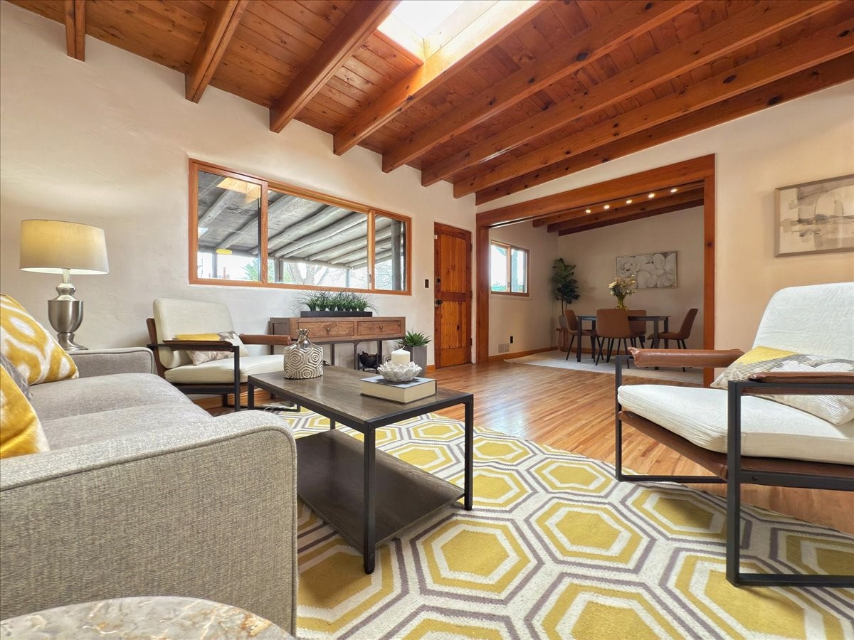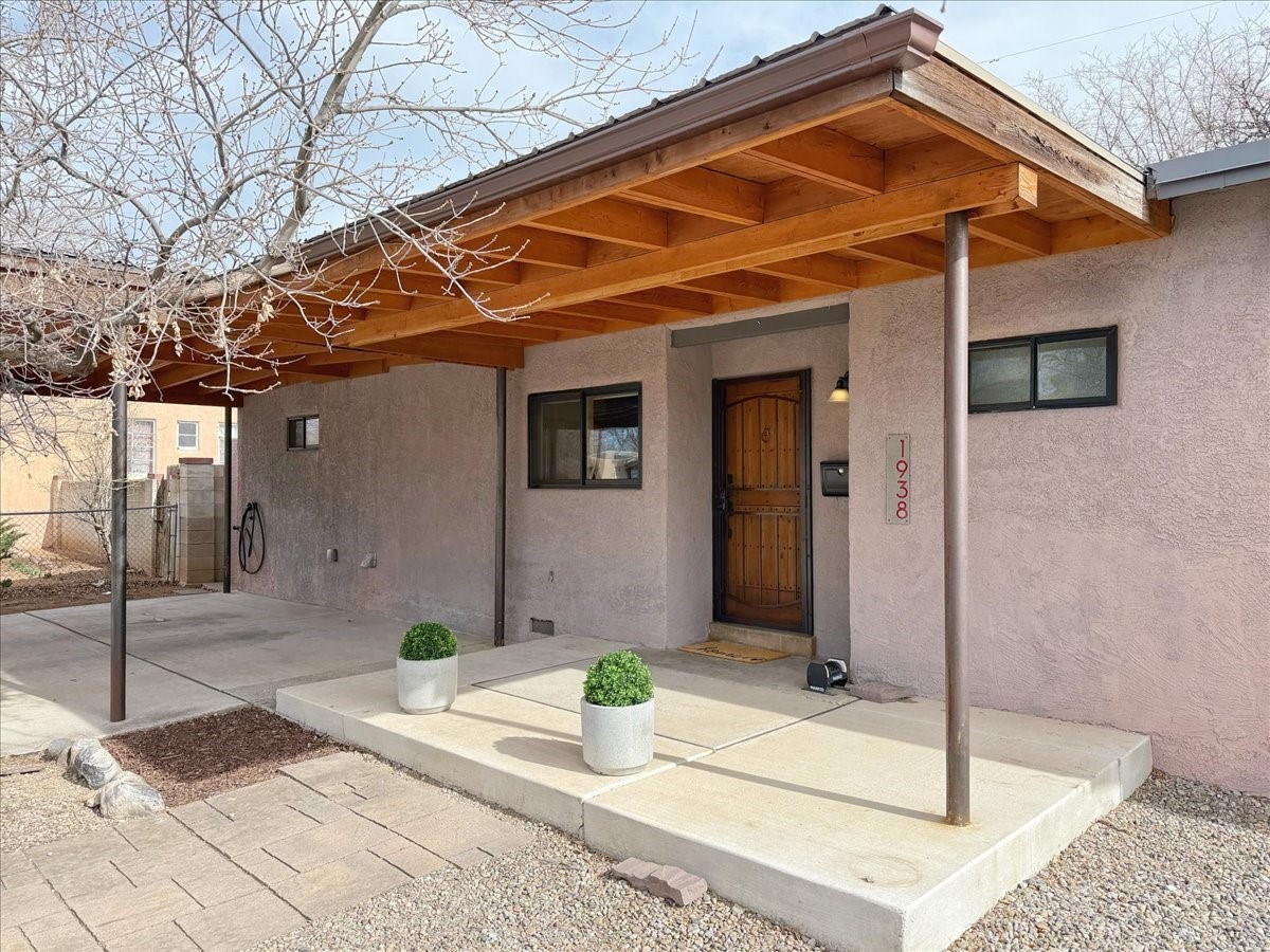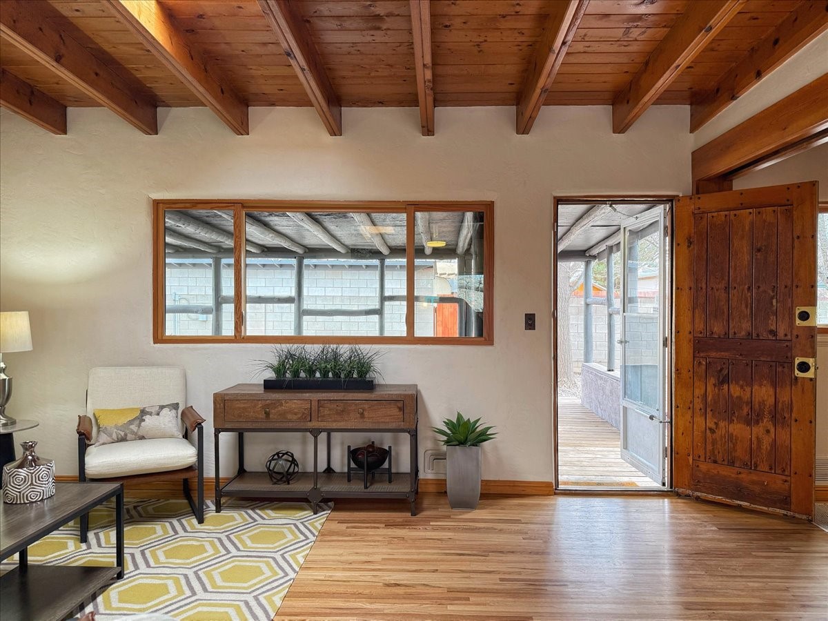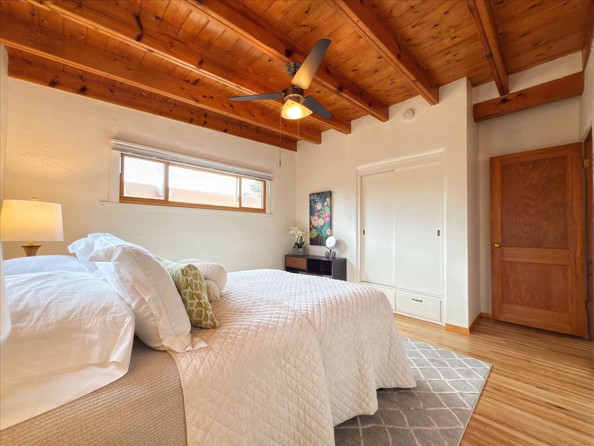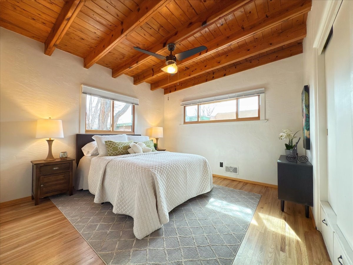 Welcome to this solid Stamm built home plus studio. This 1954 home retains charms of it's era, yet updated to today's standards. You'll love the original hardwood floors and Stamm doors! Custom wood work throughout. The third bedroom makes a great guest room or home office, separated on opposite sides of the house. The home is equipped with central air and heat, plus a tankless water heater and whole house water filtration system. The detached studio, with heat and cooling, could also provide a private office or studio with lots of natural light. As a bonus, this property has two large storage sheds, so the newer owner(s) never lack for storage space. The house comes with an installed EV charger in the carport. Centrally located to all things Santa Fe, you owe to yourself to come check this one out.