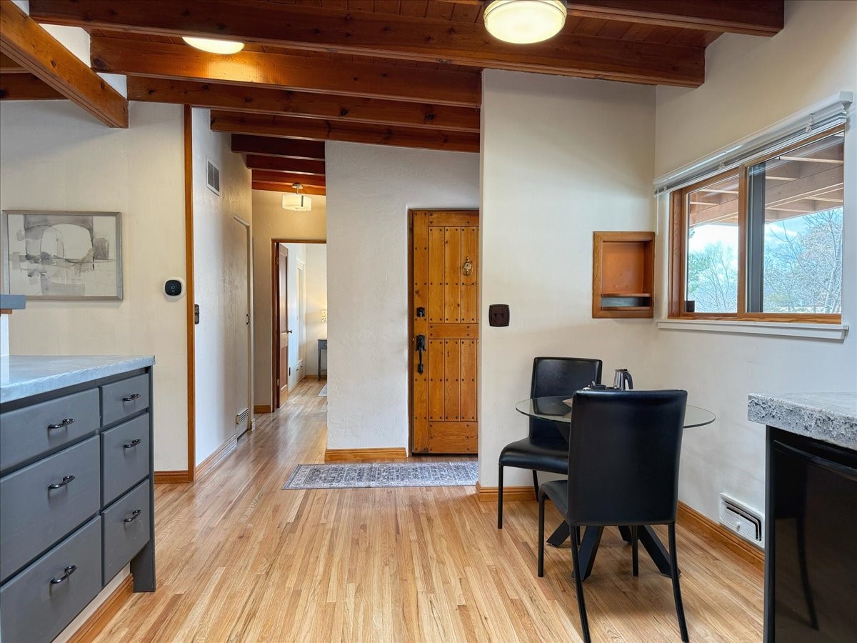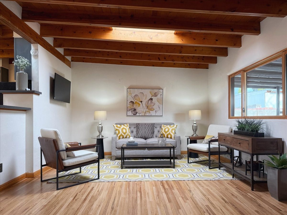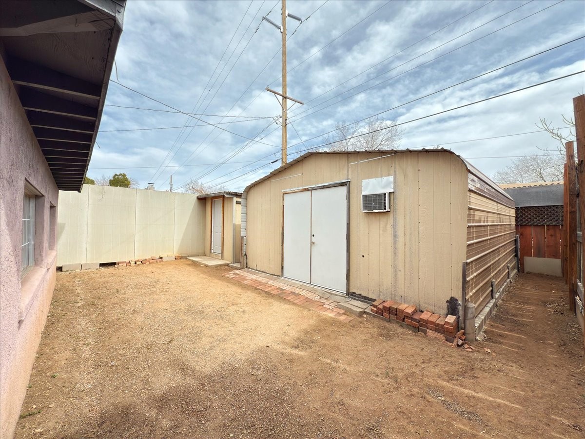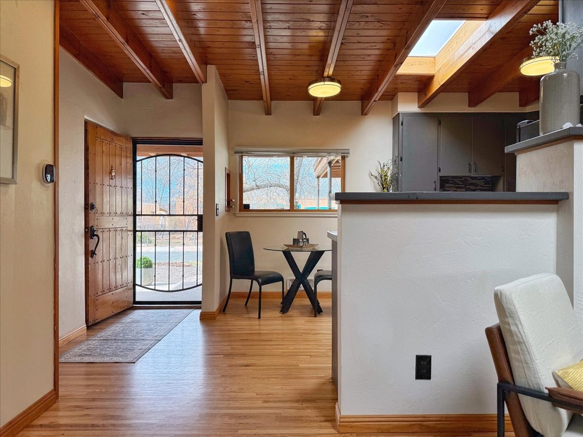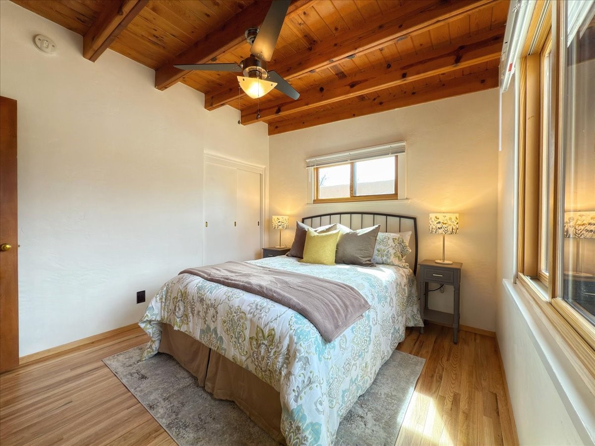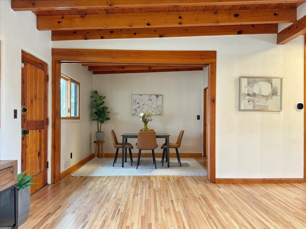 Welcome to this solid Stamm built home plus studio. This 1954 home retains charms of it's era, yet updated to today's standards. You'll love the original hardwood floors and Stamm doors! Custom wood work throughout. The third bedroom makes a great guest room or home office, separated on opposite sides of the house. The home is equipped with central air and heat, plus a tankless water heater and whole house water filtration system. The detached studio, with heat and cooling, could also provide a private office or studio with lots of natural light. As a bonus, this property has two large storage sheds, so the newer owner(s) never lack for storage space. The house comes with an installed EV charger in the carport. Centrally located to all things Santa Fe, you owe to yourself to come check this one out.
