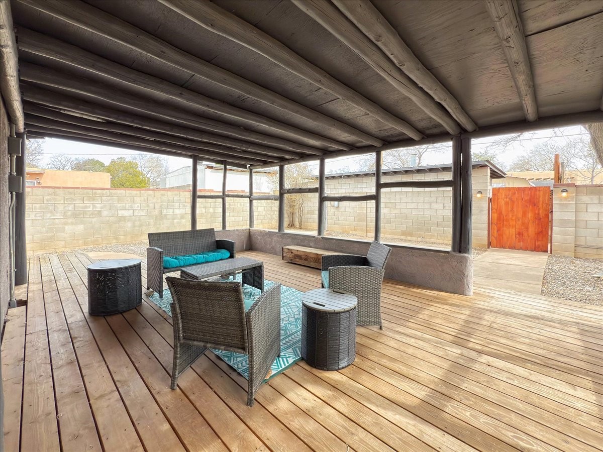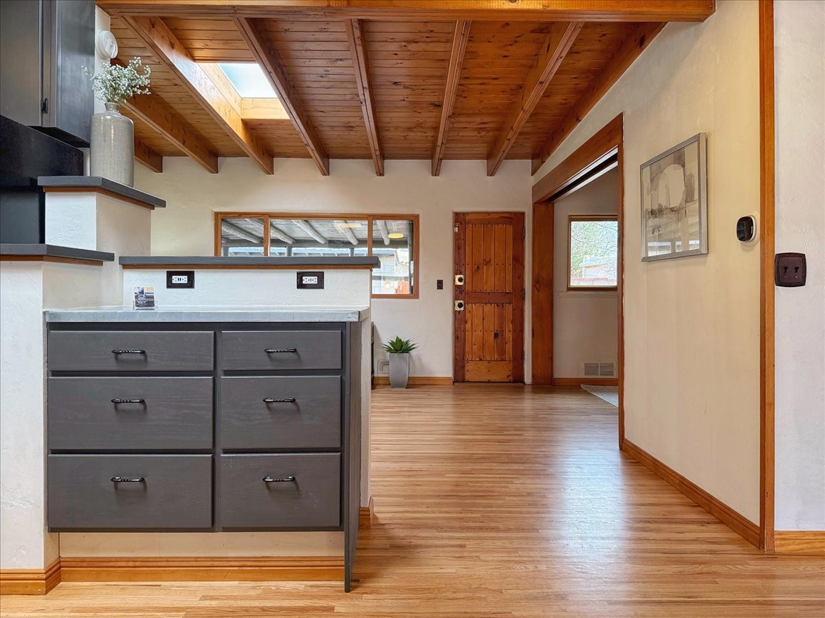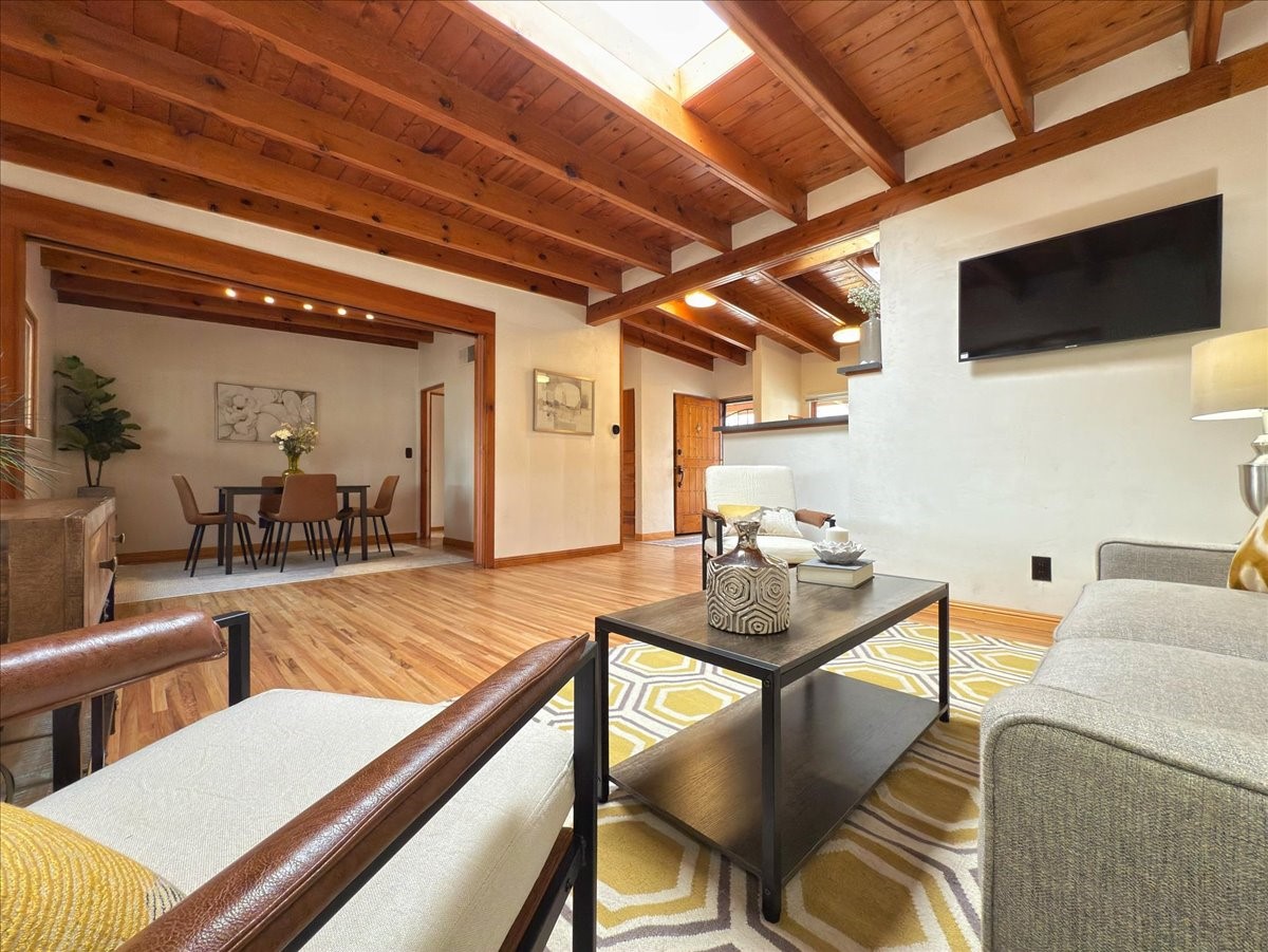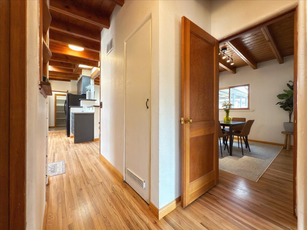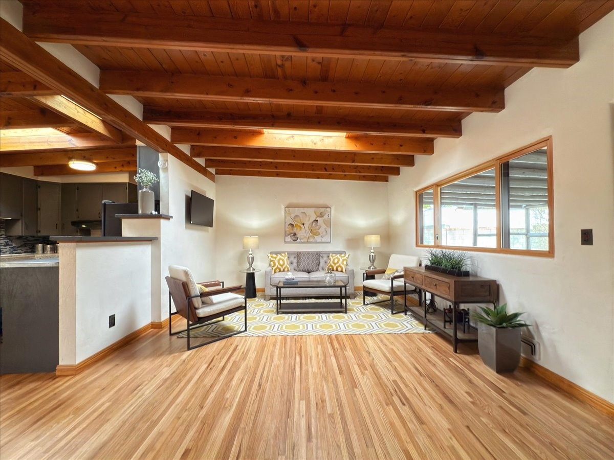 Welcome to this solid Stamm built home plus studio. This 1954 home retains charms of it's era, yet updated to today's standards. You'll love the original hardwood floors and Stamm doors! Custom wood work throughout. The third bedroom makes a great guest room or home office, separated on opposite sides of the house. The home is equipped with central air and heat, plus a tankless water heater and whole house water filtration system. The detached studio, with heat and cooling, could also provide a private office or studio with lots of natural light. As a bonus, this property has two large storage sheds, so the newer owner(s) never lack for storage space. The house comes with an installed EV charger in the carport. Centrally located to all things Santa Fe, you owe to yourself to come check this one out.