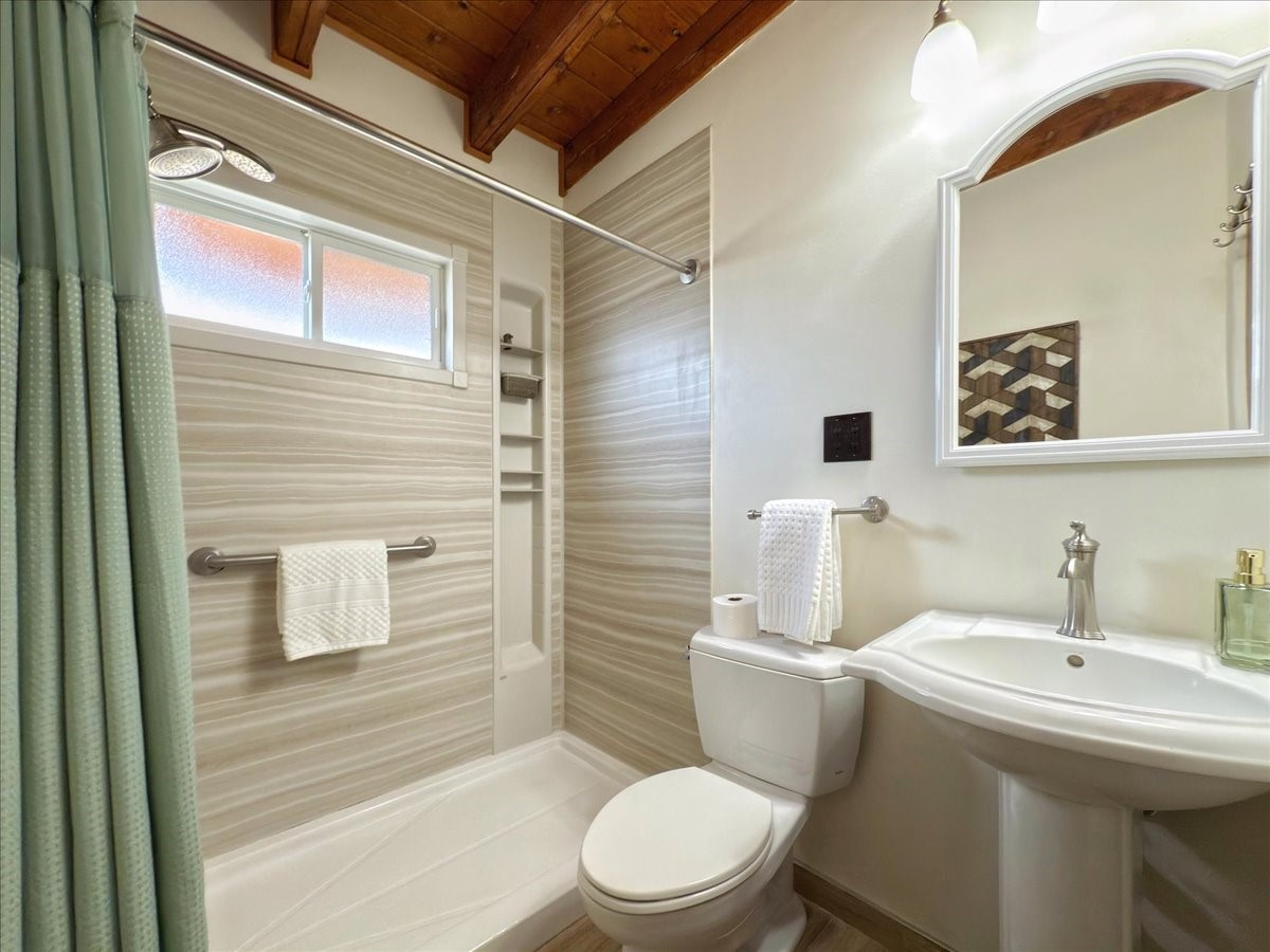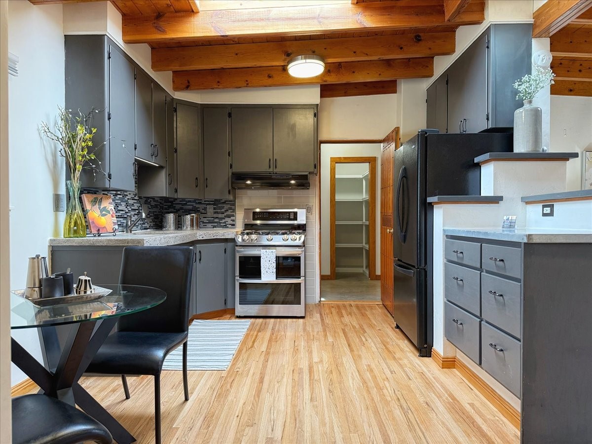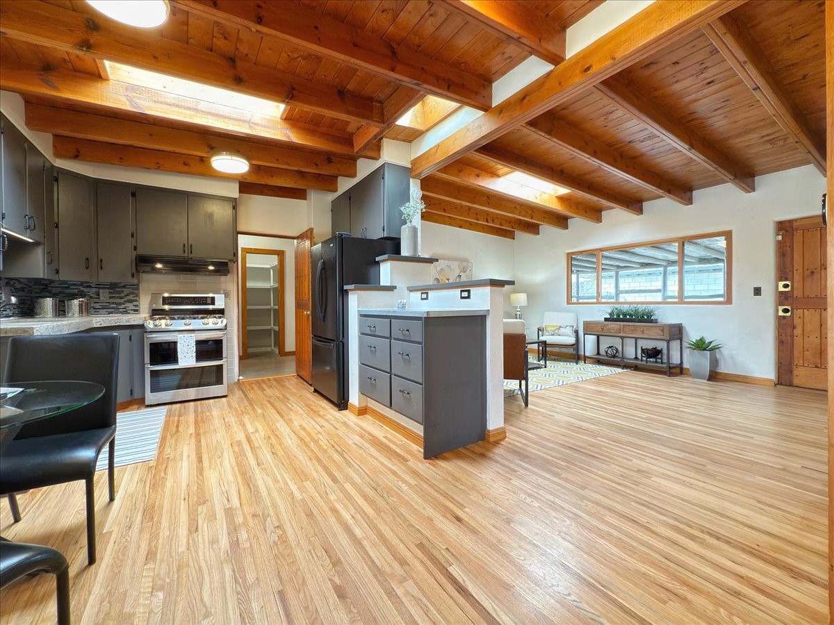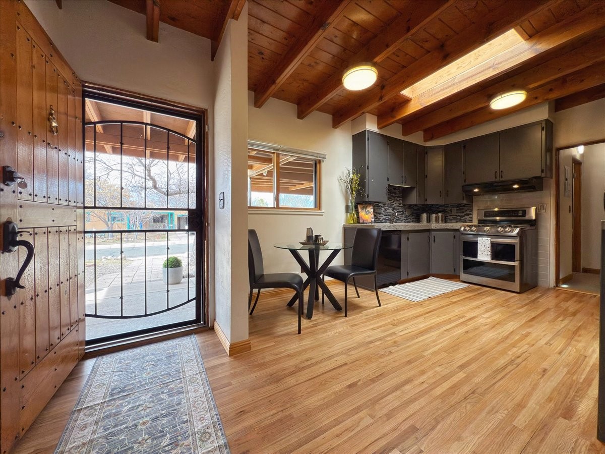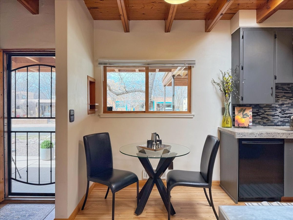 Welcome to this solid Stamm built home plus studio. This 1954 home retains charms of it's era, yet updated to today's standards. You'll love the original hardwood floors and Stamm doors! Custom wood work throughout. The third bedroom makes a great guest room or home office, separated on opposite sides of the house. The home is equipped with central air and heat, plus a tankless water heater and whole house water filtration system. The detached studio, with heat and cooling, could also provide a private office or studio with lots of natural light. As a bonus, this property has two large storage sheds, so the newer owner(s) never lack for storage space. The house comes with an installed EV charger in the carport. Centrally located to all things Santa Fe, you owe to yourself to come check this one out.