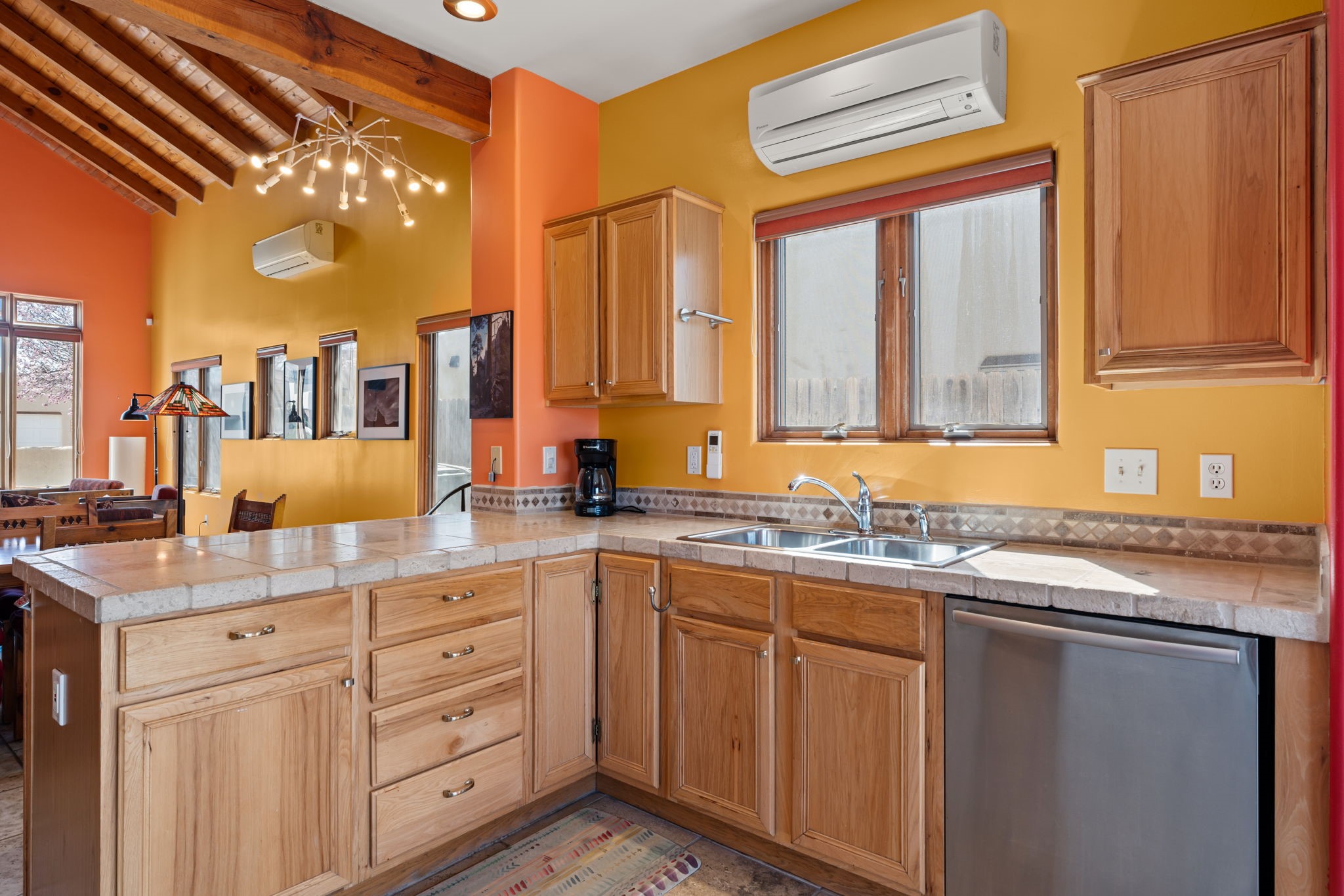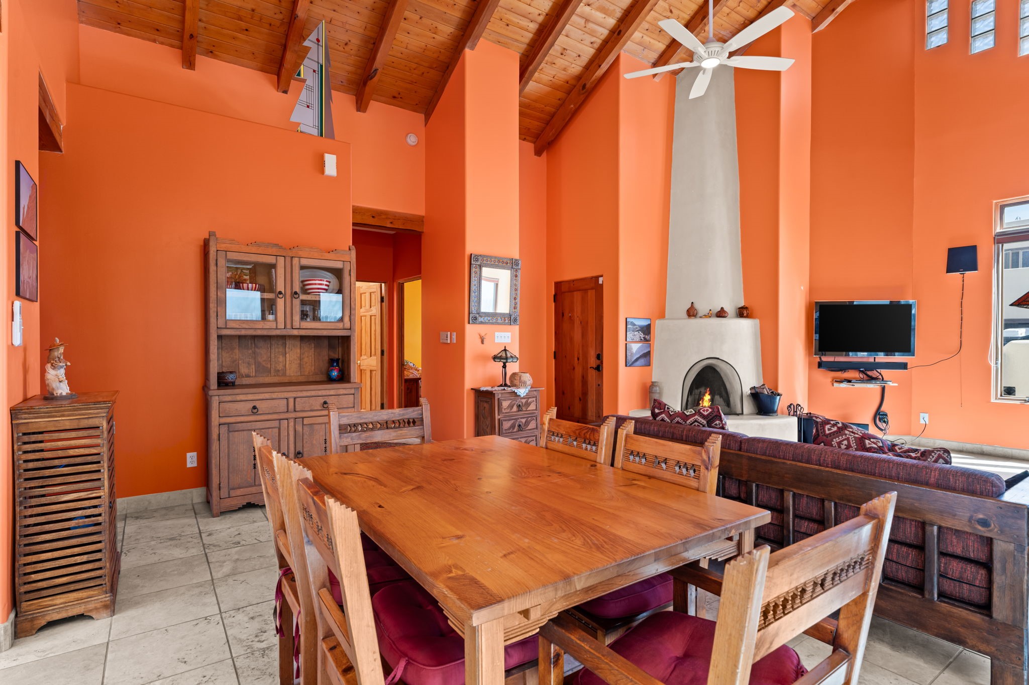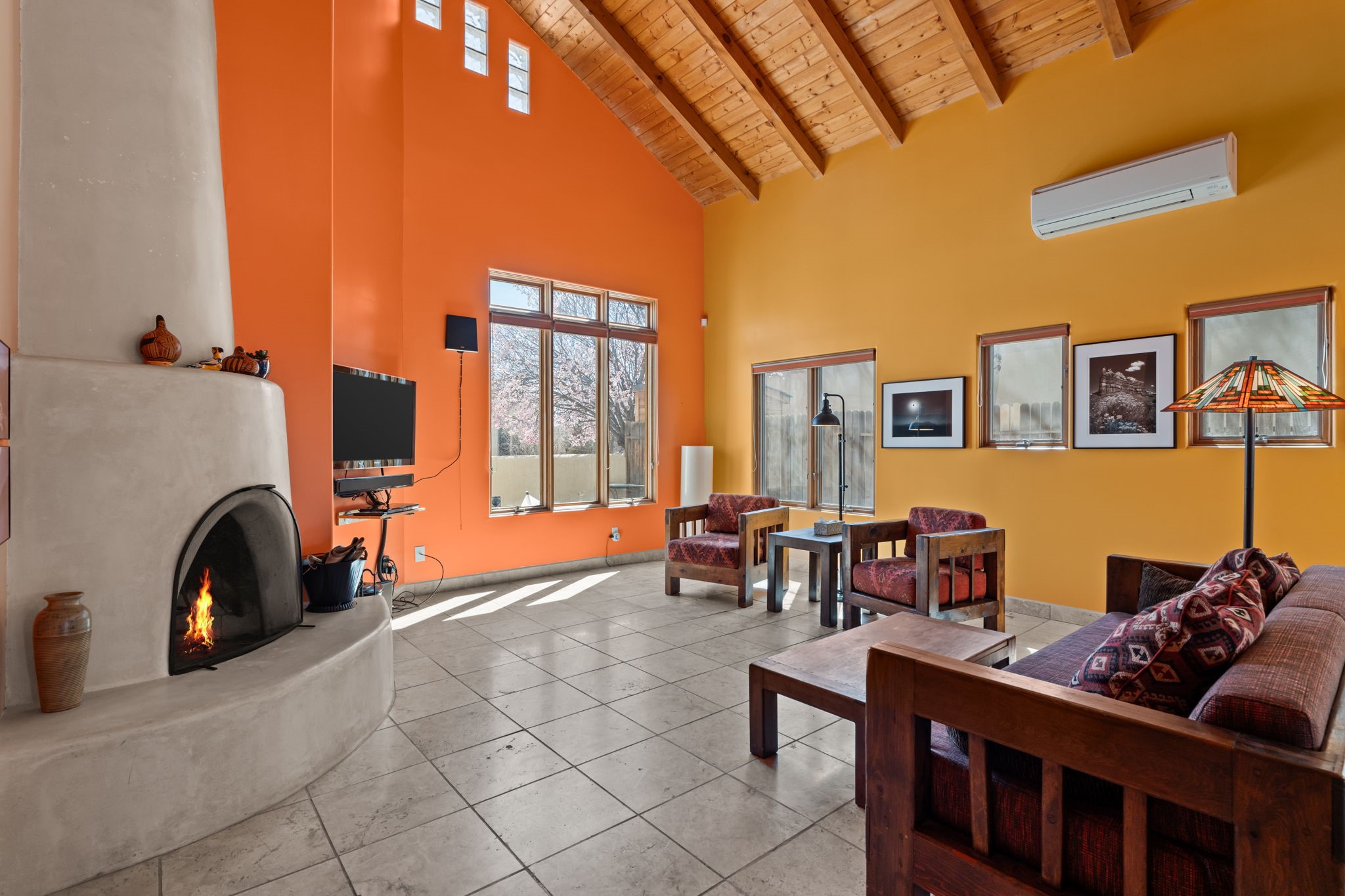 Welcome to this inviting 2-bedroom, 2-bathroom residence located in the desirable La Paz Neighborhood. This charming home boasts high vaulted ceilings with beautiful beams and tongue and groove accents that create an open and airy ambiance. Large windows and skylights allow natural light to flood the space, highlighting the stylish tile and laminate wood flooring throughout--no carpet here for easy maintenance. Enjoy cozy evenings by the kiva woodburning fireplace. This fully furnished, turnkey home is equipped with mini splits for efficient heating and cooling and is perfectly situated in a great location.