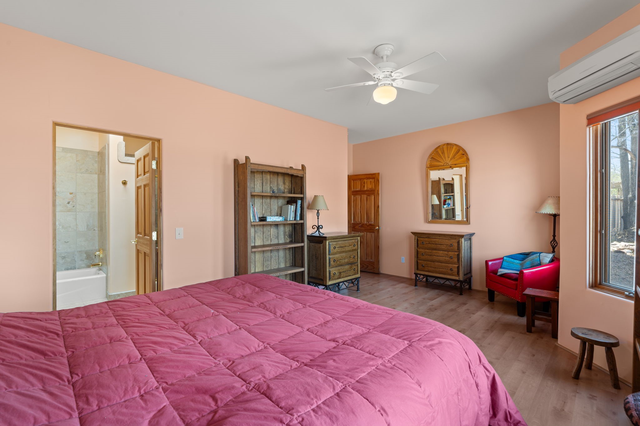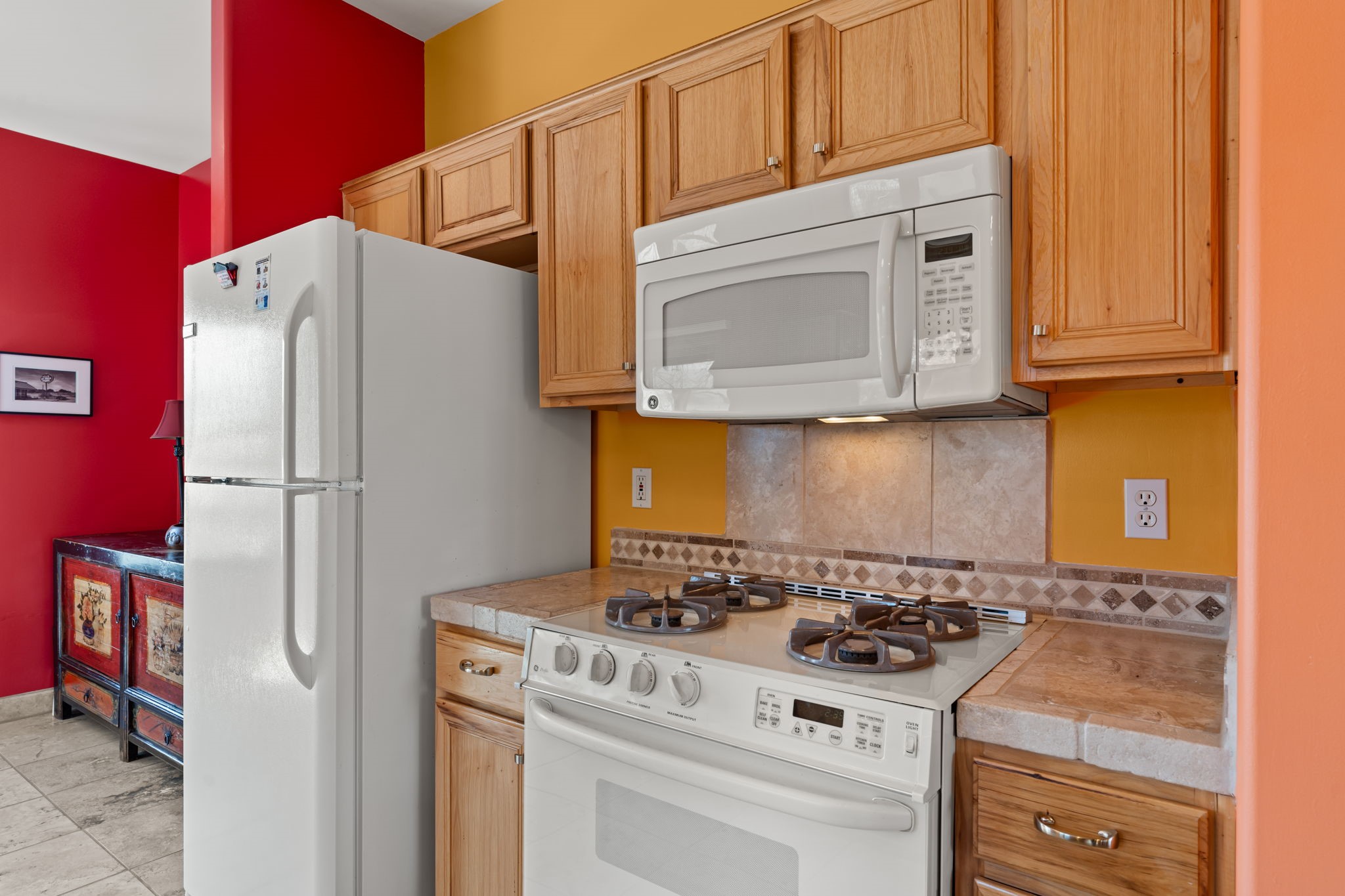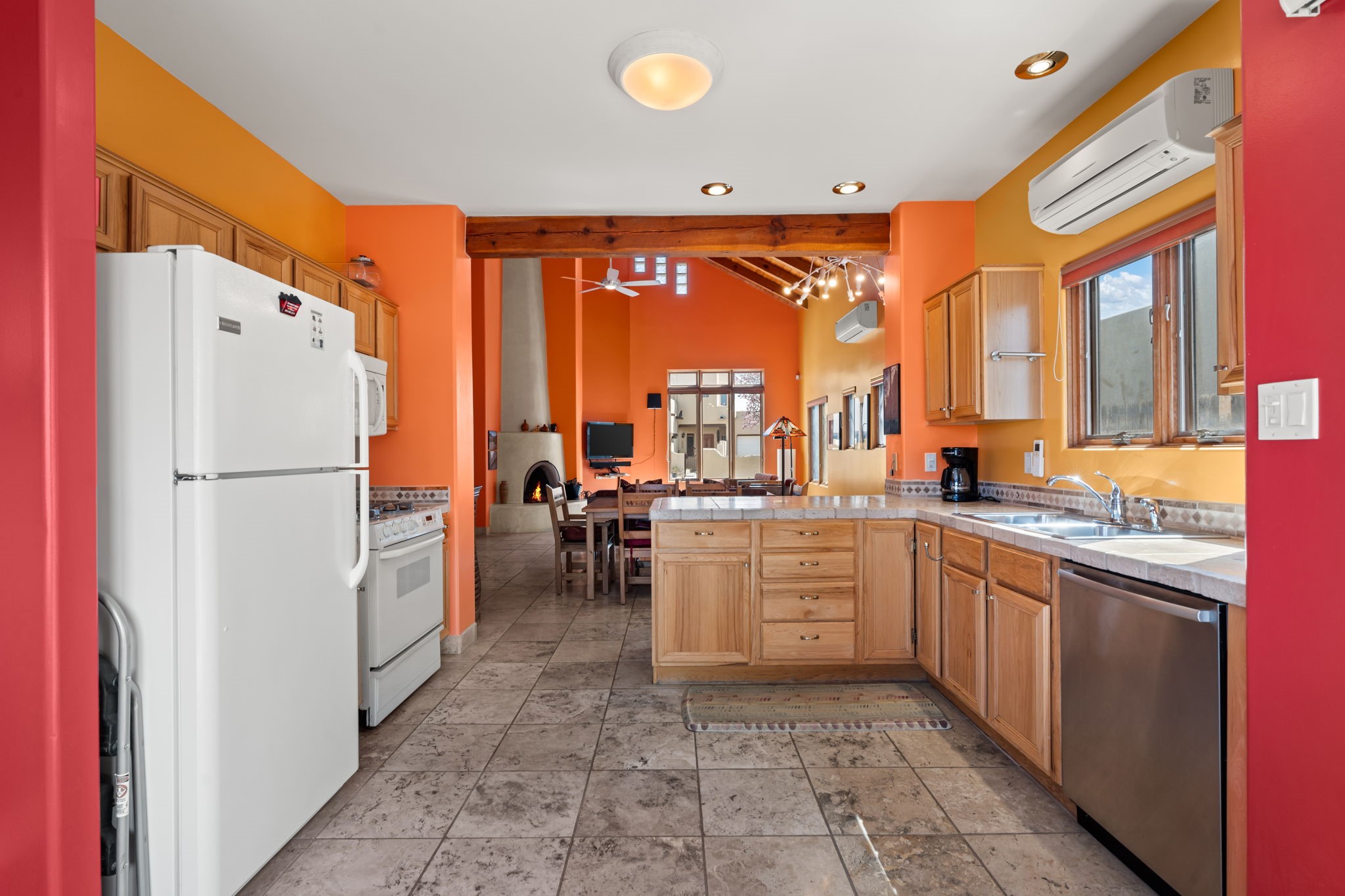 Welcome to this inviting 2-bedroom, 2-bathroom residence located in the desirable La Paz Neighborhood. This charming home boasts high vaulted ceilings with beautiful beams and tongue and groove accents that create an open and airy ambiance. Large windows and skylights allow natural light to flood the space, highlighting the stylish tile and laminate wood flooring throughout--no carpet here for easy maintenance. Enjoy cozy evenings by the kiva woodburning fireplace. This fully furnished, turnkey home is equipped with mini splits for efficient heating and cooling and is perfectly situated in a great location.