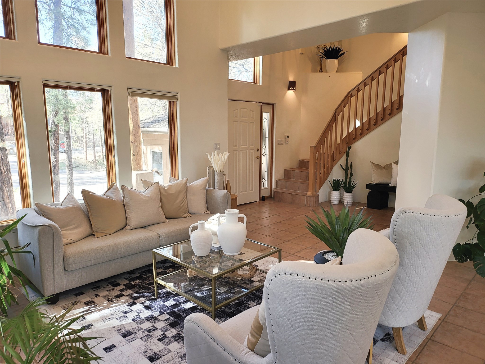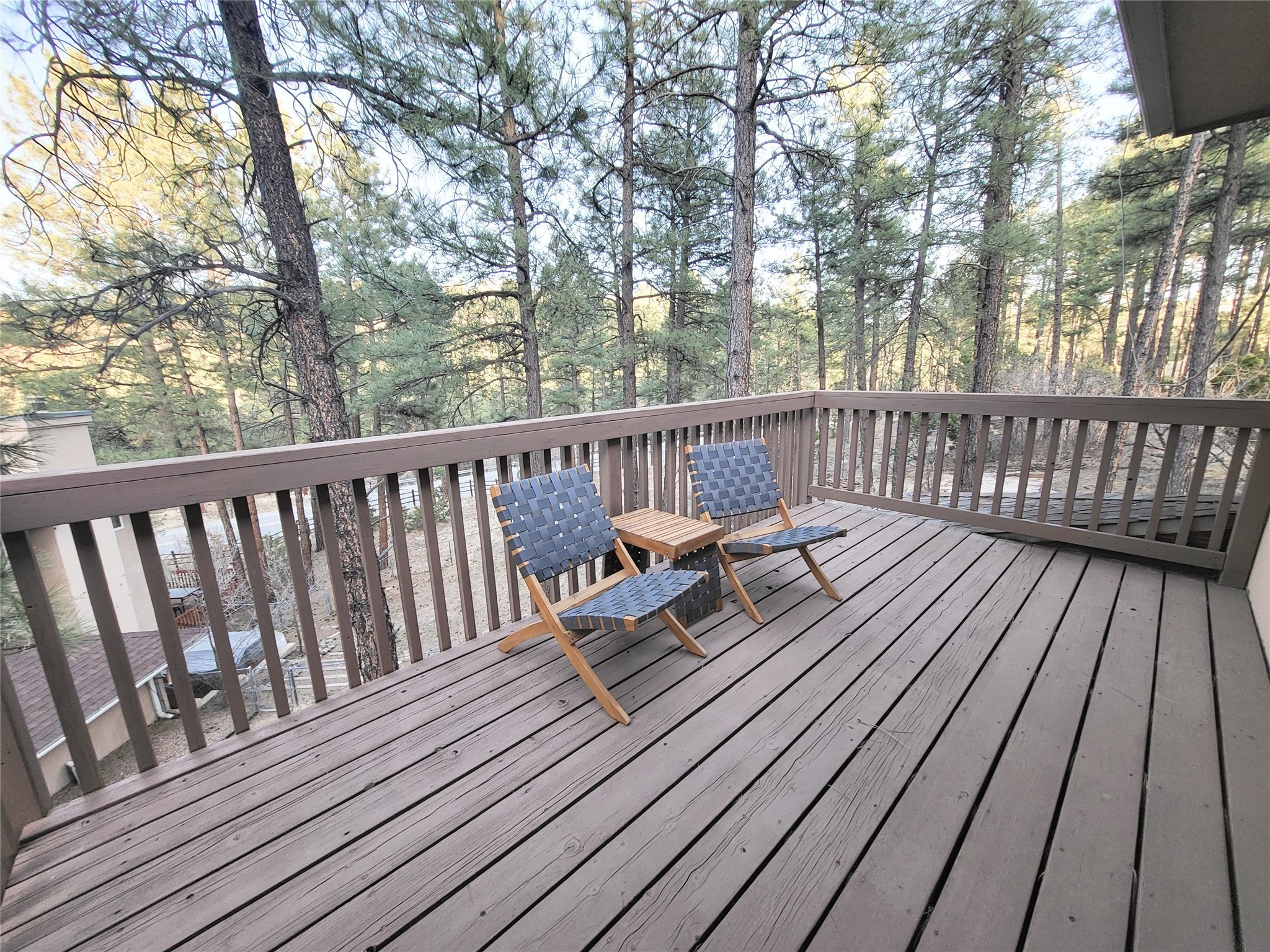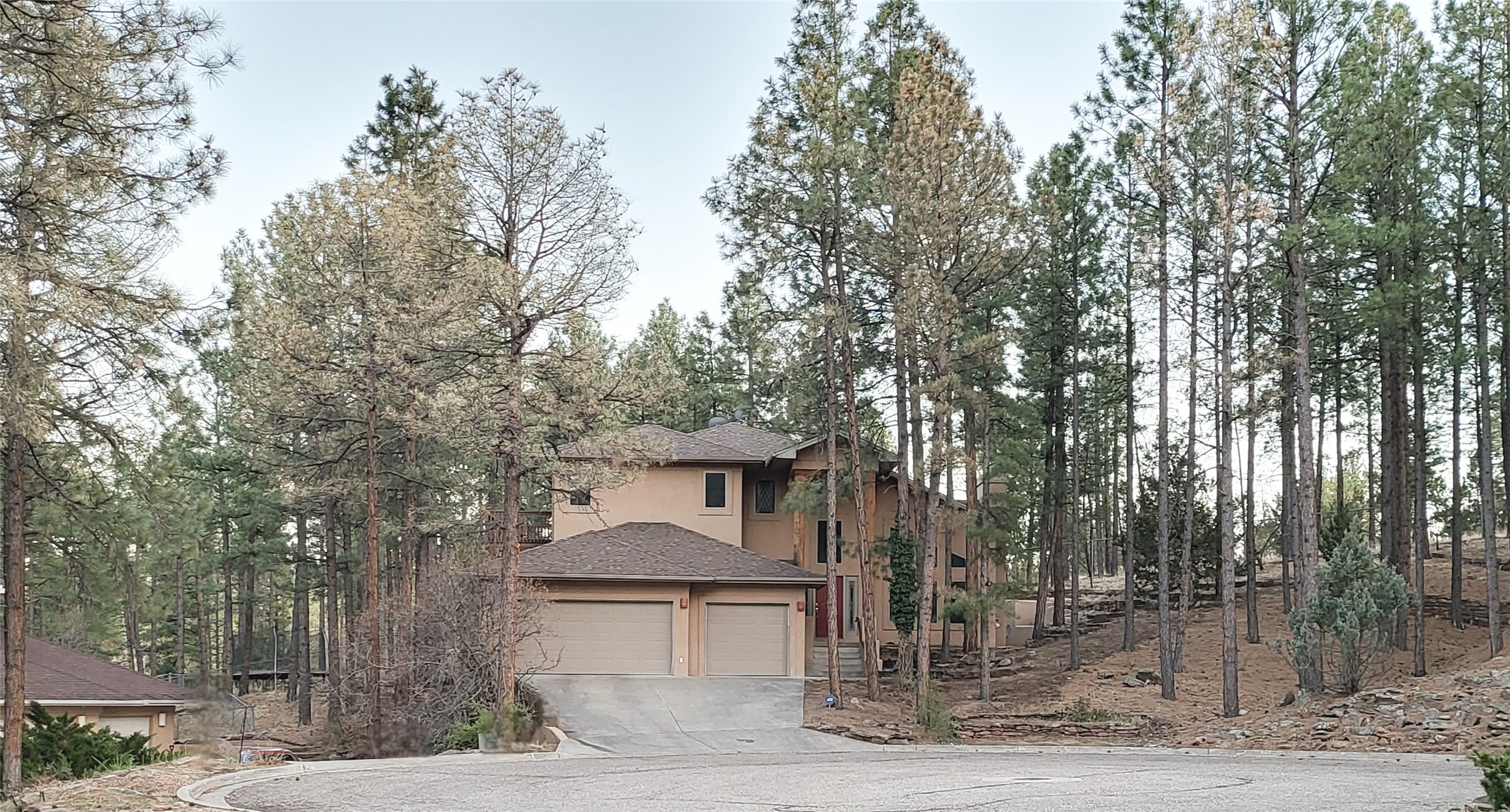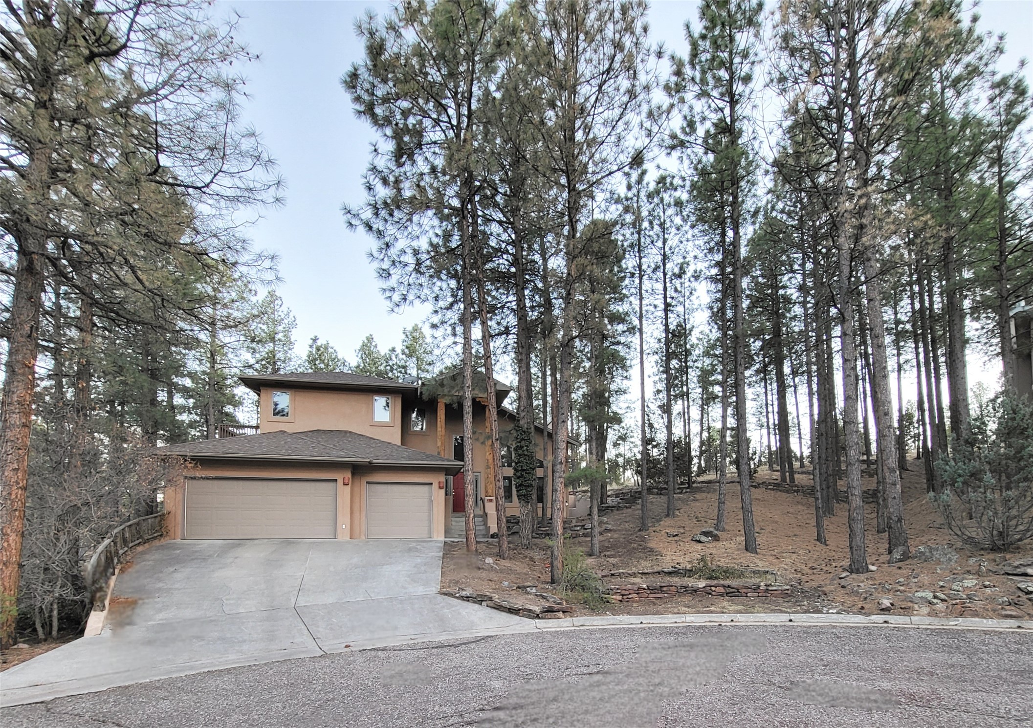 Welcome to your dream home in the sought-after Ponderosa Estates of Los Alamos! This spacious 2,500+ sq ft single-family retreat offers luxury, comfort, and unmatched amenities --all tucked away in a quiet cul-de-sac, steps from the golf course. Step into an entertainer's paradise featuring a stunning open-concept chef's kitchen with a center island large enough for 8 bar stools, built-in dry bar, and an indoor-outdoor built-in sound system perfect for hosting. Enjoy the beautifully stained decks, hot tub, and large yard for seamless indoor-outdoor living.With 4 generously sized bedrooms, including an oversized upstairs primary suite with private deck access, his-and-hers walk-in closets, double sinks, and a jacuzzi tub, this home offers resort-style comfort. The downstairs guest suite can easily serve as a second master, complete with a full bath, walk-in closet, and private patio deck.Additional features include a rare 3-car garage, heated driveway, and plenty of space to relax, entertain, and enjoy the serene beauty of Los Alamos living.Don't miss this rare opportunity to own one of Ponderosa's finest!