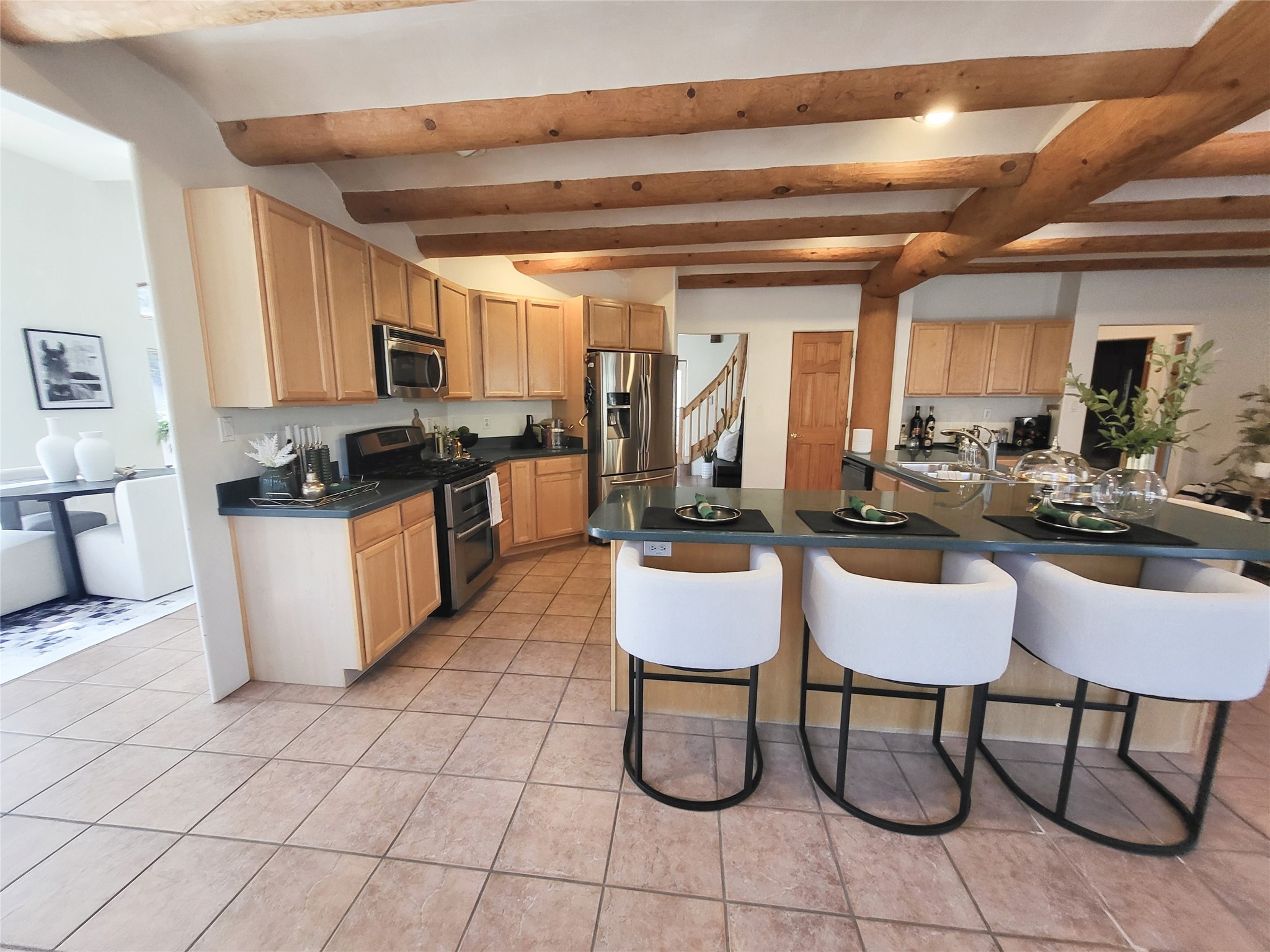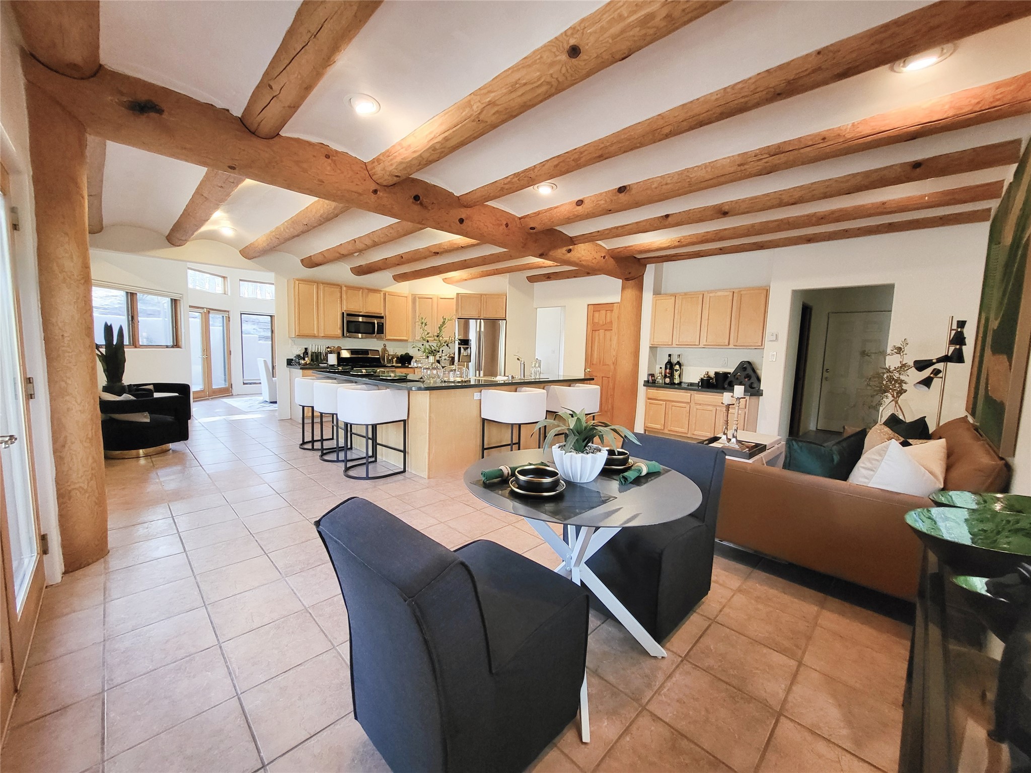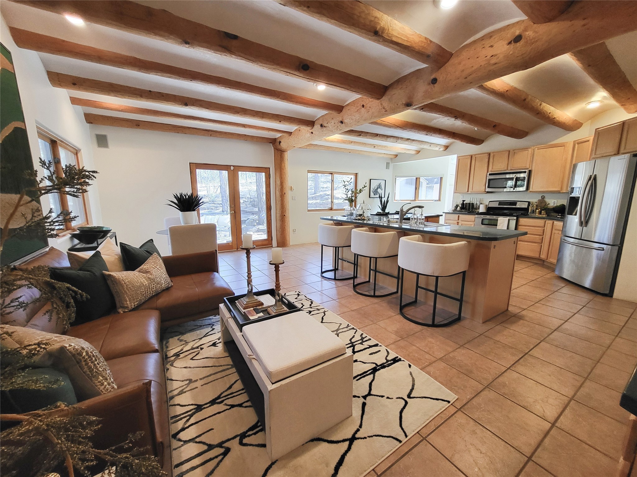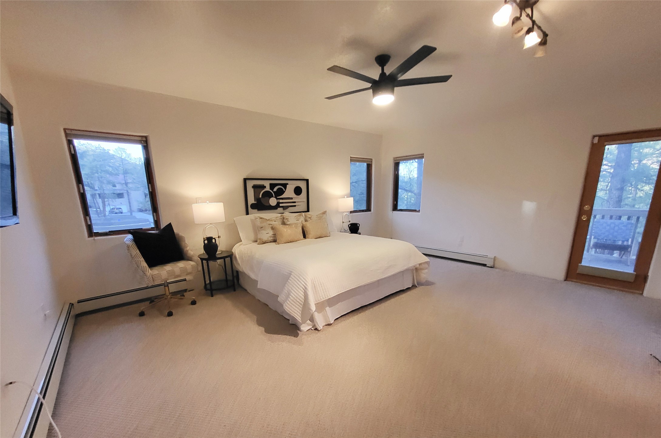 Welcome to your dream home in the sought-after Ponderosa Estates of Los Alamos! This spacious 2,500+ sq ft single-family retreat offers luxury, comfort, and unmatched amenities --all tucked away in a quiet cul-de-sac, steps from the golf course. Step into an entertainer's paradise featuring a stunning open-concept chef's kitchen with a center island large enough for 8 bar stools, built-in dry bar, and an indoor-outdoor built-in sound system perfect for hosting. Enjoy the beautifully stained decks, hot tub, and large yard for seamless indoor-outdoor living.With 4 generously sized bedrooms, including an oversized upstairs primary suite with private deck access, his-and-hers walk-in closets, double sinks, and a jacuzzi tub, this home offers resort-style comfort. The downstairs guest suite can easily serve as a second master, complete with a full bath, walk-in closet, and private patio deck.Additional features include a rare 3-car garage, heated driveway, and plenty of space to relax, entertain, and enjoy the serene beauty of Los Alamos living.Don't miss this rare opportunity to own one of Ponderosa's finest!