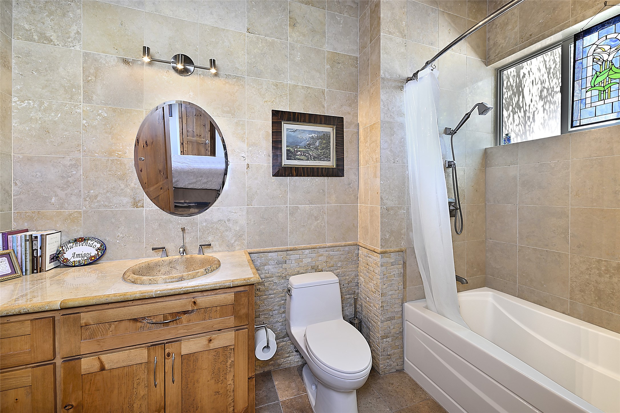 This beautiful 3,900+ sq ft, single level home is sited on a large and exciting 2.9 acre lot in Estates I of Las Campanas, only 6 miles from the Santa Fe Plaza. Incredible 360 degree views to the Jemez and Sandia mountains as well as the Sangre de Cristo mountains are framed by the spacious portals that surround the home, ideal for entertaining. The curved diamond plaster walls, with rounded details define the open living room, dining, kitchen and family areas. There are three bedrooms and four bathrooms, plus flex room. Mexican stone and travertine tiled floors and columns are skillfully incorporated into the luxurious interior spaces. A sweeping stairway on an outside portal leads to a roof top deck offering spectacular and unobstructed views of all the surrounding mountains. This gorgeous home has the location, design fit and fixtures that make it a must see. Memberships to The Club at Las Campanas are available for purchase upon approval.
