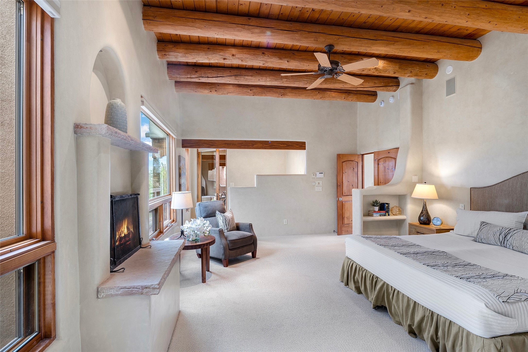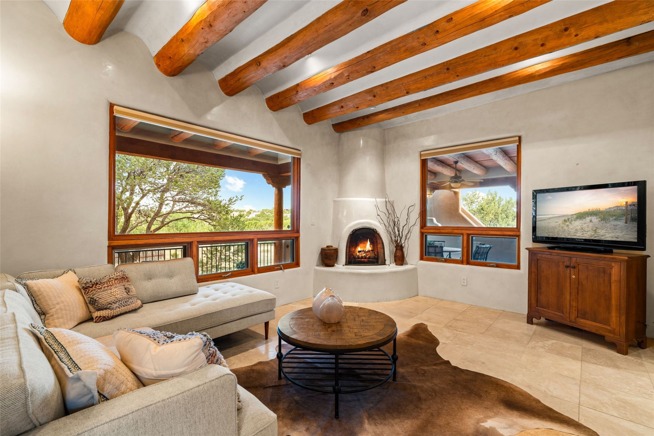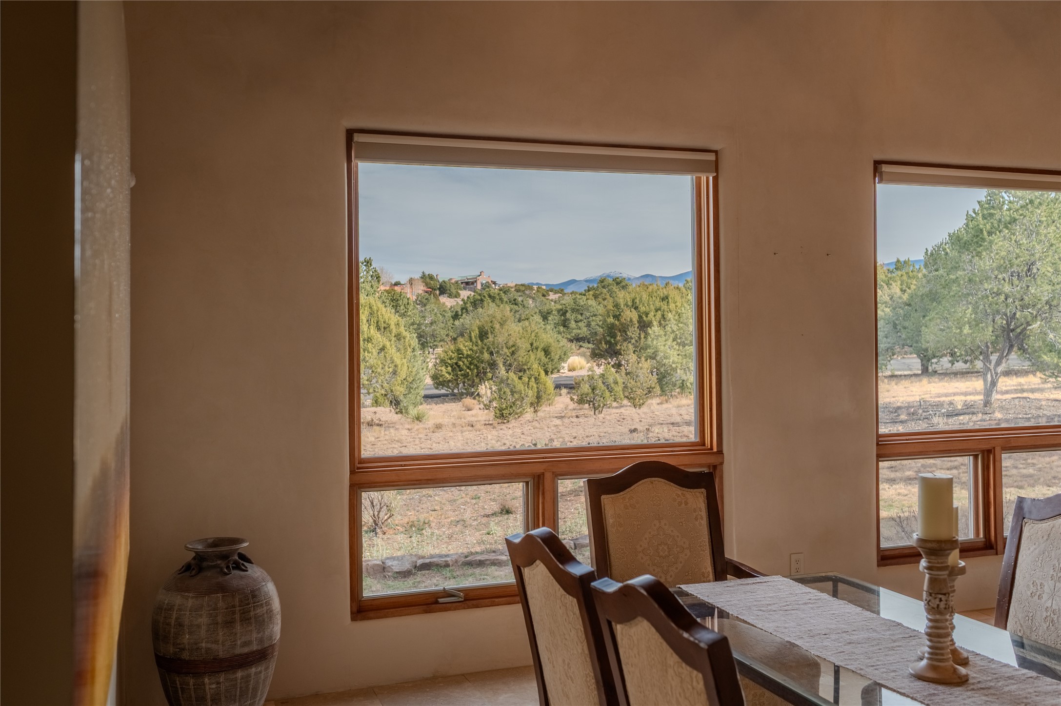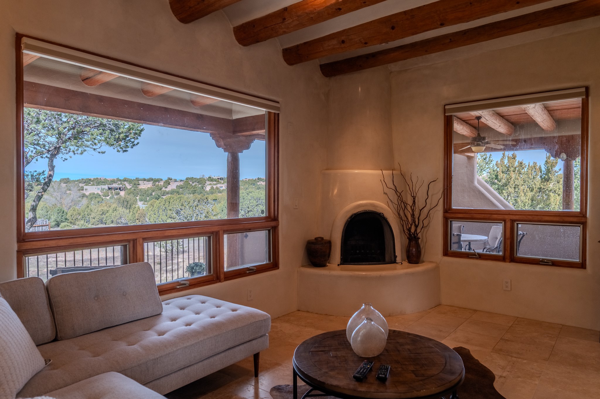 Spacious Luxury, Breathtaking Views & Multigenerational Comfort. Experience Santa Fe living at its finest in this elegant single-level home with an attached two-bedroom guest casita--ideal for extended family, guests, or a private retreat. Set on 1.5 acres in the gated community of Salva Tierra, this property offers stunning views, ultimate privacy, and convenient access to downtown, The Club at Las Campanas, and nearby hiking and biking trails. The main house features three ensuite bedrooms, a den, and an office, while the casita mirrors the main home's high-end finishes, including travertine floors, viga ceilings, and custom cabinetry. Both chef's kitchens are outfitted with Wolf, Sub-Zero, and Dacor appliances, large islands, and easy access to outdoor dining patios--perfect for entertaining under Santa Fe's starry skies. Enjoy peaceful courtyards, multiple portals, and a rooftop hot tub for sunset or stargazing. The primary suite includes a fireplace, spa-like bath, walk-in shower, soaking tub, and mountain views. Quality details throughout: radiant floor heat, mini splits, whole-house generator, new stucco, new TPO roof with warranty, electric shades, and a three-car garage with ample parking. Community amenities include tennis and pickleball courts, private roads, and a welcoming neighborhood atmosphere. Move-in ready and meticulously maintained--this home combines timeless Santa Fe style with modern comfort and flexibility for today's lifestyles. Watch the video and take the virtual tour to see why 118 E. Sunrise Drive is the perfect Santa Fe getaway or multigenerational retreat.