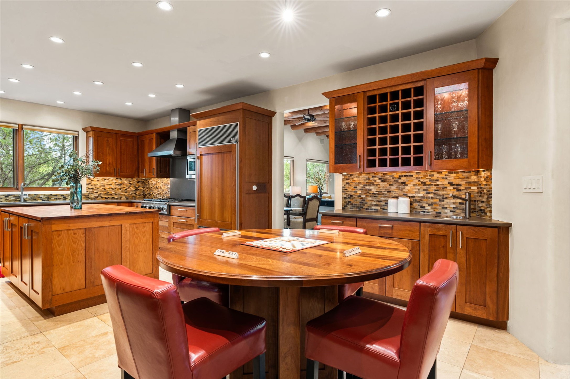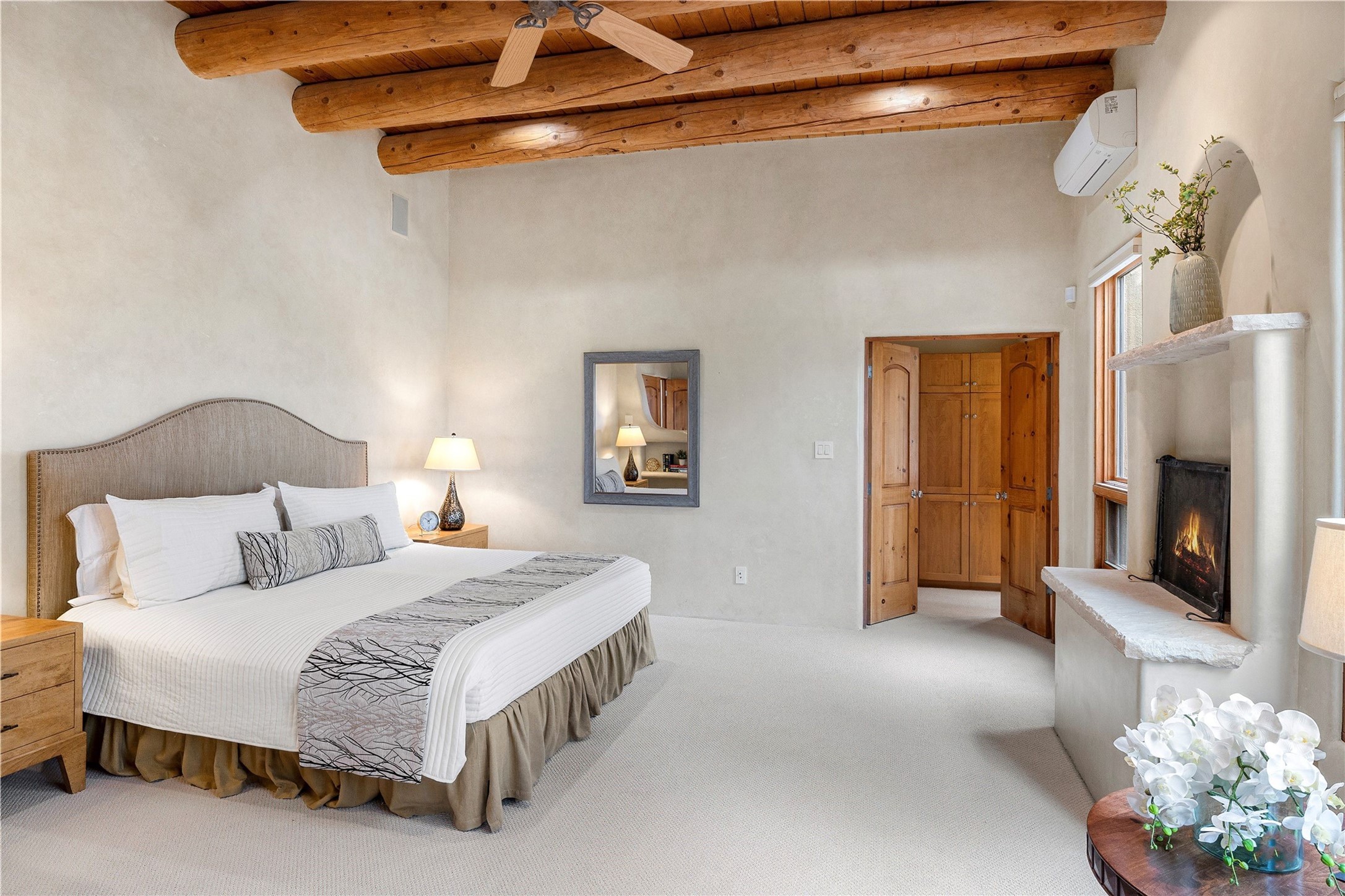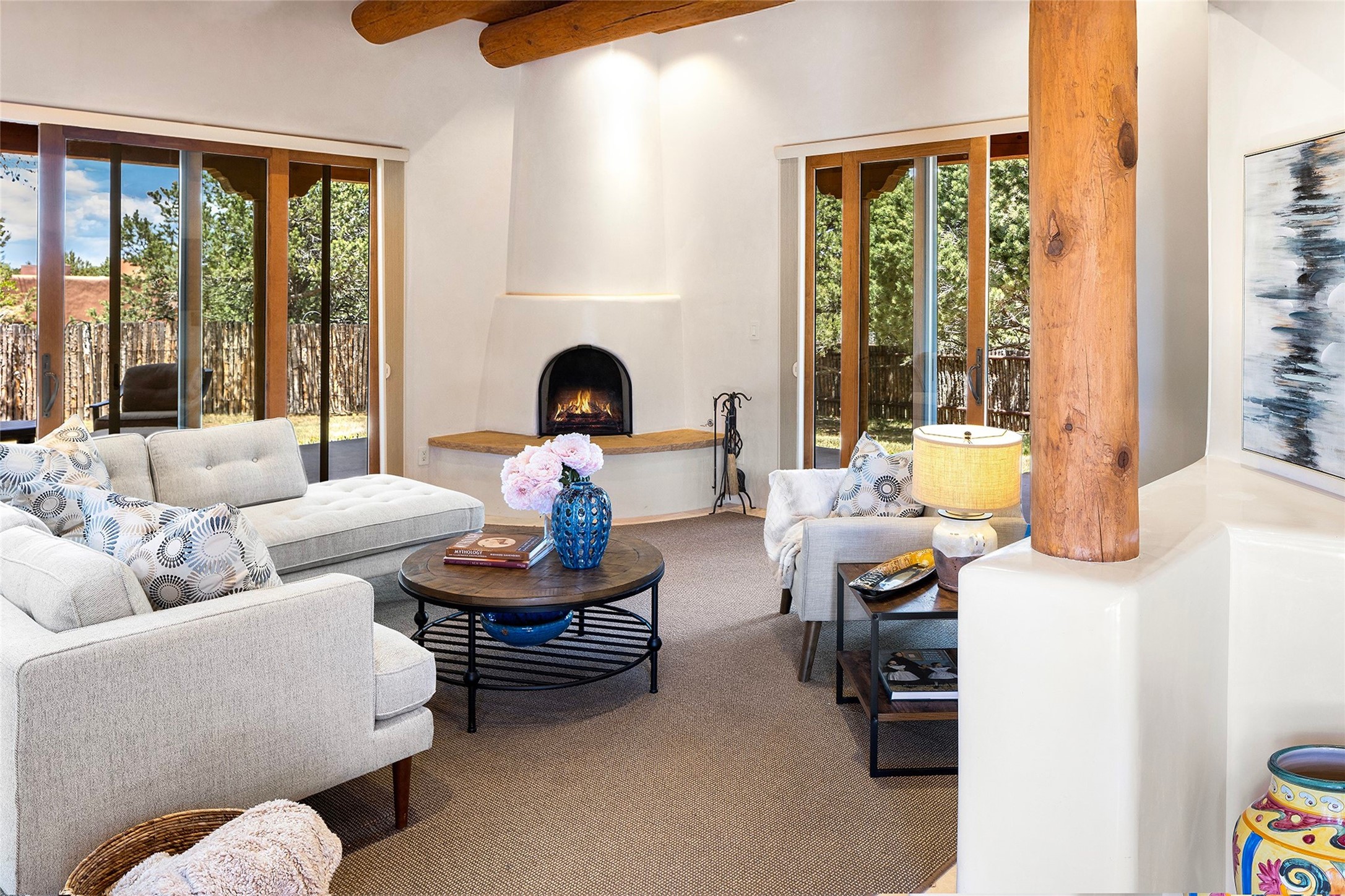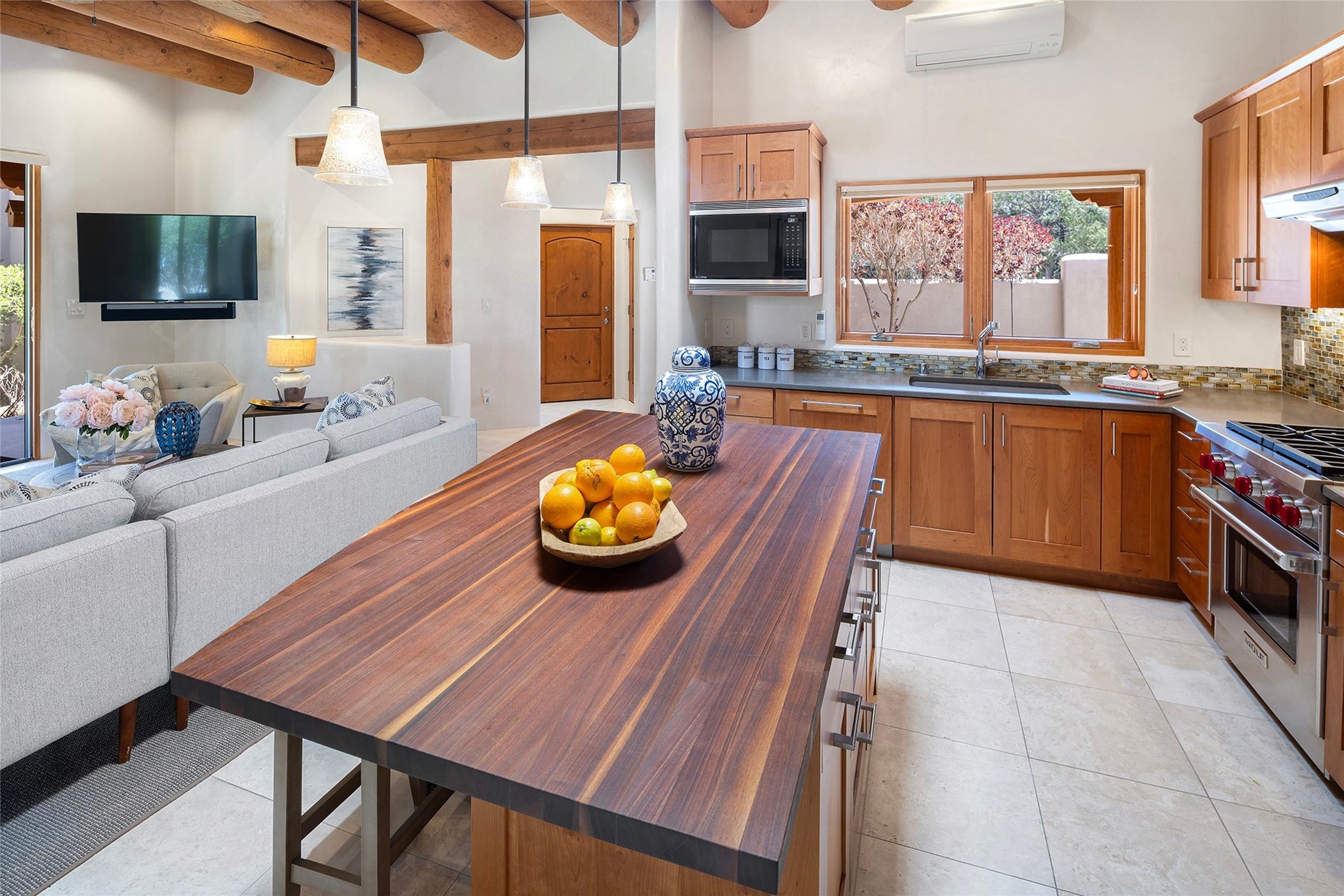 Spacious Luxury, Breathtaking Views & Multigenerational Comfort. Experience Santa Fe living at its finest in this elegant single-level home with an attached two-bedroom guest casita--ideal for extended family, guests, or a private retreat. Set on 1.5 acres in the gated community of Salva Tierra, this property offers stunning views, ultimate privacy, and convenient access to downtown, The Club at Las Campanas, and nearby hiking and biking trails. The main house features three ensuite bedrooms, a den, and an office, while the casita mirrors the main home's high-end finishes, including travertine floors, viga ceilings, and custom cabinetry. Both chef's kitchens are outfitted with Wolf, Sub-Zero, and Dacor appliances, large islands, and easy access to outdoor dining patios--perfect for entertaining under Santa Fe's starry skies. Enjoy peaceful courtyards, multiple portals, and a rooftop hot tub for sunset or stargazing. The primary suite includes a fireplace, spa-like bath, walk-in shower, soaking tub, and mountain views. Quality details throughout: radiant floor heat, mini splits, whole-house generator, new stucco, new TPO roof with warranty, electric shades, and a three-car garage with ample parking. Community amenities include tennis and pickleball courts, private roads, and a welcoming neighborhood atmosphere. Move-in ready and meticulously maintained--this home combines timeless Santa Fe style with modern comfort and flexibility for today's lifestyles. Watch the video and take the virtual tour to see why 118 E. Sunrise Drive is the perfect Santa Fe getaway or multigenerational retreat.