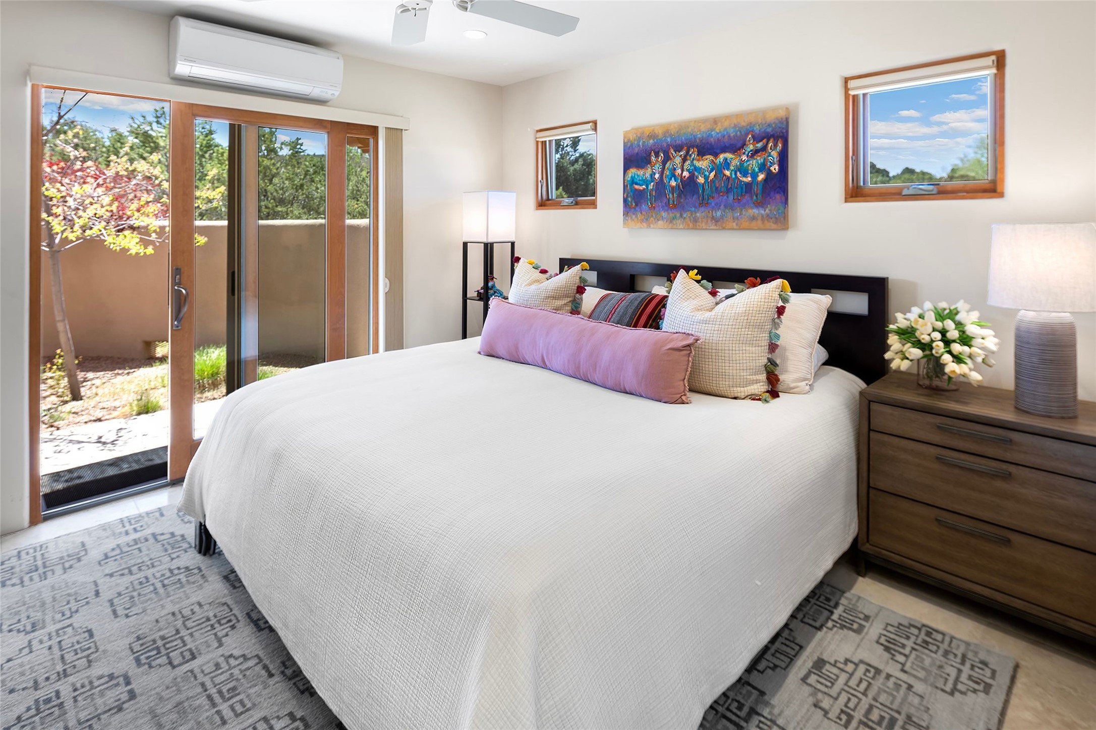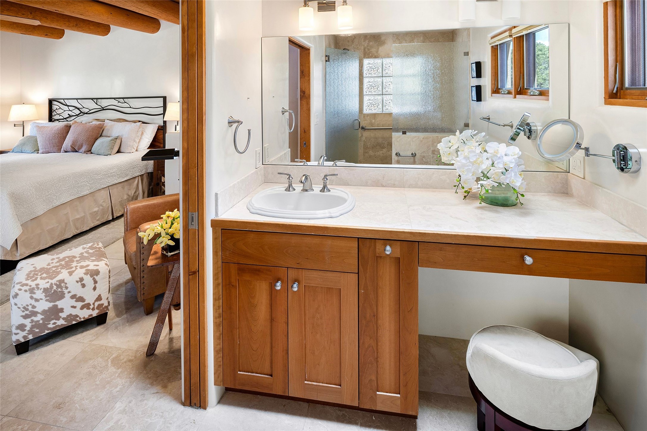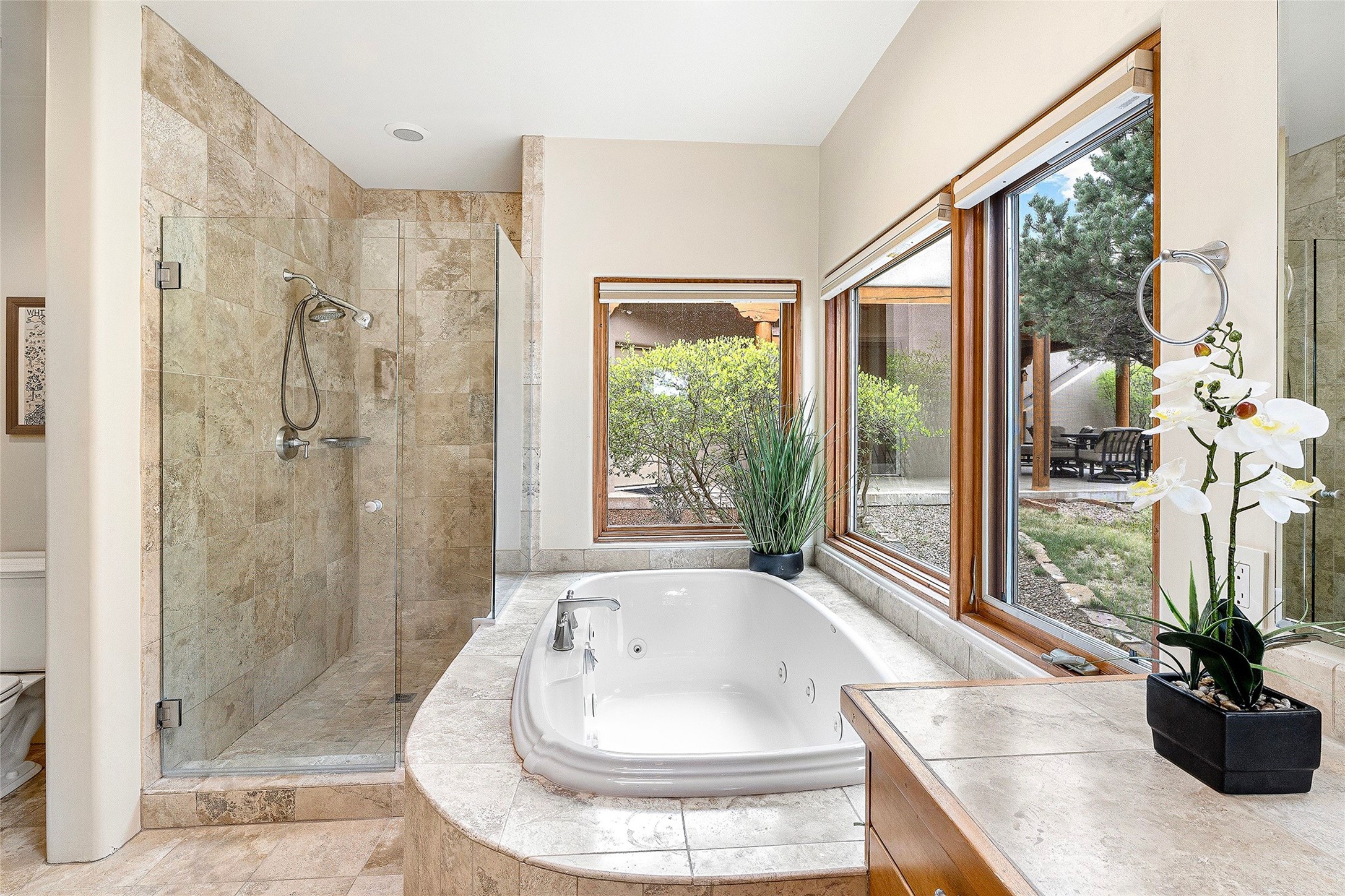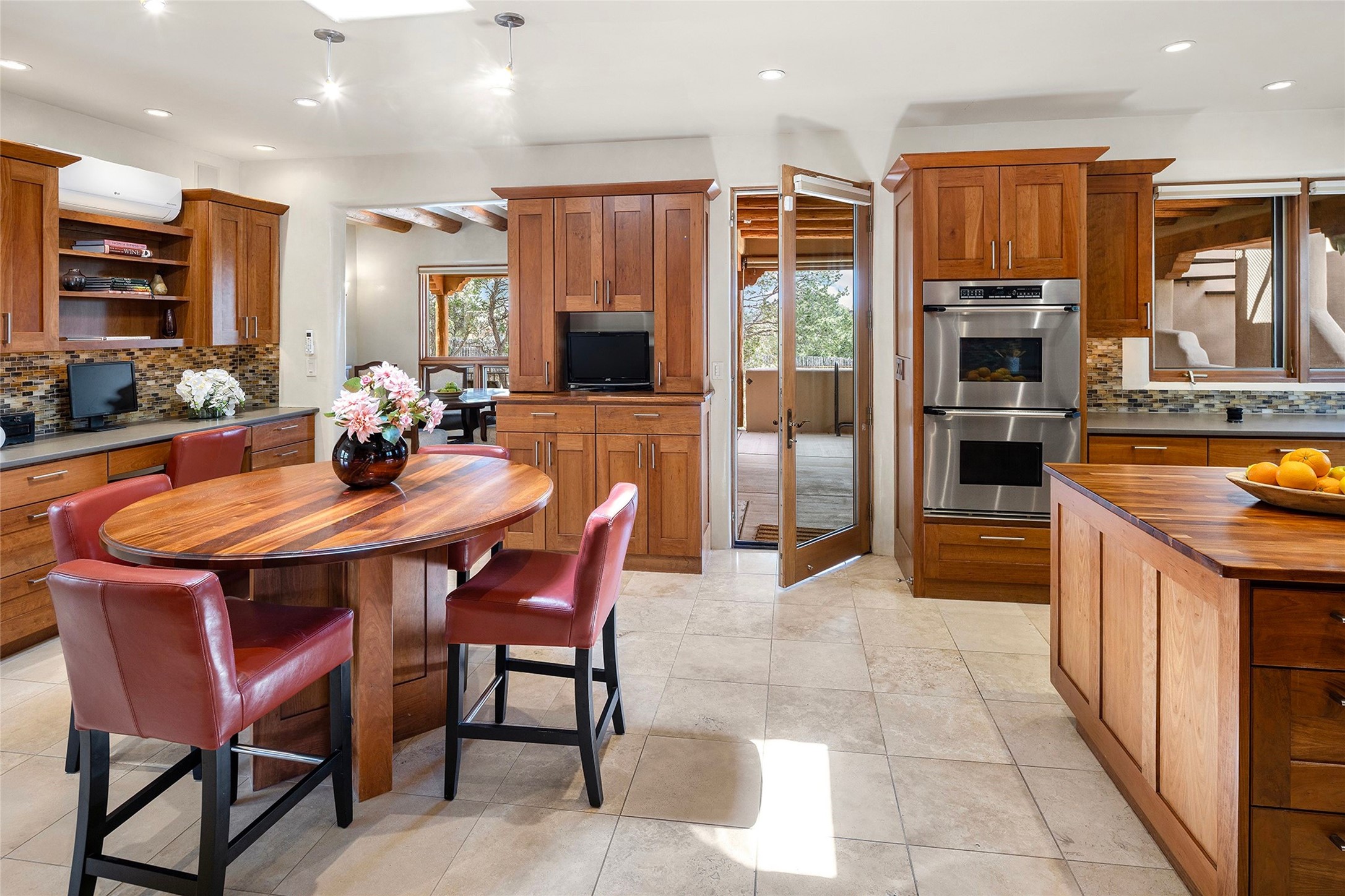 Spacious Luxury, Breathtaking Views & Multigenerational Comfort. Experience Santa Fe living at its finest in this elegant single-level home with an attached two-bedroom guest casita--ideal for extended family, guests, or a private retreat. Set on 1.5 acres in the gated community of Salva Tierra, this property offers stunning views, ultimate privacy, and convenient access to downtown, The Club at Las Campanas, and nearby hiking and biking trails. The main house features three ensuite bedrooms, a den, and an office, while the casita mirrors the main home's high-end finishes, including travertine floors, viga ceilings, and custom cabinetry. Both chef's kitchens are outfitted with Wolf, Sub-Zero, and Dacor appliances, large islands, and easy access to outdoor dining patios--perfect for entertaining under Santa Fe's starry skies. Enjoy peaceful courtyards, multiple portals, and a rooftop hot tub for sunset or stargazing. The primary suite includes a fireplace, spa-like bath, walk-in shower, soaking tub, and mountain views. Quality details throughout: radiant floor heat, mini splits, whole-house generator, new stucco, new TPO roof with warranty, electric shades, and a three-car garage with ample parking. Community amenities include tennis and pickleball courts, private roads, and a welcoming neighborhood atmosphere. Move-in ready and meticulously maintained--this home combines timeless Santa Fe style with modern comfort and flexibility for today's lifestyles. Watch the video and take the virtual tour to see why 118 E. Sunrise Drive is the perfect Santa Fe getaway or multigenerational retreat.