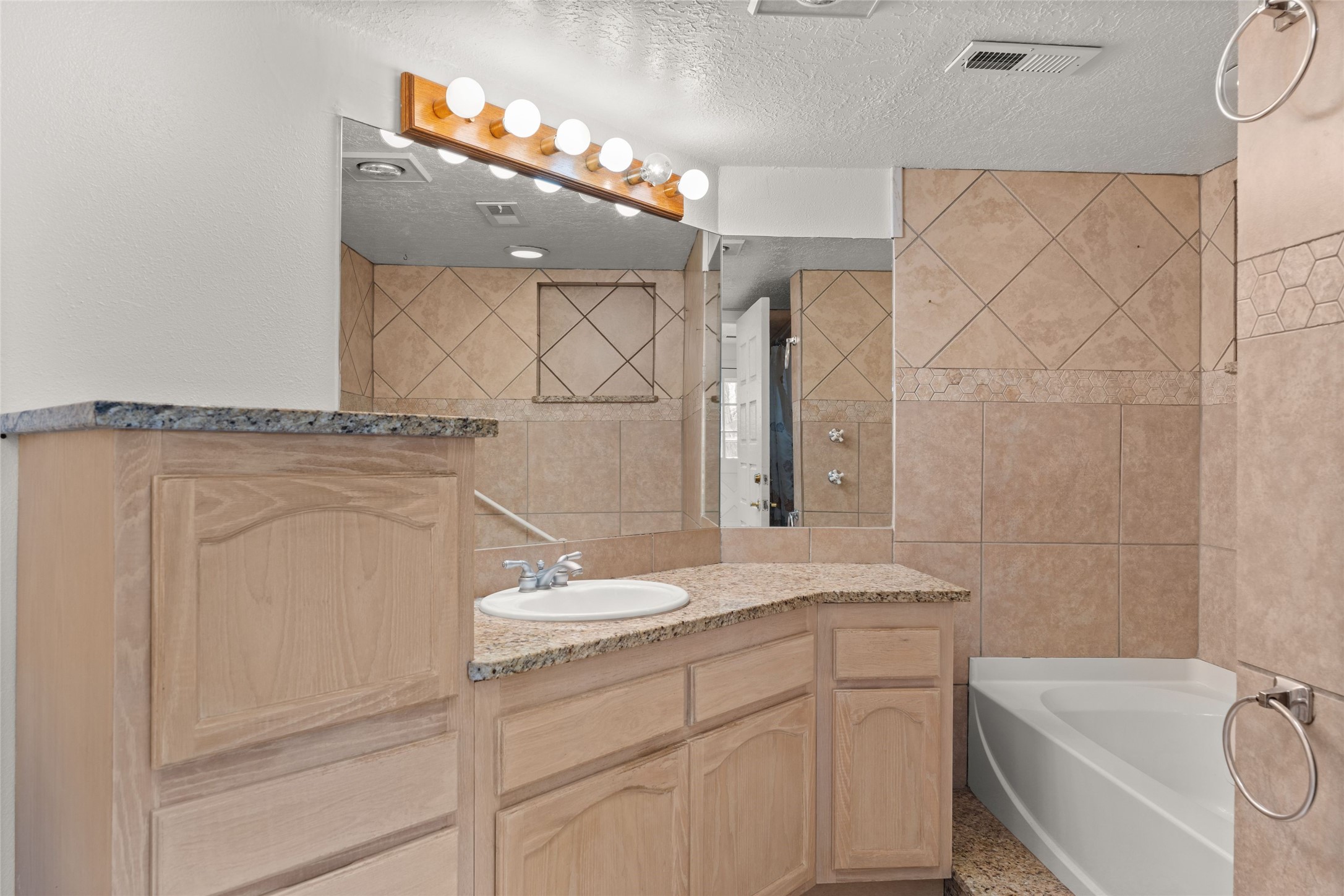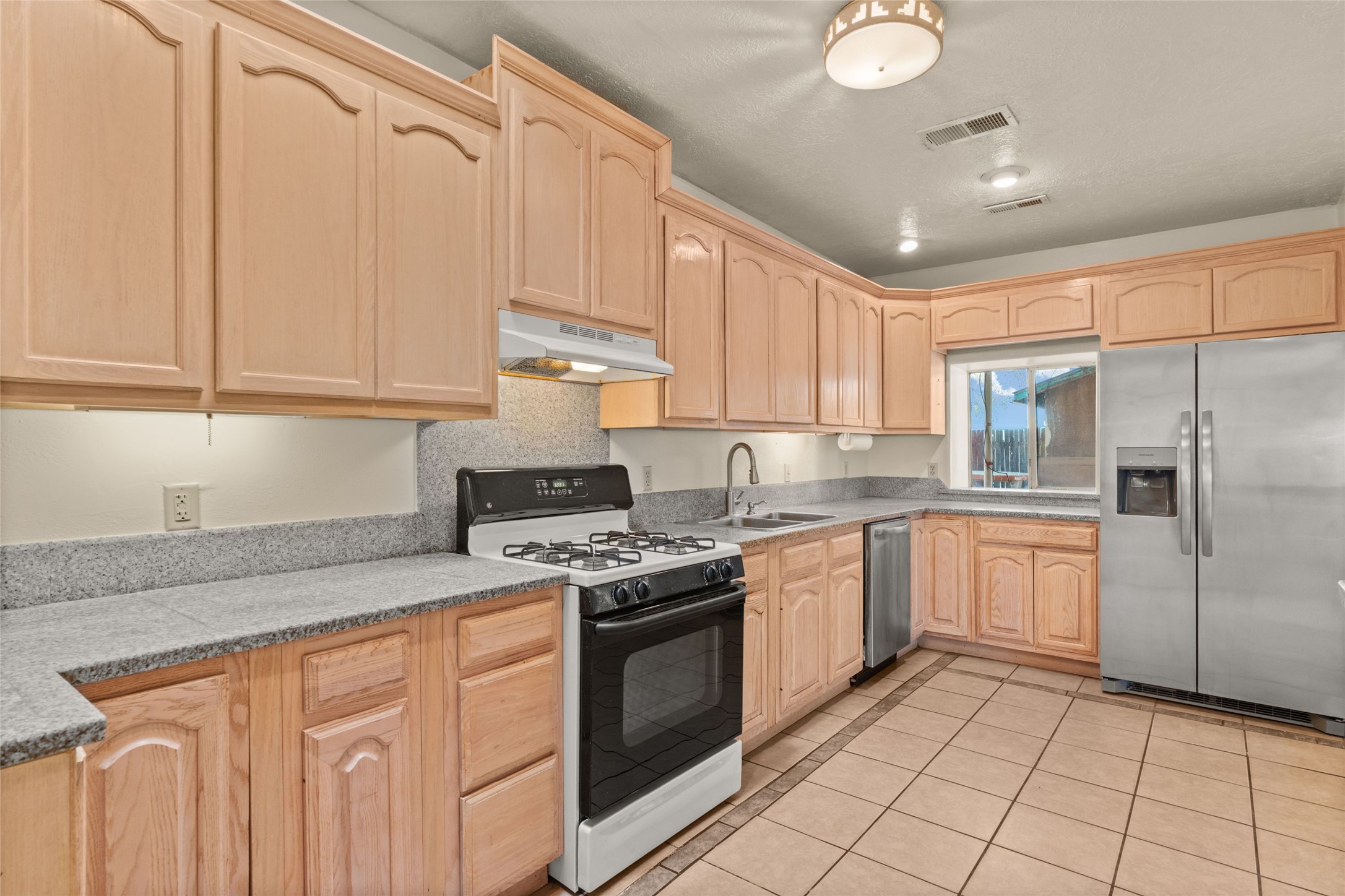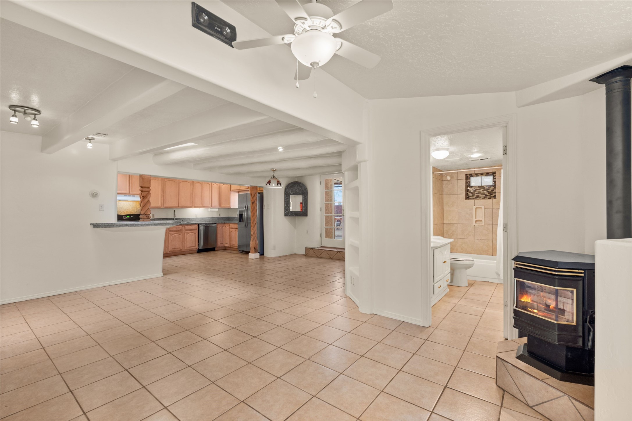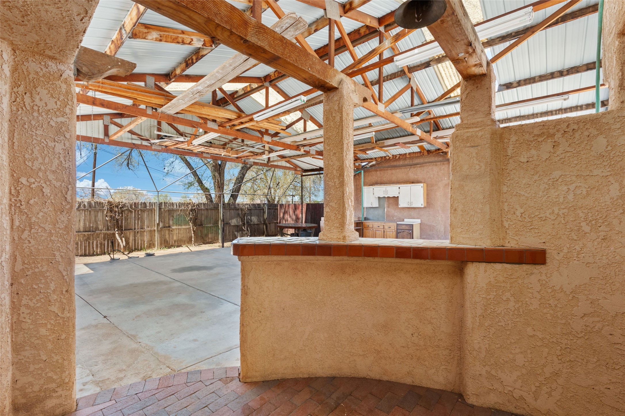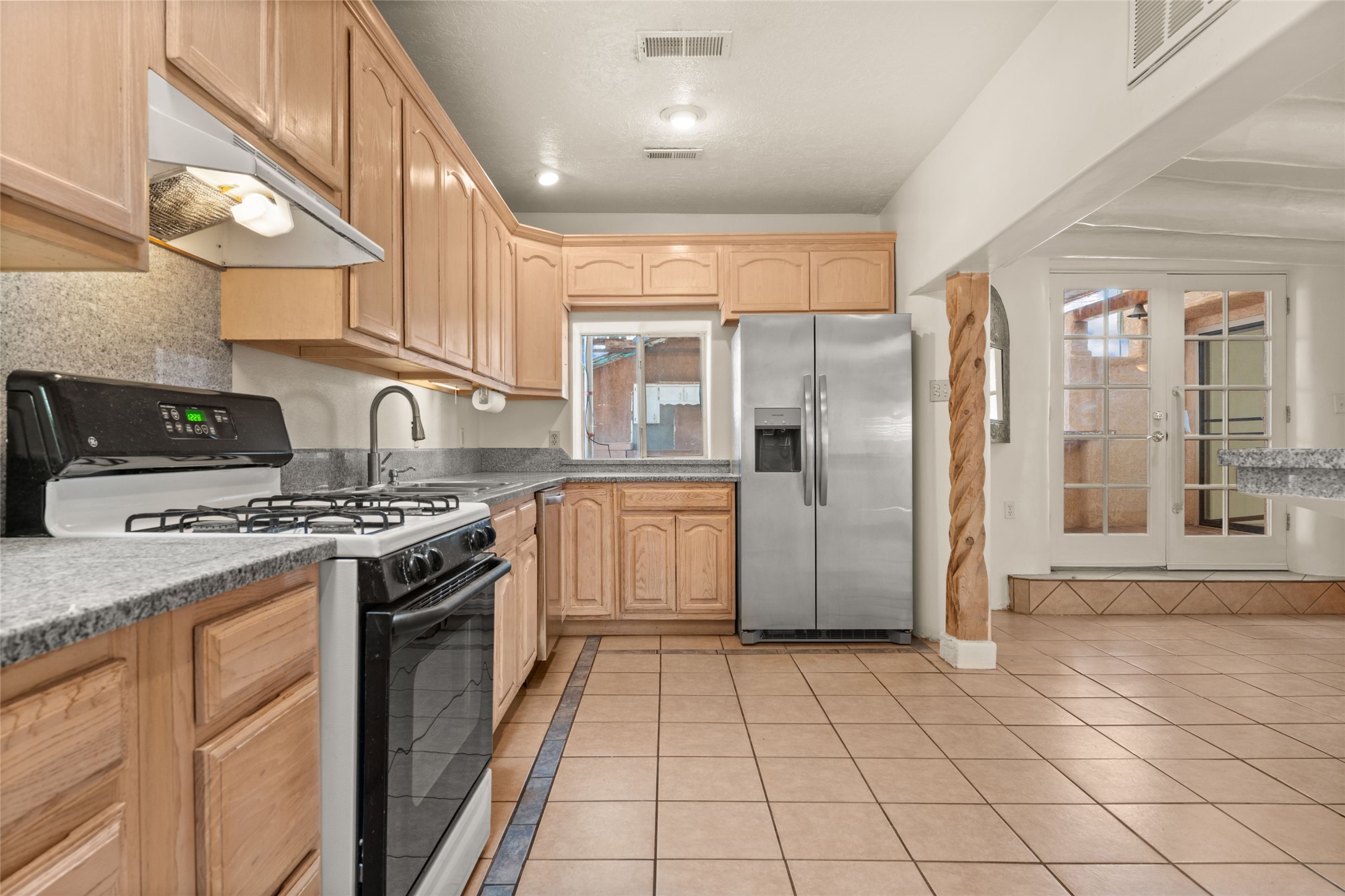 Charming Home with Guest House on Sizable Half-Acre Lot - Welcome to this light-filled Gem featuring 3 bedrooms and 3 bathrooms on a large Half-Acre Lot, conveniently located near shopping and restaurants. The main home features 2 bedrooms and 2 full bathrooms plus two spacious living areas, offering plenty of room for both relaxation and entertainment. The updated kitchen boasts granite tile countertops, updated appliances, and plenty of cabinet space, ideal for chefs who enjoy home cooking and hosting dinner parties. With its traditional pueblo architecture, including Vigas and French doors, this home exudes plenty of Southwestern charm and character throughout.A standout feature is the detached Guest House, complete with its own kitchen, bathroom, and storage shed -- perfect for use as a rental property, studio, or a private retreat for visitors. The Guest House, with its separate and private entrance, offers income potential and flexibility with respect to the optimal use of the property.Sited on a generous .50-acre Lot, there's plenty of room to garden, play, or simply enjoy the sunshine and fresh air. This property blends comfort, versatility, and style in one unique package. Don't miss out on this exciting opportunity to own this spectacular home - schedule your showing today!
