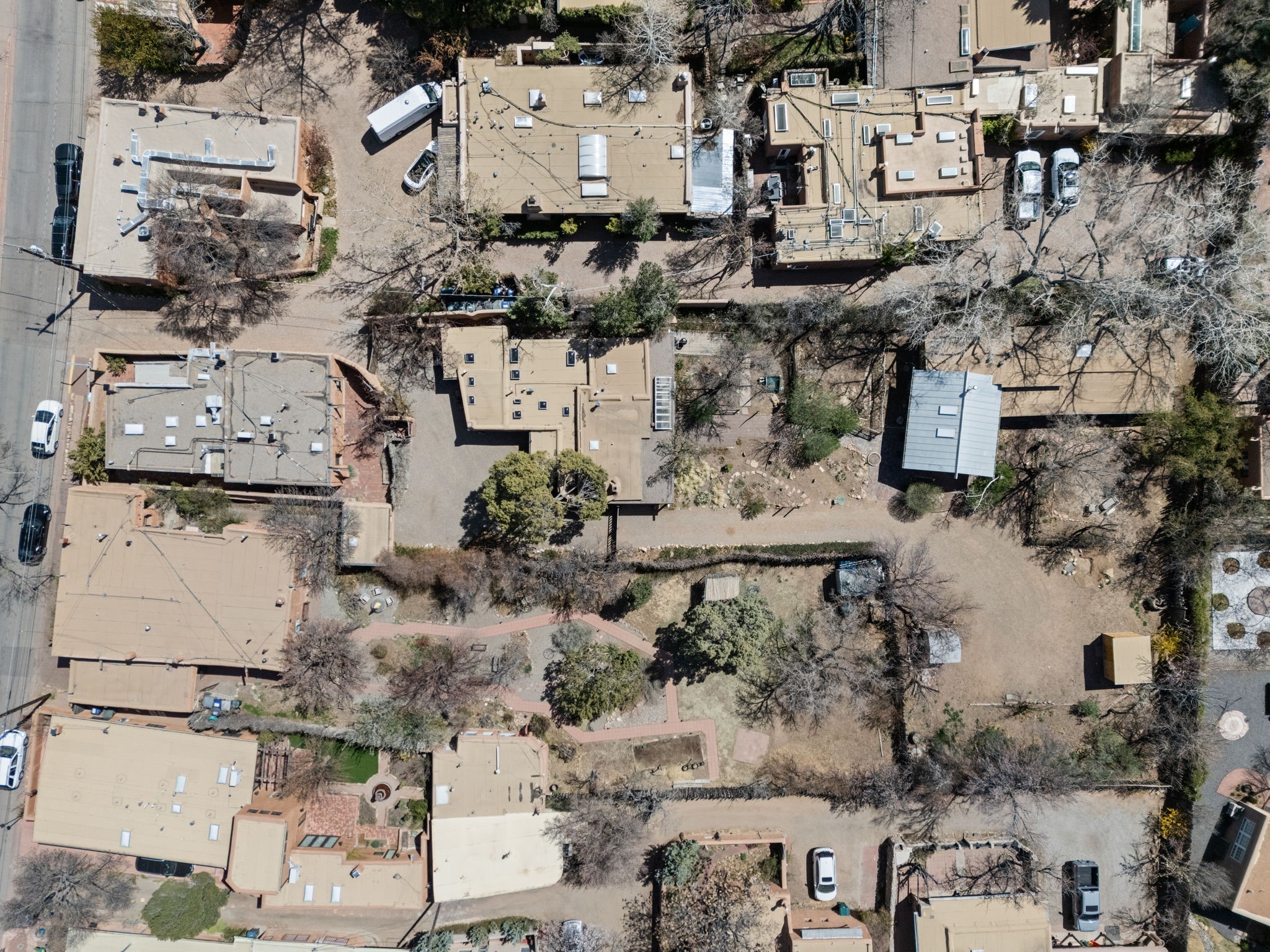 An Exceptional Canyon Road Property. A rare Santa Fe gem listed by Phillip Varela, Varela Real Estate, this stunning property at 634 Canyon Rd offers an unparalleled opportunity to own a central piece of Santa Fe's historic and artistic district. Nestled in the heart of this iconic street known for its world-class galleries, boutiques, and fine dining, this property blends traditional charm with modern comforts. Boasting 3 units and 4700 plus square feet of wonderfully designed space, this unique and quaint property exudes Santa Fe charm. The historic front building has for decades served as a beautiful and fully functional art gallery facing Canyon Rd. The back two units, which have been both residences and artists' studios, are zoned as live/work spaces in a quiet, secluded setting. Artistic touches distinguish all three buildings. They boast natural materials lovingly selected and worked by respected artisans. The artists' touch is visible everywhere: in hand-worked wood, polished pavers, hand-painted tiles and other one-of-a-kind features. Kiva fireplaces and natural log wood-beam vigas lend the classic warmth of Southwestern architecture. Step outside into Santa Fe's crisp mountain air on to more than half an acre of gardens and fruit trees irrigated by water from the Acequia Madre, with a graveled private drive and off street parking, a private well, and outdoor sitting areas.Situated on Canyon Road, one of Santa Fe's most celebrated streets, this property is surrounded by over 80 galleries, studios, and boutiques, making it a haven for art enthusiasts and collectors. Canyon Road is renowned for its vibrant art scene, featuring everything from traditional to contemporary works, as well as its fine jewelry and dining establishments. The property has a unique and special Santa Fe history. Artists Allen and Alice Parrott bought the adobe house at 634 Canyon Road from the painter Olive Rush in the 1950s. The property previously belonged to the Rodriguez-Sena families, who had farmed there for over 200 years. The street's charm and cultural significance make it a sought-after destination for visitors and locals alike. Don't miss the chance to experience the magic of Canyon Road. This property suits a range of lifestyles, from full-time residence, to a workspace for creative professionals, to unique investment opportunities.